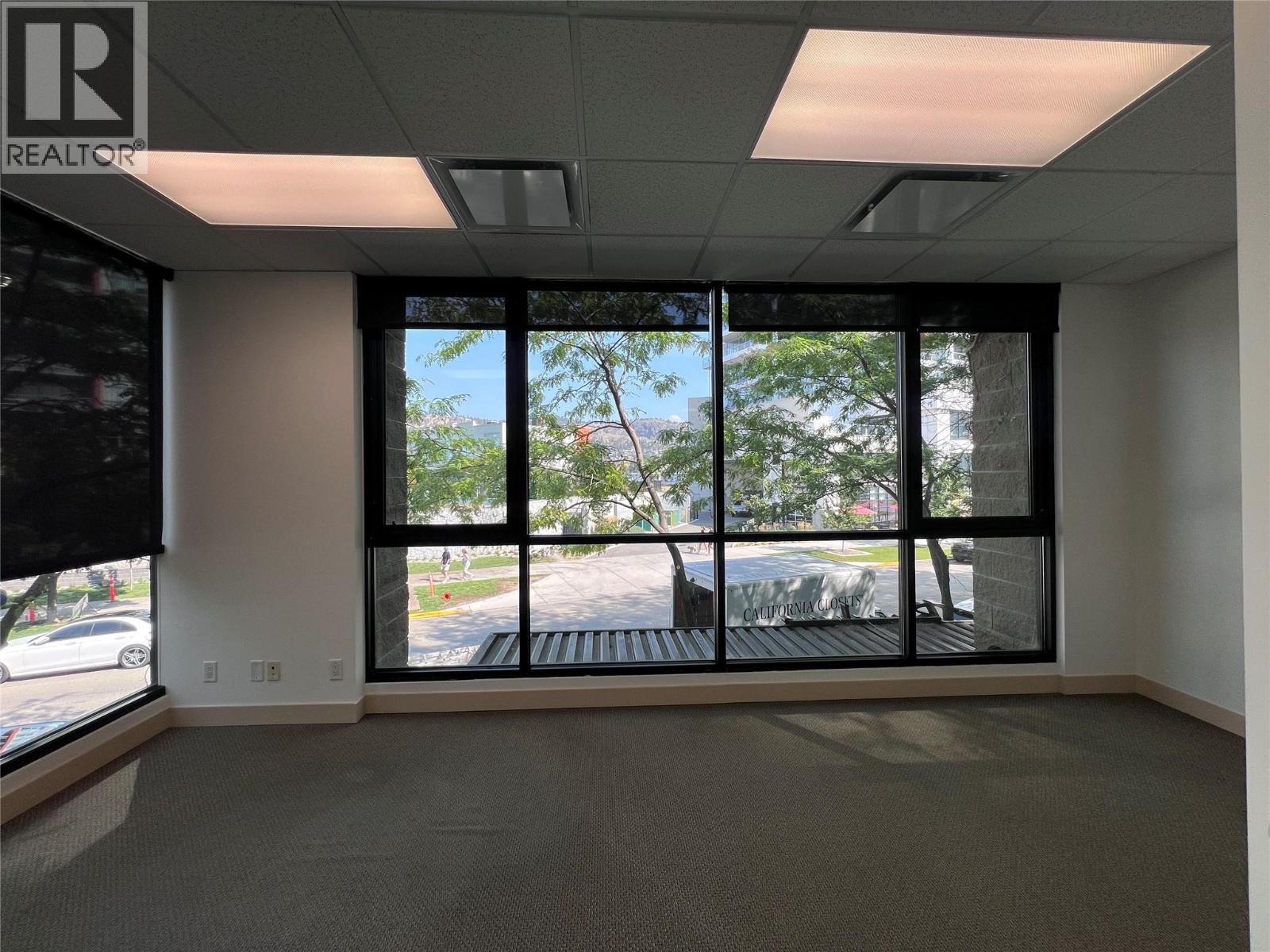 205 - 1180 Sunset Drive can be found in a quaint courtyard setting situated in the highly coveted waterfront area of Kelowna and adjacent to the new One Water development. Located above Bouchons Bistro, this 912 SF second floor office space boasts large floor to ceiling windows with beautiful mountain views. The unit includes 2 nicely finished offices (one of them being very large with several windows bringing in ample natural light), a large open work and reception area, and one in-suite washroom. The building is ideally located within walking distance to all of the waterfront amenities downtown Kelowna has to enjoy, including Waterfront Park and Tugboat Bay, Knox Mountain, Prospera Place, Kelowna Art Gallery, Delta Grand Hotel, Kelowna Yacht Club, and many restaurants and shops. Pay parking available on the street along Sunset Drive and in the City parking lot at the corner of Sunset Drive and Water Street. (id:61840)