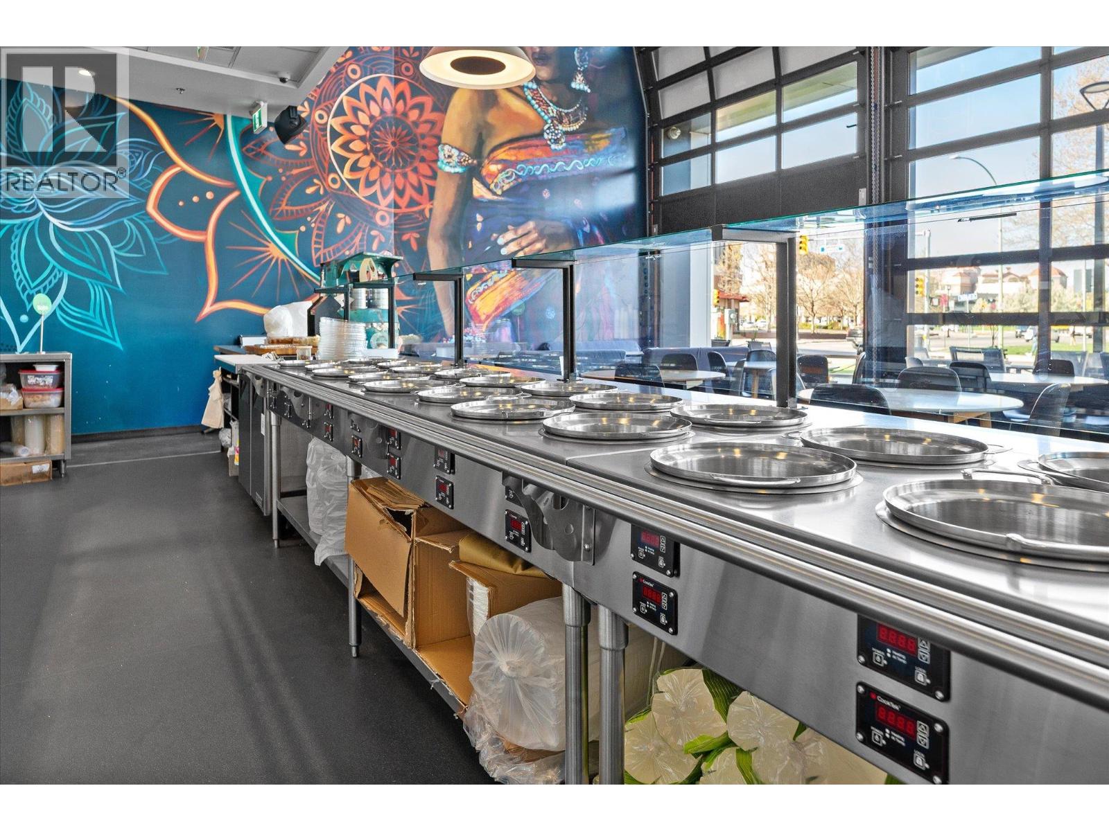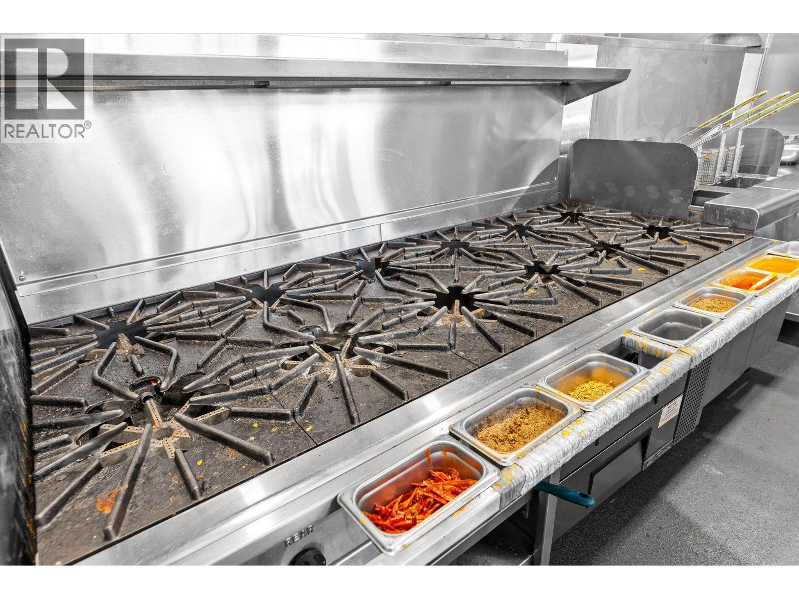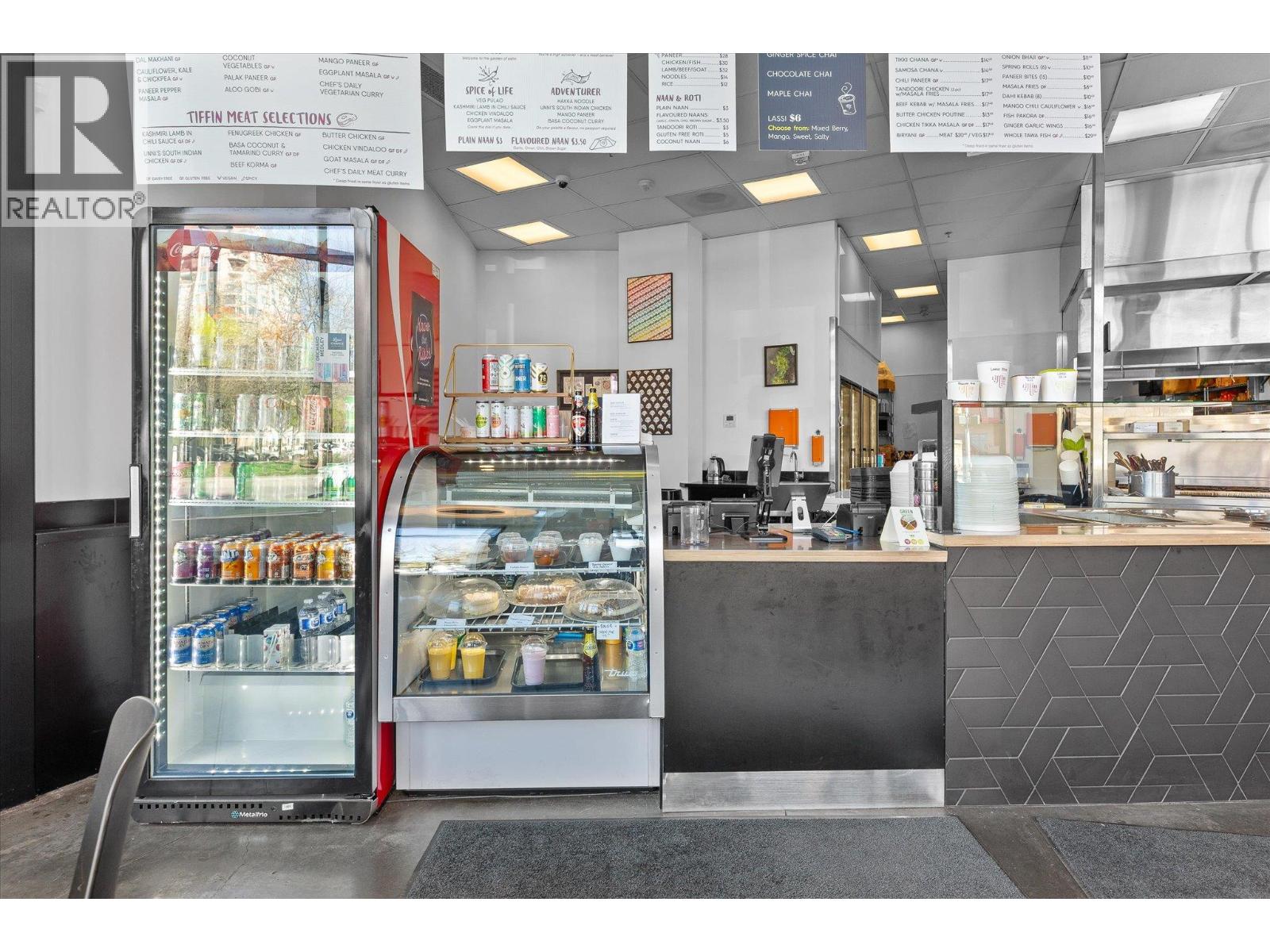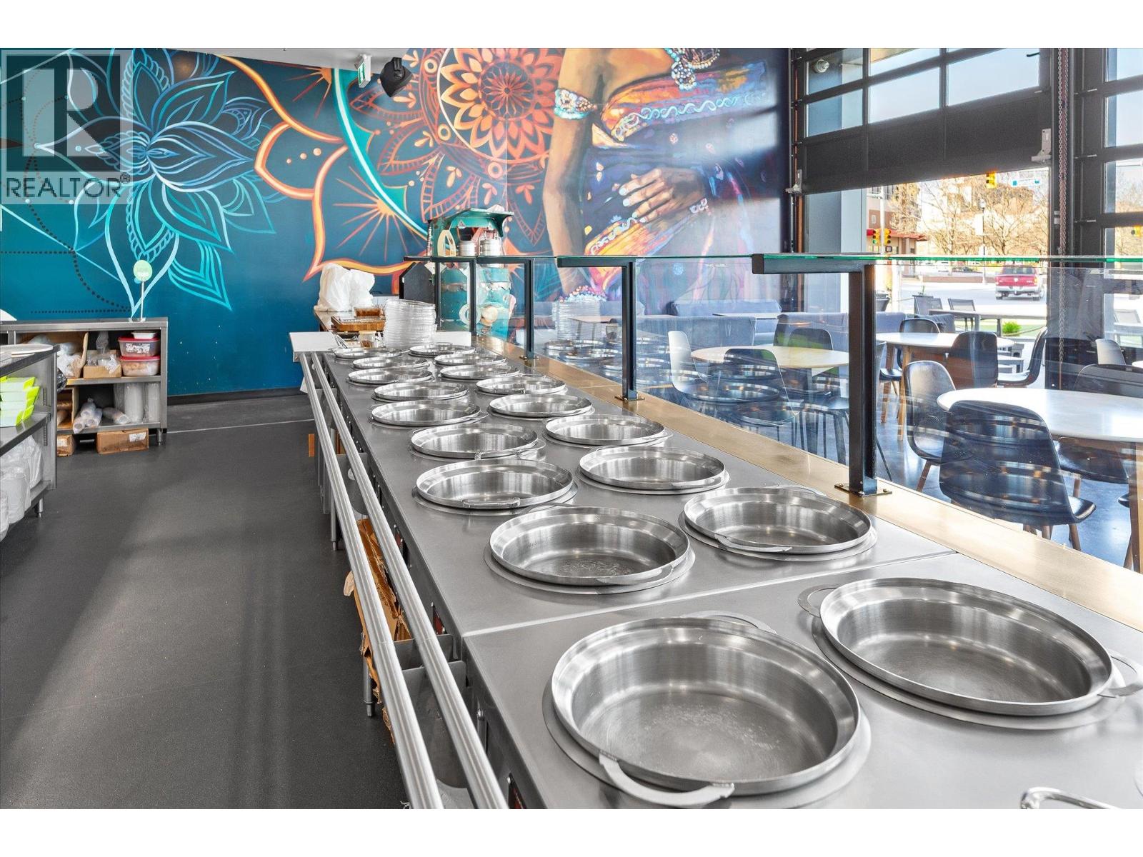 Opportunity to acquire the assets of a prominent, downtown Kelowna restaurant with high exposure and foot traffic! The restaurant, Tiffin India's Fresh Kitchen, currently operates as a fast-casual Indian dining restaurant and was outfitted with new equipment and significant leasehold improvements. With a branding change (required in the sale), another restaurateur/entrepreneur can easily continue operations as a profitable Indian restaurant with significant takeout traffic and goodwill associated with the location. However, in this location, a buyer may wish to change uses to other restaurant uses that would align with such a location and high-end buildout (high-end restaurant, cocktail bar, etc). The equipment is largely transferable to other restaurants, except for specialized equipment like the Tandoor oven. The kitchen also includes a walk-in fridge area and a 6x6 foot walk-in freezer. The dining space itself is exceptional, with soaring ceilings and rolling doors that open up to the outside for the summer months, blending into the large outdoor patio space. However, the cosmetics are as high-quality as the mechanical systems, with additions such as a high-quality ventilation system to ensure no odours. There is a long-term lease in place to ensure continuity for a new owner. The assets are being sold significantly under cost, even when attributing appropriate depreciation. Branding, website, etc., are not included in the sale. Please inquire for an NDA and further information about this asset sale (id:61840)