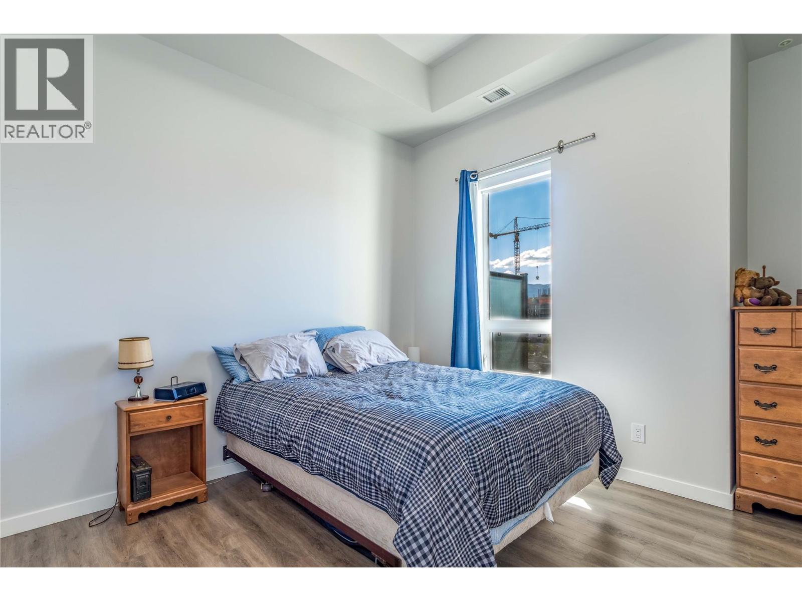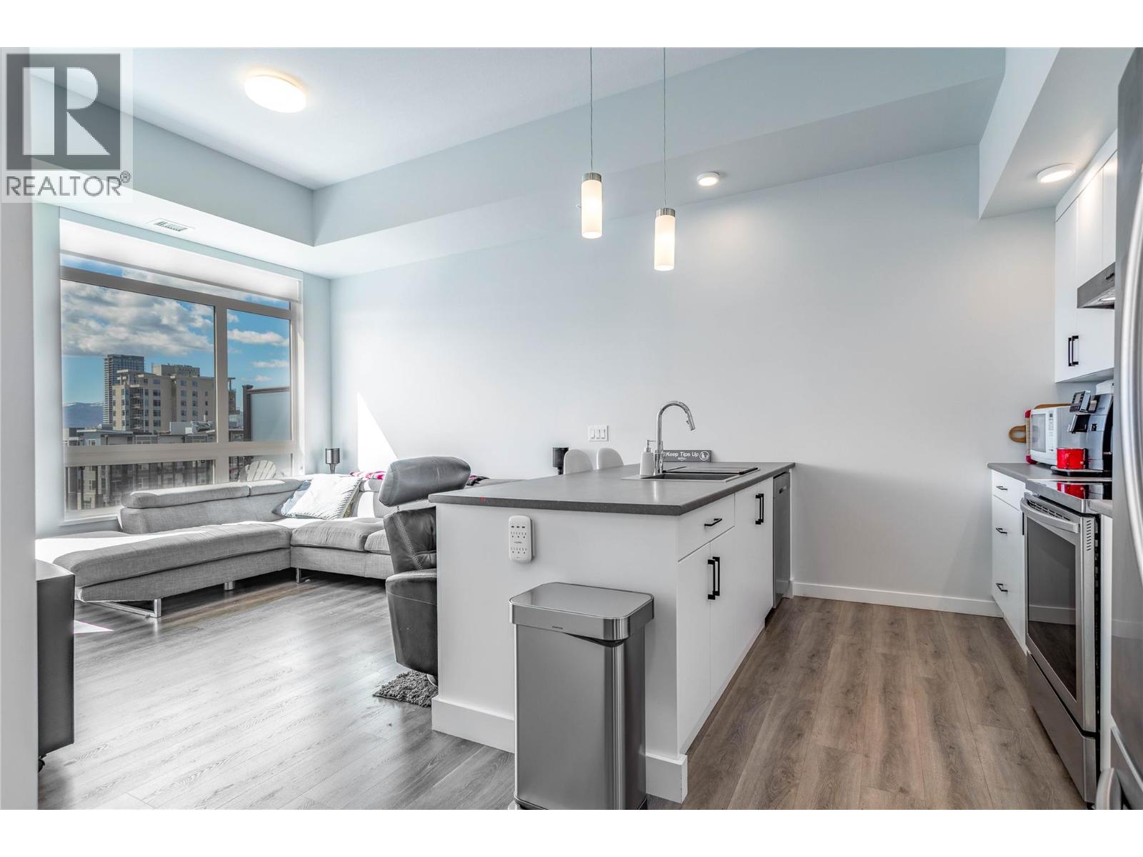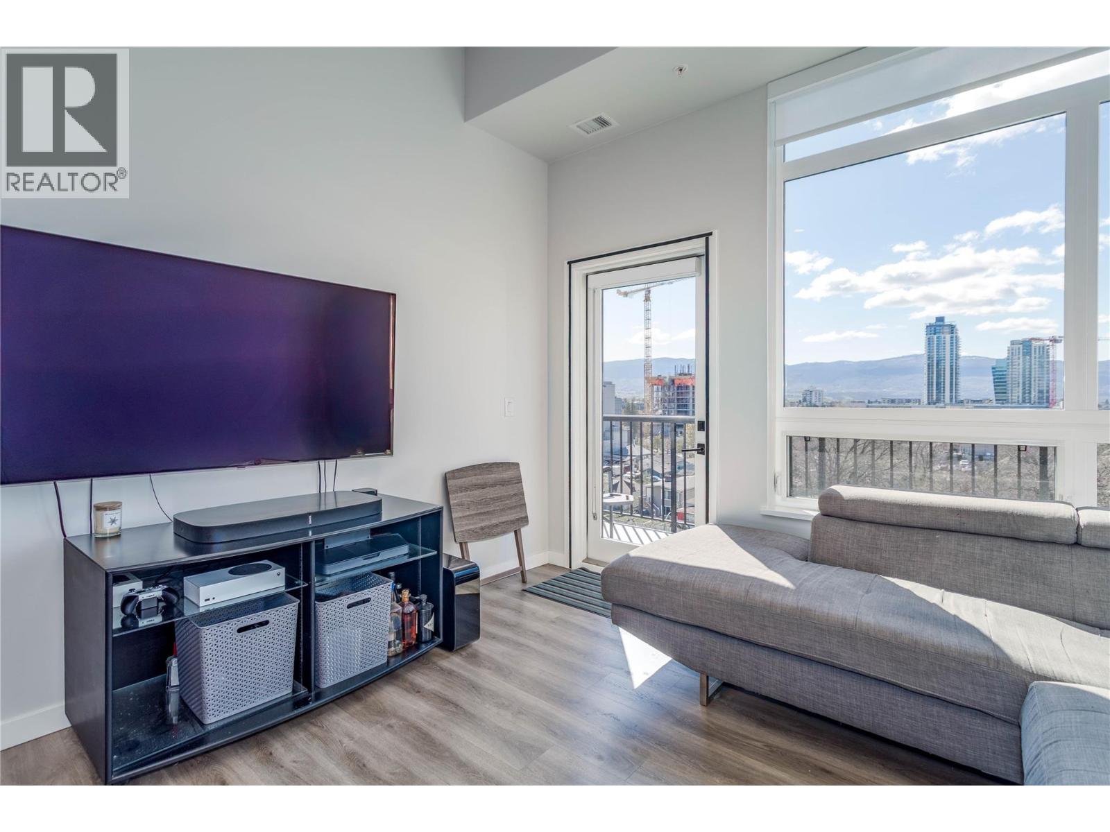 $317.58 MonthlyTOP-FLOOR LIFESTYLE! Welcome to the pinnacle of downtown living in Kelowna's vibrant North End! Perched on the top floor, this bright and beautiful condo is the ultimate urban sanctuary. With no neighbors above you, you'll enjoy a serene and private living experience that's truly a cut above the rest. Step inside and be wow'ed by the incredible south-facing views of the valley and lake, which bathe the open-concept living space with abundant natural light. The high ceilings create an airy, spacious feel, while the streamlined kitchen, complete with an entertainer's island and sit-up bar, is perfect for hosting friends and family. The thoughtful split-bedroom floor plan ensures privacy, with the second bedroom being an ideal space for a home office or guests. A convenient in-suite laundry room with extra storage adds to the unit's practicality. Step out to your private, top-floor balcony, where you can soak up the sun and cultivate a charming herb garden with a view. This 2019 building is a walker's paradise—imagine a lifestyle where you're just a short stroll from Kelowna's best breweries, restaurants, shops and the beach and lake are only two blocks away; enjoy the best of Kelowna’s legendary summer. With a secured underground parking stall included, you have the flexibility of a no-car lifestyle while still having a spot for your vehicle. This is more than just a home—it's a lifestyle. Book your showing today and start living the dream! (id:61840)