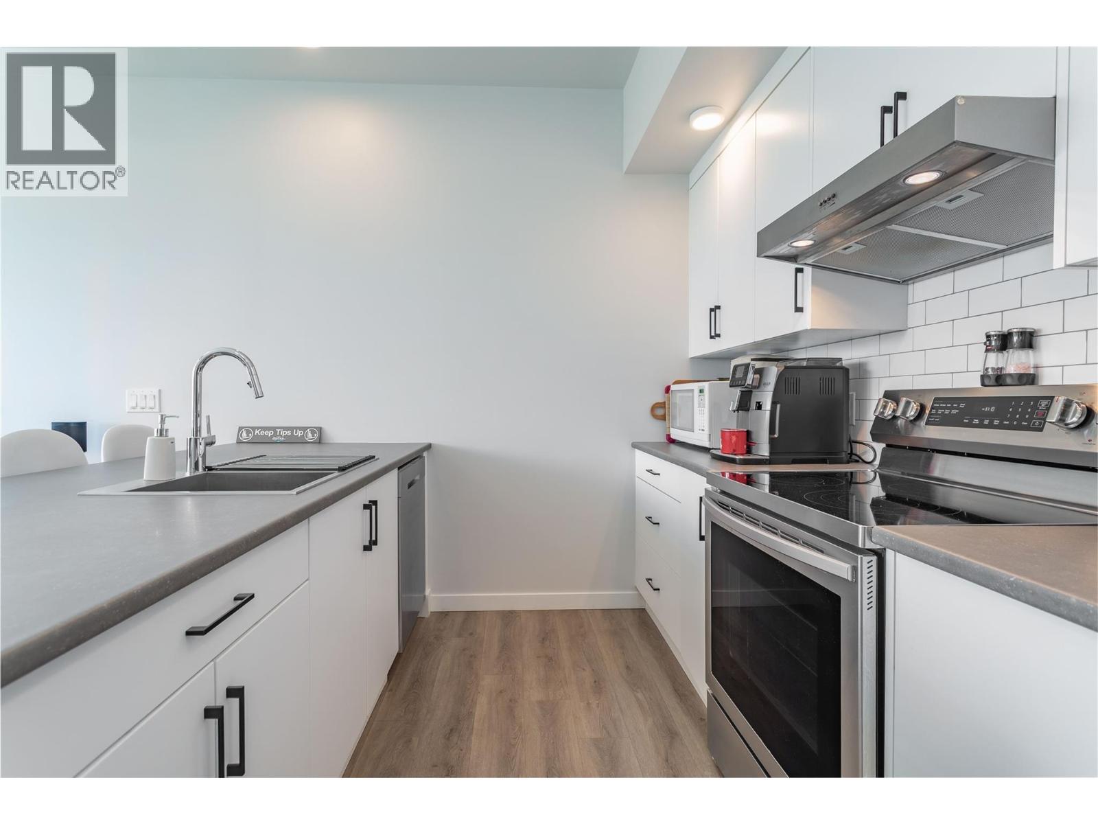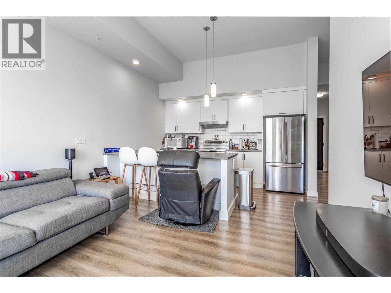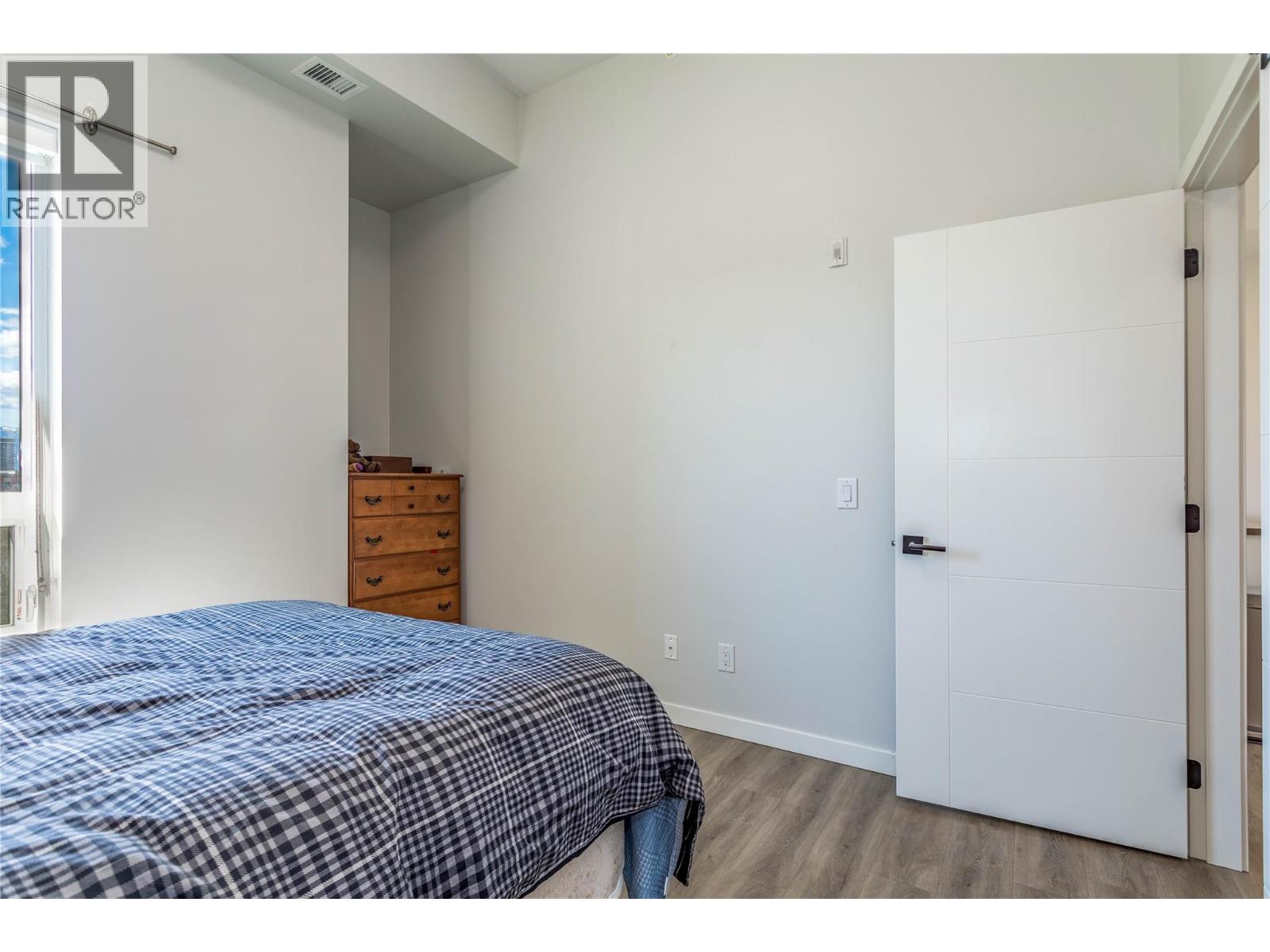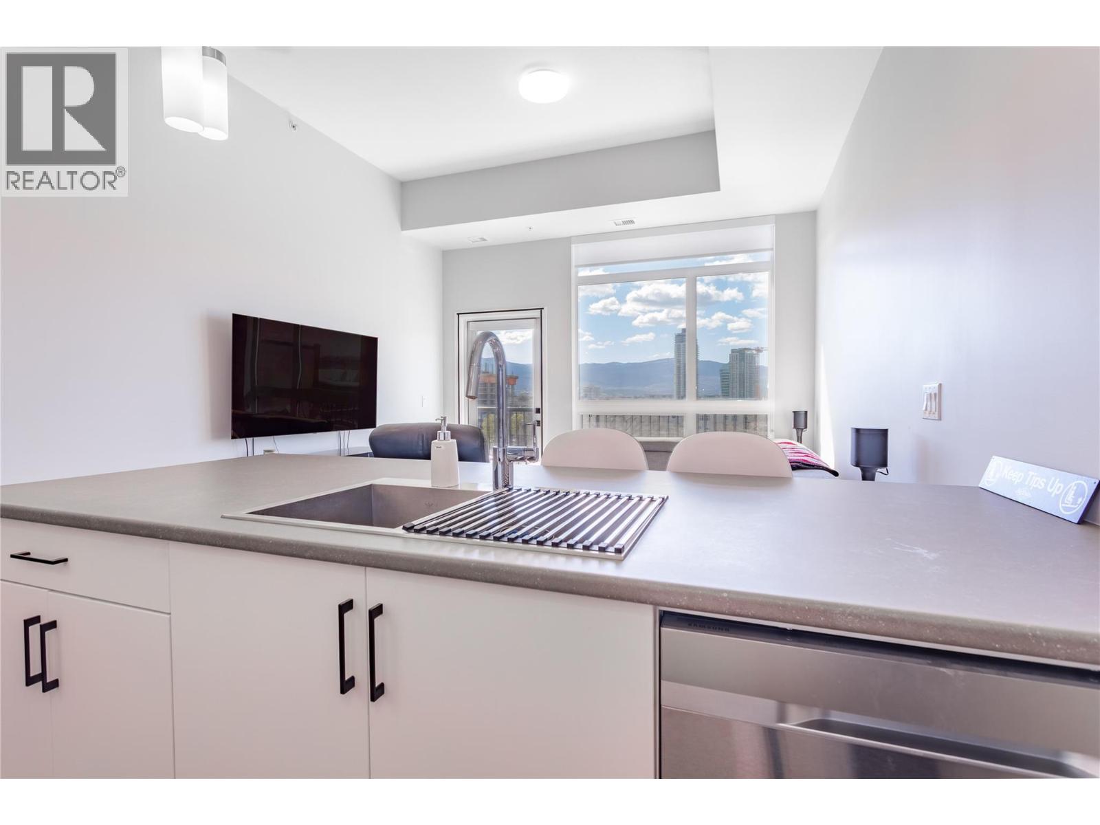 $317.58 MonthlyTOP-FLOOR LIFESTYLE! Welcome to the pinnacle of downtown living in Kelowna's vibrant North End! Perched on the top floor, this bright and beautiful condo is the ultimate urban sanctuary. With no neighbors above you, you'll enjoy a serene and private living experience that's truly a cut above the rest. Step inside and be wow'ed by the incredible south-facing views of the valley and lake, which bathe the open-concept living space with abundant natural light. The high ceilings create an airy, spacious feel, while the streamlined kitchen, complete with an entertainer's island and sit-up bar, is perfect for hosting friends and family. The thoughtful split-bedroom floor plan ensures privacy, with the second bedroom being an ideal space for a home office or guests. A convenient in-suite laundry room with extra storage adds to the unit's practicality. Step out to your private, top-floor balcony, where you can soak up the sun and cultivate a charming herb garden with a view. This 2019 building is a walker's paradise—imagine a lifestyle where you're just a short stroll from Kelowna's best breweries, restaurants, shops and the beach and lake are only two blocks away; enjoy the best of Kelowna’s legendary summer. With a secured underground parking stall included, you have the flexibility of a no-car lifestyle while still having a spot for your vehicle. This is more than just a home—it's a lifestyle. Book your showing today and start living the dream! (id:61840)