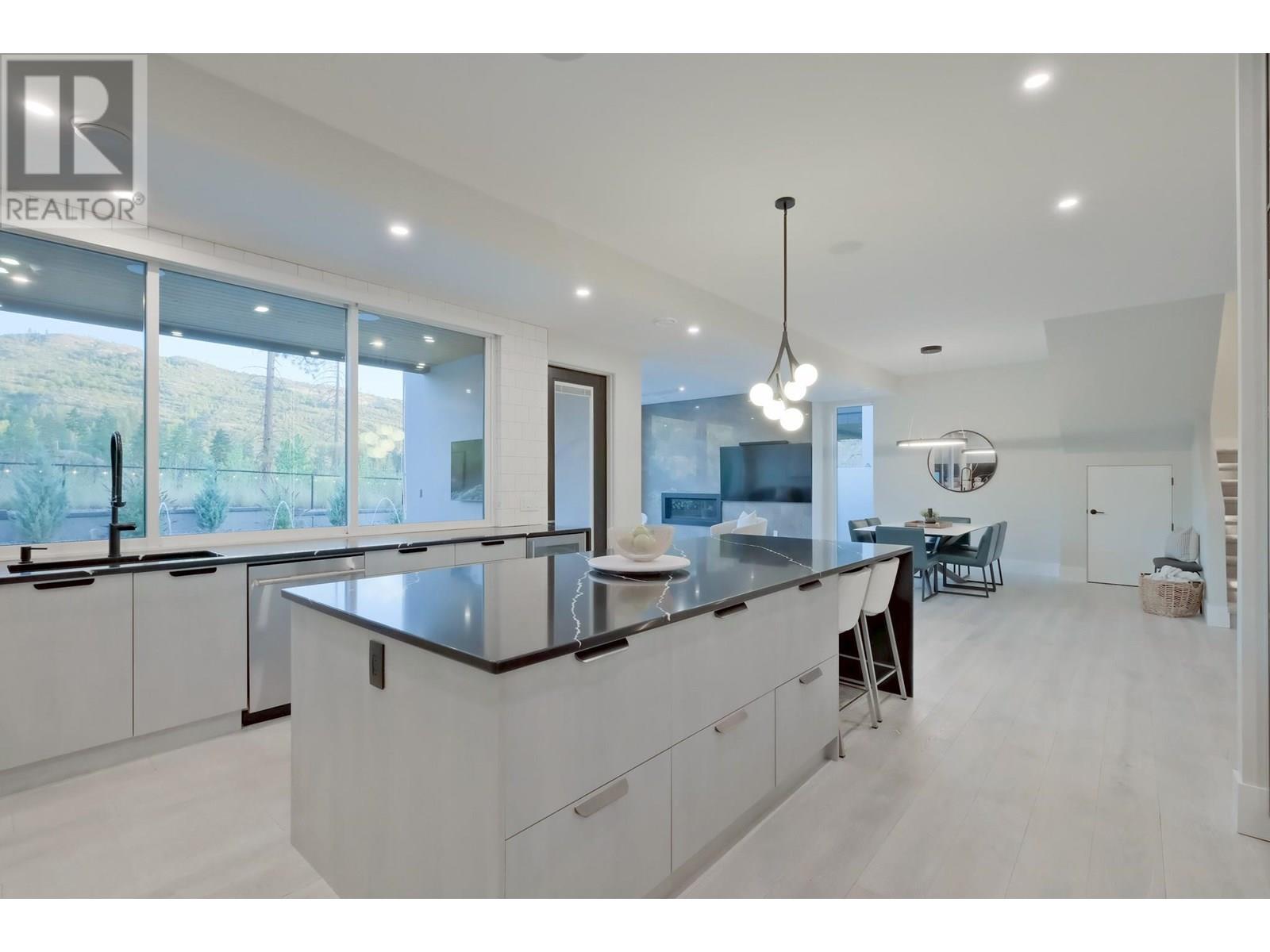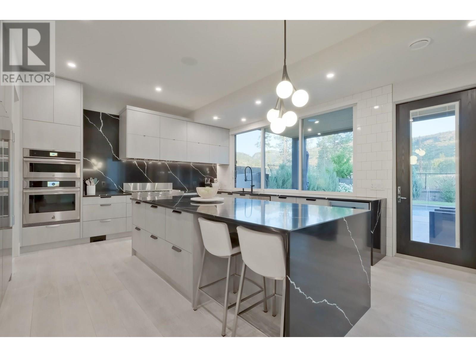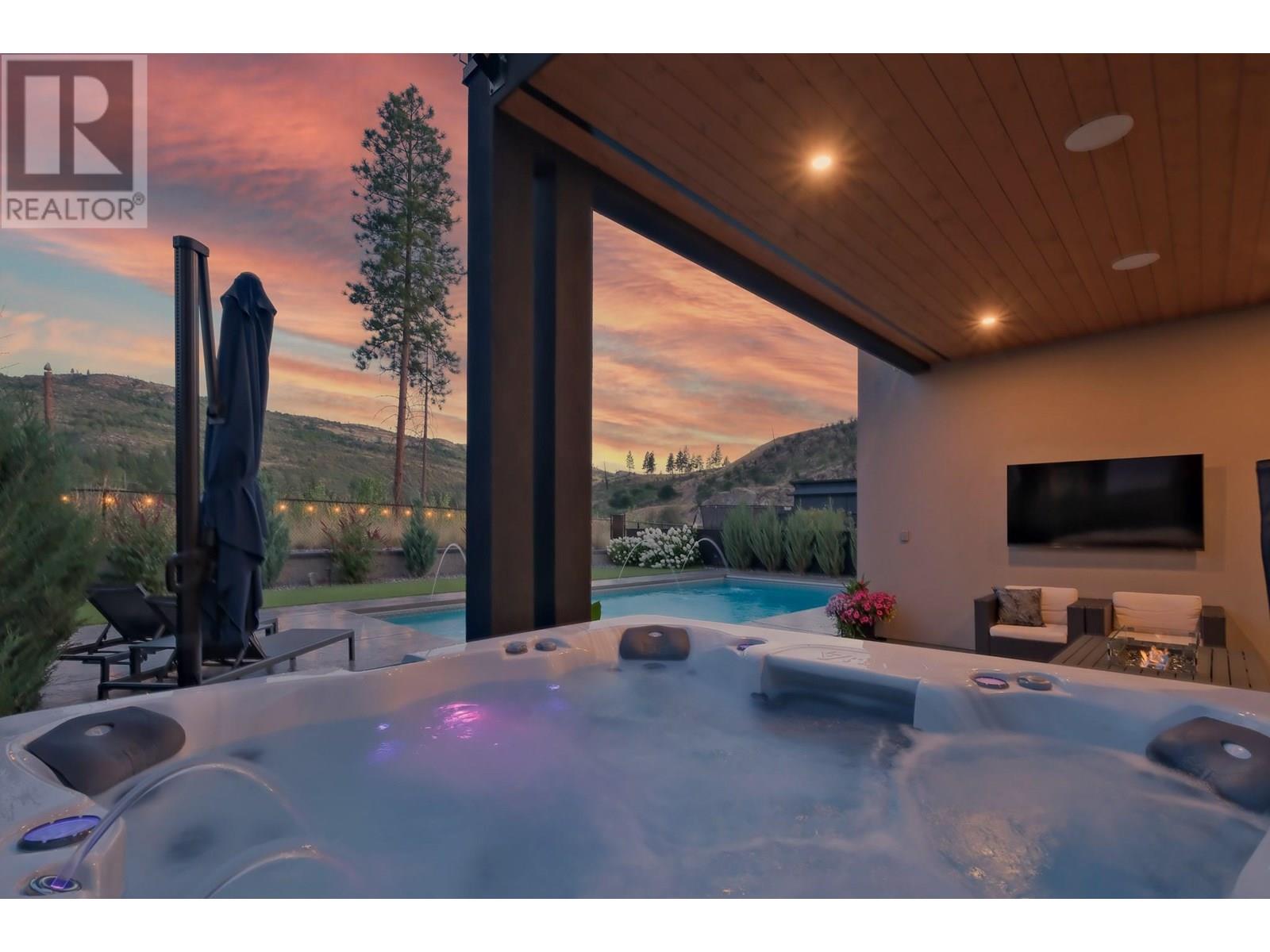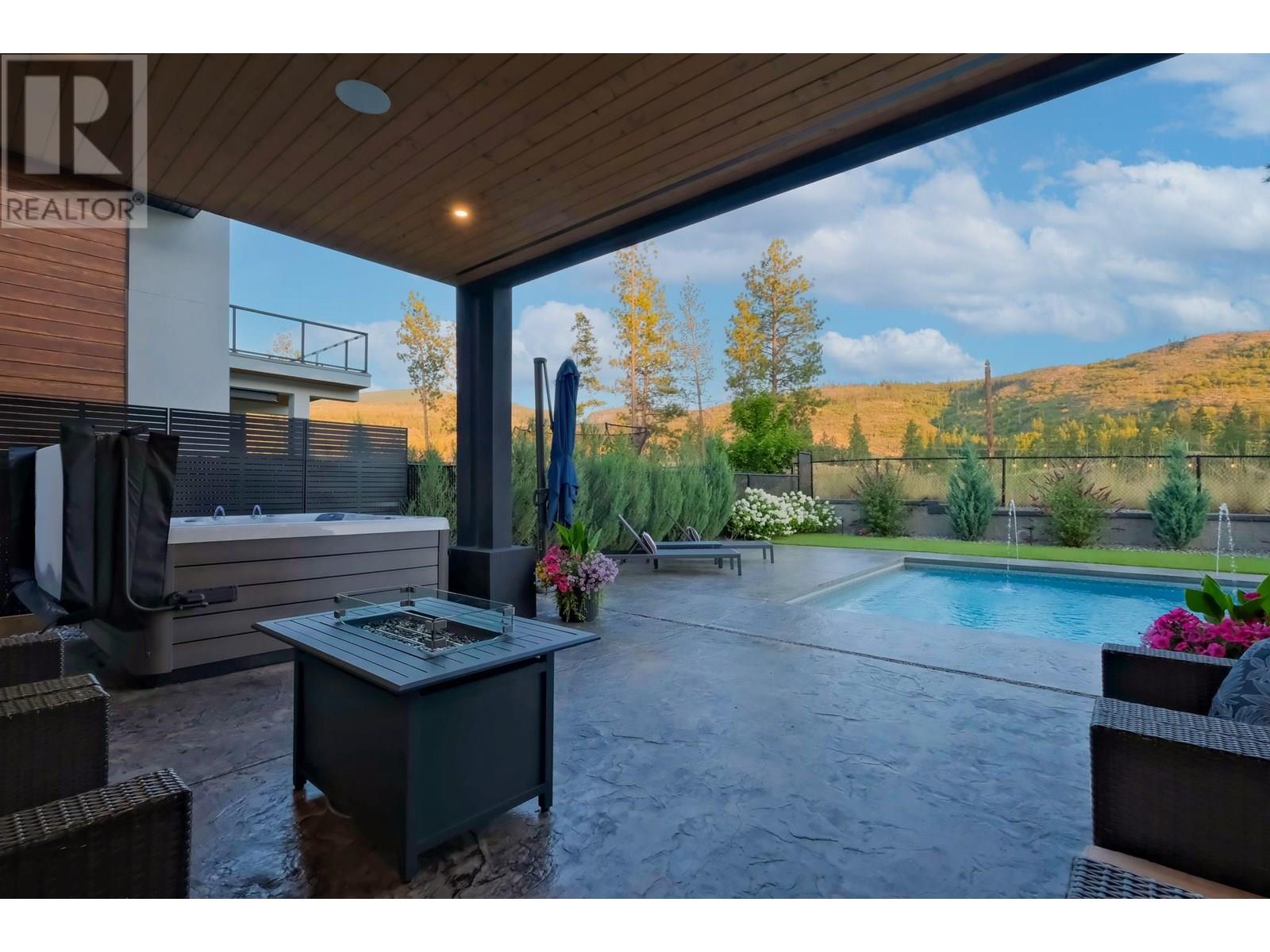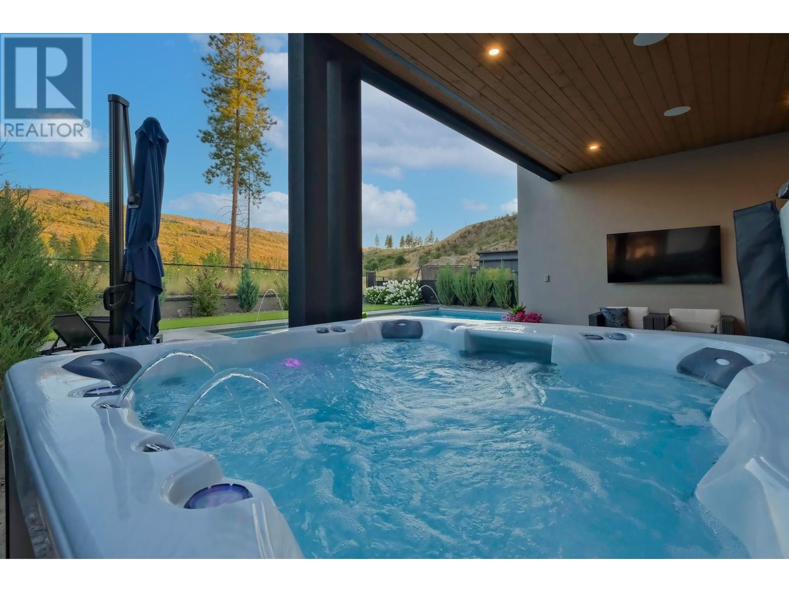 Welcome to your dream home in the desirable Upper Mission offering luxury finishes and every feature imaginable. This elegant property boasts 6 bedrooms, a 16x32 saltwater pool with an auto cover, hot tub, and a chef's kitchen with a pass-through window to the covered patio/BBQ. The upper level features 4 bedrooms (or 3+ family room), including the spacious primary retreat with a private patio, built-in makeup vanity and laundry hamper, and a stunning ensuite complete with a steam shower and freestanding tub. Additionally, there are 3 more bedrooms upstairs, one with its own ensuite, and a full laundry room with ample storage. This exceptional property harmoniously combines luxury and functionality, with eco-friendly features such as solar panels and EV charging, zoned HVAC, a water softener, hide-a-hose vacuum, and hot water on demand. Roughed-in for an elevator. Whether you're relaxing by the pool, entertaining guests on the patio, or enjoying the tranquility of the mountain views through the floor-to-ceiling windows, this property is a true oasis! The spacious heated garage with epoxy floors and an oversized door adds convenience, while the fully fenced low-maintenance yard with artificial turf and landscape lighting enhances the outdoor Okanagan experience. Located within the catchment of some of the city's top schools, close to Mission Village, and steps from hiking/biking trails, this custom home offers every luxury feature and natural surroundings. Like new-NO GST! (id:61840)