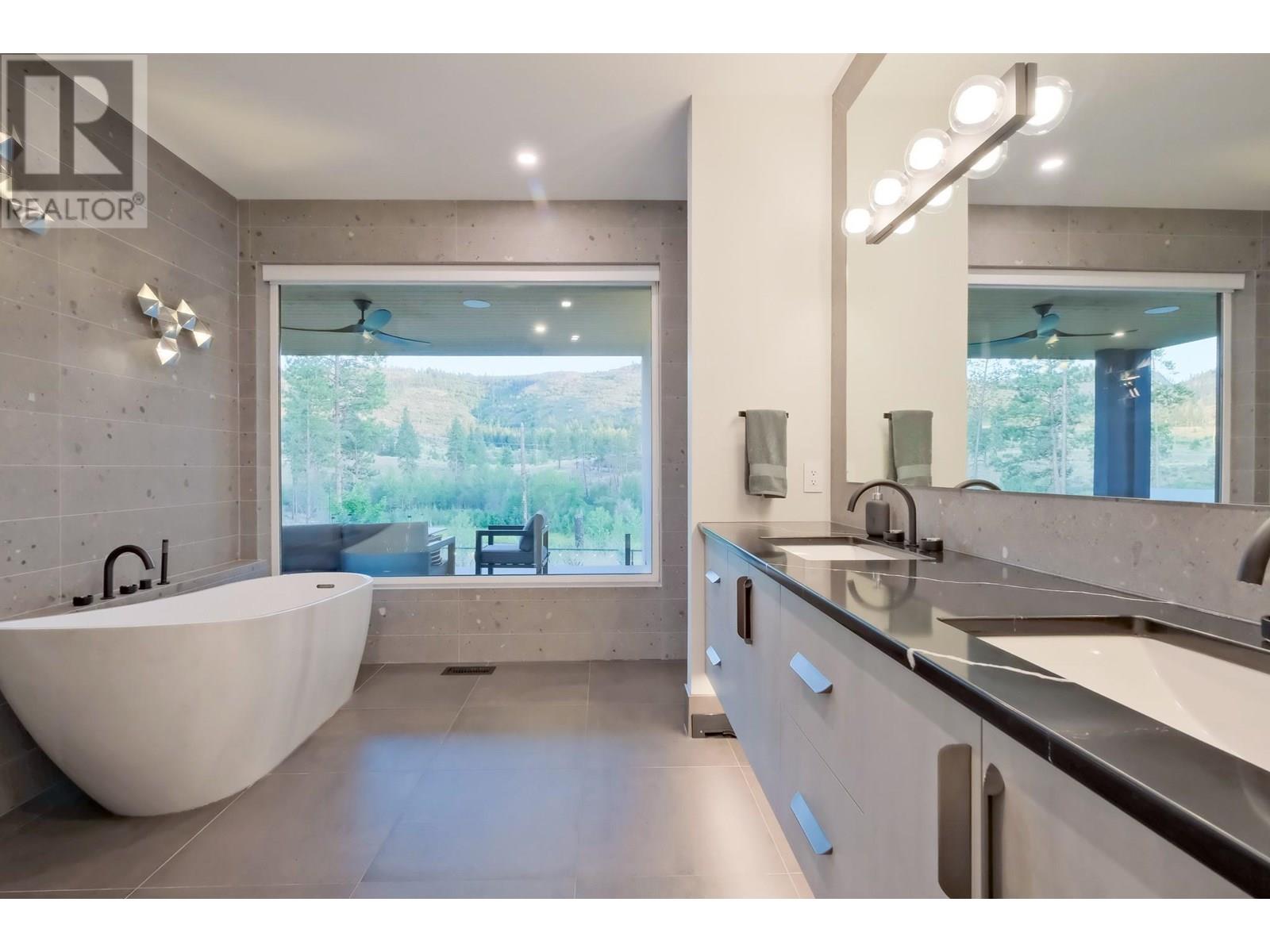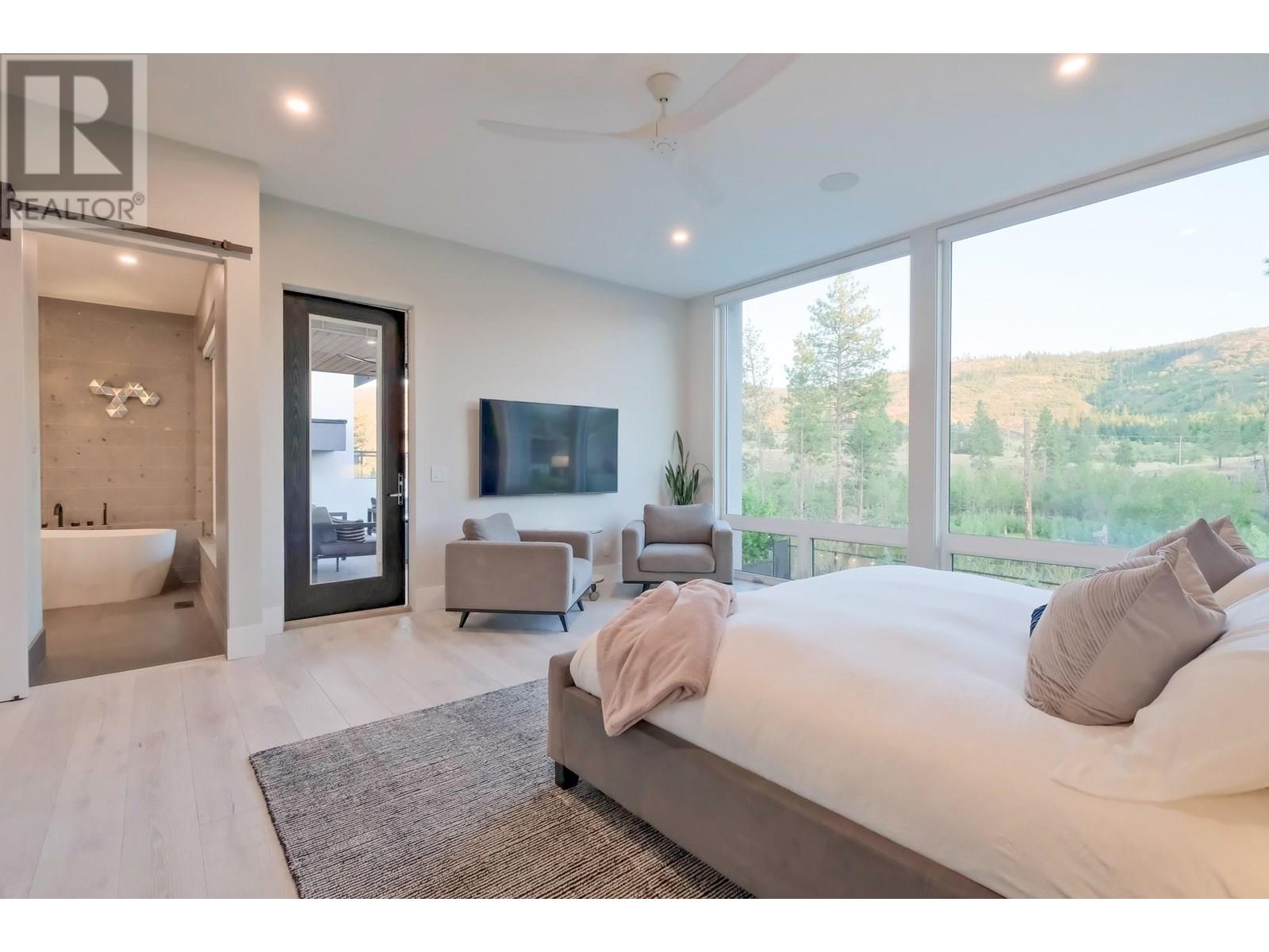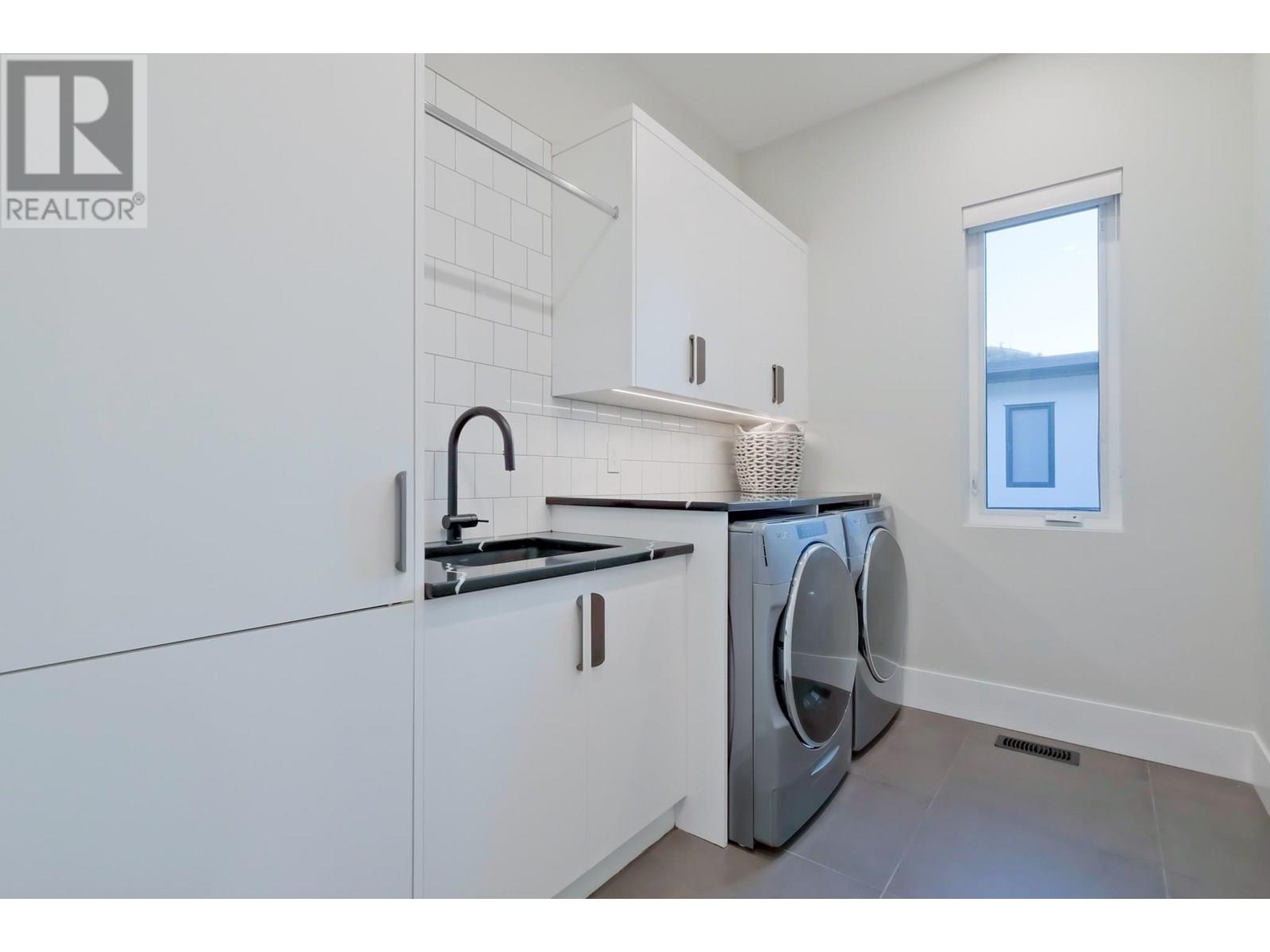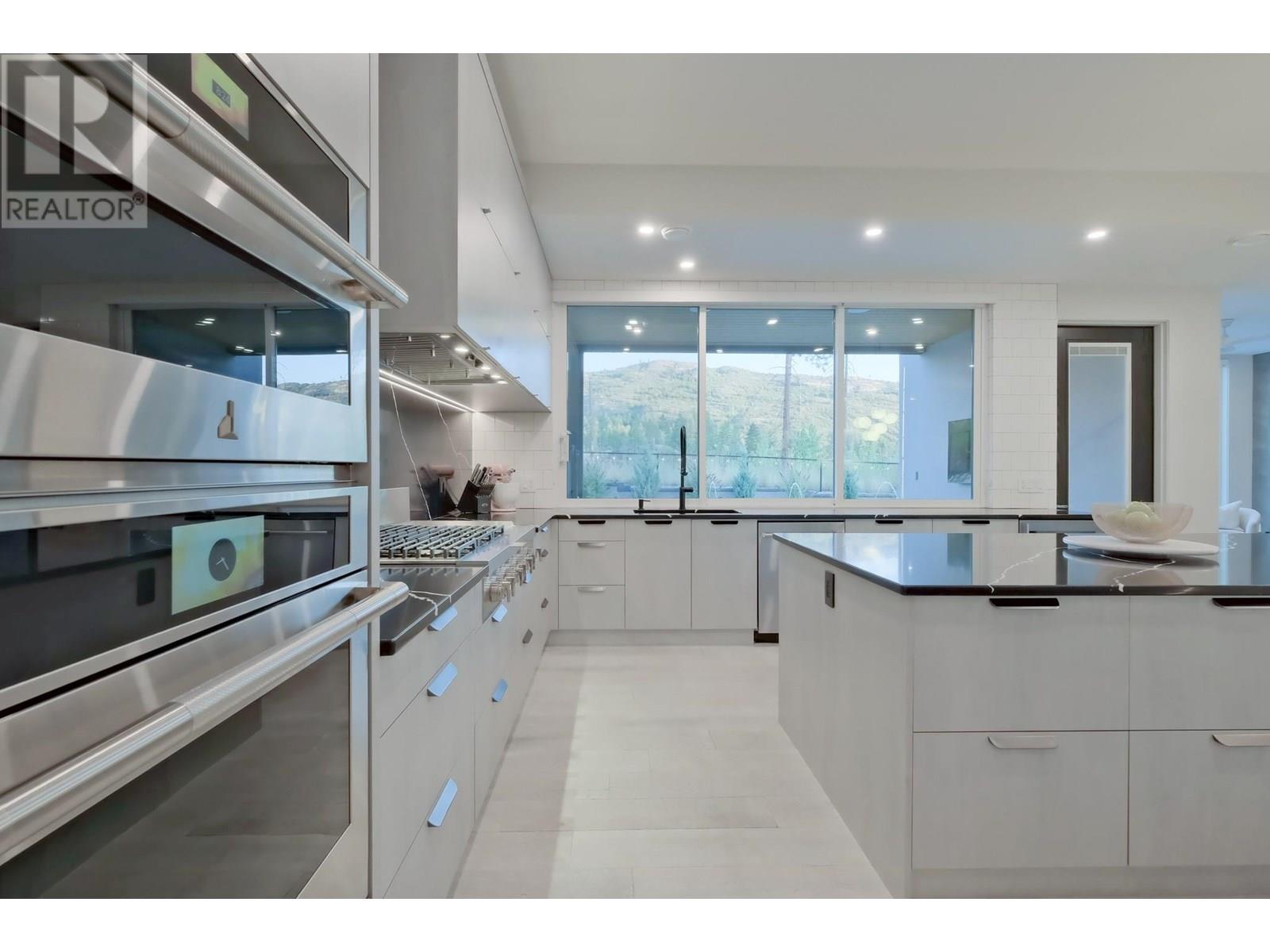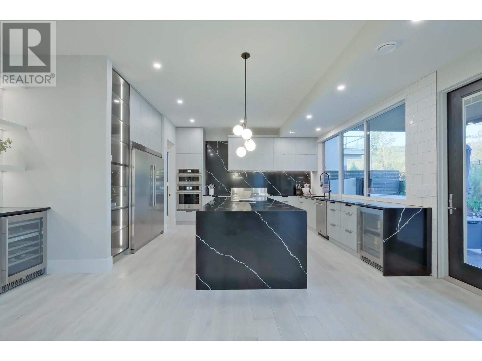 Welcome to your dream home in the desirable Upper Mission offering luxury finishes and every feature imaginable. This elegant property boasts 6 bedrooms, a 16x32 saltwater pool with an auto cover, hot tub, and a chef's kitchen with a pass-through window to the covered patio/BBQ. The upper level features 4 bedrooms (or 3+ family room), including the spacious primary retreat with a private patio, built-in makeup vanity and laundry hamper, and a stunning ensuite complete with a steam shower and freestanding tub. Additionally, there are 3 more bedrooms upstairs, one with its own ensuite, and a full laundry room with ample storage. This exceptional property harmoniously combines luxury and functionality, with eco-friendly features such as solar panels and EV charging, zoned HVAC, a water softener, hide-a-hose vacuum, and hot water on demand. Roughed-in for an elevator. Whether you're relaxing by the pool, entertaining guests on the patio, or enjoying the tranquility of the mountain views through the floor-to-ceiling windows, this property is a true oasis! The spacious heated garage with epoxy floors and an oversized door adds convenience, while the fully fenced low-maintenance yard with artificial turf and landscape lighting enhances the outdoor Okanagan experience. Located within the catchment of some of the city's top schools, close to Mission Village, and steps from hiking/biking trails, this custom home offers every luxury feature and natural surroundings. Like new-NO GST! (id:61840)