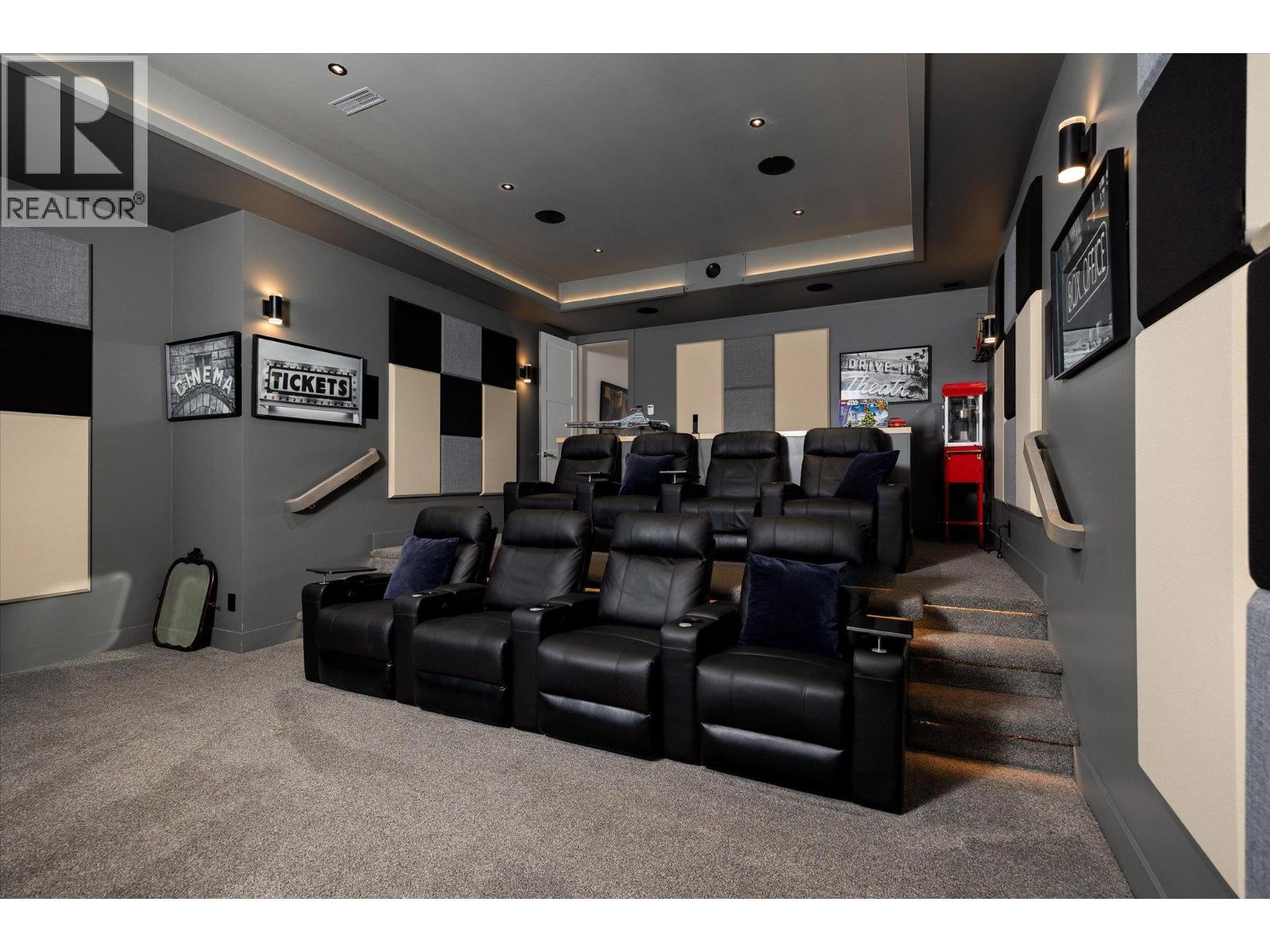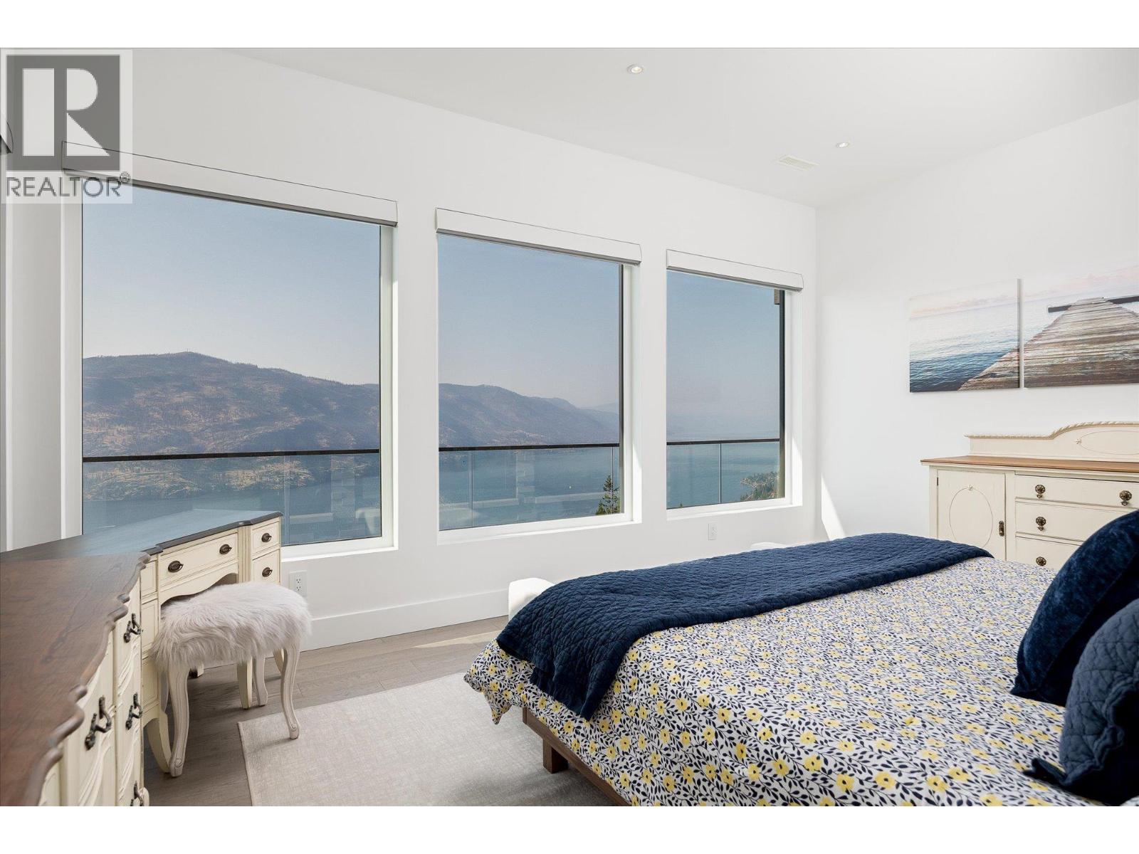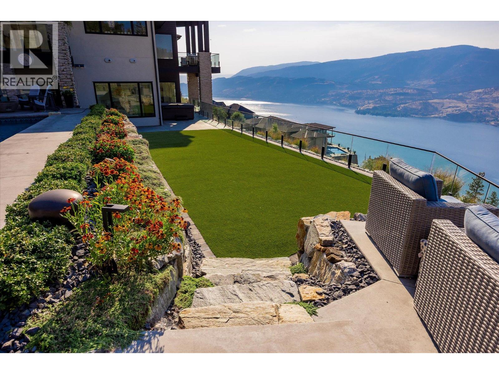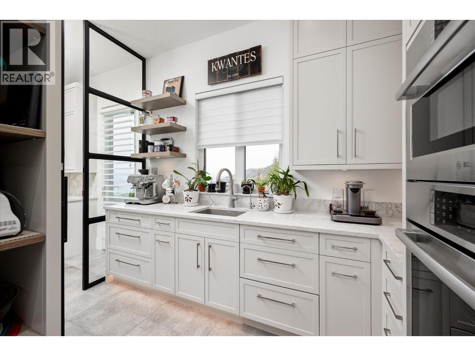 Located in one of Kelowna’s most desirable neighborhoods, this property captures 180-degree panoramic views of the lake and mountains. Set on a quiet cul-de-sac, it offers rare privacy while remaining just minutes from downtown, wineries, golf, restaurants, and all the best of Okanagan living. The open-concept main level seamlessly connects indoor and outdoor living. A chef’s kitchen, designed by Carolyn Walsh, features a Thermador six burner range, two panelled fridges and dishwashers, a panelled freezer along with a striking two-tone island. A new working pantry and custom wine room elevate the home’s entertaining potential. Two primary suites provide private retreats with spectacular lake views. The main-level suite includes a fireplace sitting area and spa-inspired ensuite with a curbless steam shower. The lower-level suite mirrors the same luxury finishes, offering flexibility for guests or family. Designed for entertaining, the lower level also boasts a twelve seat theatre, wet bar, and recreation space, with a separate entrance for guests. Lower level radiant in-floor heating keeps every space warm and inviting. Resort-style outdoor living awaits with a saltwater pool, pool bath, artificial turf yard, and an outdoor kitchen - ideal for summer gatherings. Combining luxury, functionality, and effortless living, this home also grants direct access to Knox Mountain Park and Kelowna’s outdoor lifestyle. With its privacy and breathtaking views, this property delivers the quintessential Okanagan experience. (id:61840)