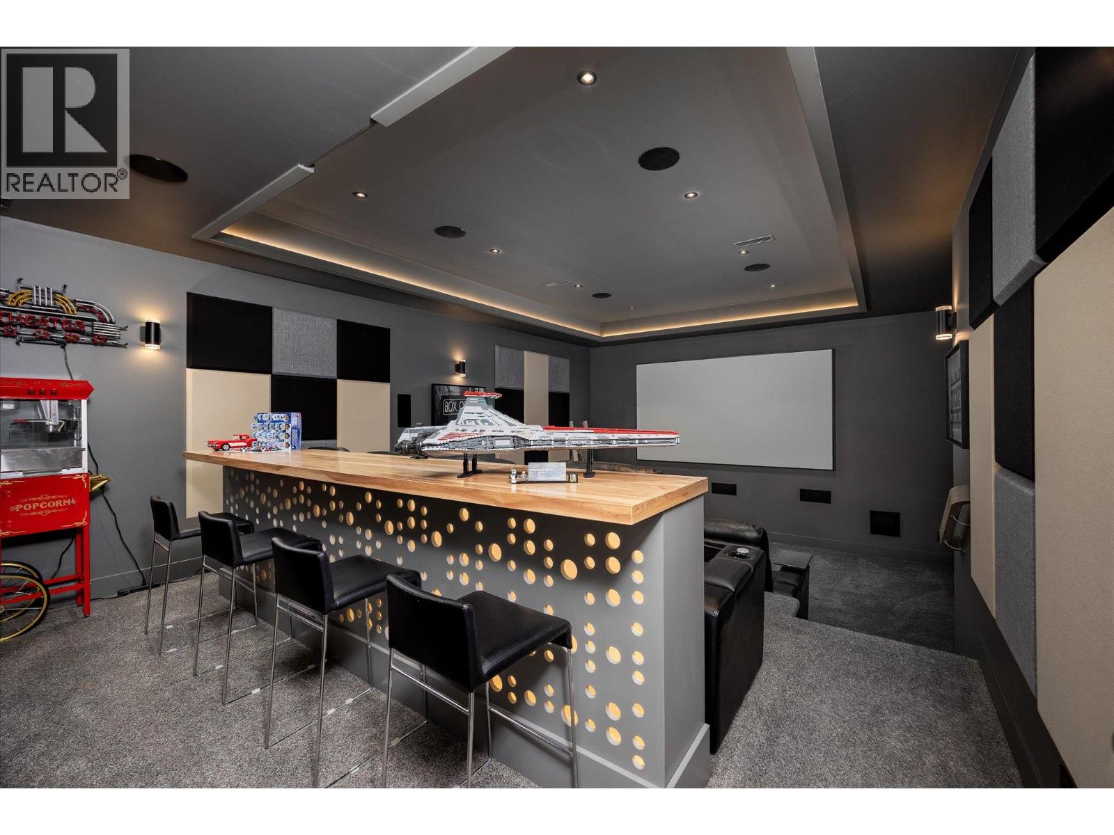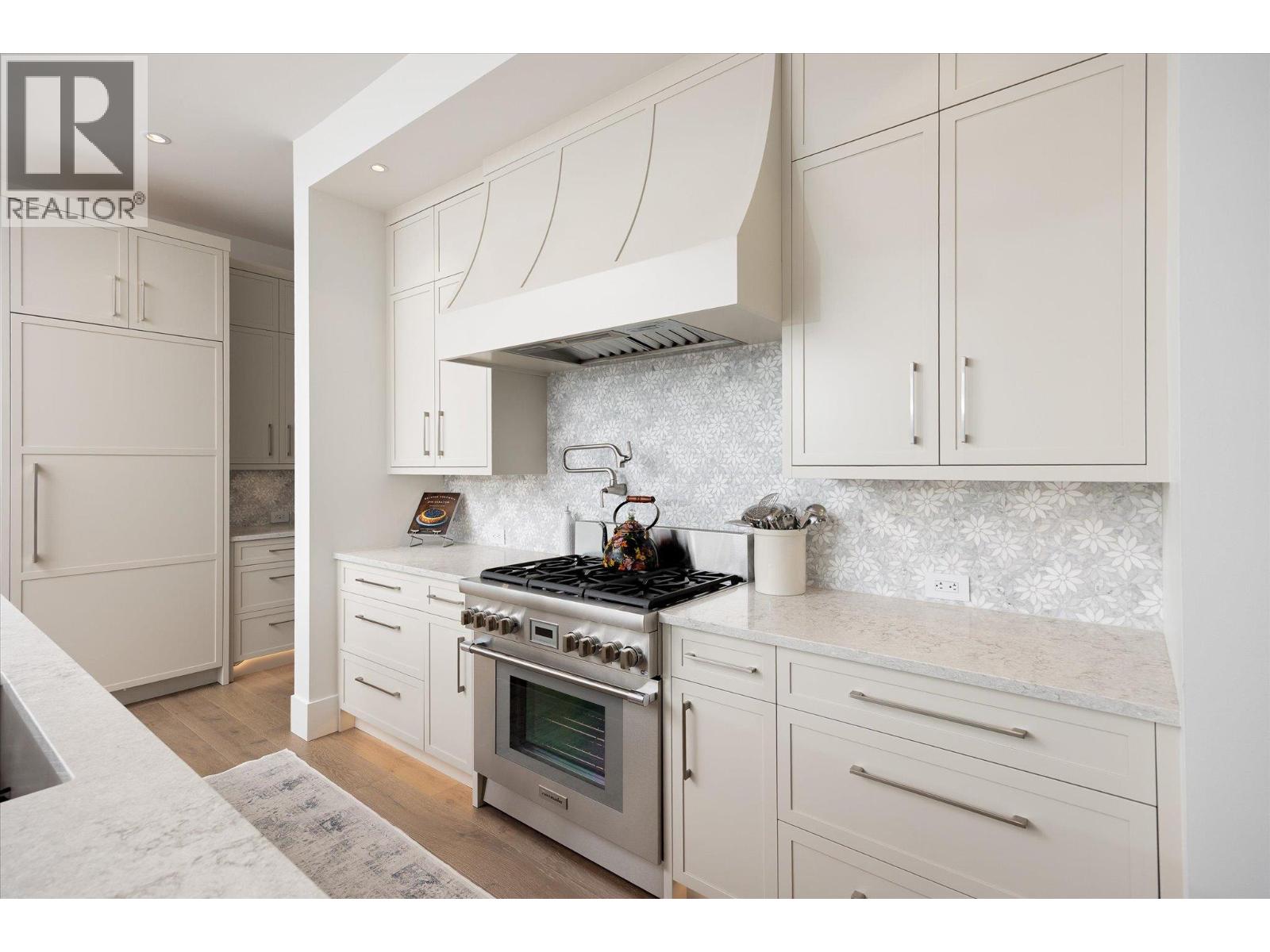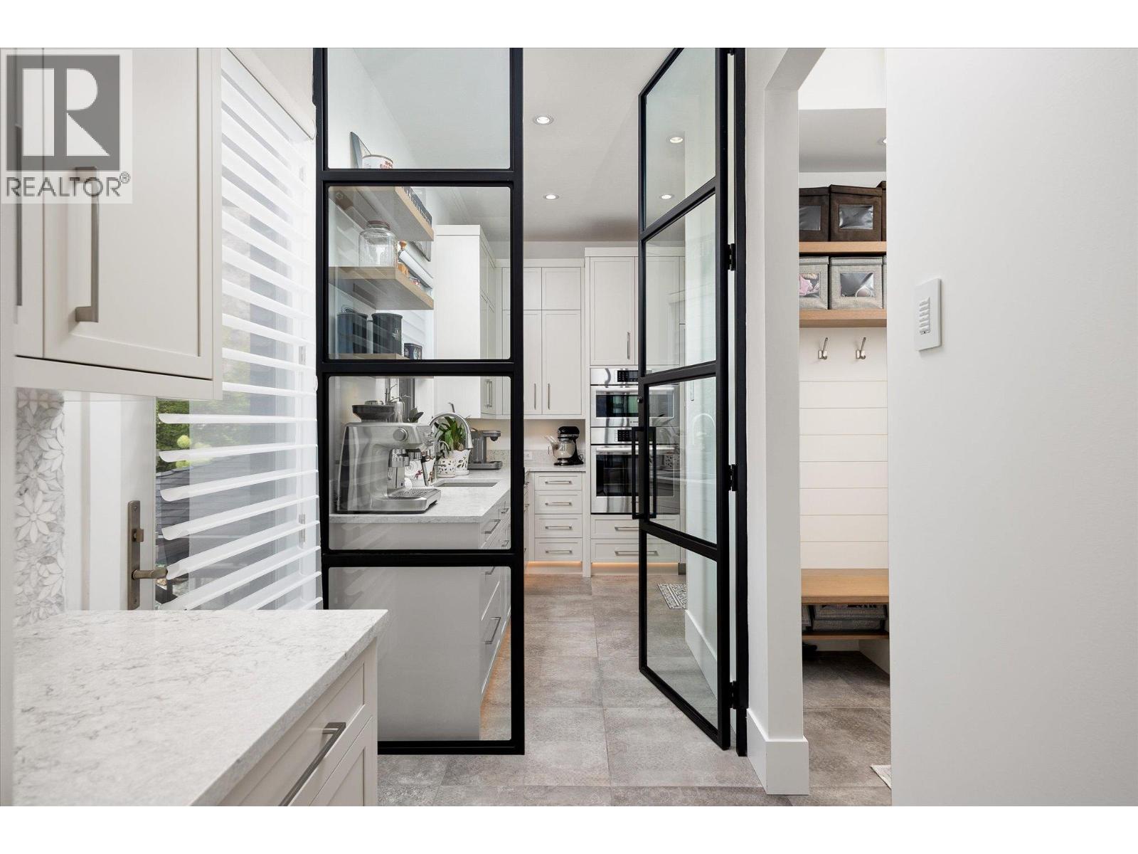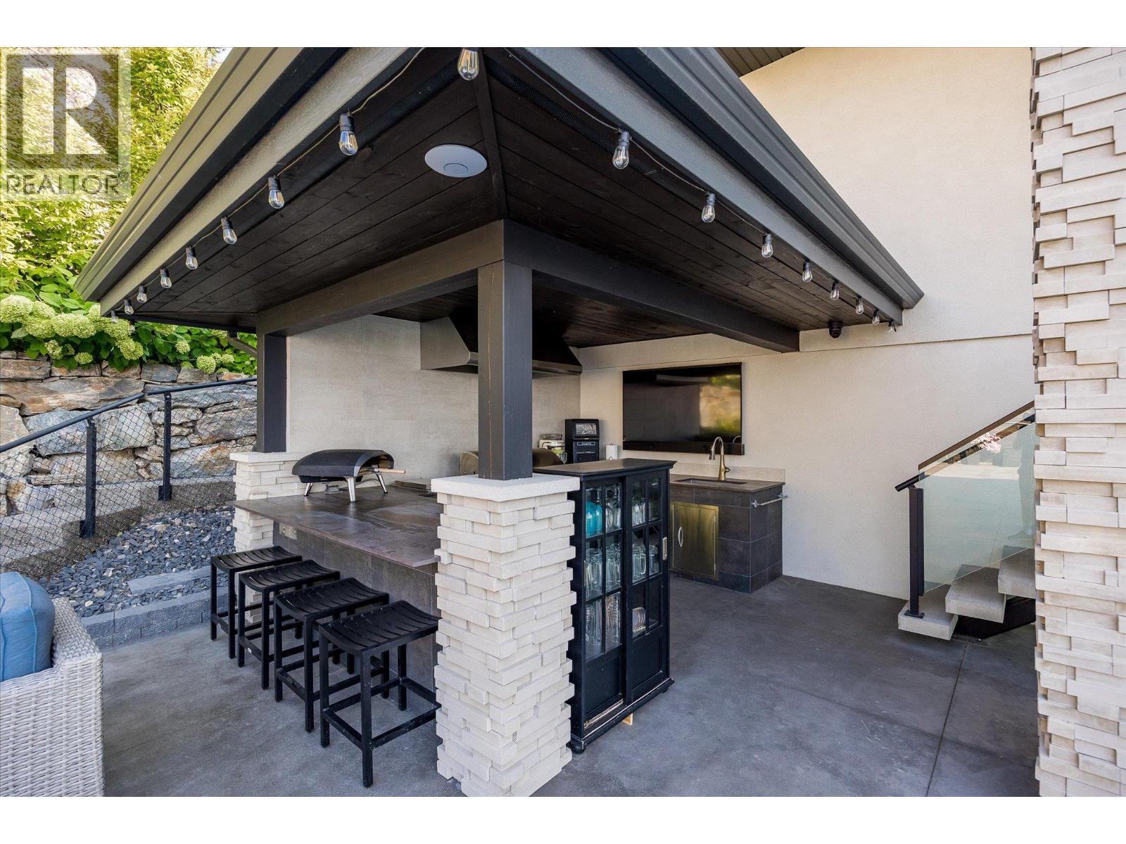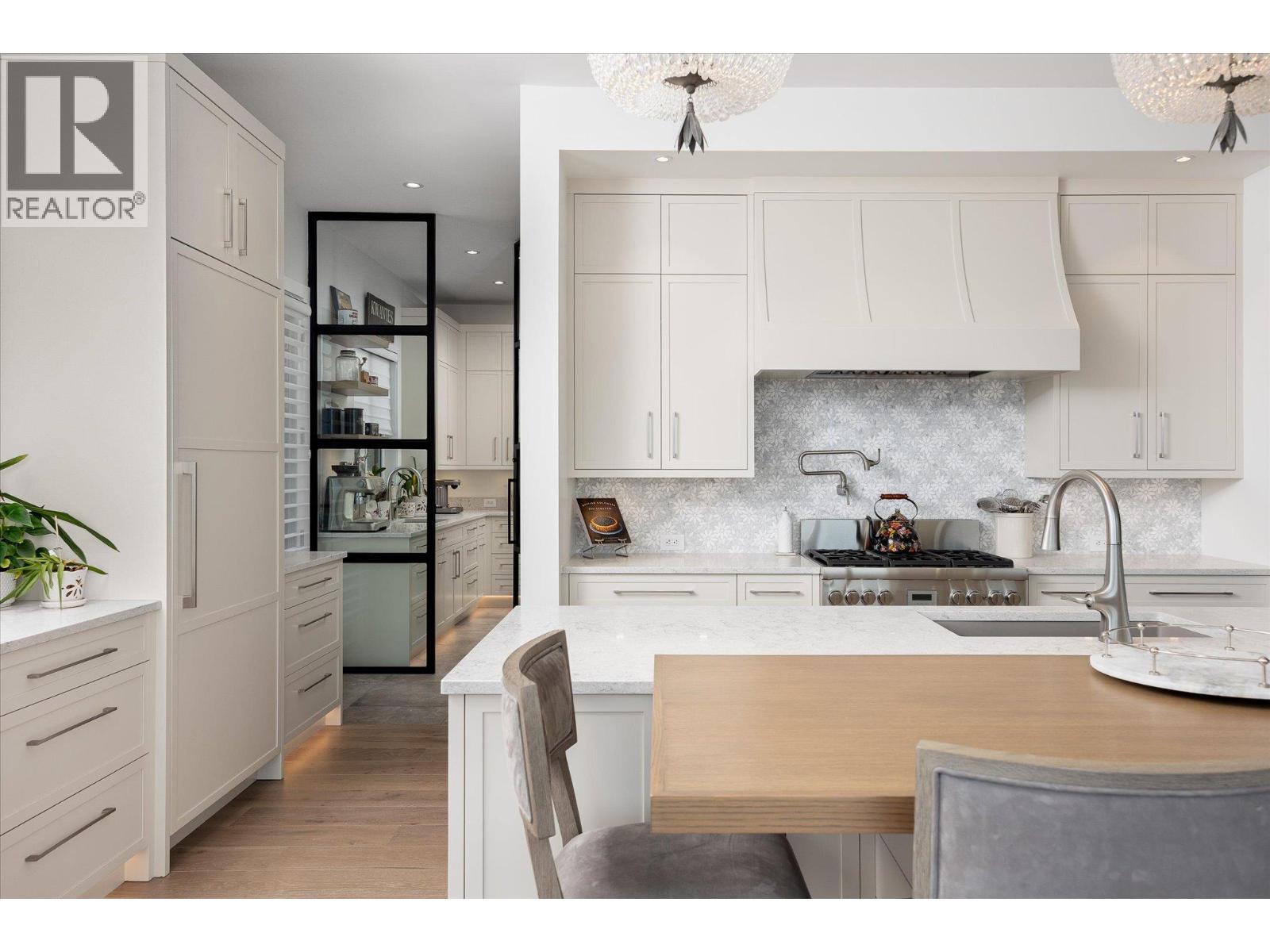 Located in one of Kelowna’s most desirable neighborhoods, this property captures 180-degree panoramic views of the lake and mountains. Set on a quiet cul-de-sac, it offers rare privacy while remaining just minutes from downtown, wineries, golf, restaurants, and all the best of Okanagan living. The open-concept main level seamlessly connects indoor and outdoor living. A chef’s kitchen, designed by Carolyn Walsh, features a Thermador six burner range, two panelled fridges and dishwashers, a panelled freezer along with a striking two-tone island. A new working pantry and custom wine room elevate the home’s entertaining potential. Two primary suites provide private retreats with spectacular lake views. The main-level suite includes a fireplace sitting area and spa-inspired ensuite with a curbless steam shower. The lower-level suite mirrors the same luxury finishes, offering flexibility for guests or family. Designed for entertaining, the lower level also boasts a twelve seat theatre, wet bar, and recreation space, with a separate entrance for guests. Lower level radiant in-floor heating keeps every space warm and inviting. Resort-style outdoor living awaits with a saltwater pool, pool bath, artificial turf yard, and an outdoor kitchen - ideal for summer gatherings. Combining luxury, functionality, and effortless living, this home also grants direct access to Knox Mountain Park and Kelowna’s outdoor lifestyle. With its privacy and breathtaking views, this property delivers the quintessential Okanagan experience. (id:61840)