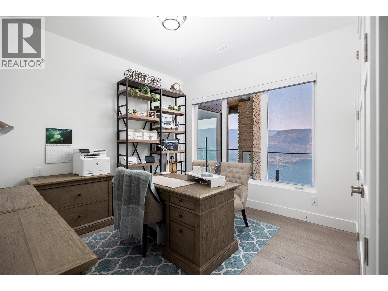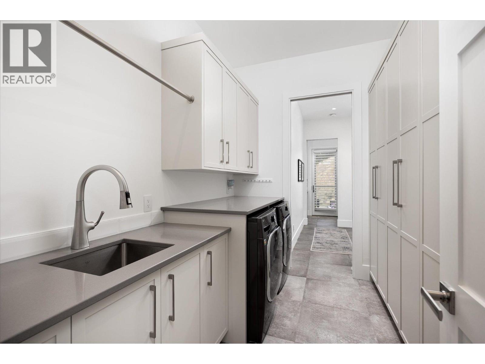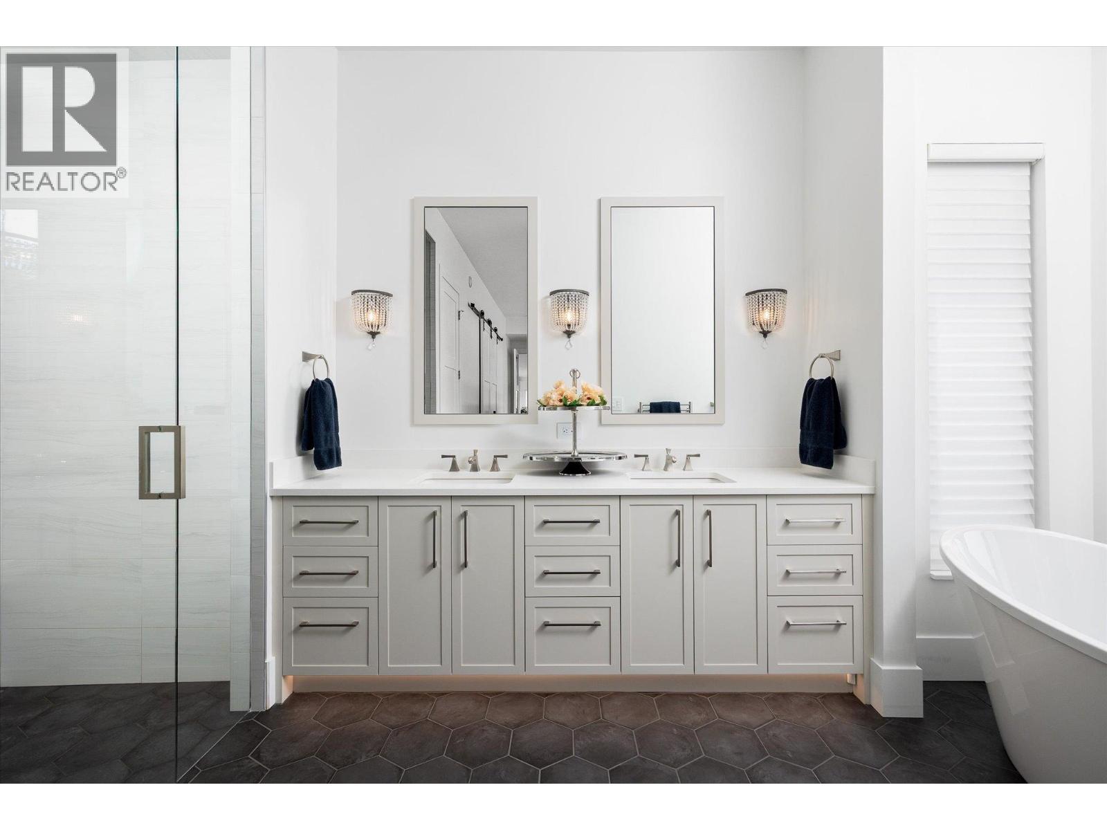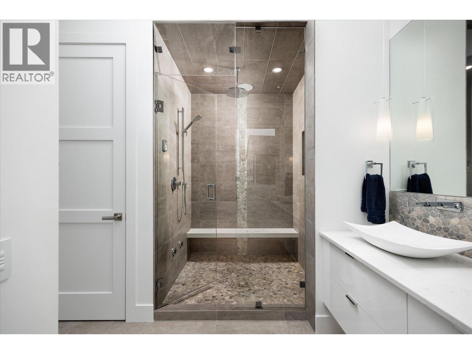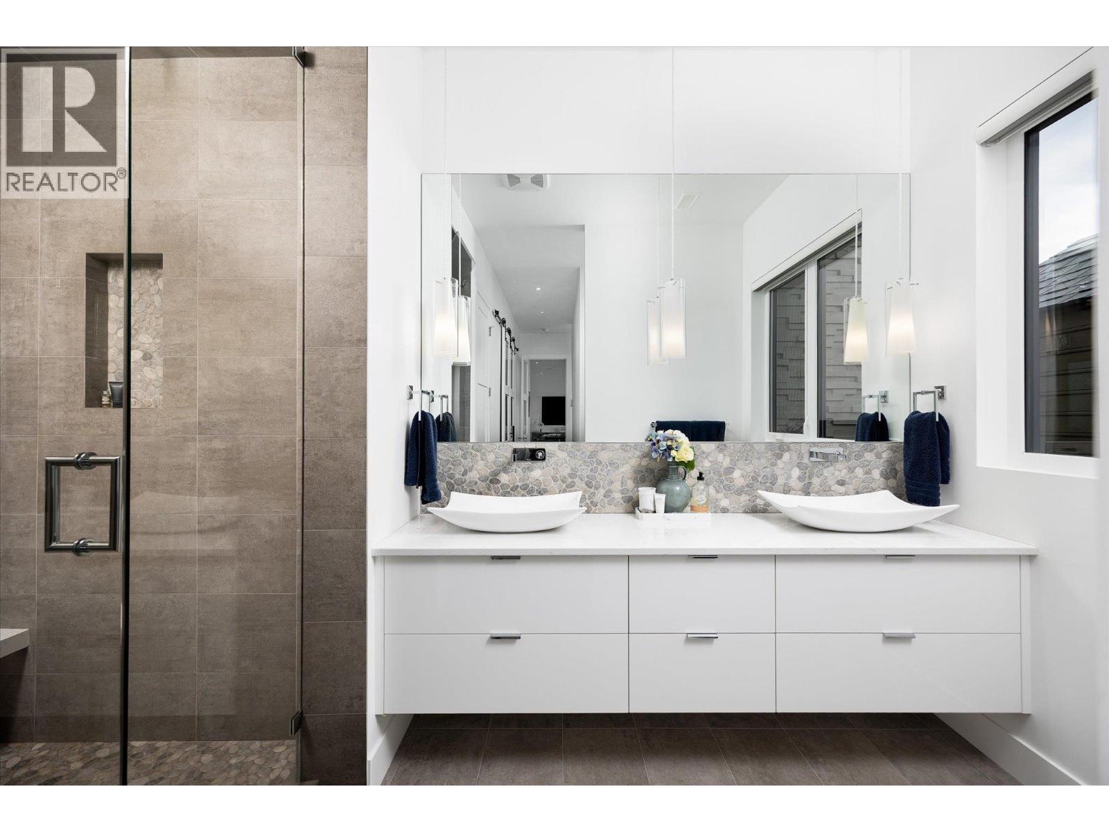 Located in one of Kelowna’s most desirable neighborhoods, this property captures 180-degree panoramic views of the lake and mountains. Set on a quiet cul-de-sac, it offers rare privacy while remaining just minutes from downtown, wineries, golf, restaurants, and all the best of Okanagan living. The open-concept main level seamlessly connects indoor and outdoor living. A chef’s kitchen, designed by Carolyn Walsh, features a Thermador six burner range, two panelled fridges and dishwashers, a panelled freezer along with a striking two-tone island. A new working pantry and custom wine room elevate the home’s entertaining potential. Two primary suites provide private retreats with spectacular lake views. The main-level suite includes a fireplace sitting area and spa-inspired ensuite with a curbless steam shower. The lower-level suite mirrors the same luxury finishes, offering flexibility for guests or family. Designed for entertaining, the lower level also boasts a twelve seat theatre, wet bar, and recreation space, with a separate entrance for guests. Lower level radiant in-floor heating keeps every space warm and inviting. Resort-style outdoor living awaits with a saltwater pool, pool bath, artificial turf yard, and an outdoor kitchen - ideal for summer gatherings. Combining luxury, functionality, and effortless living, this home also grants direct access to Knox Mountain Park and Kelowna’s outdoor lifestyle. With its privacy and breathtaking views, this property delivers the quintessential Okanagan experience. (id:61840)