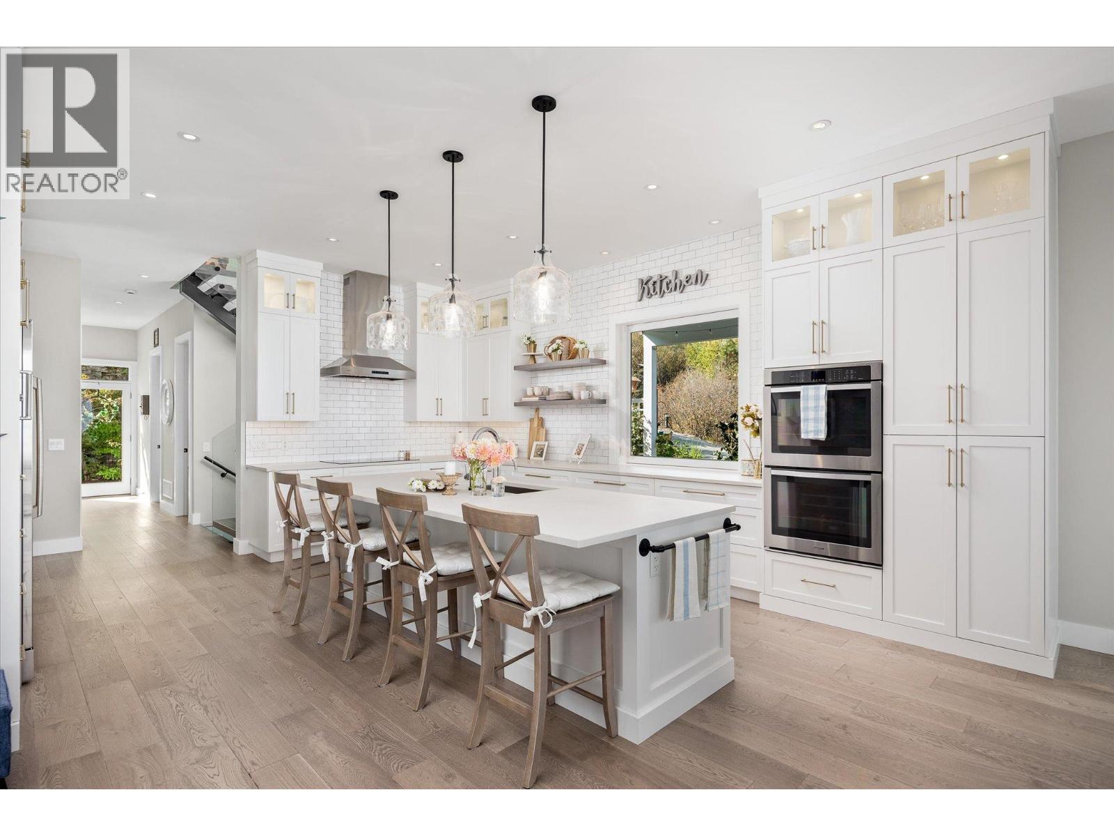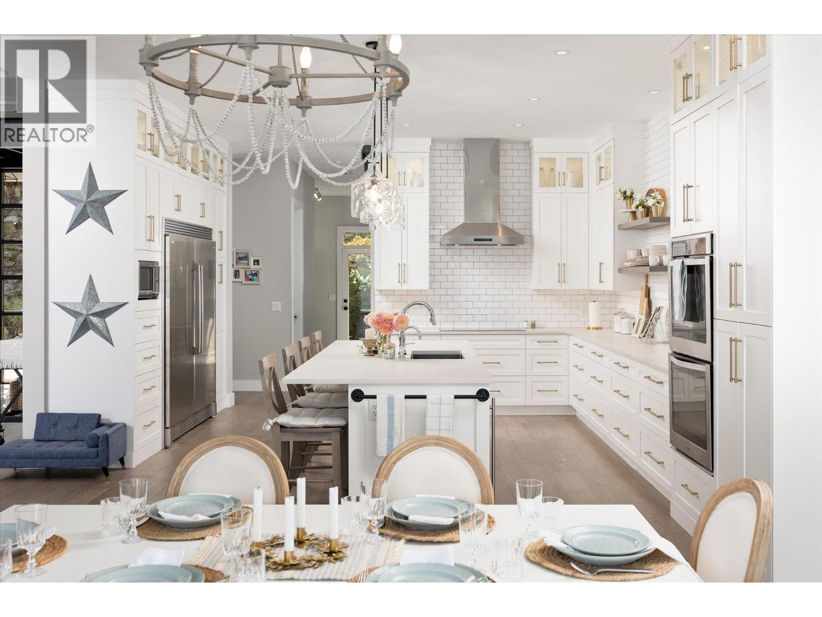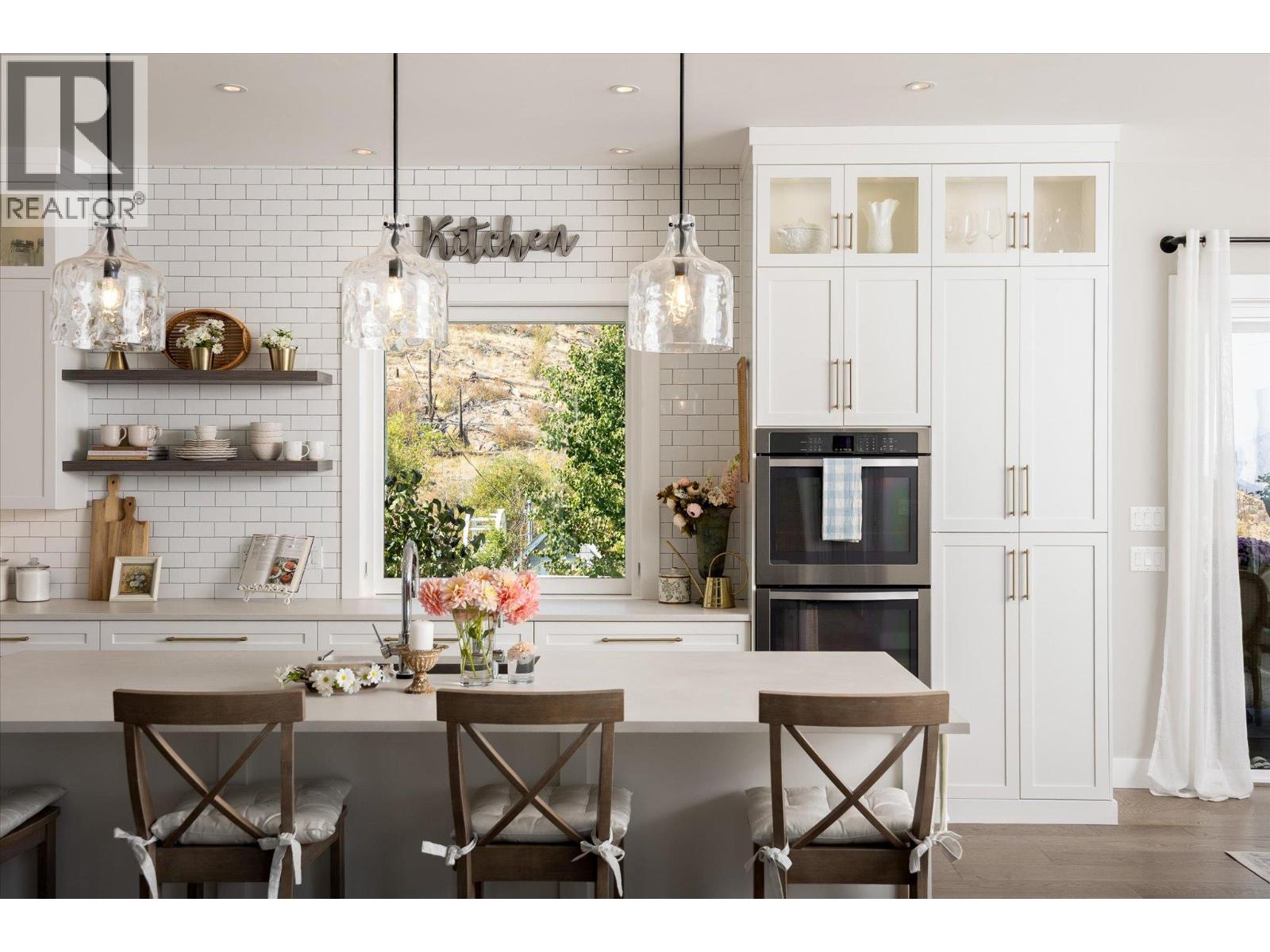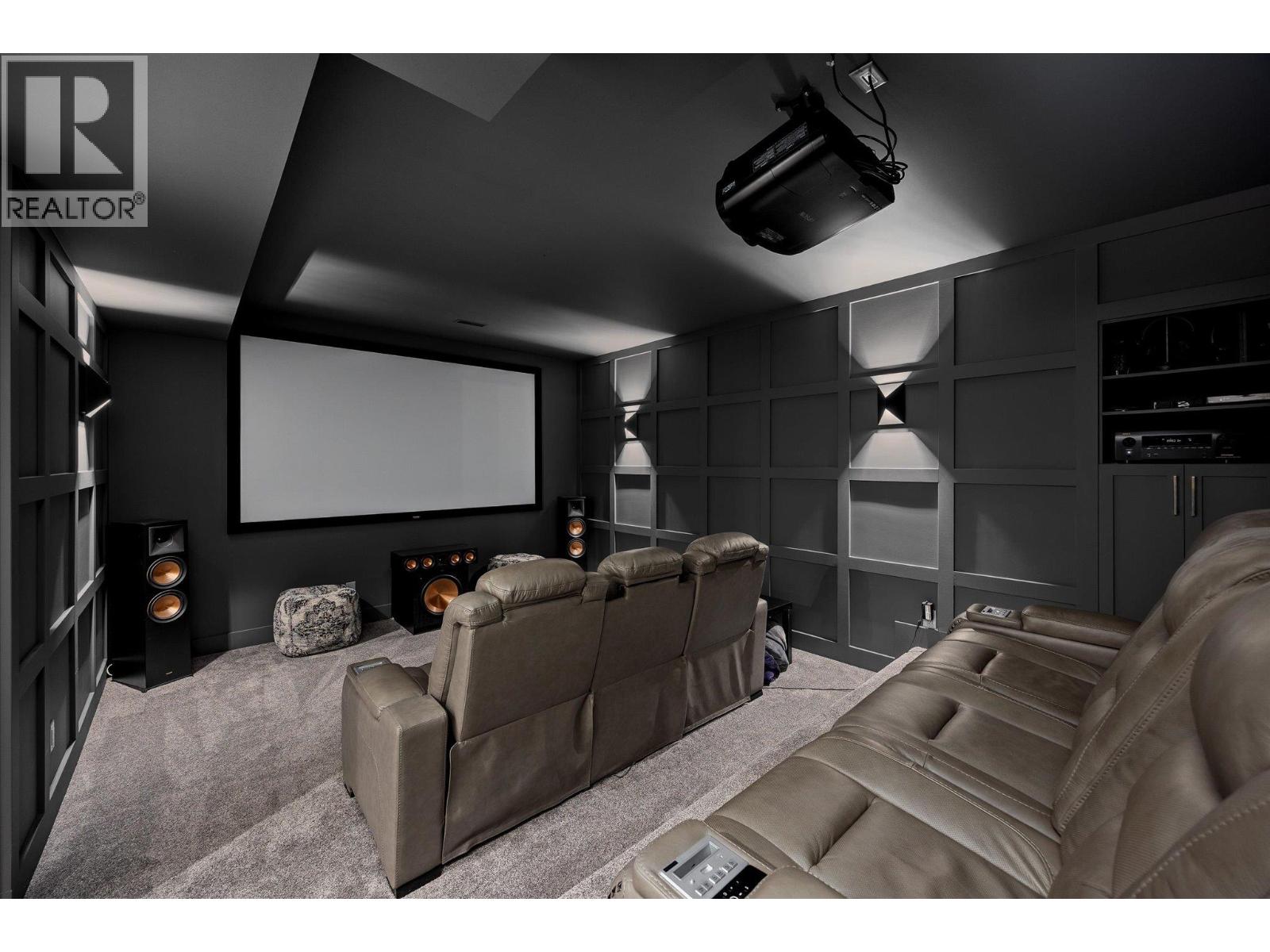 The best view in Kelowna. 2019-built 4 bedroom, 5 bathroom, 5,100+ square foot Modern Hamptons residence perched on a 5.129-acre lot in the Upper Mission area of Kelowna! Upon entering the property, you're greeted with your substantive driveway that carves through the rock, creating a unique estate feel. The grounds include substantial mature landscaping, a custom greenhouse/garden area, a large 30'x60' open-air structure at the top of the property (Wedding venue, workshop conversion, greenhouse, etc), a waterfall & pond feature at your central entry, and several raised planter bed areas; a rare property where even the garden gets a view. Upon entering the home, you are greeted with soaring 20' ceilings in the living room that flow straight ahead to the infinity pool that blends into Okanagan Lake ahead. The main floor offers this stunning living room, a kitchen with a pass-through to the outdoor BBQ area, and a dining room with perfect indoor/outdoor transitions. The master on the main offers the same panoramic views, and a 5-piece private ensuite. The main floor is finished off with a powder room, laundry, and an additional bedroom/office. Upstairs via the floating staircase are two complete master bedrooms with their own en-suites, as well as a private ""perch"" one further level up as a viewpoint. Downstairs, there is a tandem-car garage and a full recreation room that features a bar, room for a pool table, a full bathroom, and a private, fully outfitted theatre room. Outdoor amenities include the covered deck with heaters, BBQ area, hot-tub, tiled infinity pool, and sunken fire pit with seating area. This property uniquely has the modern features of a high-end residence but with 5+ acres, stunning views, full privacy, and extras like the detached structure, and plenty of uncovered parking. (id:61840)