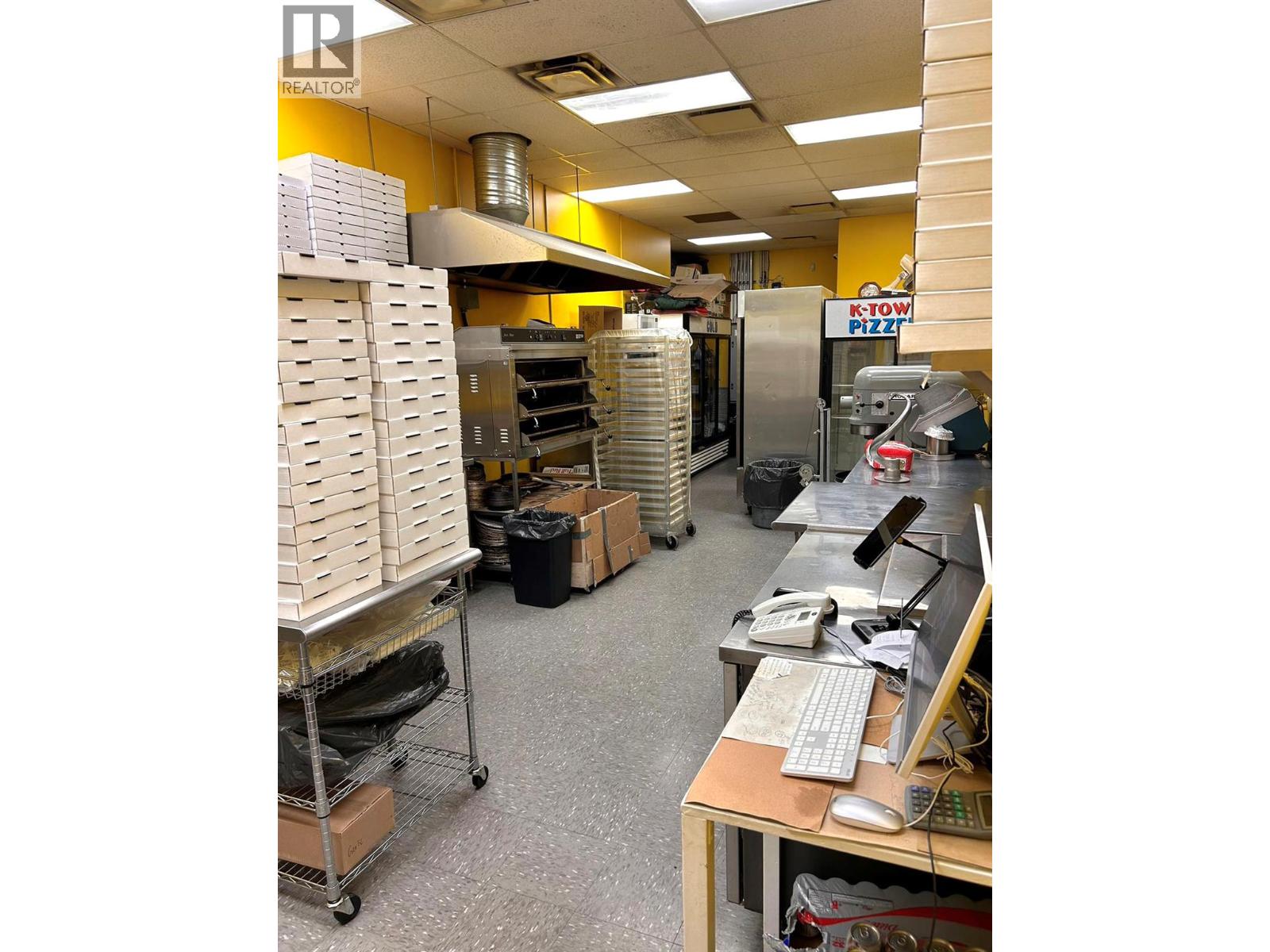 Great pizza restaurant business K-Town Pizzeria for sale in a prime central location near Downtown and the new UBCO campus. Excellent HWY 97 signage exposure. This easy-to-operate establishment boasts solid sales track record and a favorable lease agreement. It comes equipped with high-quality equipment and operates for both lunch and dinner, benefiting from ample free plaza parking. This is a great opportunity for young entrepreneurs, family business, or investors. Business and financial details are available to qualified buyers upon signing an NDA. Please do not approach the staff directly. If you would like to view the kitchen, kindly book an appointment with the listing agent. Thank you. (id:61840)