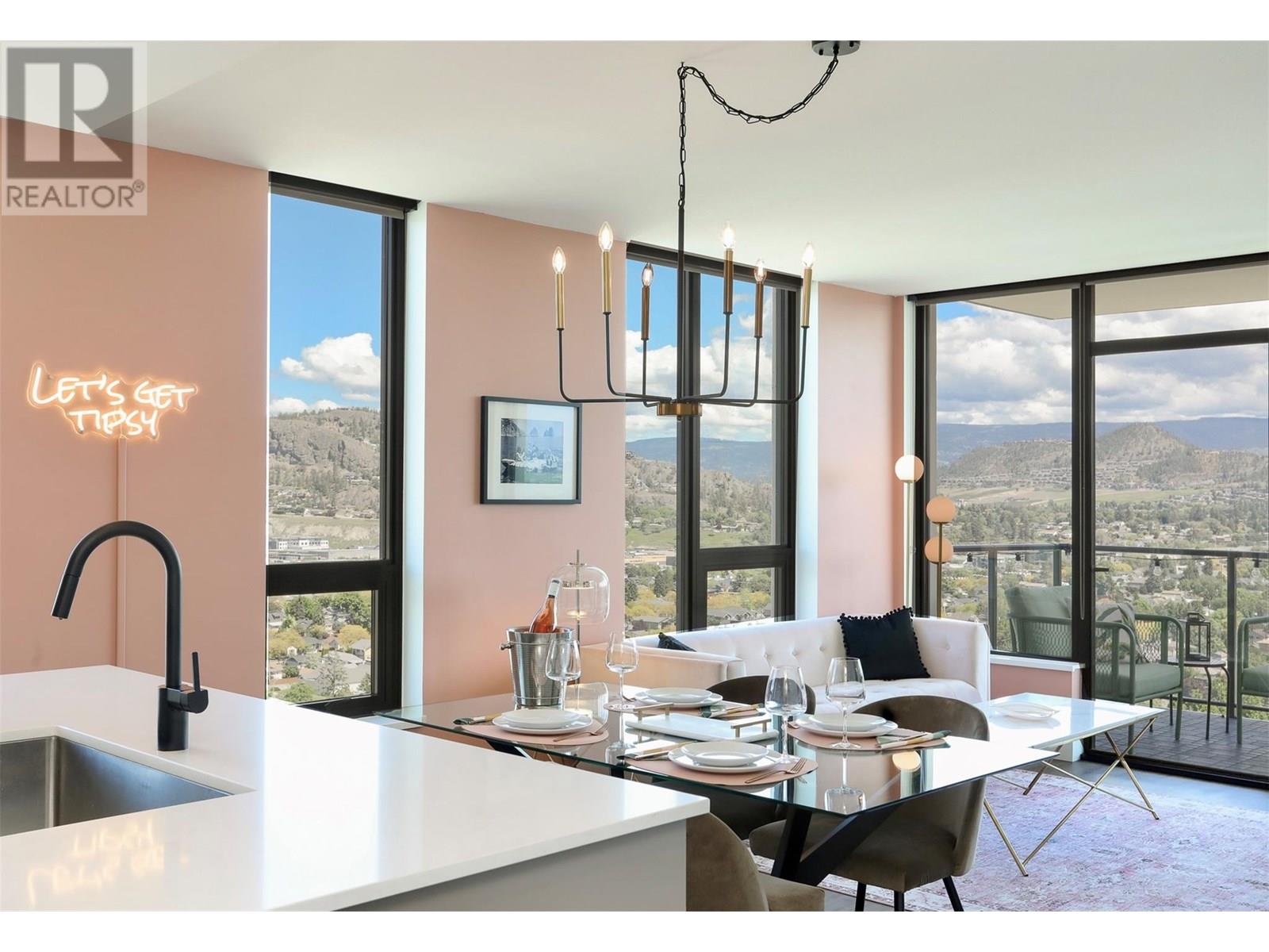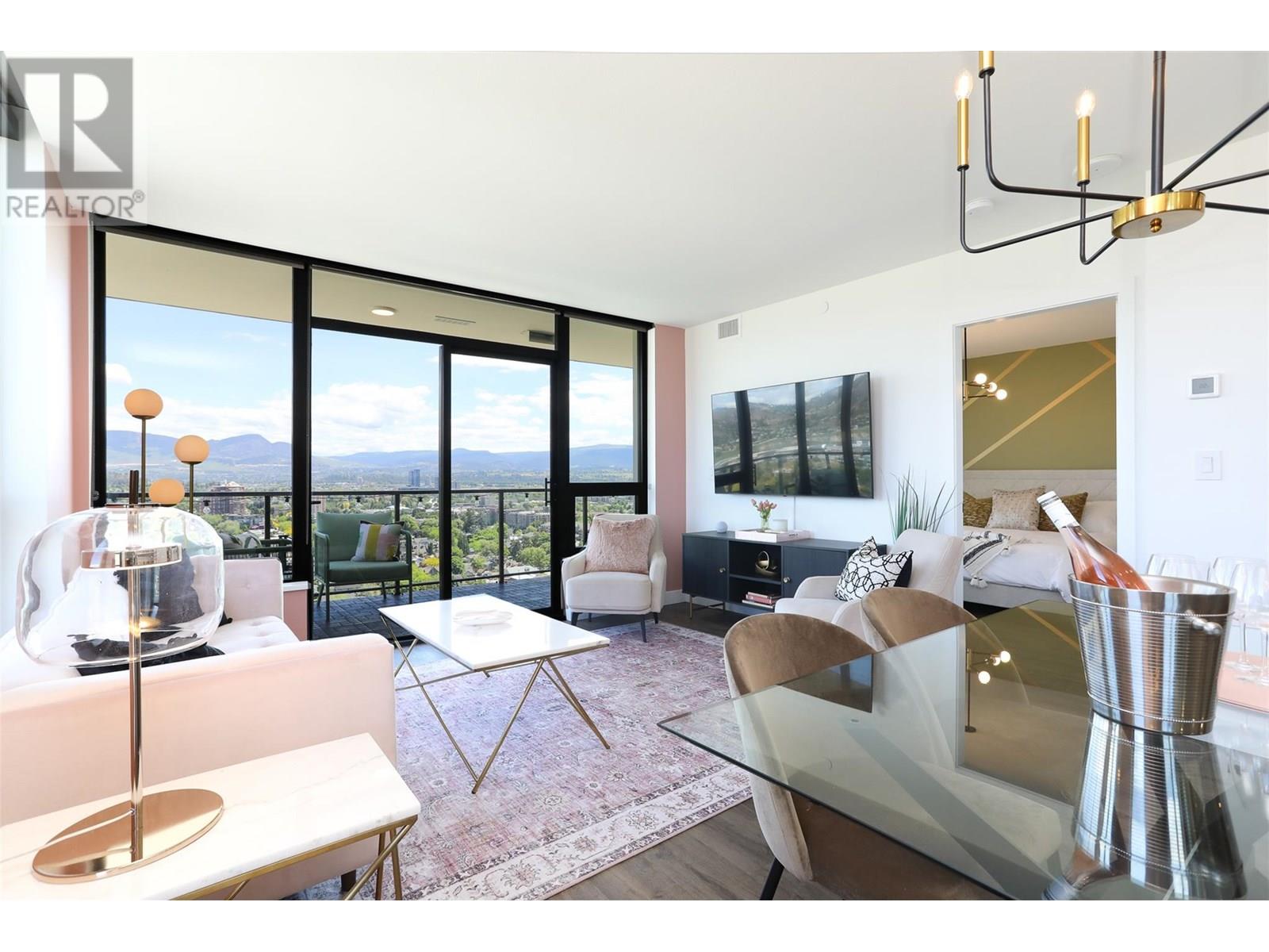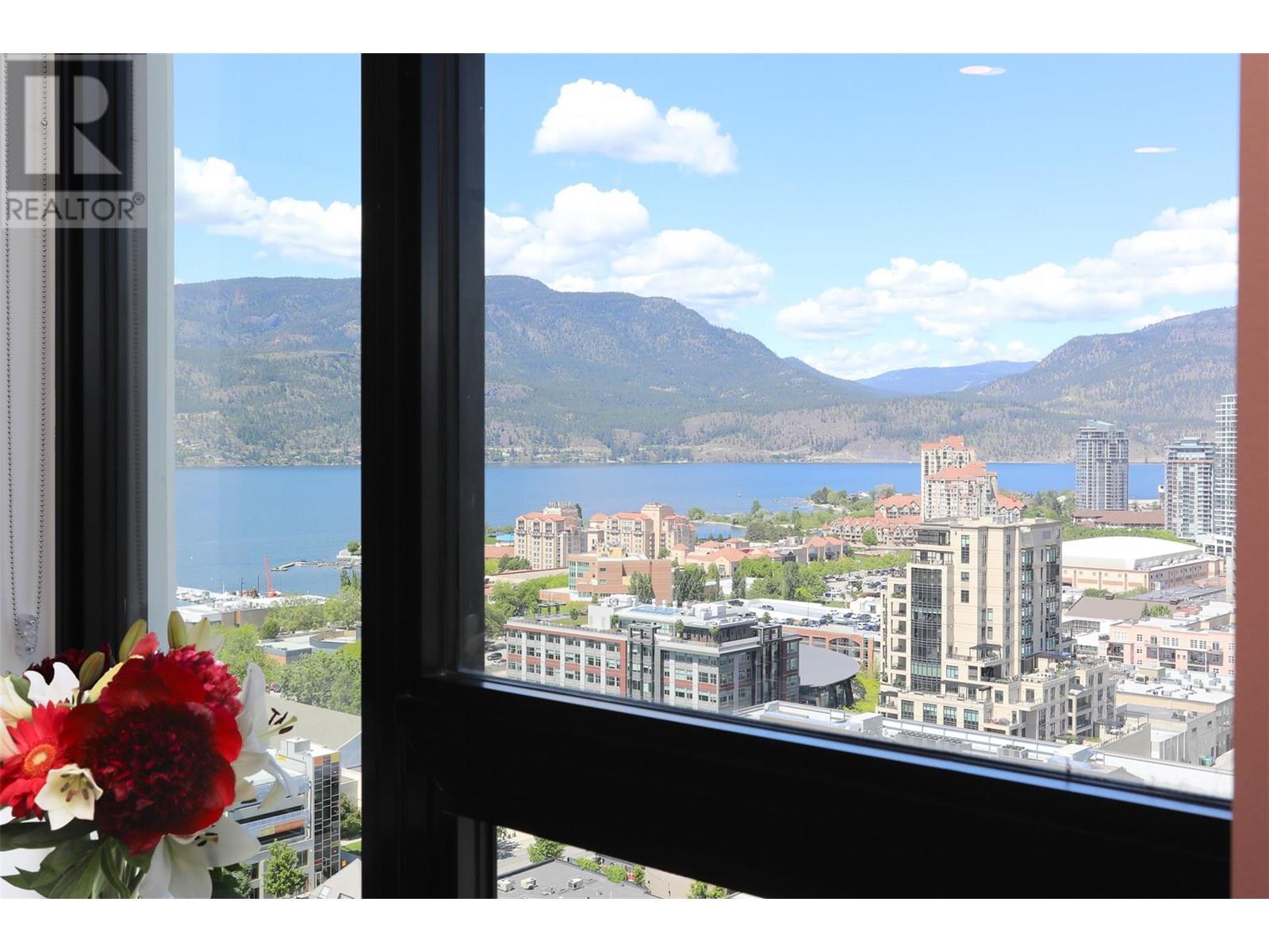 $608.04 MonthlySUB-PENTHOUSE. TWO PARKING. VIEWS. | This exceptional 2-bedroom, 2-ensuite corner suite sits on the sub-penthouse level of Brooklyn, a landmark 23-storey concrete tower by Mission Group in the heart of downtown Kelowna. With over 930 sq. ft. of interior living and a 152 sq. ft. covered patio, this home captures breathtaking lake, mountain, and city views from nearly every angle. Designed for both style and functionality, the residence features smart home integration, modern cabinetry, quality appliances, and an intelligent layout that maximizes light and privacy. As one of the only units with two secured parking stalls, this is a rare and valuable offering in the downtown core. Brooklyn blends urban convenience with lasting quality - solid concrete construction ensures enhanced soundproofing and long-term durability. Located in the lively Bernard District, you’re just steps from Kelowna’s best restaurants, cafes, breweries, boutiques, and the waterfront. With a Walk Score of 98, daily errands and adventures are all within reach. Residents enjoy premium amenities including a rooftop terrace with panoramic views, a Club Lounge, BBQ area, and pet-friendly features like a dog wash station and access to dog beaches nearby. Whether you're seeking a stylish primary home, luxury down-sizer, or performing investment, this residence delivers downtown living at its finest. EXCEPTIONAL PRICE FOR THIS OFFERING. (id:61840)