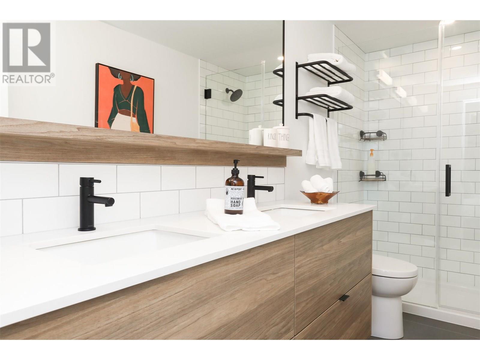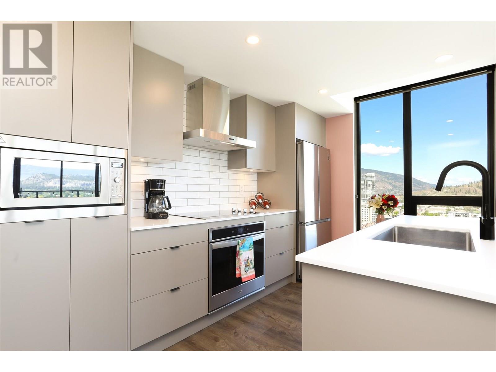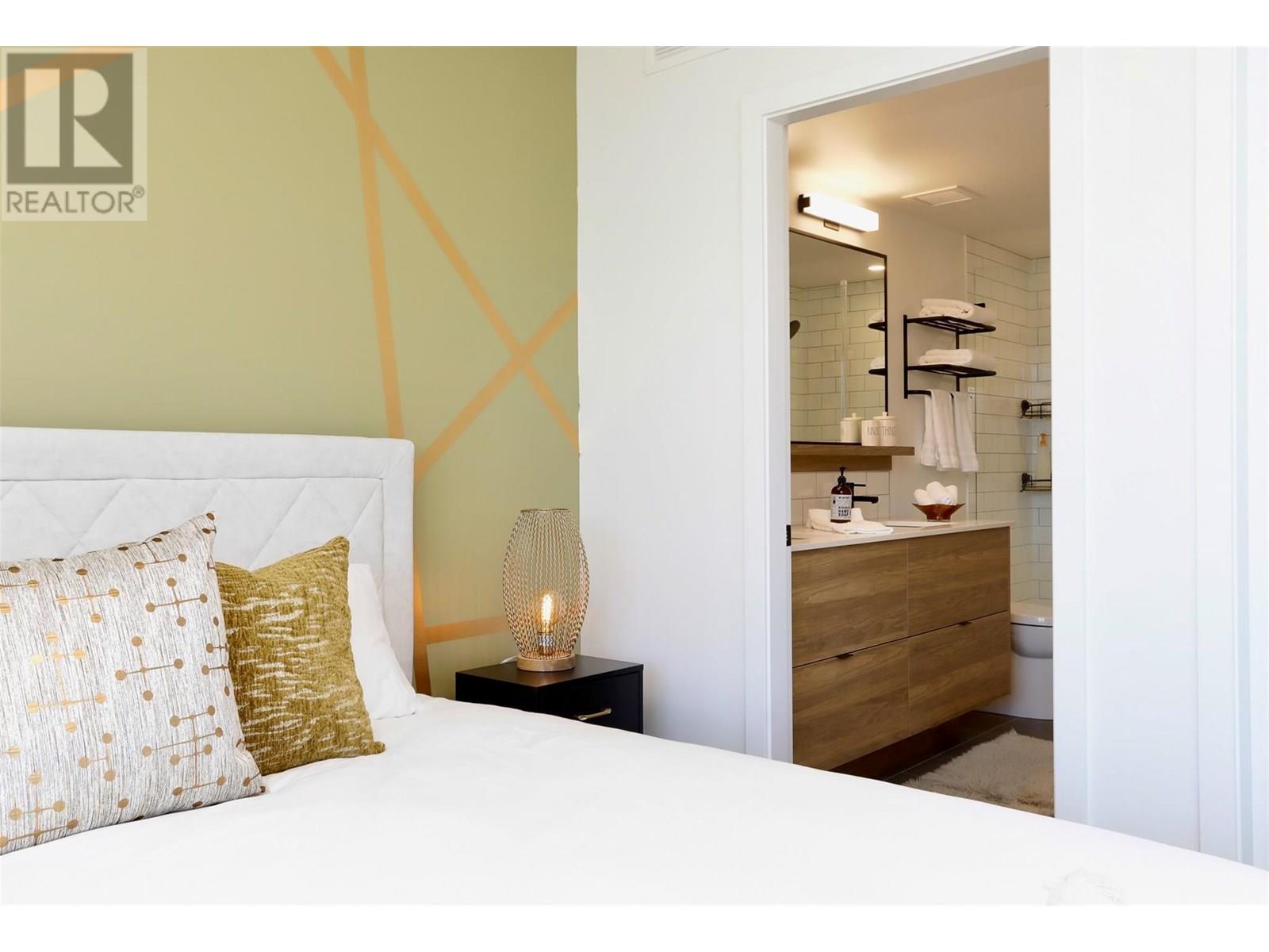 $608.04 MonthlySUB-PENTHOUSE. TWO PARKING. VIEWS. | This exceptional 2-bedroom, 2-ensuite corner suite sits on the sub-penthouse level of Brooklyn, a landmark 23-storey concrete tower by Mission Group in the heart of downtown Kelowna. With over 930 sq. ft. of interior living and a 152 sq. ft. covered patio, this home captures breathtaking lake, mountain, and city views from nearly every angle. Designed for both style and functionality, the residence features smart home integration, modern cabinetry, quality appliances, and an intelligent layout that maximizes light and privacy. As one of the only units with two secured parking stalls, this is a rare and valuable offering in the downtown core. Brooklyn blends urban convenience with lasting quality - solid concrete construction ensures enhanced soundproofing and long-term durability. Located in the lively Bernard District, you’re just steps from Kelowna’s best restaurants, cafes, breweries, boutiques, and the waterfront. With a Walk Score of 98, daily errands and adventures are all within reach. Residents enjoy premium amenities including a rooftop terrace with panoramic views, a Club Lounge, BBQ area, and pet-friendly features like a dog wash station and access to dog beaches nearby. Whether you're seeking a stylish primary home, luxury down-sizer, or performing investment, this residence delivers downtown living at its finest. EXCEPTIONAL PRICE FOR THIS OFFERING. (id:61840)
