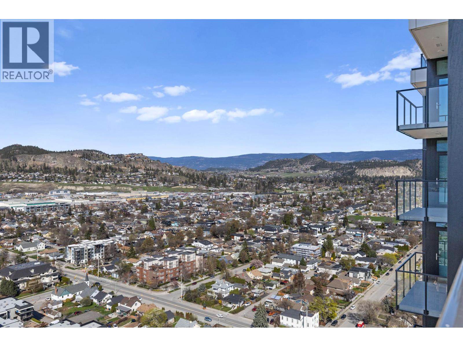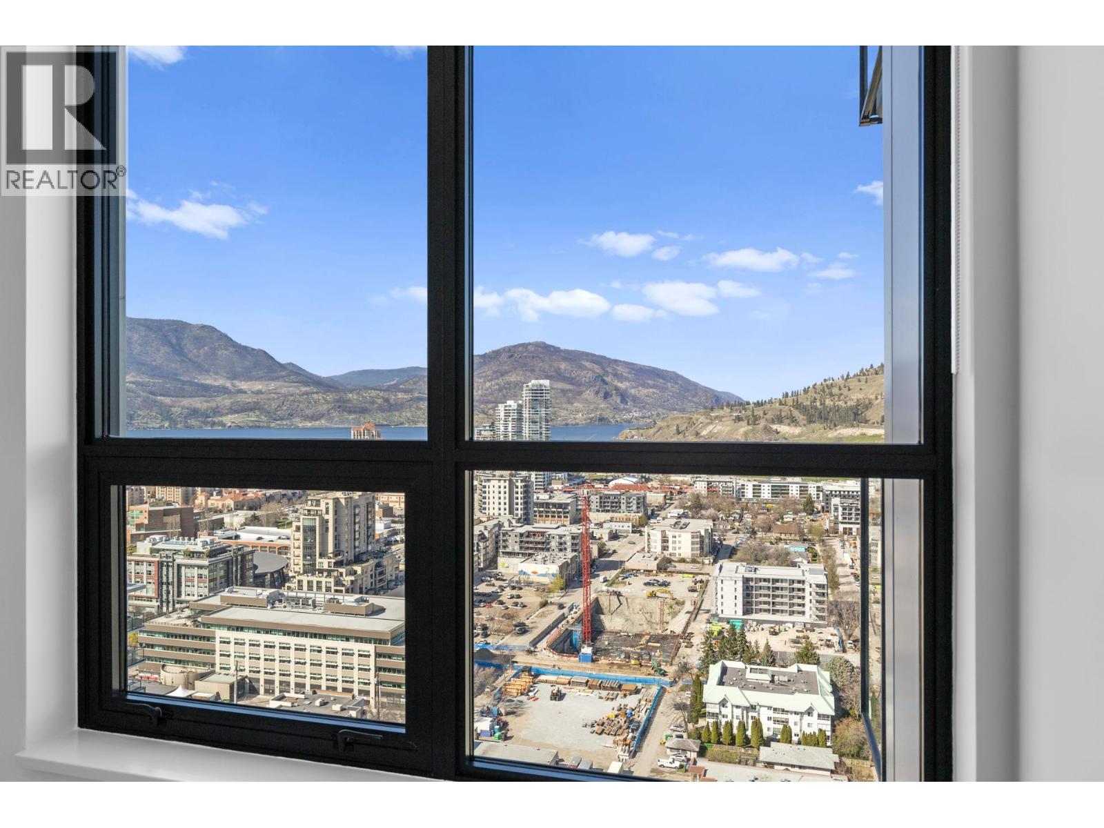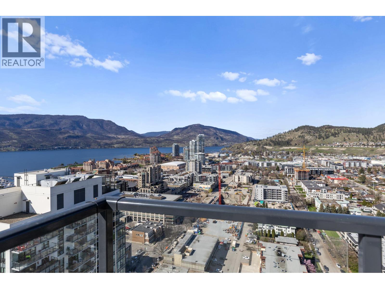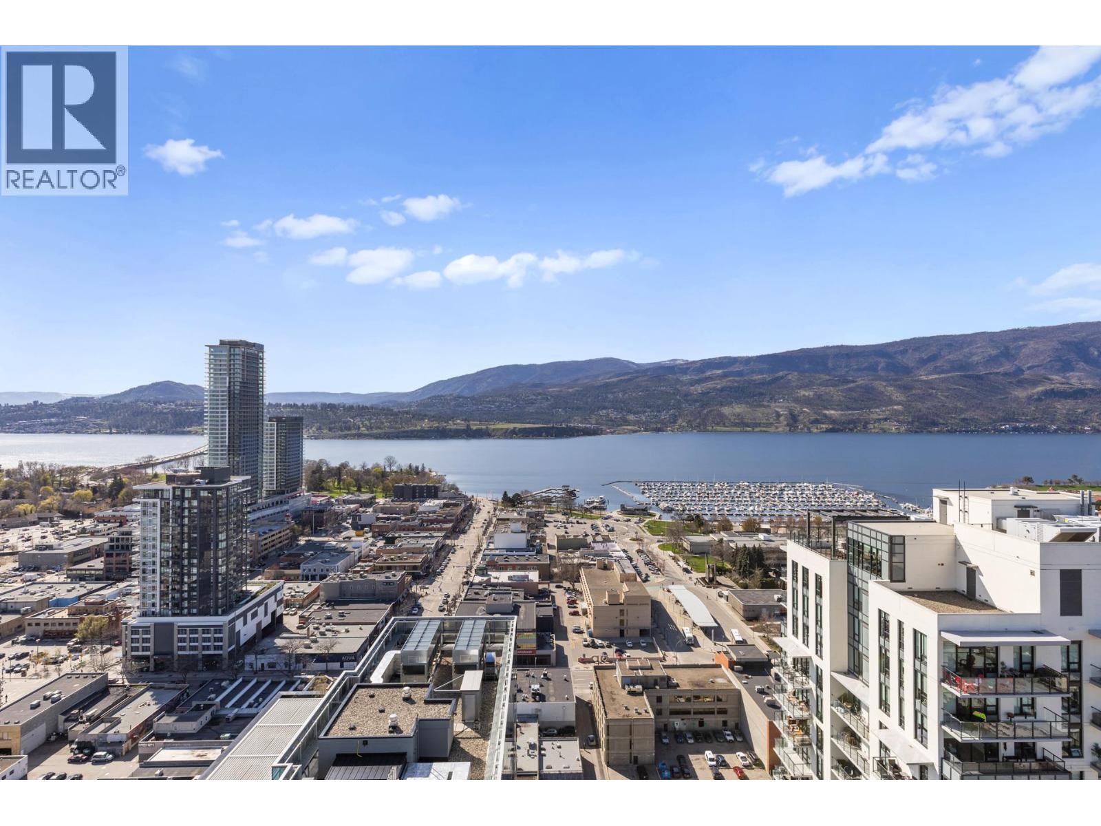 $527.13 MonthlyWelcome to Bertram at Bernard Block, the Heart of Downtown Kelowna - incredible value for stunning views, with the option to add a second parking stall. This gorgeous northwest corner home offers breathtaking, unobstructed views of the lake, city, mountains. With approx. 865 square feet of interior living space, this thoughtfully designed home feat. expansive windows, spacious balcony, and modern warm color scheme that complements the natural beauty of the Okanagan. The gourmet kitchen boasts quartz countertops, stainless steel appliances & flat-panel cabinetry. The open-concept living space is flooded with natural light, and premium wide-plank vinyl flooring adds warmth & durability. The split bedroom layout allows for flexibility. The primary suite features a large walk-in closet and full ensuite with tiled shower. Every window features modern roller shades, and central heating and air conditioning for cozy living in all four seasons. Bertram offers incredible amenities, incl. rooftop sky pool on the 34th floor, hot tub & lounge with panoramic views, fitness center, co-working space, bocce court, & outdoor BBQ’s. Fully pet-friendly with a dedicated dog wash and run area, plus secure bike storage & repair station. With a Walk Score of 97, you’re just steps from restaurants, shops, and transit. 1 secured parking stall included, plus 1 storage & 1 bike locker included. Experience downtown living at its finest - make Bertram your new home! Vacant and ready for quick possession. (id:61840)