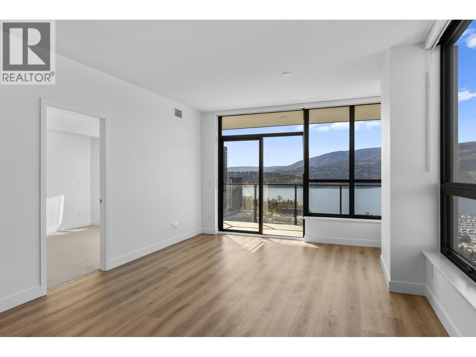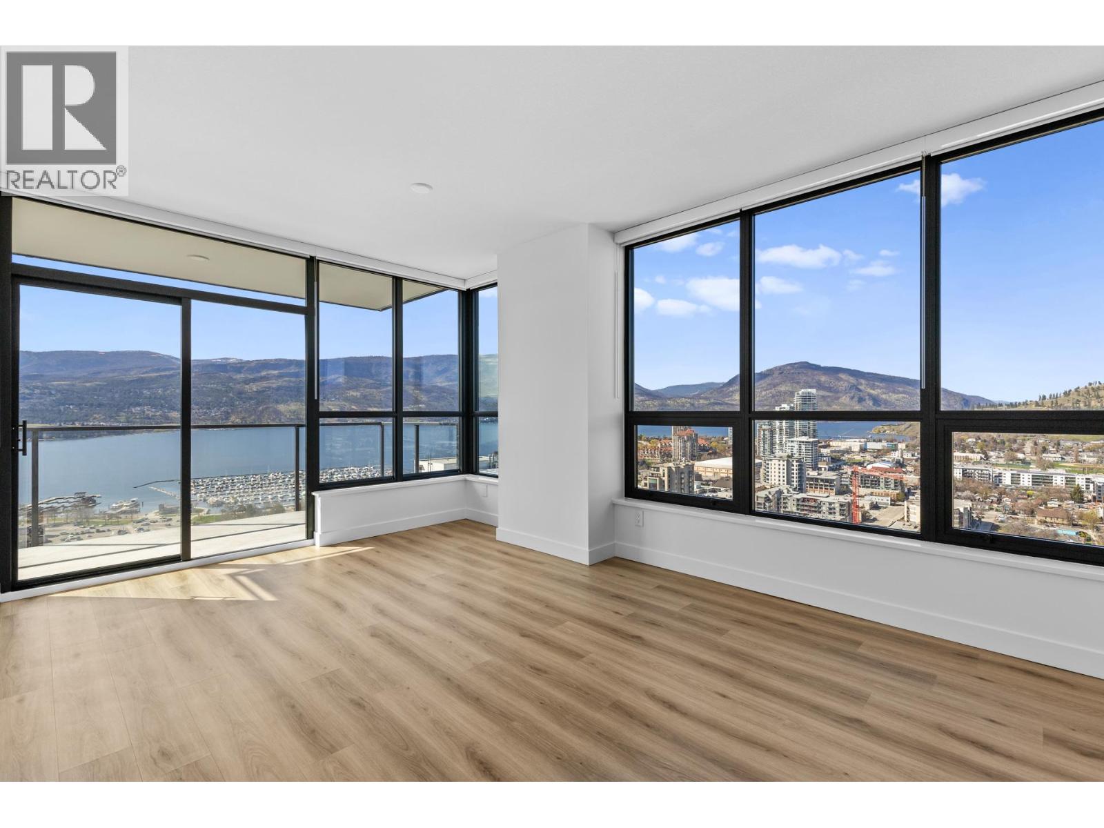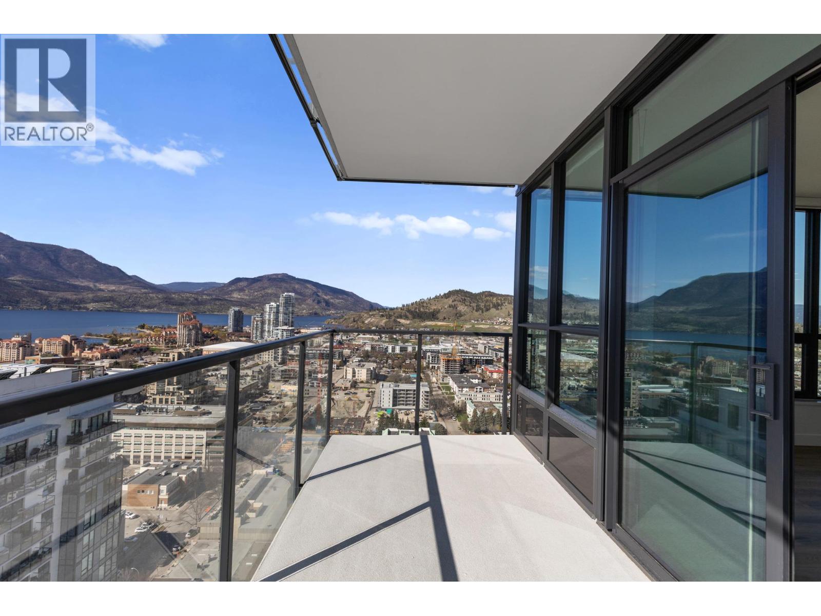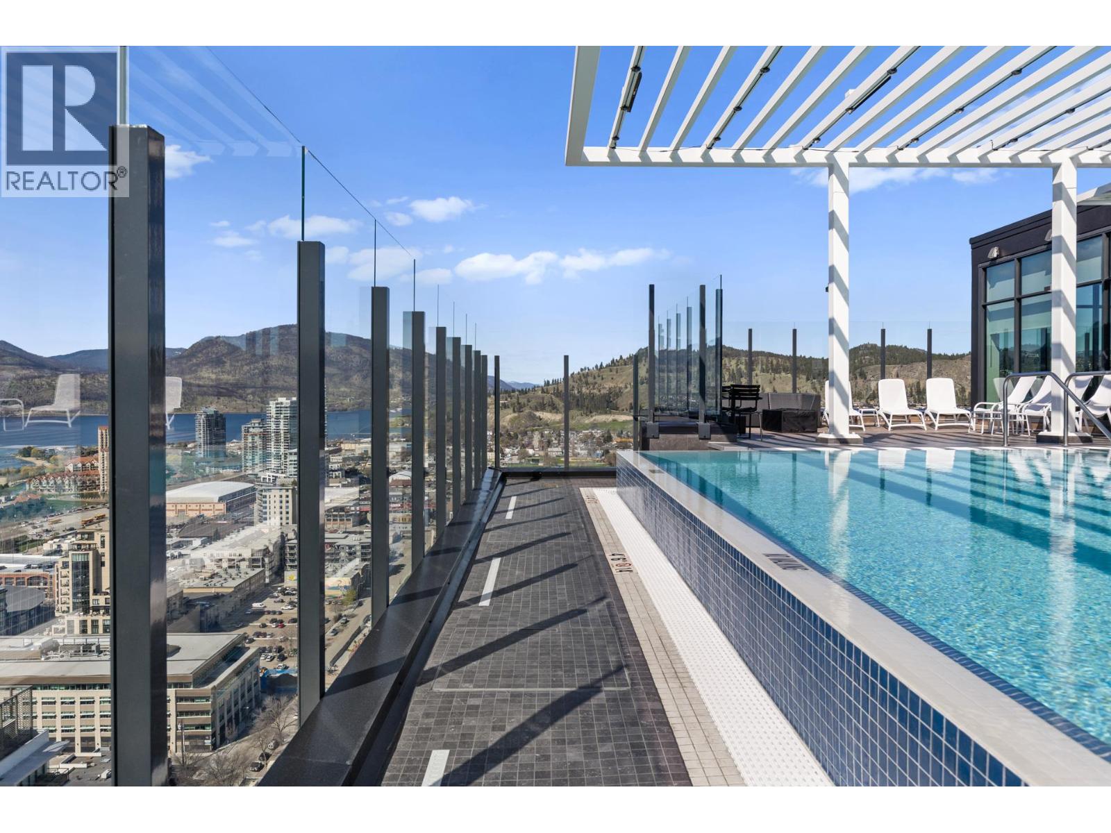 $527.13 MonthlyWelcome to Bertram at Bernard Block, the Heart of Downtown Kelowna - incredible value for stunning views, with the option to add a second parking stall. This gorgeous northwest corner home offers breathtaking, unobstructed views of the lake, city, mountains. With approx. 865 square feet of interior living space, this thoughtfully designed home feat. expansive windows, spacious balcony, and modern warm color scheme that complements the natural beauty of the Okanagan. The gourmet kitchen boasts quartz countertops, stainless steel appliances & flat-panel cabinetry. The open-concept living space is flooded with natural light, and premium wide-plank vinyl flooring adds warmth & durability. The split bedroom layout allows for flexibility. The primary suite features a large walk-in closet and full ensuite with tiled shower. Every window features modern roller shades, and central heating and air conditioning for cozy living in all four seasons. Bertram offers incredible amenities, incl. rooftop sky pool on the 34th floor, hot tub & lounge with panoramic views, fitness center, co-working space, bocce court, & outdoor BBQ’s. Fully pet-friendly with a dedicated dog wash and run area, plus secure bike storage & repair station. With a Walk Score of 97, you’re just steps from restaurants, shops, and transit. 1 secured parking stall included, plus 1 storage & 1 bike locker included. Experience downtown living at its finest - make Bertram your new home! Vacant and ready for quick possession. (id:61840)