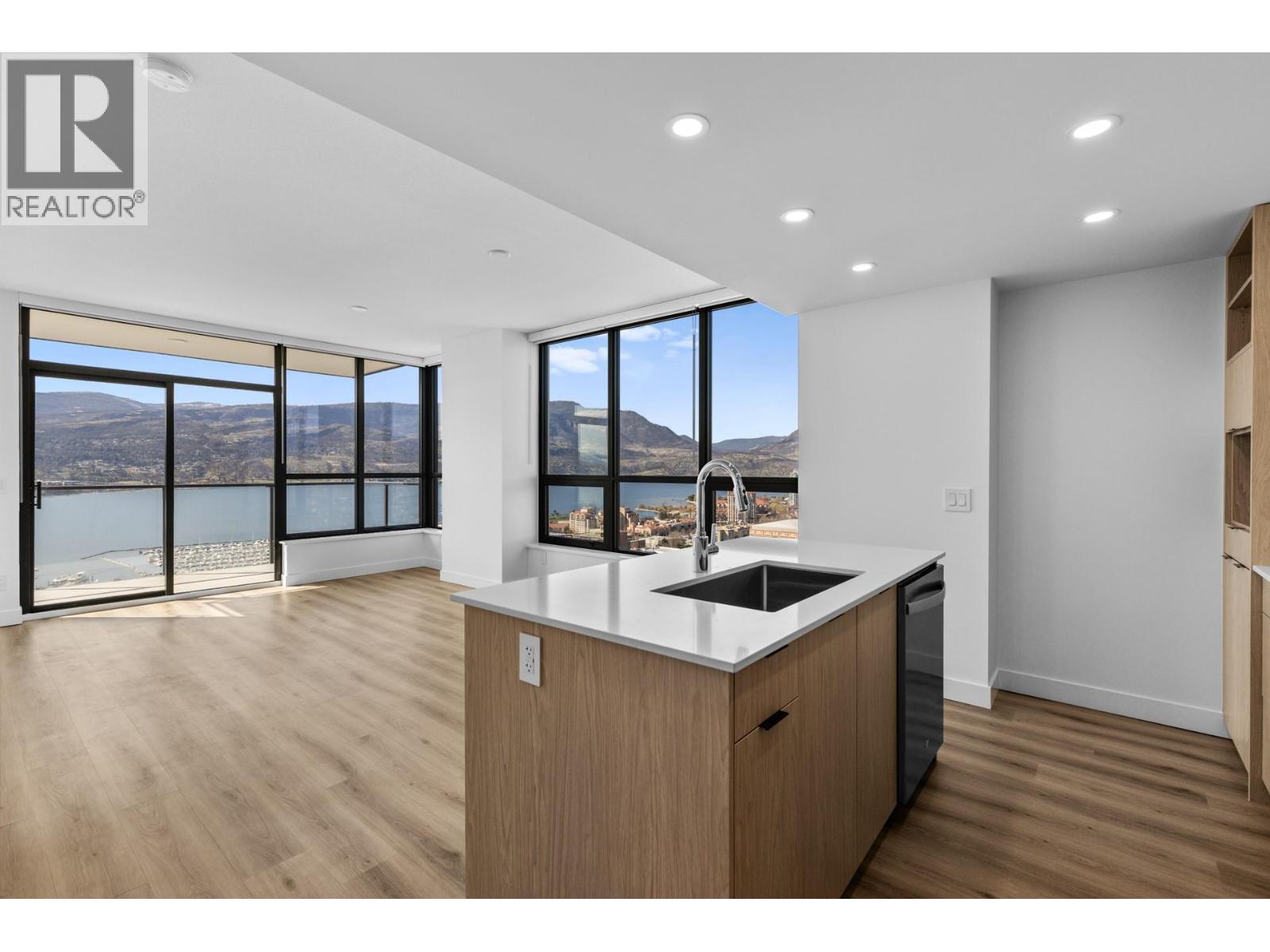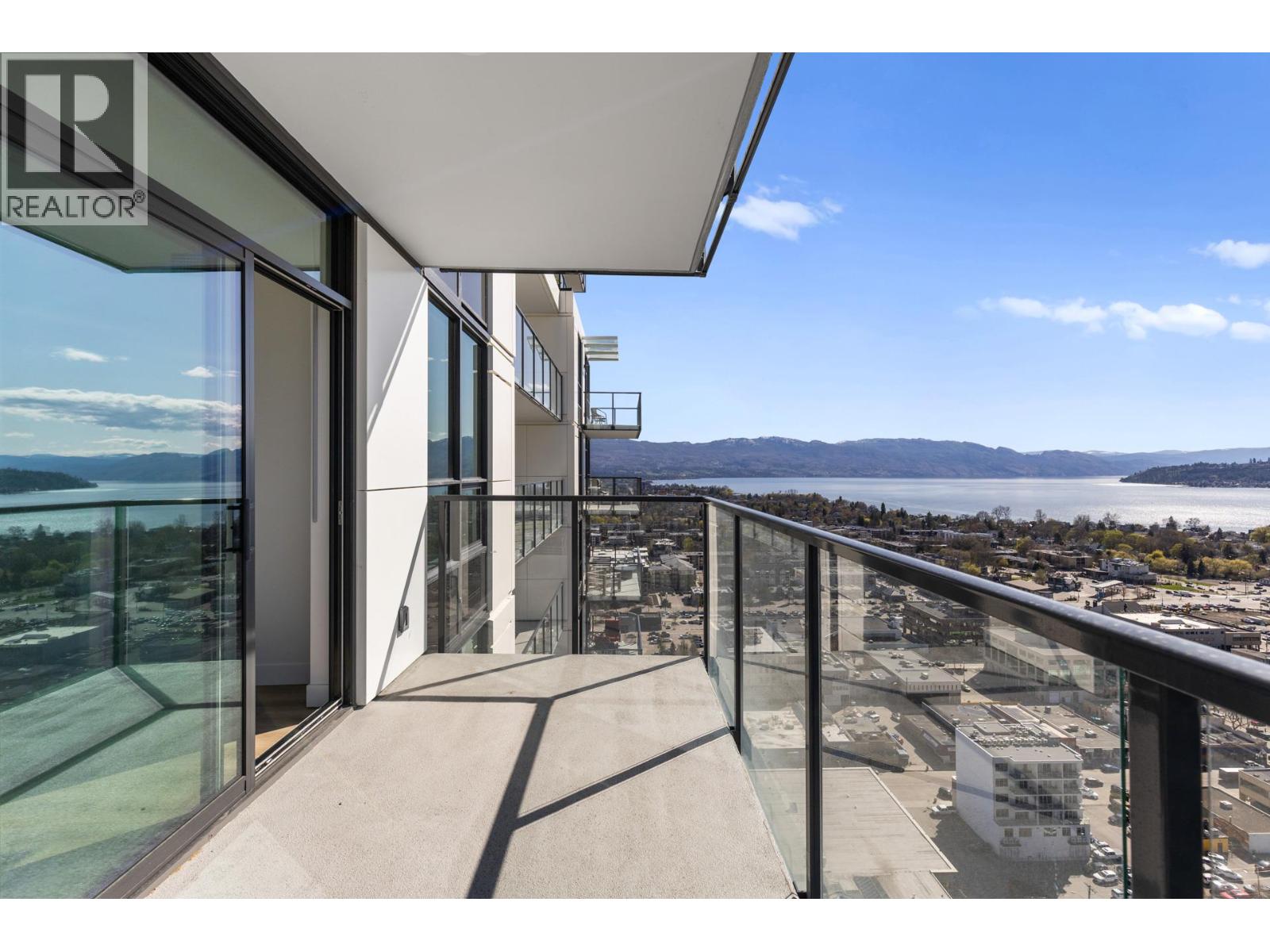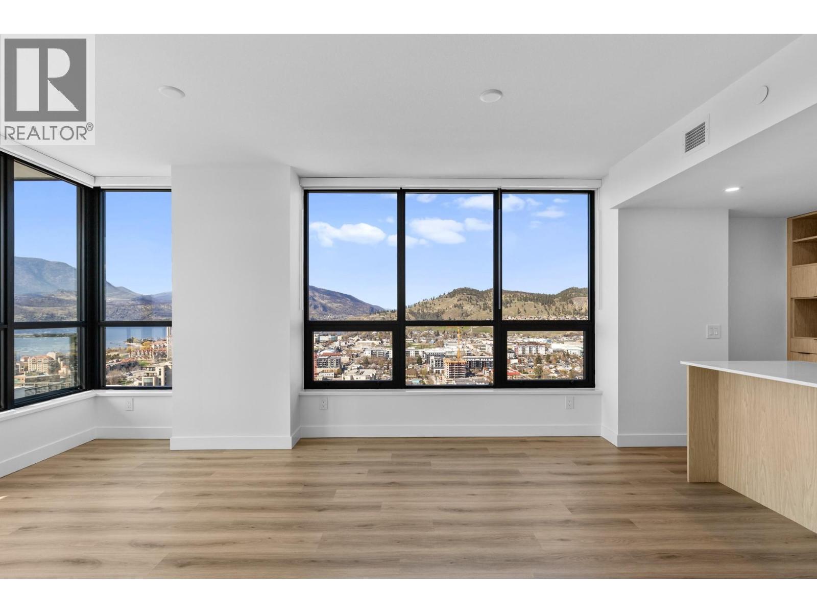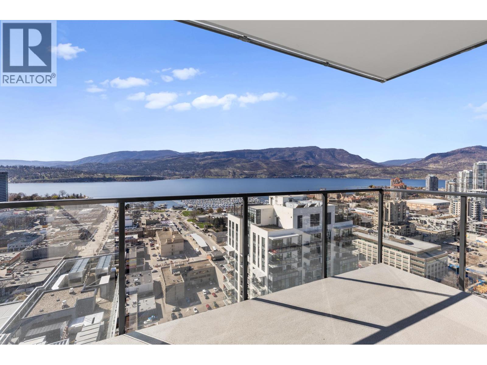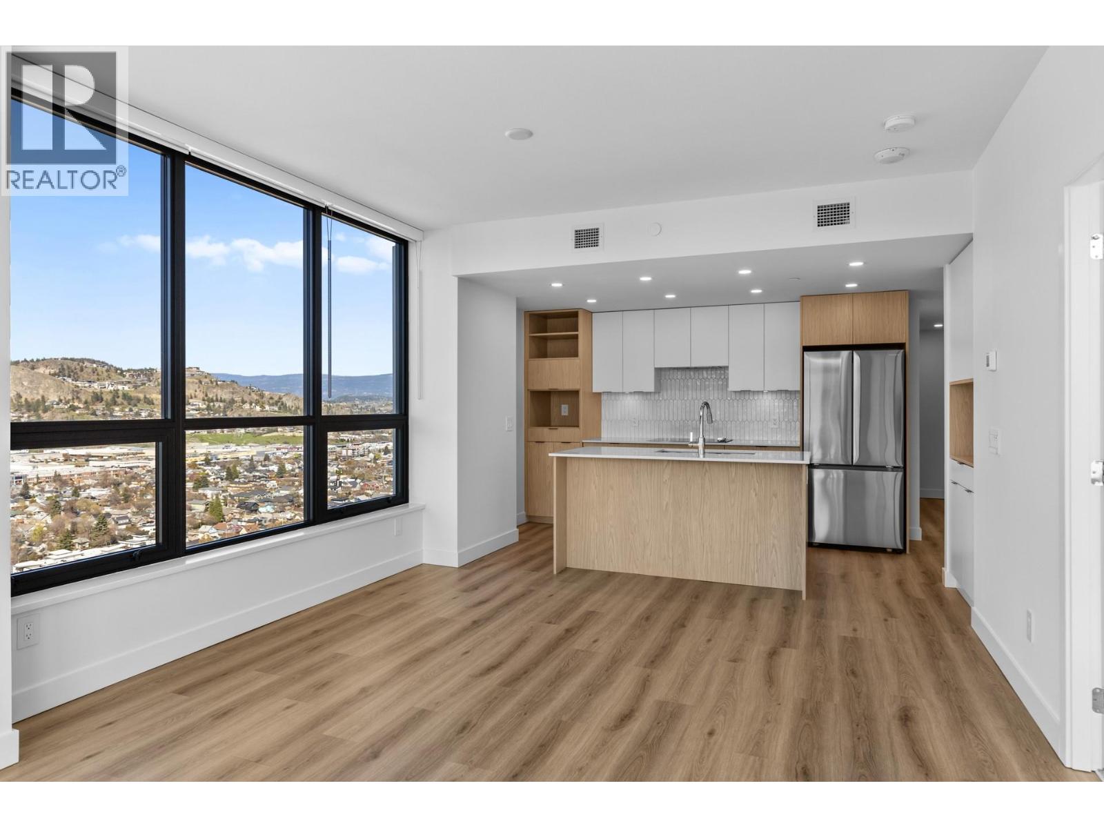$527.13 MonthlyWelcome to Bertram at Bernard Block, the Heart of Downtown Kelowna - incredible value for stunning views, with the option to add a second parking stall. This gorgeous northwest corner home offers breathtaking, unobstructed views of the lake, city, mountains. With approx. 865 square feet of interior living space, this thoughtfully designed home feat. expansive windows, spacious balcony, and modern warm color scheme that complements the natural beauty of the Okanagan. The gourmet kitchen boasts quartz countertops, stainless steel appliances & flat-panel cabinetry. The open-concept living space is flooded with natural light, and premium wide-plank vinyl flooring adds warmth & durability. The split bedroom layout allows for flexibility. The primary suite features a large walk-in closet and full ensuite with tiled shower. Every window features modern roller shades, and central heating and air conditioning for cozy living in all four seasons. Bertram offers incredible amenities, incl. rooftop sky pool on the 34th floor, hot tub & lounge with panoramic views, fitness center, co-working space, bocce court, & outdoor BBQ’s. Fully pet-friendly with a dedicated dog wash and run area, plus secure bike storage & repair station. With a Walk Score of 97, you’re just steps from restaurants, shops, and transit. 1 secured parking stall included, plus 1 storage & 1 bike locker included. Experience downtown living at its finest - make Bertram your new home! Vacant and ready for quick possession. (id:61840)