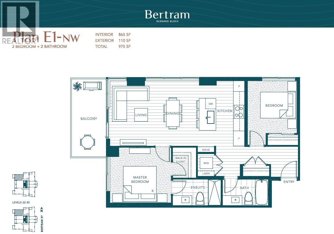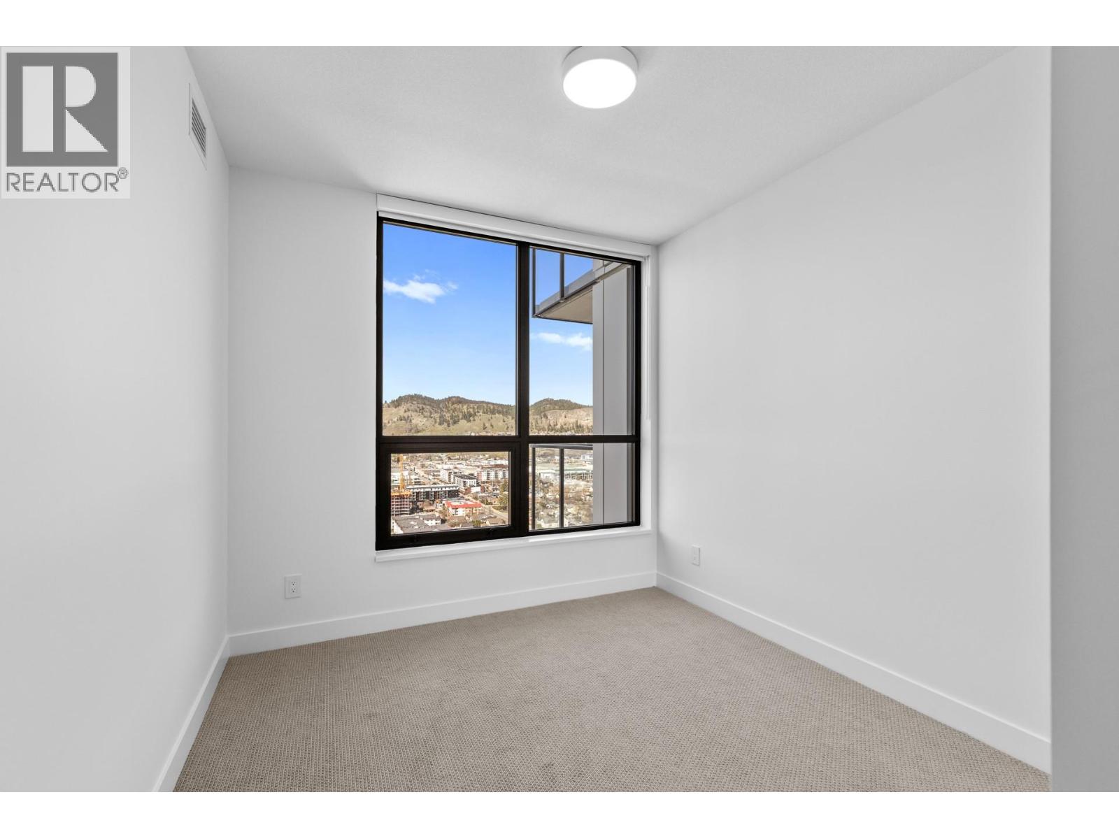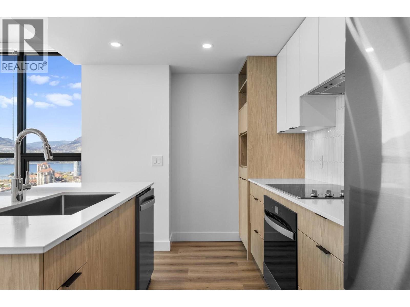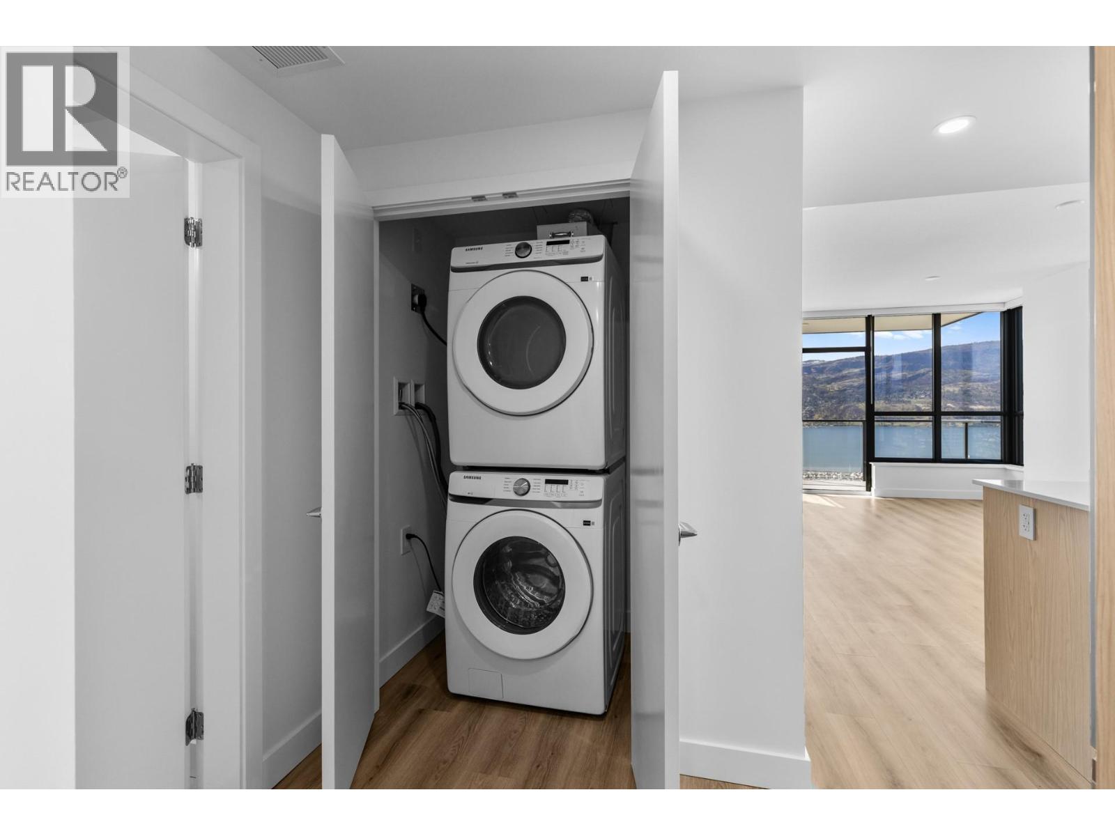 $527.13 MonthlyWelcome to Bertram at Bernard Block, the Heart of Downtown Kelowna - incredible value for stunning views, with the option to add a second parking stall. This gorgeous northwest corner home offers breathtaking, unobstructed views of the lake, city, mountains. With approx. 865 square feet of interior living space, this thoughtfully designed home feat. expansive windows, spacious balcony, and modern warm color scheme that complements the natural beauty of the Okanagan. The gourmet kitchen boasts quartz countertops, stainless steel appliances & flat-panel cabinetry. The open-concept living space is flooded with natural light, and premium wide-plank vinyl flooring adds warmth & durability. The split bedroom layout allows for flexibility. The primary suite features a large walk-in closet and full ensuite with tiled shower. Every window features modern roller shades, and central heating and air conditioning for cozy living in all four seasons. Bertram offers incredible amenities, incl. rooftop sky pool on the 34th floor, hot tub & lounge with panoramic views, fitness center, co-working space, bocce court, & outdoor BBQ’s. Fully pet-friendly with a dedicated dog wash and run area, plus secure bike storage & repair station. With a Walk Score of 97, you’re just steps from restaurants, shops, and transit. 1 secured parking stall included, plus 1 storage & 1 bike locker included. Experience downtown living at its finest - make Bertram your new home! Vacant and ready for quick possession. (id:61840)