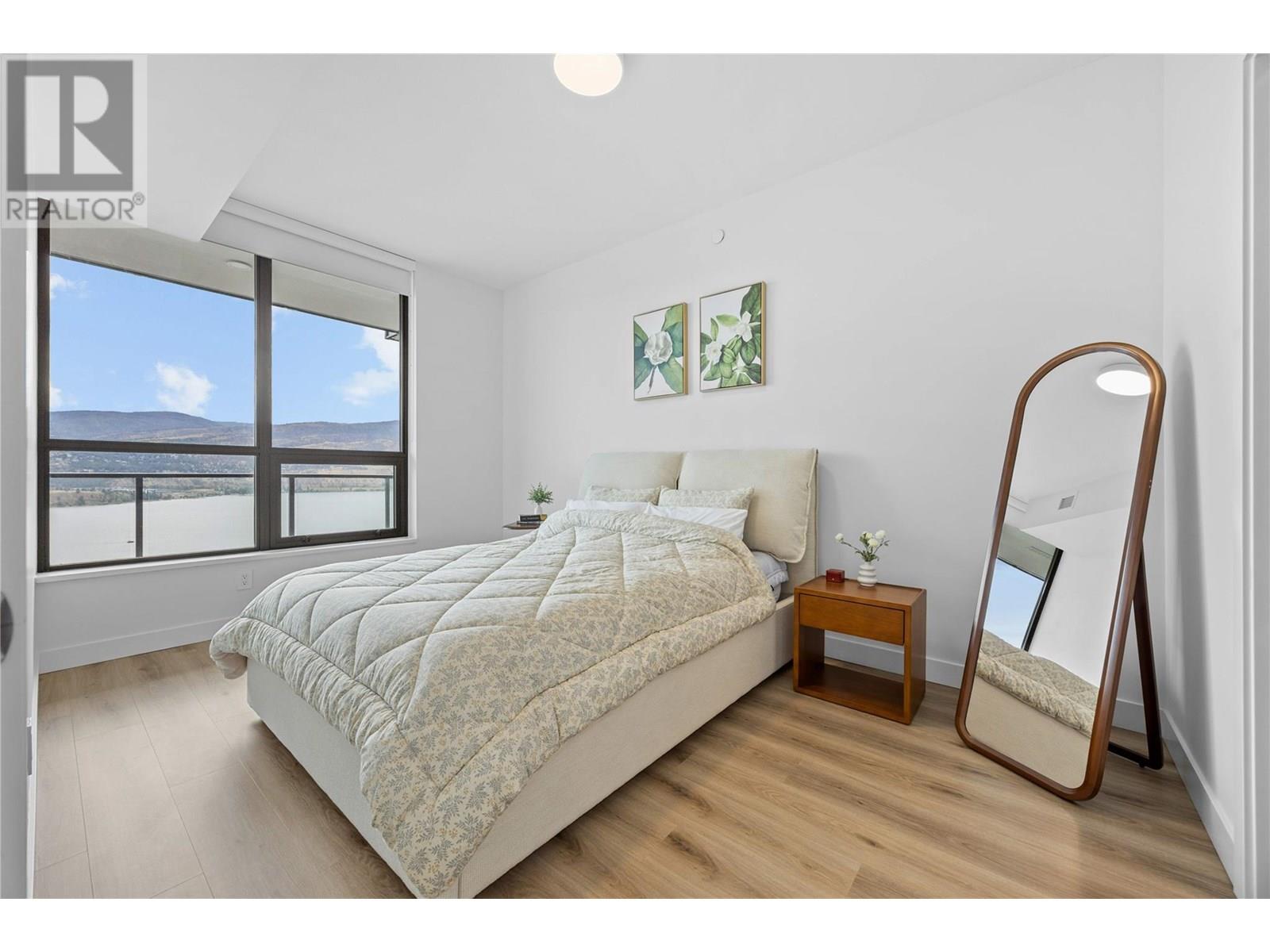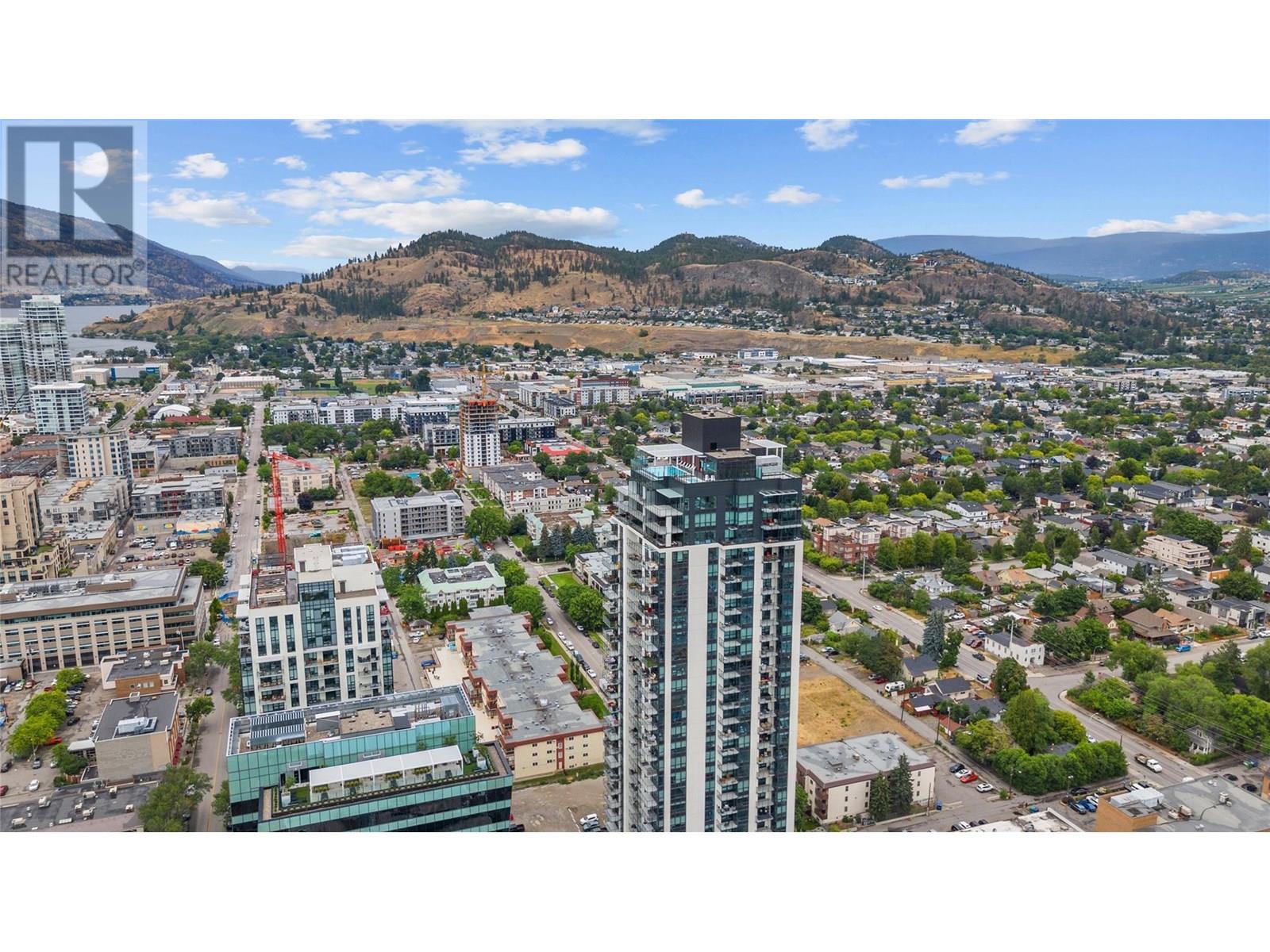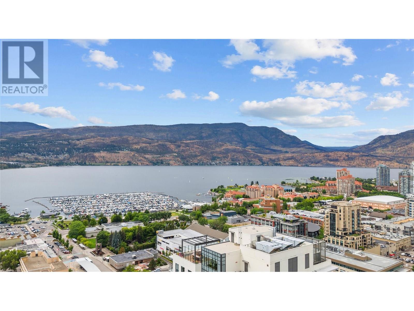 $546.42 MonthlyThis spectacular 2 bed, 2 bath sub penthouse comes fully furnished and showcases sweeping 180 degree lake and city views that will leave you speechless. Located in a pet friendly building just four blocks from the beach and mere steps to Kelowna’s award winning restaurants, shops, entertainment, and Prospera Place arena. This is the ultimate Okanagan address. Step inside and discover a stylish, open concept layout with smart upgrades throughout, including luxury vinyl plank flooring and custom closet organizers in both bedrooms. Every piece of furniture and decor is included at a value close to $20,000 making this home truly turnkey, whether you're moving in or adding to your investment portfolio. And the amenities? Simply next level. Enjoy Kelowna’s finest rooftop pool and hot tub with panoramic views, plus outdoor BBQs, fire tables, lounge areas, a community garden, bocce court, secure bike storage, co-working space, and business centre. Whether you're searching for a full time residence, luxury vacation home, or a high performing rental, this sub penthouse delivers value, location, and lifestyle. (id:61840)