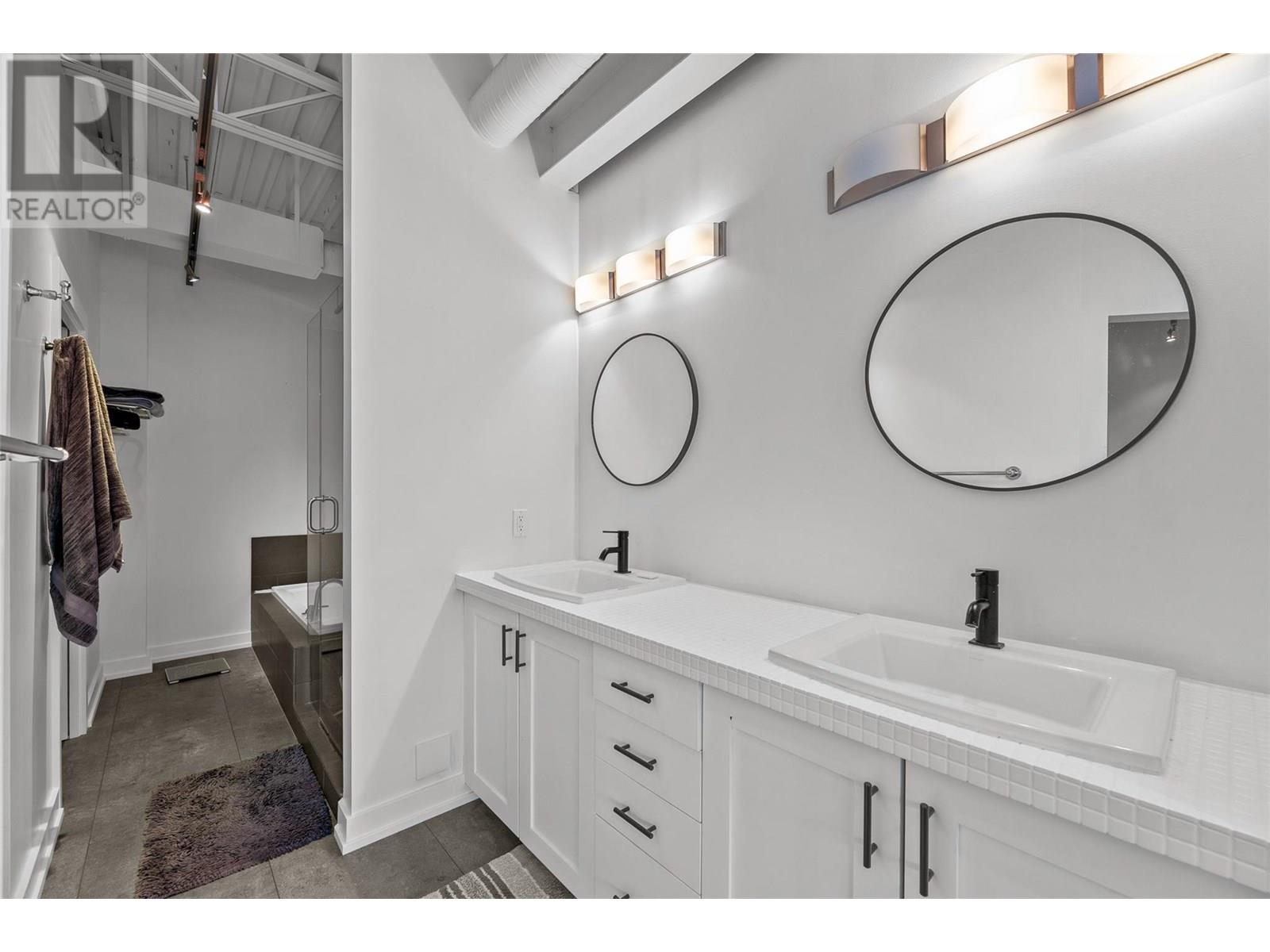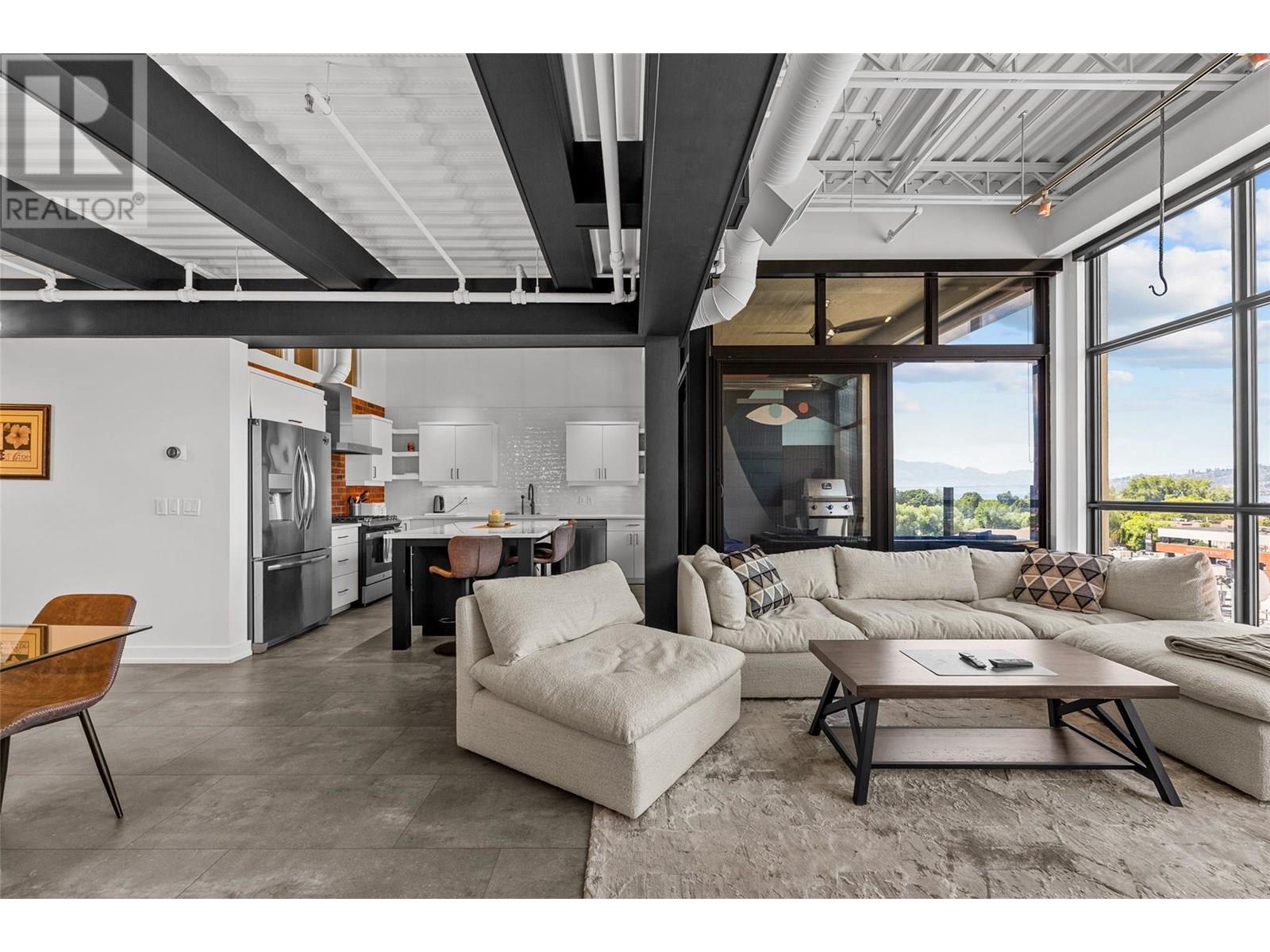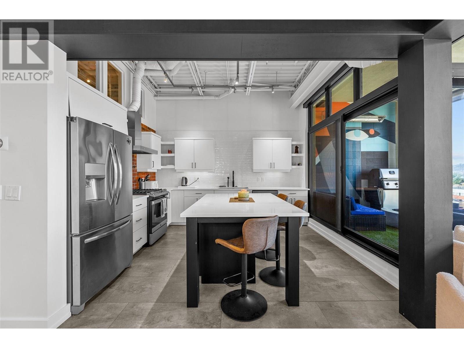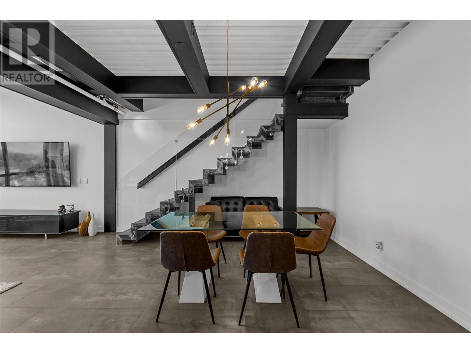 Discover Kelowna's most unique and luxurious condo—a fully renovated, lofted industrial-style masterpiece with unparalleled lake and city views. Perched atop a professional building with just five exclusive residences, this property promises an extraordinary living experience. The main floor boasts an expansive open-concept design featuring soaring high ceilings and dramatic floor-to-ceiling windows that flood the space with natural light. The stunning kitchen, equipped with top-of-the-line appliances opens to a heated, covered patio—perfect for year-round alfresco dining. Ascend to the primary retreat, where you'll be captivated by sweeping lake and city vistas. Every inch of this home has been meticulously updated with new flooring, a modern kitchen, state-of-the-art appliances, fresh paint, and elegant baseboards. This pet- and rental-friendly building offers the convenience of two large indoor parking stall. A property of this caliber must be seen to be truly appreciated. Don’t miss the opportunity to own this exceptional downtown loft and experience its unparalleled luxury and uniqueness firsthand. (id:61840)