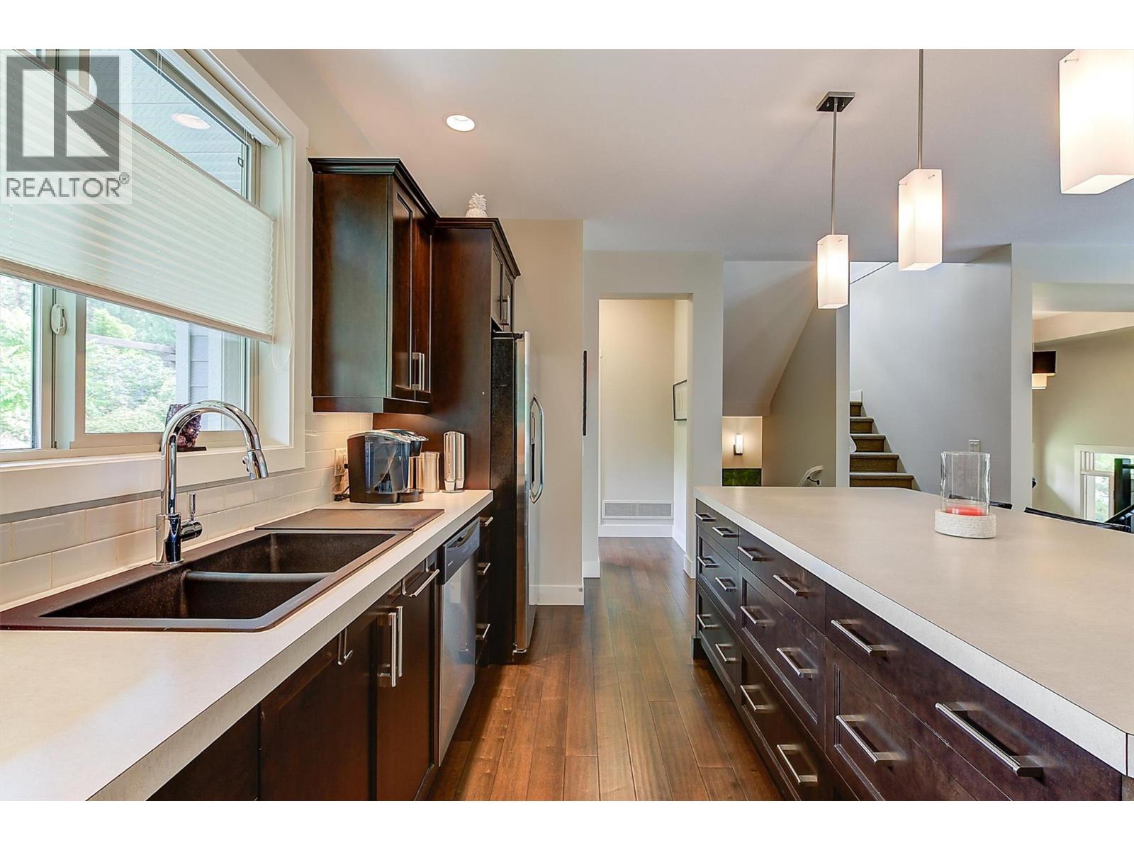 $623.33 MonthlyOne-of-a-kind, stand-alone Townhome. Welcome to #1 Hidden Lake Lane - the only fully detached home in this highly sought-after strata. Nearly 3000 sq.ft. of bright, open living space offers the feel of a single-family home with the ease of strata living. The main floor features a light-filled open-concept great room with spacious kitchen (over-sized island), dining room, bright living room with gas fireplace, powder room & laundry /mud room to walk-out patio with BBQ hook up. Upstairs you will find 3 large bedrooms, including a primary retreat with walk-in closet and a spacious, 5 piece ensuite. The lower level holds the 4th bedroom, a den/flex room, full bath and double side-by-side garage. With Geothermal heating/cooling, landscaping, lawn care and snow removal included, this home truly has it all. Immaculate, bright and incredibly spacious - this is a rare find. Pet Restrictions 2 dogs or 2 cats or 1 of each- no height/weight/breed restrictions. (id:61840)