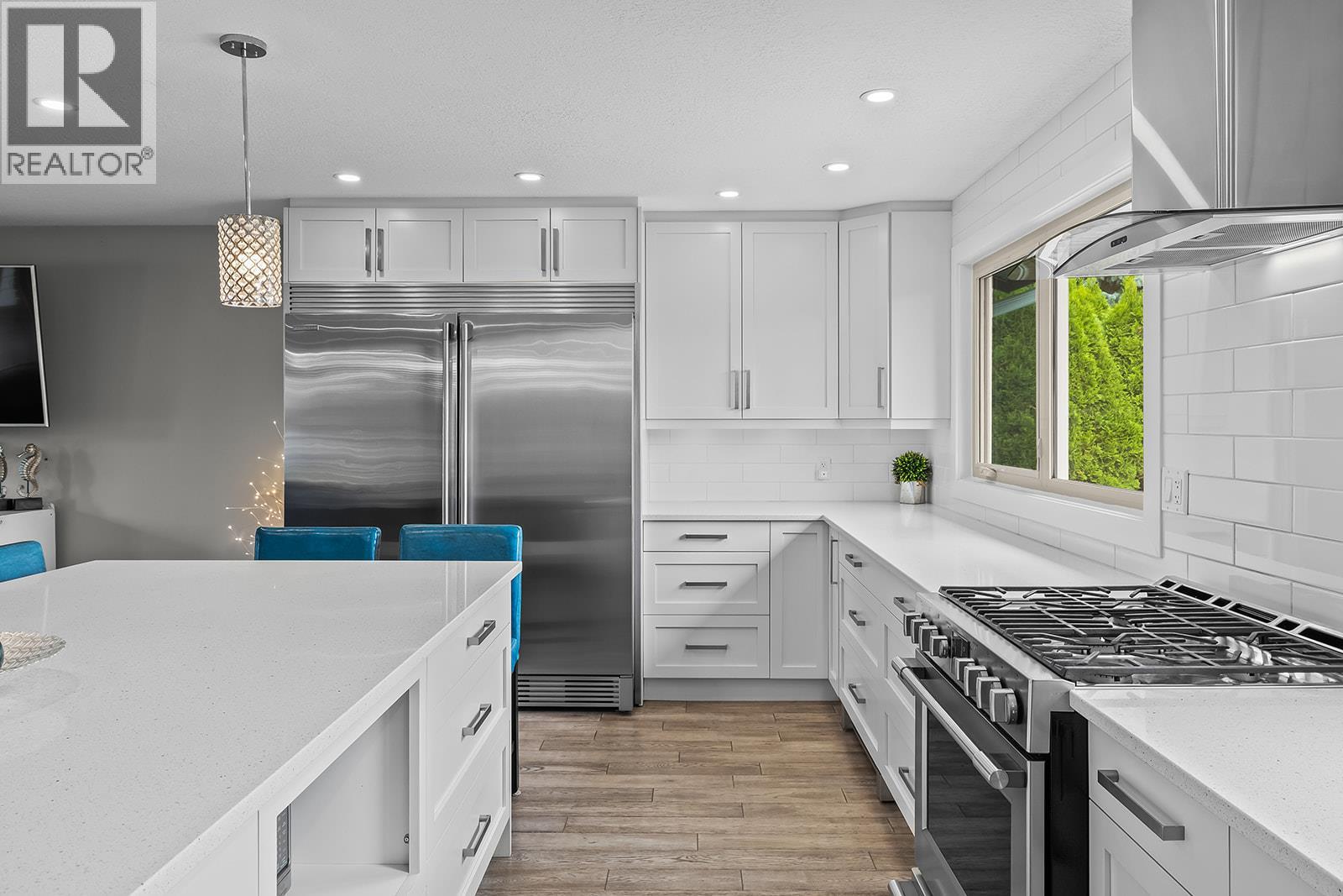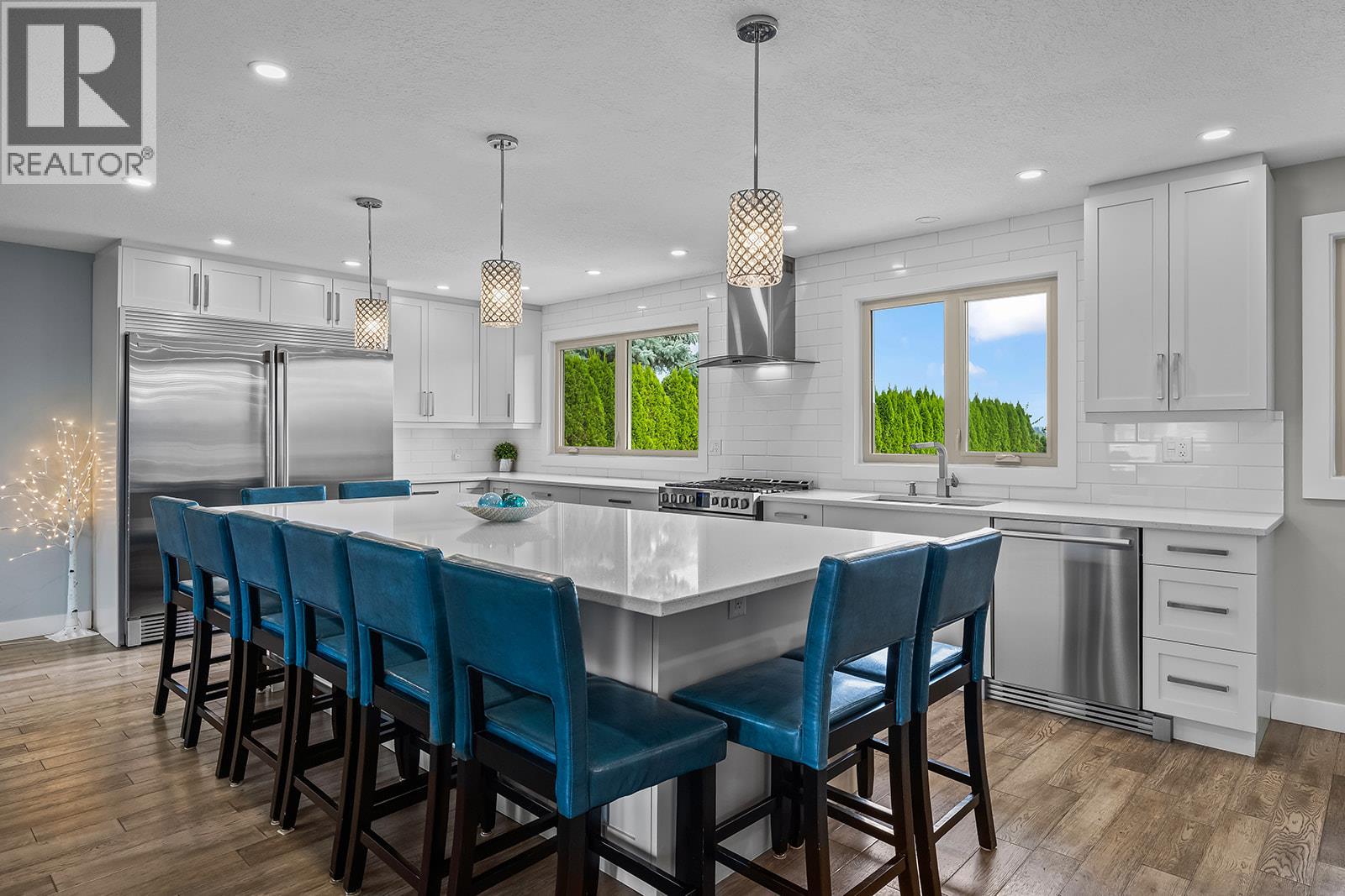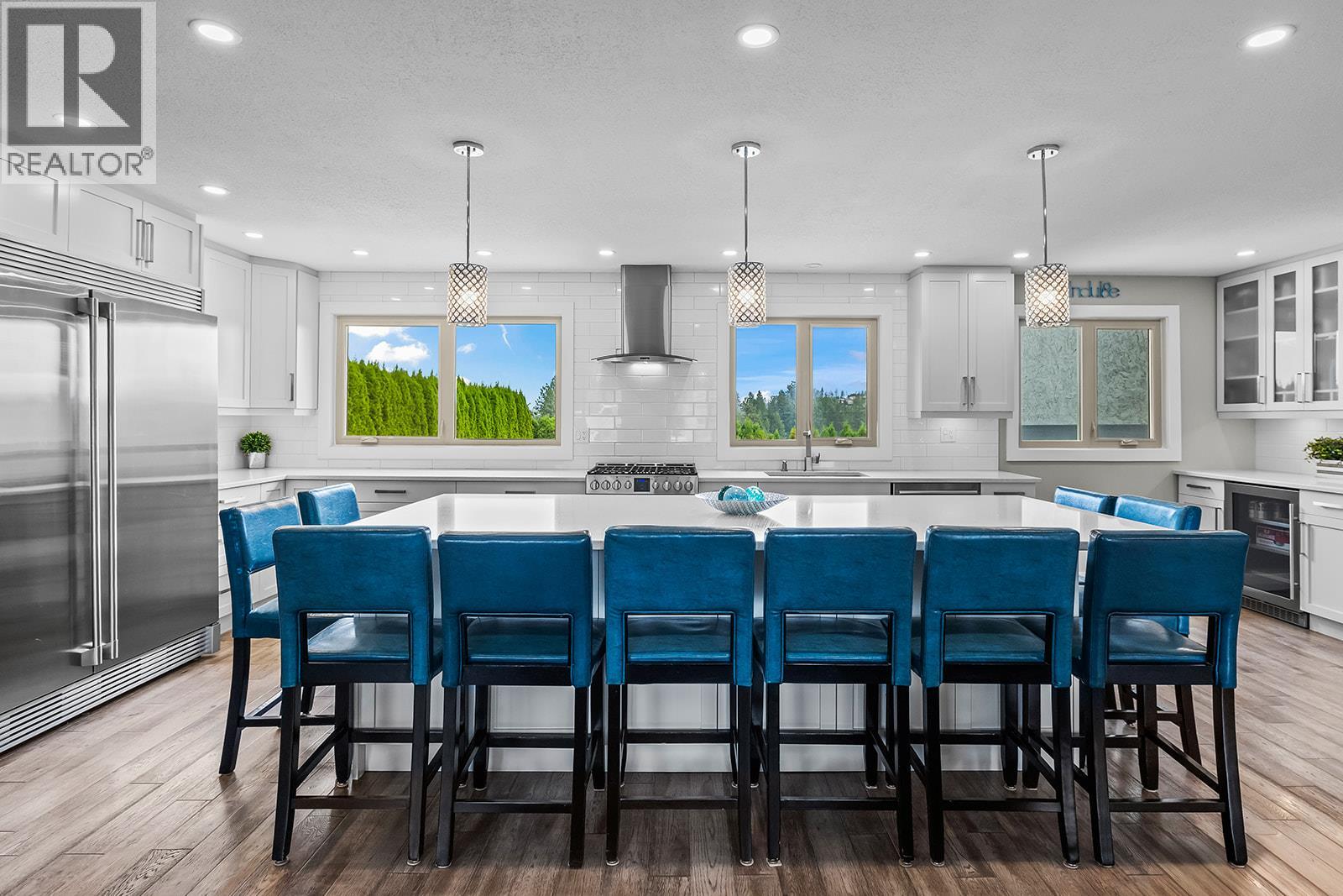 Welcome to 2245 Somerset Road, a beautifully updated 5-bedroom plus den, 4-bathroom split-level private residence in the highly sought-after West Kelowna Estates neighbourhood. Offering over 2,500 sq.ft. of thoughtfully designed living space on a well maintained 0.28-acre lot, this home balances modern finishes with everyday functionality, and an outdoor pool for our Okanagan summers! The heart of the home is a chef’s kitchen, complete with an oversized professional-grade refrigerator, expansive quartz island, custom cabinetry, and a dedicated beverage station with wine cooler, ideal for both entertaining and family living. The open concept living areas flow seamlessly to a recreation room that opens onto a deck with a hot tub overlooking the pool and private backyard oasis. The primary suite features a freshly updated ensuite, while ample sized bedrooms provide space for family and guests. Two versatile rooms on the lower level add flexibility for a home office, gym, or guest room. The walk-out lower level connects directly to the patio and pool area, creating an effortless indoor-outdoor lifestyle. With a recent renovation, resort inspired amenities (like heated bathroom flooring), and a prime exceptionally private location close to schools, shopping, and downtown Kelowna, this home offers the ultimate Okanagan living experience. (id:61840)