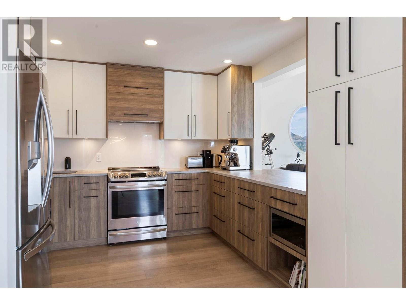 ***REALTOR OPEN HOUSE FRIDAY, JULY 18TH 1-3PM*** Channeling the spirit of L.A.’s iconic hillside homes, this architectural West Coast Contemporary masterpiece has been completely reimagined with sophistication and style. With around $400K in updates, every inch has been thoughtfully redesigned while preserving its original charm. Set on prestigious Dilworth Mountain, just minutes to downtown Kelowna, this 4-bed, 4.5-bath showpiece blends modern luxury with timeless character. Vaulted ceilings, a sleek gas fireplace, and a bold quartz kitchen with stainless steel appliances make the main living space unforgettable. The lofted area flex space is ideal for a home office, workout space, artistic retreat, or can be used as a bedroom. Enjoy breathtaking lake and mountain views from the solarium, oversized balcony, or your private hot tub patio off the vaulted primary suite. The spa-inspired ensuite, huge walk-in closet, and sunrise views elevate everyday living. Complete with a separate dining room, in-law suite, and incredible indoor-outdoor flow with multiple entertaining patios. Double garage plus plenty of extra parking. There’s even room to add a pool—perfectly positioned to capture the view and complete your mountainside oasis. Omineca Place isn’t just a home—it’s a vibe. (id:61840)