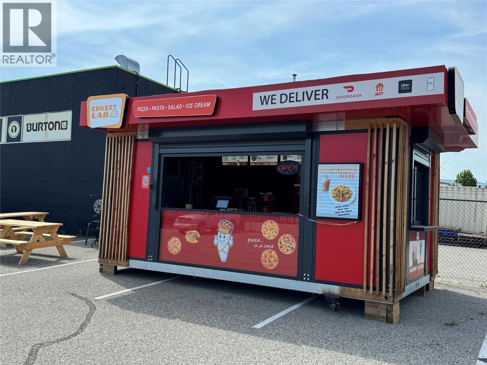 Unique Concept & unique Opportunity! Own a modular, eco-friendly restaurant serving Pizza, Pasta, & Ice Cream! This turnkey franchise runs on electricity - no oils, gas, or hazardous products. All you need is a 50 amp breaker to operate this business. They have negotiated a great location at the high traffic Enterprise Way. Lease is only $500 per month including electricity! Crustlab makes even a profit if the owner is not operating the business! Crustlab added 5 other menus, besides the one local, on site menu, they ALSO feature: - Balkan Eats - Mainly meat speciality like Qebapi, Qofte, pleskavica etc - Chimi Bandidos - Mexican food ChimiChangas + desserts. - Sandwiches - Sodas Gourmet Burger All online menus delivered through Uber Eats, Skip the Dishes and Doordash. With potential to expand to other BC cities and with multiple financing options, this is a prime opportunity to own a distinctive, sustainable restaurant concept. (id:61840)