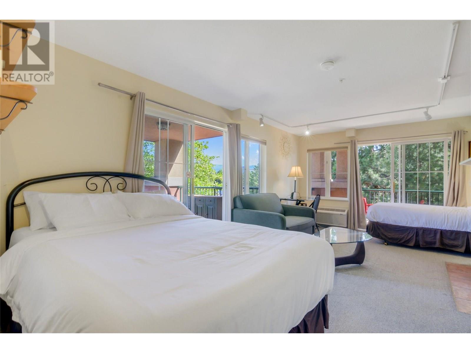 $506.99 MonthlyExceptional Investment Opportunity at Borgata Lodge This large corner unit at Borgata Lodge benefits from its licensed Strata Hotel Accommodations designation, allowing for short-term rentals through a professionally managed proper front desk Ideally located just minutes from UBCO’s main campus and nearby shopping centre The largest unit of this type at Borgata Lodge, overlooks the beautiful Okanagan Golf Club, and El's lake pond. The clubhouse, golf academy and restaurant just a 3-minute walk. Perfect for seasonal use—rent to students, faculty or business individuals during the academic year, then transition to short-term vacation rentals in the summer. The Lodge manages all aspects of property operations, including bookings, housekeeping, and guest check-in/out, making this an effortless, hands-off investment. It offers excellent year-round rental potential. The unit features a flexible layout with two separate rentable adjoining studio suites or the option to use it as one full suite. Owners also have the option to live in one side and rent out the other as a mortgage helper. Each side includes its own gas fireplace and private deck each with a storage locker The unit comes fully furnished and includes in-suite laundry for added convenience. Natural Gas is included in the strata fees, helping to reduce heating costs—especially with fireplaces on both sides. One reserved underground parking stall is included. Please note: no pets permitted. (id:61840)