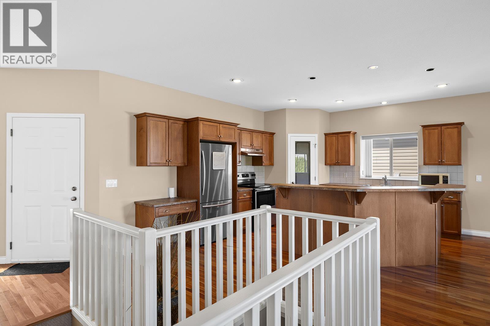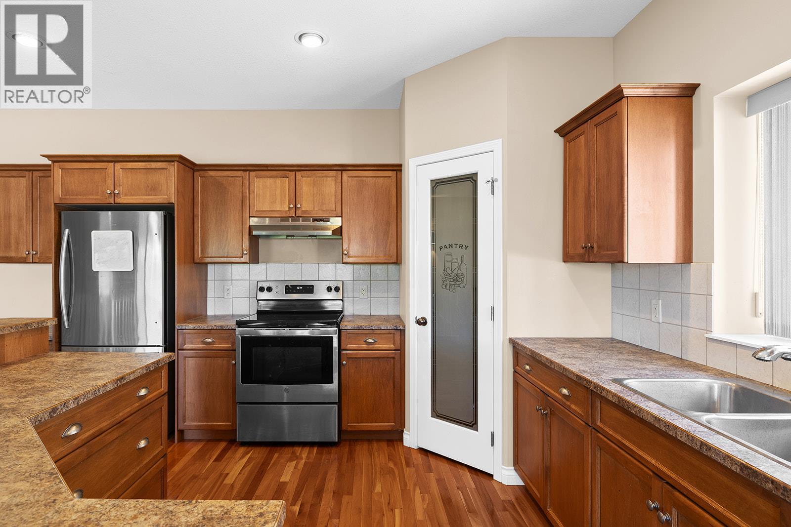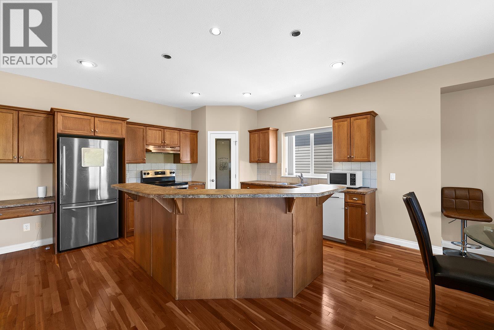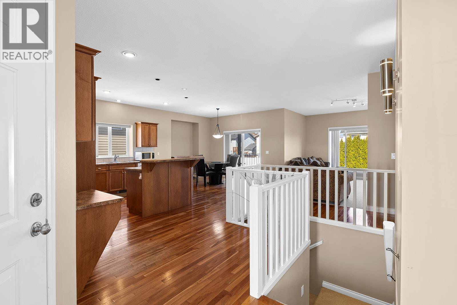 Welcome to this spacious walkout rancher with a basement suite in the heart of Rutland North, one of Kelowna’s most family-friendly neighbourhoods. Upstairs, you'll find a thoughtfully designed open-concept living space featuring a massive kitchen with shaker-style cabinets, a walk-in pantry, sit-up bar island, beautiful hardwood floors, and 9ft ceilings. Cozy up in the living room beside the gas fireplace, or step outside onto the large, covered deck, perfect for year-round barbecuing. The primary bedroom is large and features a 4-piece ensuite and walk-in closet. Downstairs, the 2-bed suite with a separate entrance is ideal for extended family, or as a mortgage helper, offering plenty of natural light throughout. The fully fenced backyard is private with mature cedar trees and sprawling green space for kids, pets, or gardening. The front yard is landscaped with additional greenspace. Bonus features include an oversized garage with 12ft ceilings, and built-in vacuum. This home is walking distance to all levels of schools, and offers quick access to nearby parks, playgrounds, sports fields, the YMCA, and scenic wetlands, as well as shopping, dining, and transit options. This welcoming and well-established neighbourhood is perfect for families looking for both convenience and community. Whether you're upsizing, investing, or looking for a multi-generational layout, this home checks all the boxes! (id:61840)