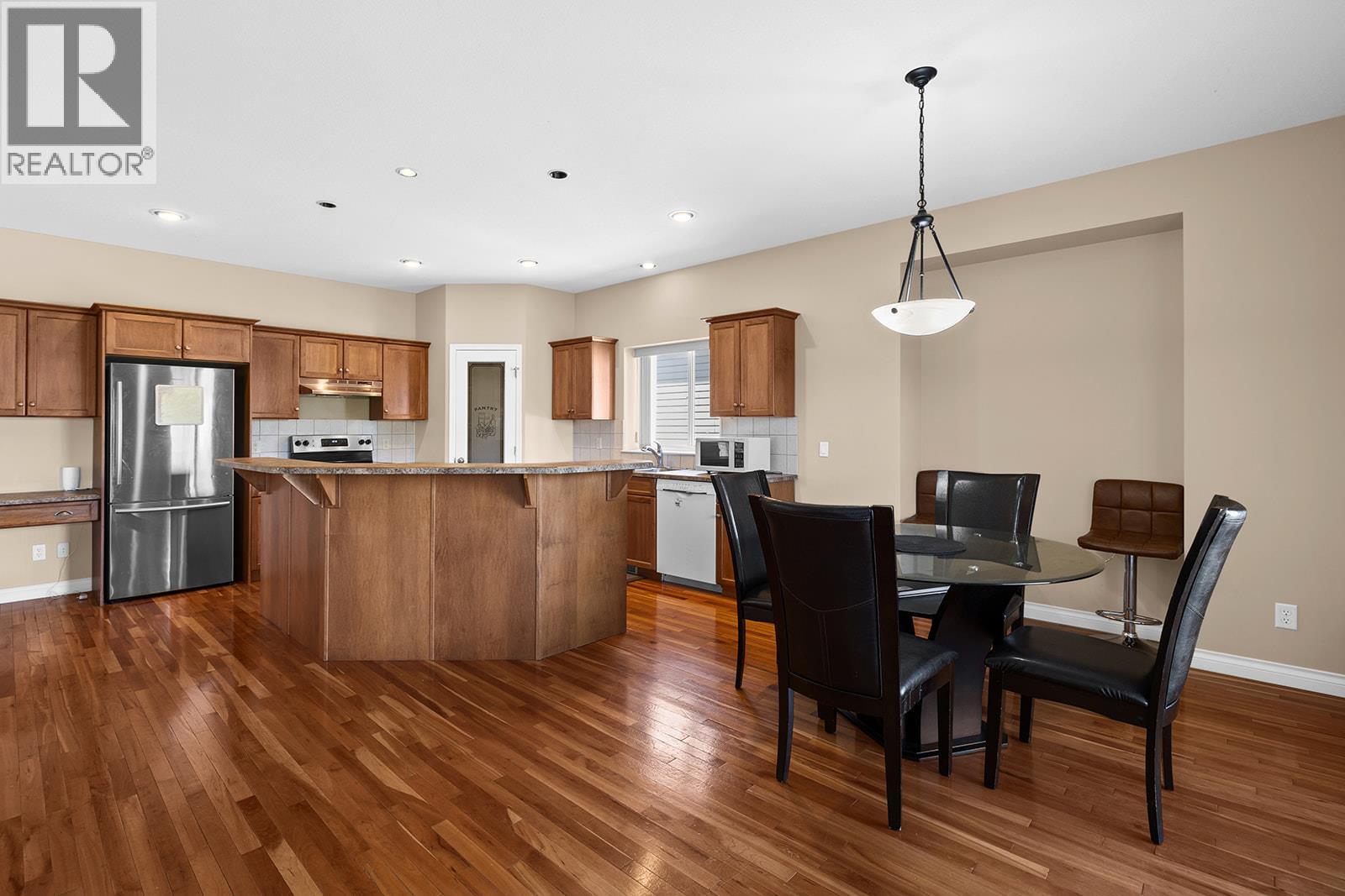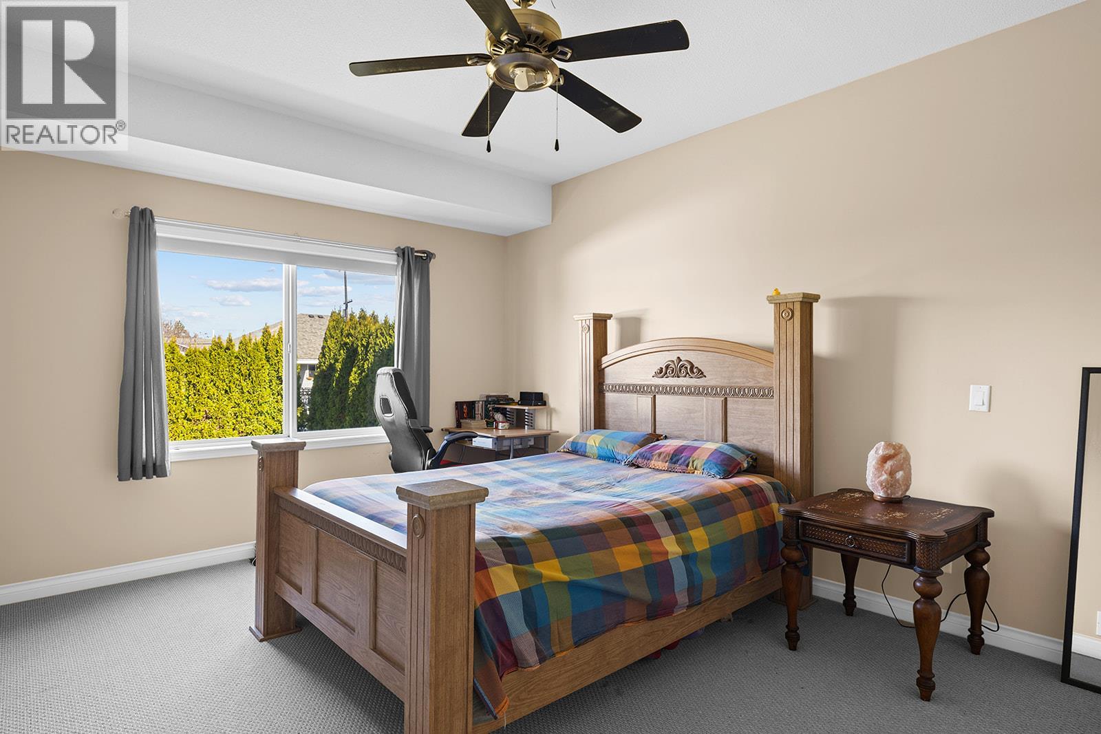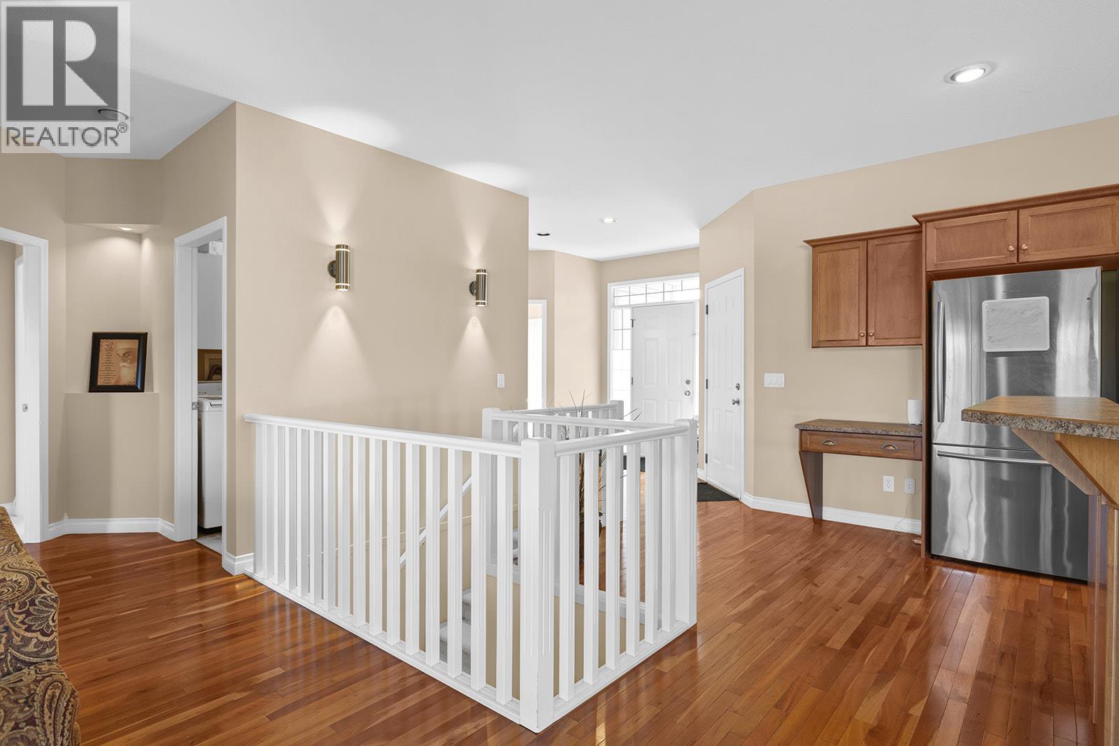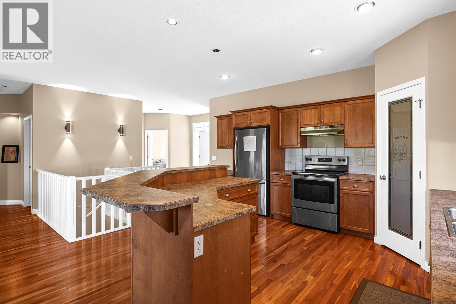Welcome to this spacious walkout rancher with a basement suite in the heart of Rutland North, one of Kelowna’s most family-friendly neighbourhoods. Upstairs, you'll find a thoughtfully designed open-concept living space featuring a massive kitchen with shaker-style cabinets, a walk-in pantry, sit-up bar island, beautiful hardwood floors, and 9ft ceilings. Cozy up in the living room beside the gas fireplace, or step outside onto the large, covered deck, perfect for year-round barbecuing. The primary bedroom is large and features a 4-piece ensuite and walk-in closet. Downstairs, the 2-bed suite with a separate entrance is ideal for extended family, or as a mortgage helper, offering plenty of natural light throughout. The fully fenced backyard is private with mature cedar trees and sprawling green space for kids, pets, or gardening. The front yard is landscaped with additional greenspace. Bonus features include an oversized garage with 12ft ceilings, and built-in vacuum. This home is walking distance to all levels of schools, and offers quick access to nearby parks, playgrounds, sports fields, the YMCA, and scenic wetlands, as well as shopping, dining, and transit options. This welcoming and well-established neighbourhood is perfect for families looking for both convenience and community. Whether you're upsizing, investing, or looking for a multi-generational layout, this home checks all the boxes! (id:61840)