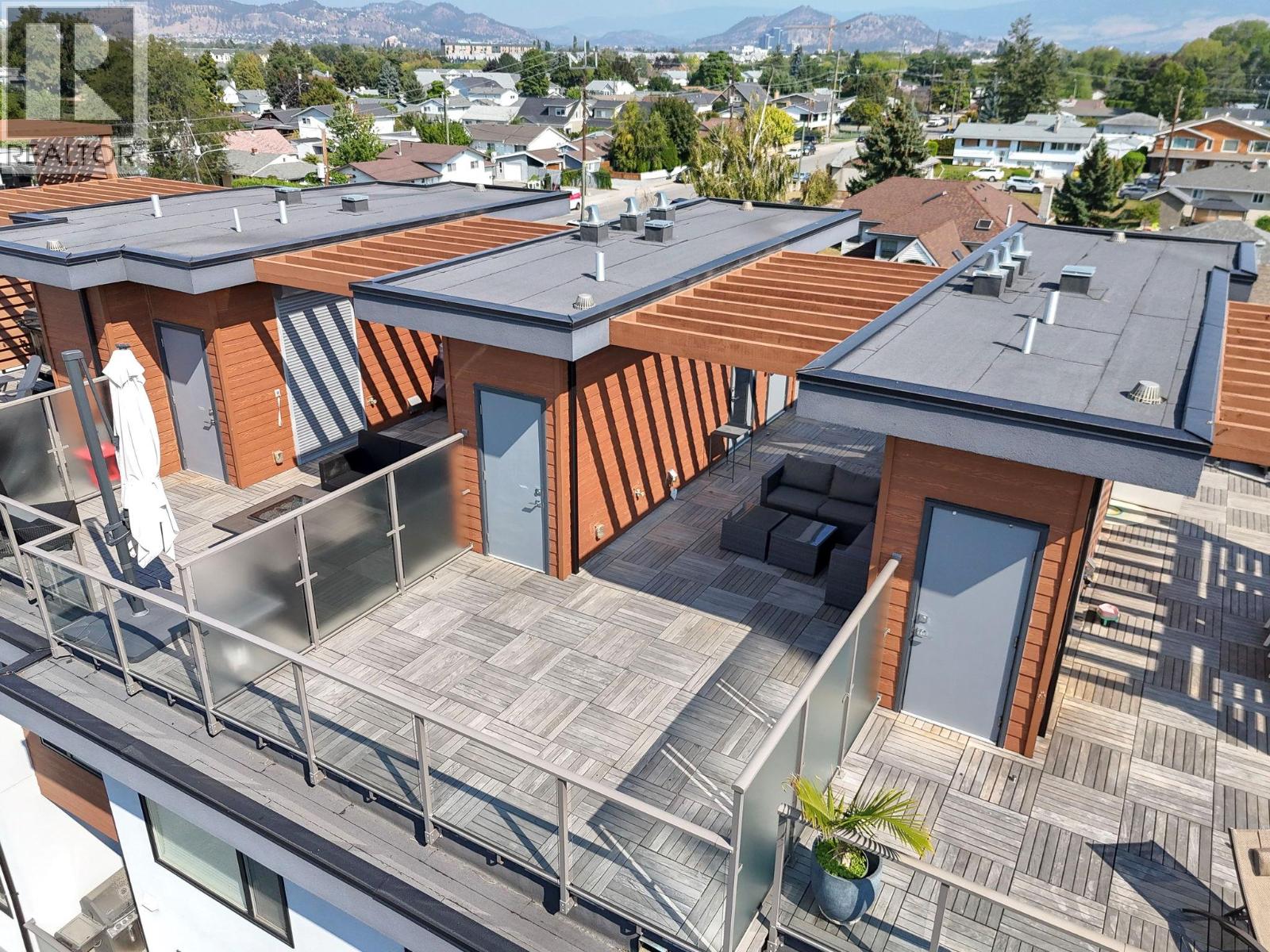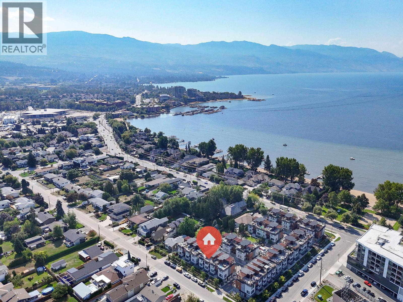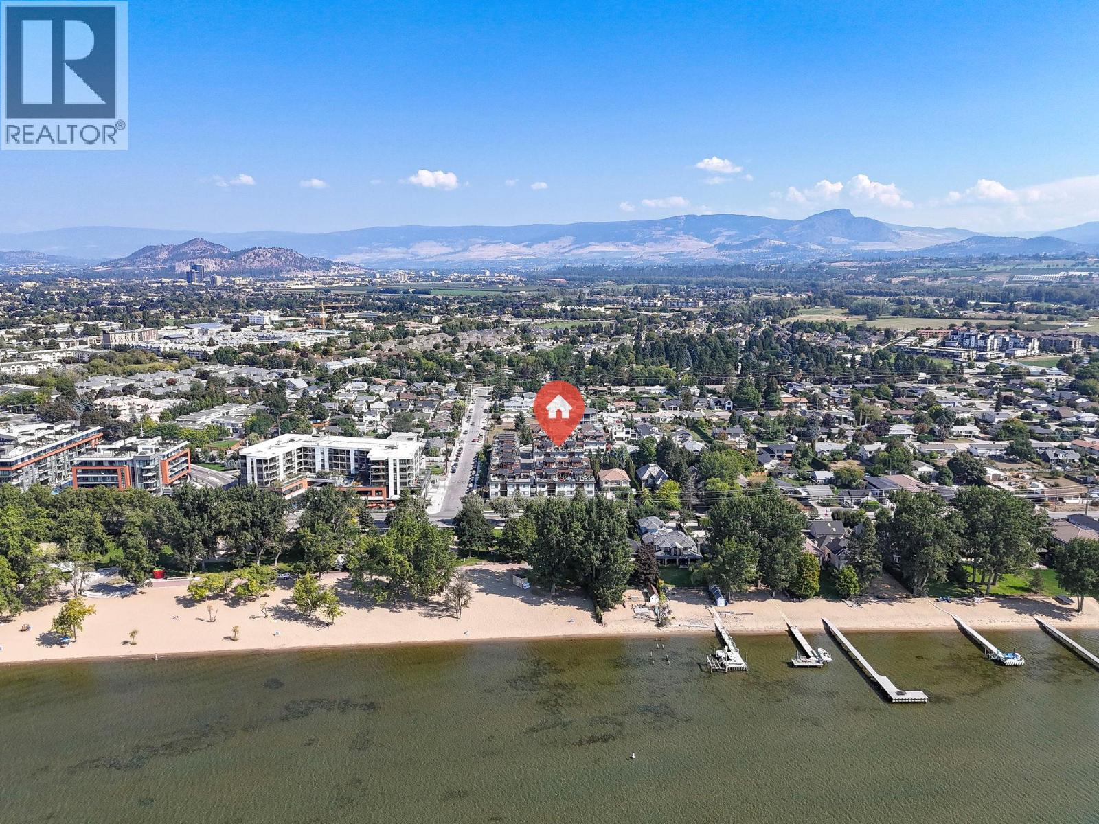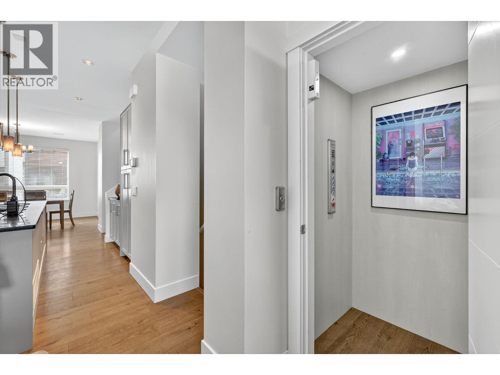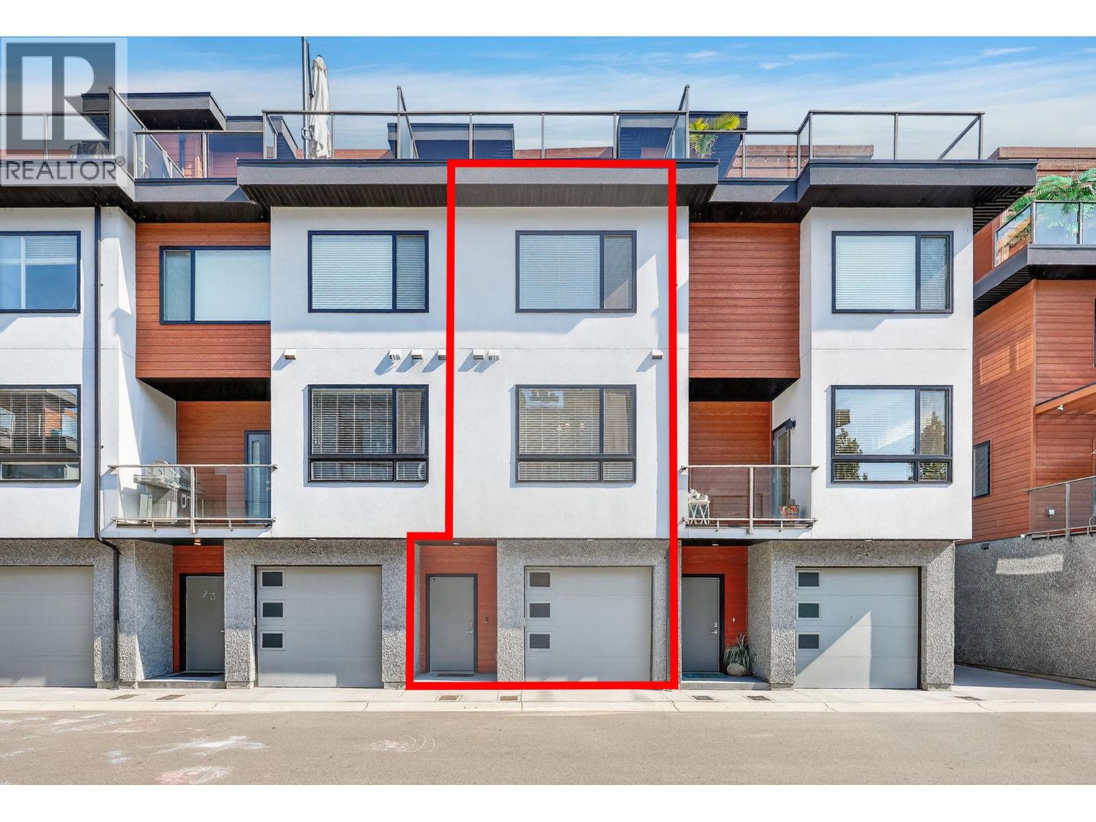 $352 MonthlyWelcome to luxury living in one of the most walkable neighbourhoods, just steps from Gyro Beach, Okanagan Lake, shopping, and dining. This stunning 2-bedroom, 2-bath townhouse offers nearly 1,500 sq. ft. of intelligently designed space, complete with a private in-unit elevator. The highlight is a rare 600 sq. ft. rooftop patio—perfect for entertaining or unwinding with unbeatable views. Inside, you’ll find an open-concept kitchen with a large island with built-in sink, quartz counters, soft-close cabinetry, stainless steel appliances, and a gas range. The bright living space is located on the quiet side of the building, offering both privacy and comfort. The second bedroom includes a convenient Murphy bed, maximizing versatility. The attached double garage provides secure parking and excellent storage with a ceiling/wall storage system, while additional street parking is right outside your door. Extras include a built-in vacuum, heated ensuite floors, forced air heat, central air conditioning and modern finishes throughout. Rooftop patios like this rarely come to market—especially this close to the water. Bring you pets as you can have one dog or one cat and there is no size restriction on dogs! Don’t miss your chance to own a true gem in the heart of the Okanagan. (id:61840)