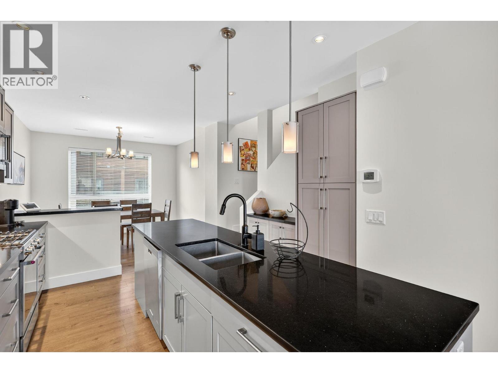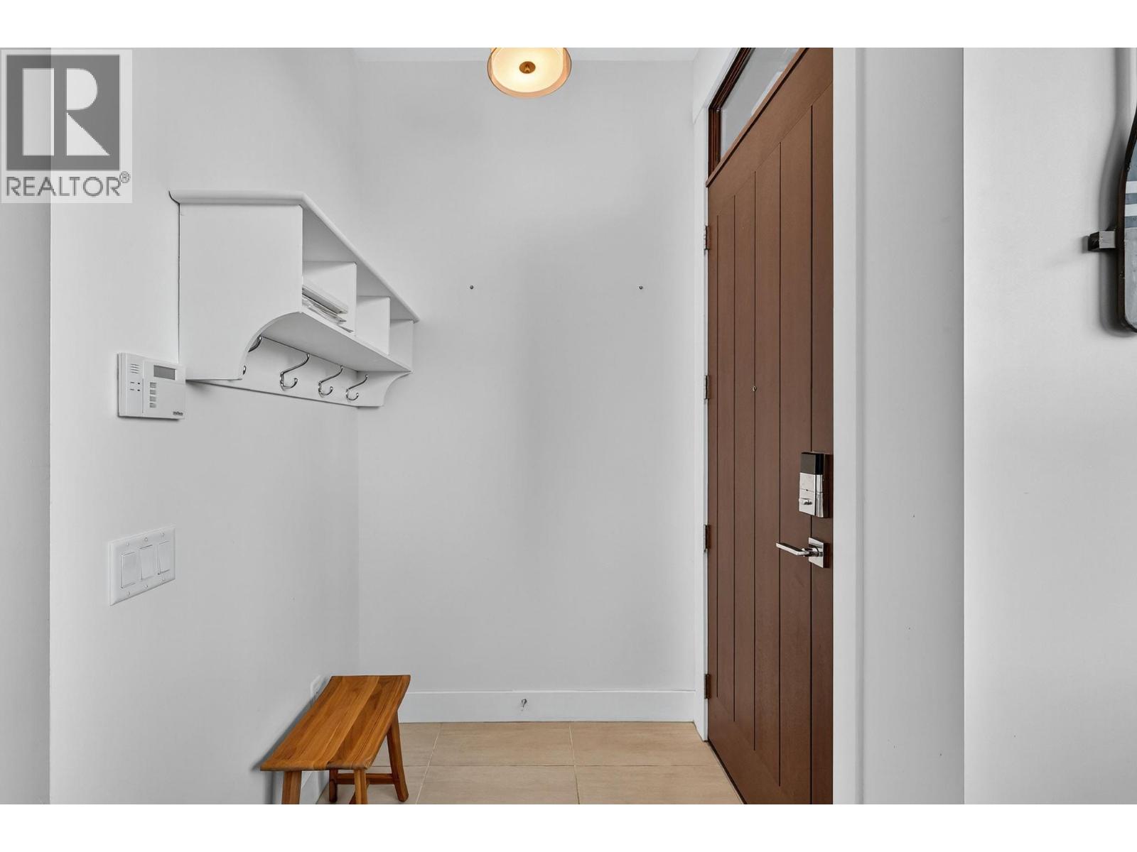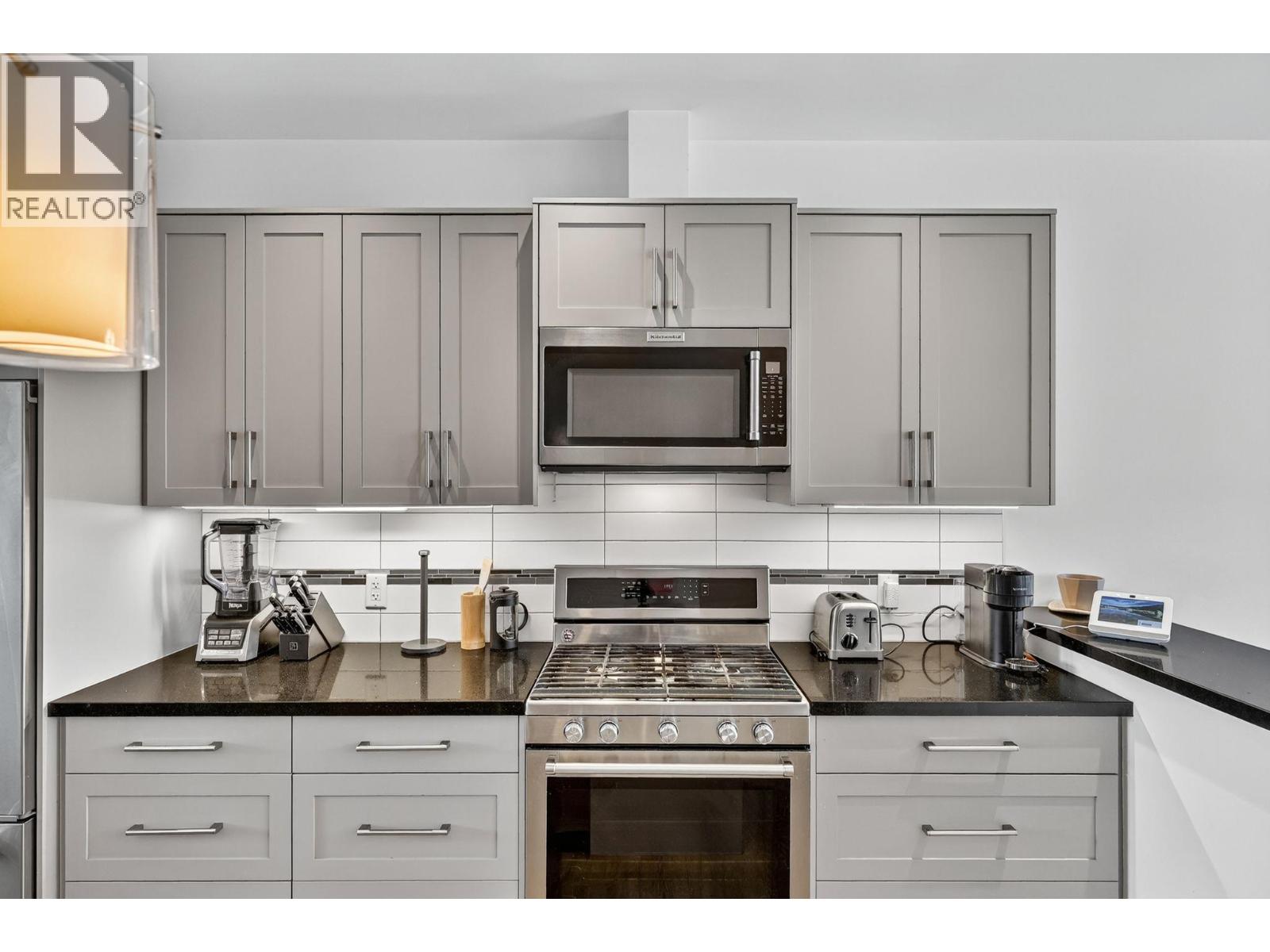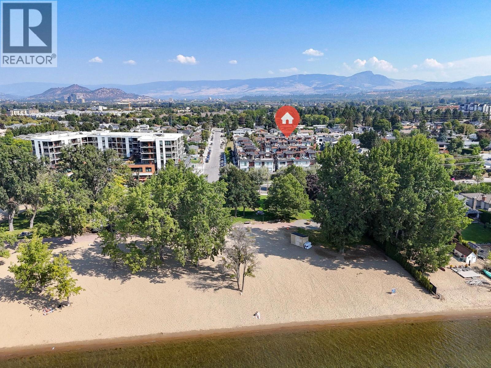 $352 MonthlyWelcome to luxury living in one of the most walkable neighbourhoods, just steps from Gyro Beach, Okanagan Lake, shopping, and dining. This stunning 2-bedroom, 2-bath townhouse offers nearly 1,500 sq. ft. of intelligently designed space, complete with a private in-unit elevator. The highlight is a rare 600 sq. ft. rooftop patio—perfect for entertaining or unwinding with unbeatable views. Inside, you’ll find an open-concept kitchen with a large island with built-in sink, quartz counters, soft-close cabinetry, stainless steel appliances, and a gas range. The bright living space is located on the quiet side of the building, offering both privacy and comfort. The second bedroom includes a convenient Murphy bed, maximizing versatility. The attached double garage provides secure parking and excellent storage with a ceiling/wall storage system, while additional street parking is right outside your door. Extras include a built-in vacuum, heated ensuite floors, forced air heat, central air conditioning and modern finishes throughout. Rooftop patios like this rarely come to market—especially this close to the water. Bring you pets as you can have one dog or one cat and there is no size restriction on dogs! Don’t miss your chance to own a true gem in the heart of the Okanagan. (id:61840)