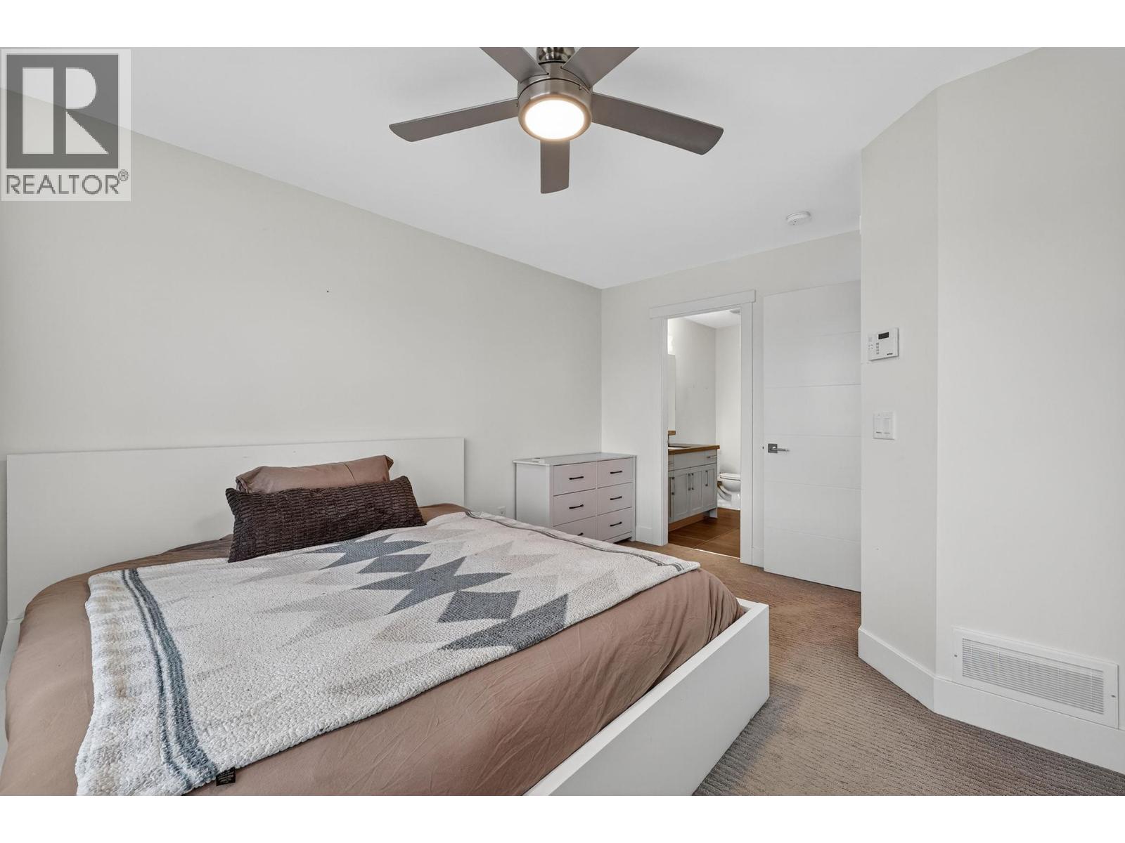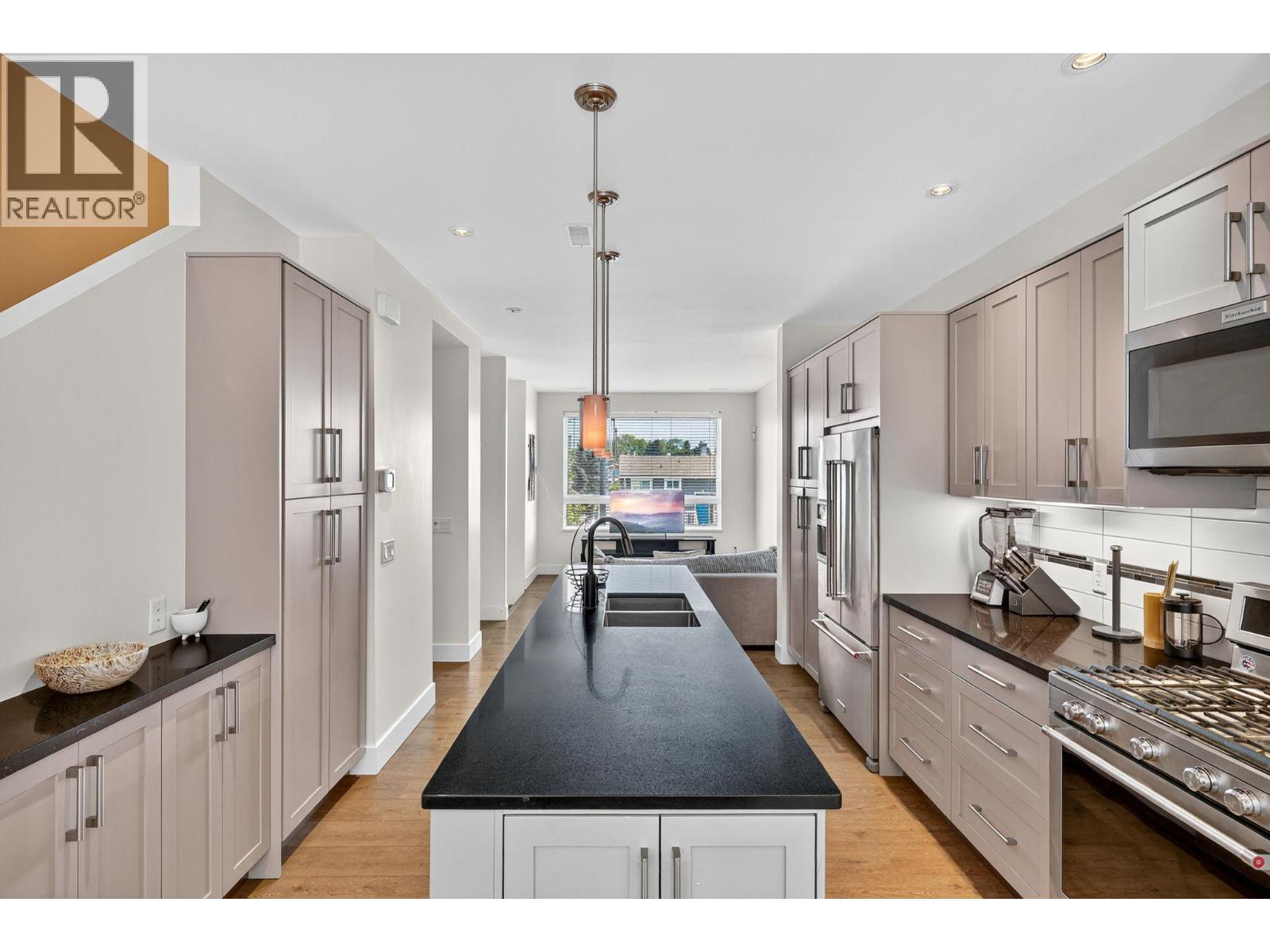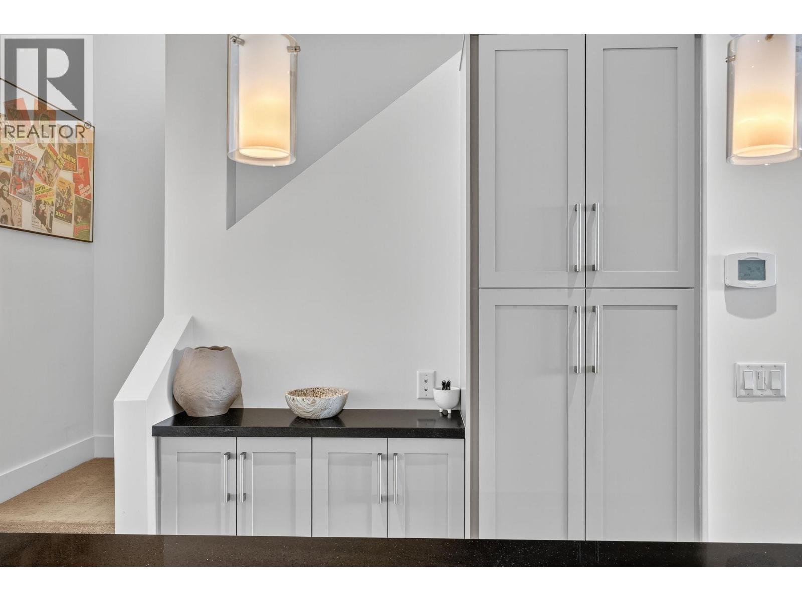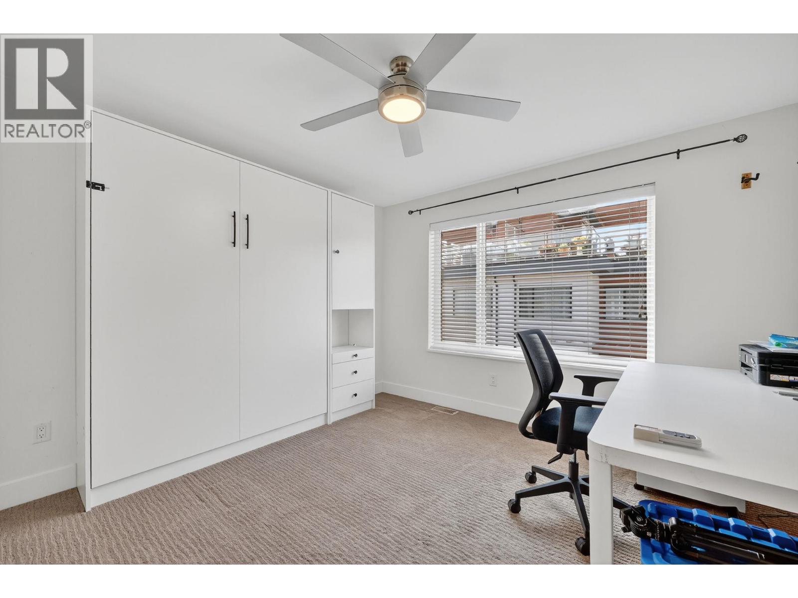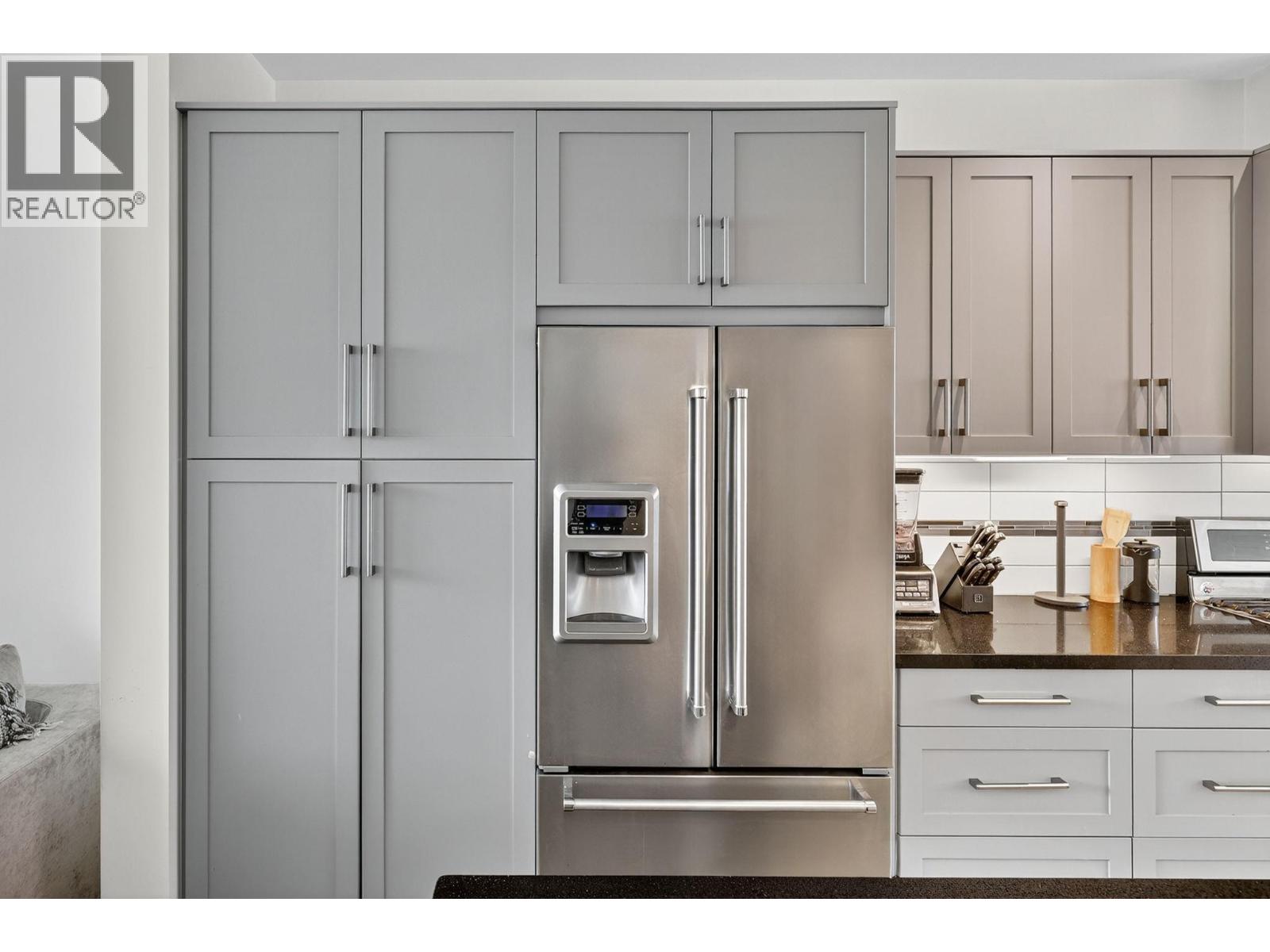 $352 MonthlyWelcome to luxury living in one of the most walkable neighbourhoods, just steps from Gyro Beach, Okanagan Lake, shopping, and dining. This stunning 2-bedroom, 2-bath townhouse offers nearly 1,500 sq. ft. of intelligently designed space, complete with a private in-unit elevator. The highlight is a rare 600 sq. ft. rooftop patio—perfect for entertaining or unwinding with unbeatable views. Inside, you’ll find an open-concept kitchen with a large island with built-in sink, quartz counters, soft-close cabinetry, stainless steel appliances, and a gas range. The bright living space is located on the quiet side of the building, offering both privacy and comfort. The second bedroom includes a convenient Murphy bed, maximizing versatility. The attached double garage provides secure parking and excellent storage with a ceiling/wall storage system, while additional street parking is right outside your door. Extras include a built-in vacuum, heated ensuite floors, forced air heat, central air conditioning and modern finishes throughout. Rooftop patios like this rarely come to market—especially this close to the water. Bring you pets as you can have one dog or one cat and there is no size restriction on dogs! Don’t miss your chance to own a true gem in the heart of the Okanagan. (id:61840)