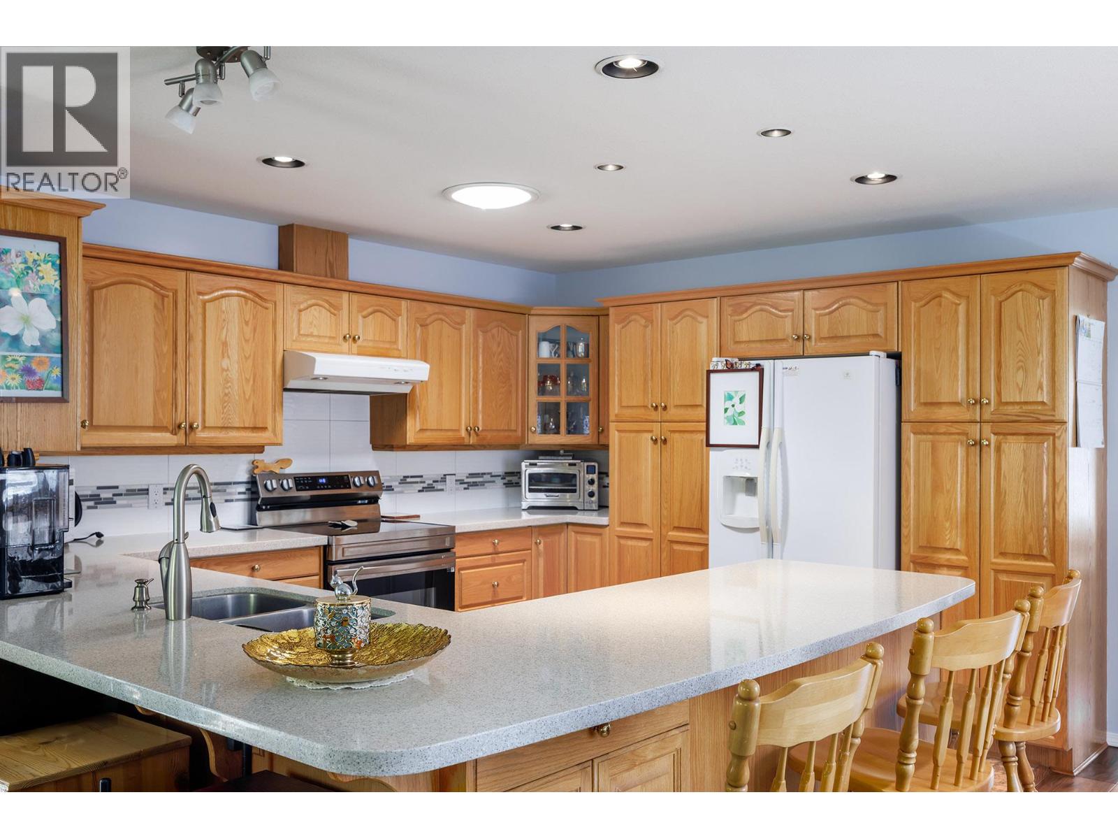 Just Listed! Your Dream Home Awaits! Welcome to this stunning 4-bedroom, 3-bathroom beauty in the family-friendly neighborhood of Magic Estates and just steps away from Knox Mountain! This well-designed home is perfect for growing families or those who love to entertain. The updated kitchen is a chef's dream, featuring a large peninsula, sleek quartz countertops, and brand new appliances—including a 2024 stove and a 2023 dishwasher. The main floor features gorgeous engineered hardwood floors throughout, and you’ll love the extra warmth and coziness from the heated floors in the front and garage entrance along with the basement bathroom. This home is packed with updates that bring peace of mind: the high-efficiency furnace (2022), hot water tank (2022), and new roof (2021) all ensure you’re set for years to come. Plus, all plumbing was replaced in 2024 (no Poly B)! The private backyard feels like your own oasis, with lush perennials, an irrigation system, and an 8x12 shed for extra storage. It's perfect for BBQs, family gatherings, or just unwinding after a long day. Bonus: suite potential and cold room storage for even more flexibility! Need parking? No problem—there's tons of space for your vehicles, including the attached double garage. Located on a quiet street with easy access to everything, this home is all about comfort, style, and convenience. Don’t miss out—book your showing today! (id:61840)