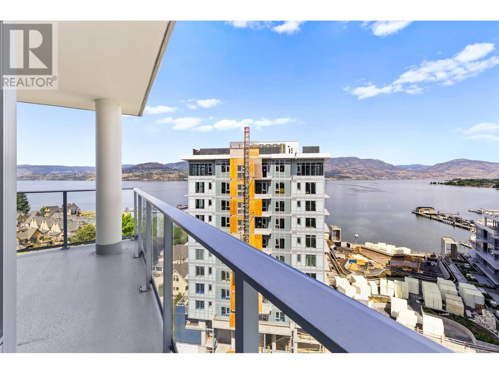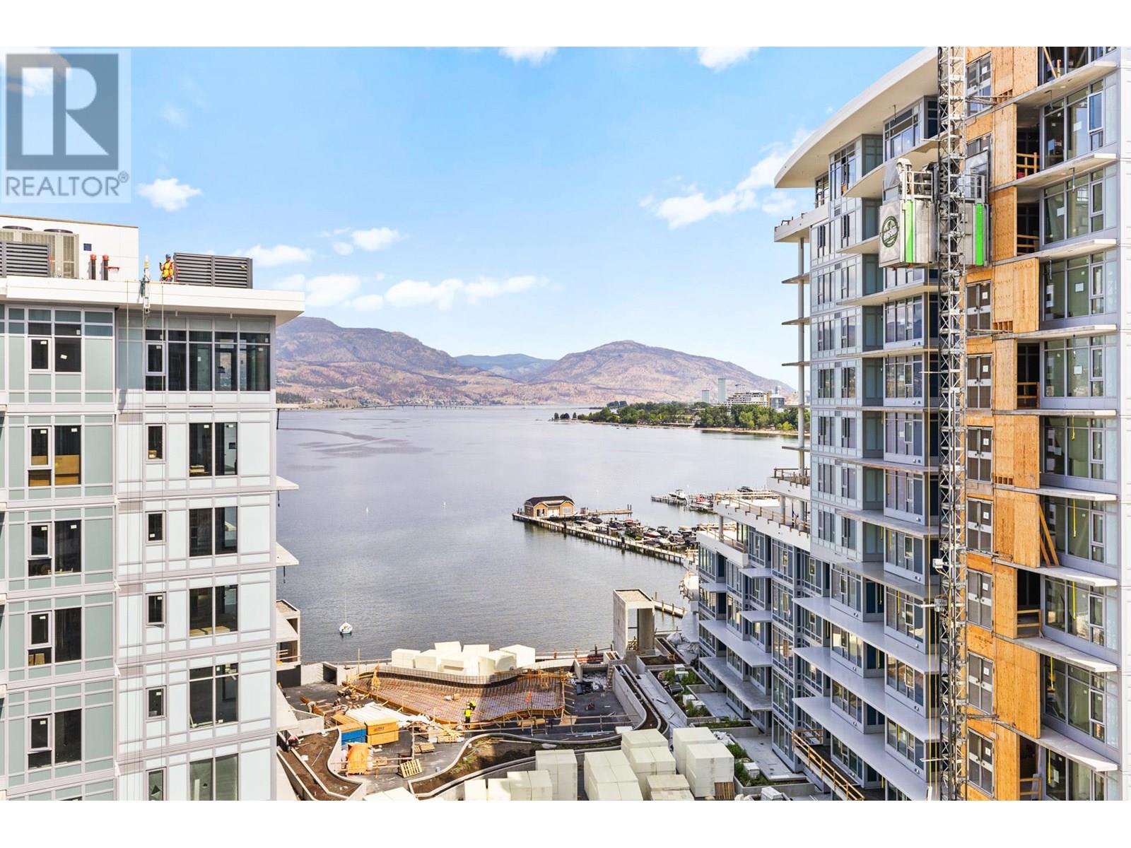 $624 MonthlyWelcome to AQUA Waterfront Village, Kelowna’s premier waterfront community. Take advantage of Kelowna's premier boat club, AQUA Valet. This service provides secured boat storage and concierge access directly on site! VIP membership is yet another perk of owning at AQUA. Located along the sandy beach of Lake Okanagan, this South West-facing sub-penthouse features a massive patio and tons of flexibility, with stunning views of the lake and mountains. This unit has a generous 1,140 sqft of interior living space, with a massive open concept living space, plus a fantastic den/office/flex room. With high ceilings and a beautiful modern colour scheme, you will feel a sense of welcome here. Featuring a flexible split layout with 2 bedrooms and 2 bathrooms, beautiful appliances and full size laundry room, with forced air heating and cooling to keep comfortable all year around. AQUA has extensive amenities including gorgeous outdoor pool and hot tub, impressive fitness centre, co-working spaces, multiple common gathering spaces, dog wash, and more. A short stroll to shops and all amenities, and of course a stunning lakefront boardwalk and sandy beach. Incredible opportunity to take advantage of a lifestyle only AQUA can provide. Two parking stalls + secured storage! Quick possession available. (id:61840)