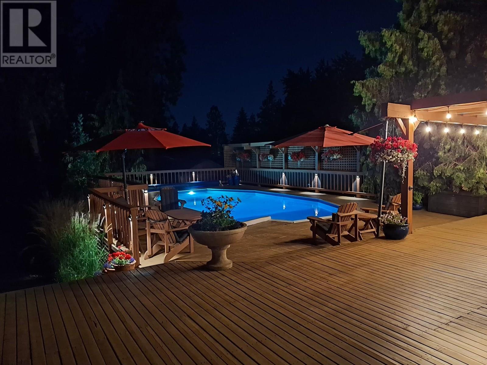 Welcome to paradise at 3950 June Springs Road! This stunning home offers privacy and convenience. Pull into the courtyard-style driveway, or insulated 2-car garage, with ample parking for your RV. Step inside to a bright, open-concept living space, boasting high-quality 3/4"" Brazilian Tiger wood floors. The entertainer’s kitchen incl SS appliances, granite countertops, + stylish layout designed for memorable gatherings. Furniture + decor are negotiable, perfect for snowbirds seeking a turnkey summer retreat. The home is set up as a Smart Home, ready for a lock-and-leave lifestyle. Outdoor entertaining is a breeze w/ a built-in Napoleon BBQ + a large cedar deck surrounding a heated 16x32 chlorinated pool. Transition from the pool to hot tub, or retreat to the primary bdrm, feat. a walk-in closet + a luxurious 3-piece ensuite w/ heated floors. An additional bdrm + full 4-piece bathroom on the main level adds convenience for family or guests. Downstairs, enjoy a large family room w/ a pool table, movie/tv area, and a dry bar. Two more bedrooms, a full 3-piece bathroom with a tiled shower, + laundry area complete the lower level. The park-like backyard is lush w/ mature landscaping, towering trees, and two workshops for the hobbyist. Smart irrigation keeps your garden thriving, even when you’re away. Rumohr Creek runs through the property, typically flowing in April. This exceptional property offers endless opportunities—schedule your showing today and fall in love! (id:61840)