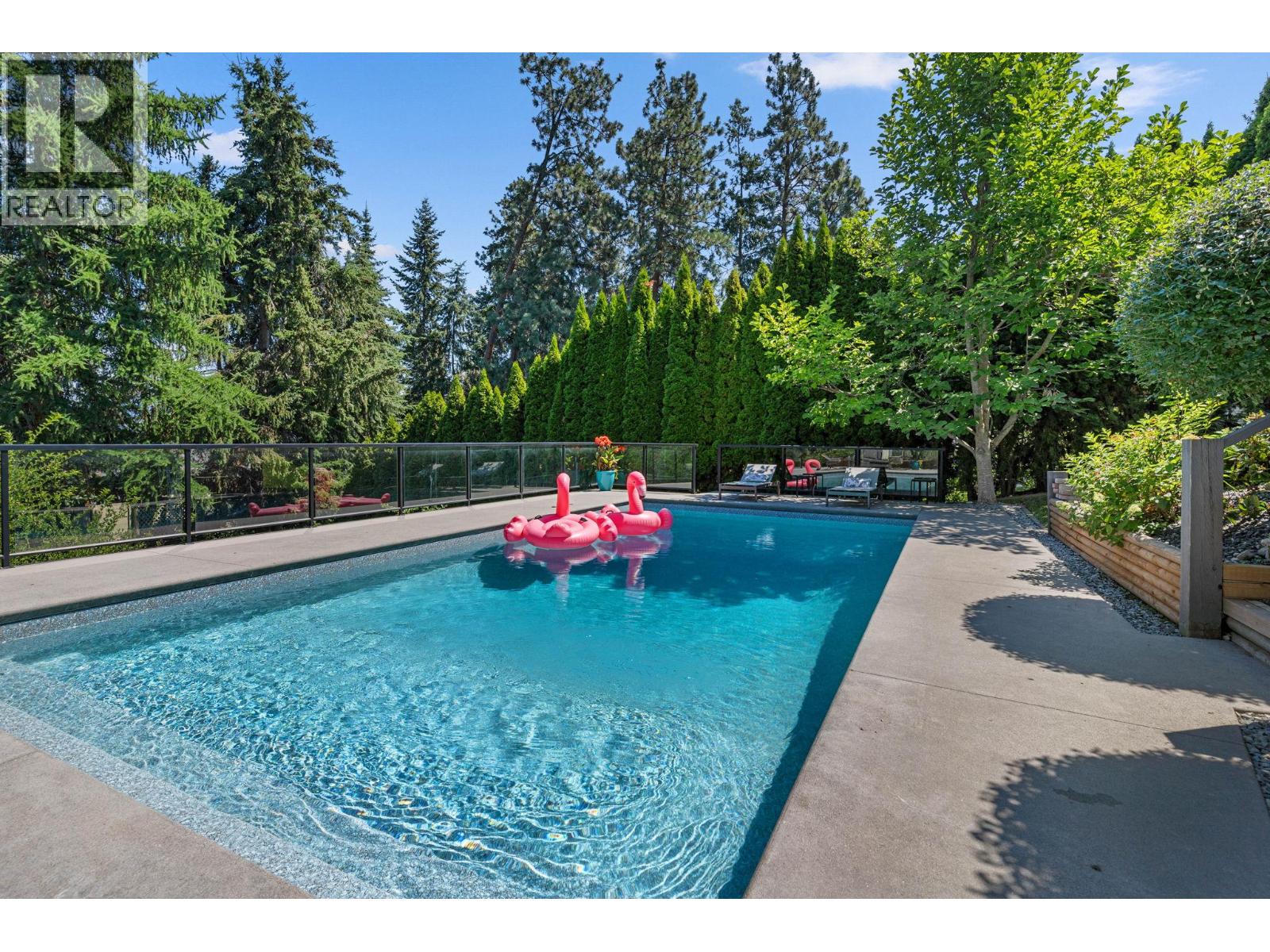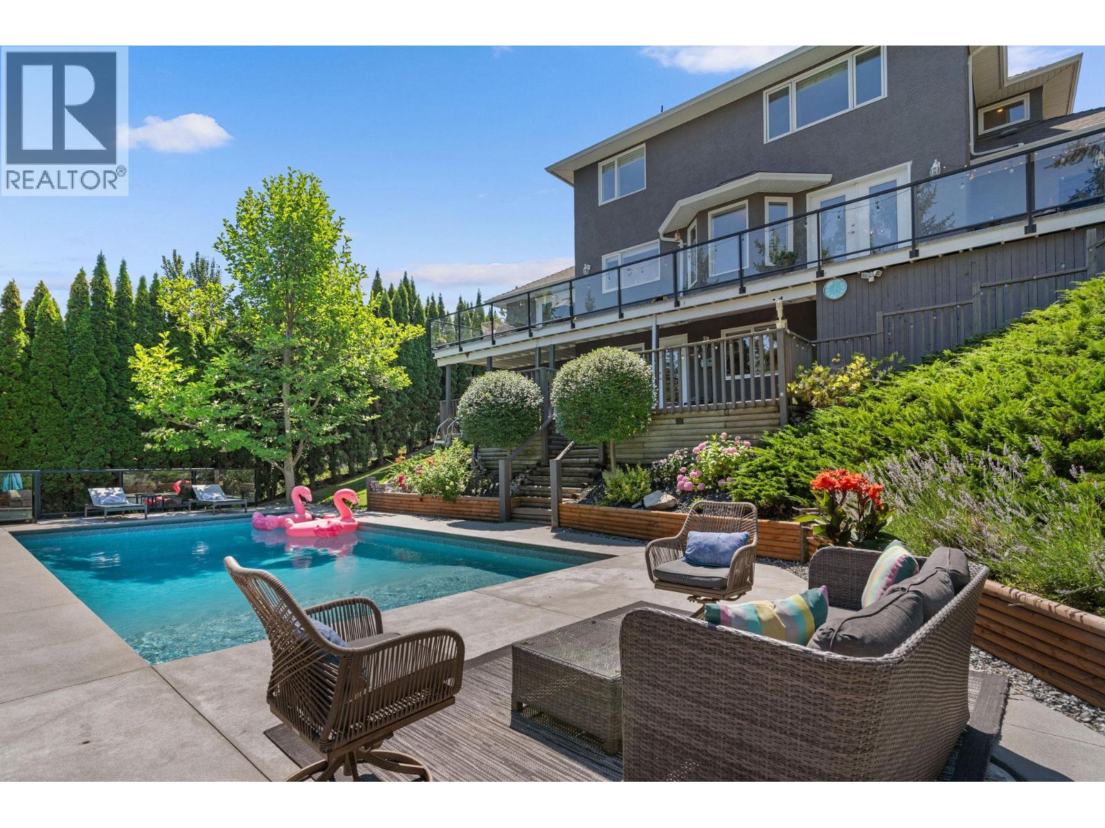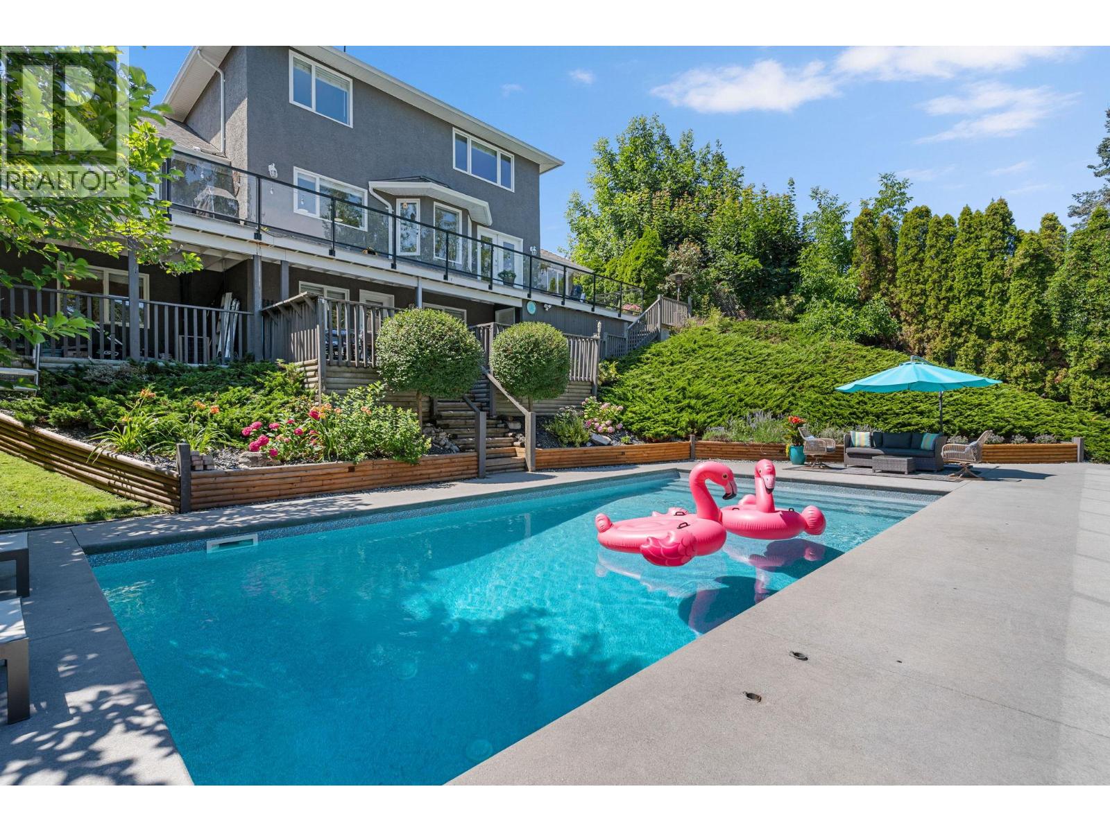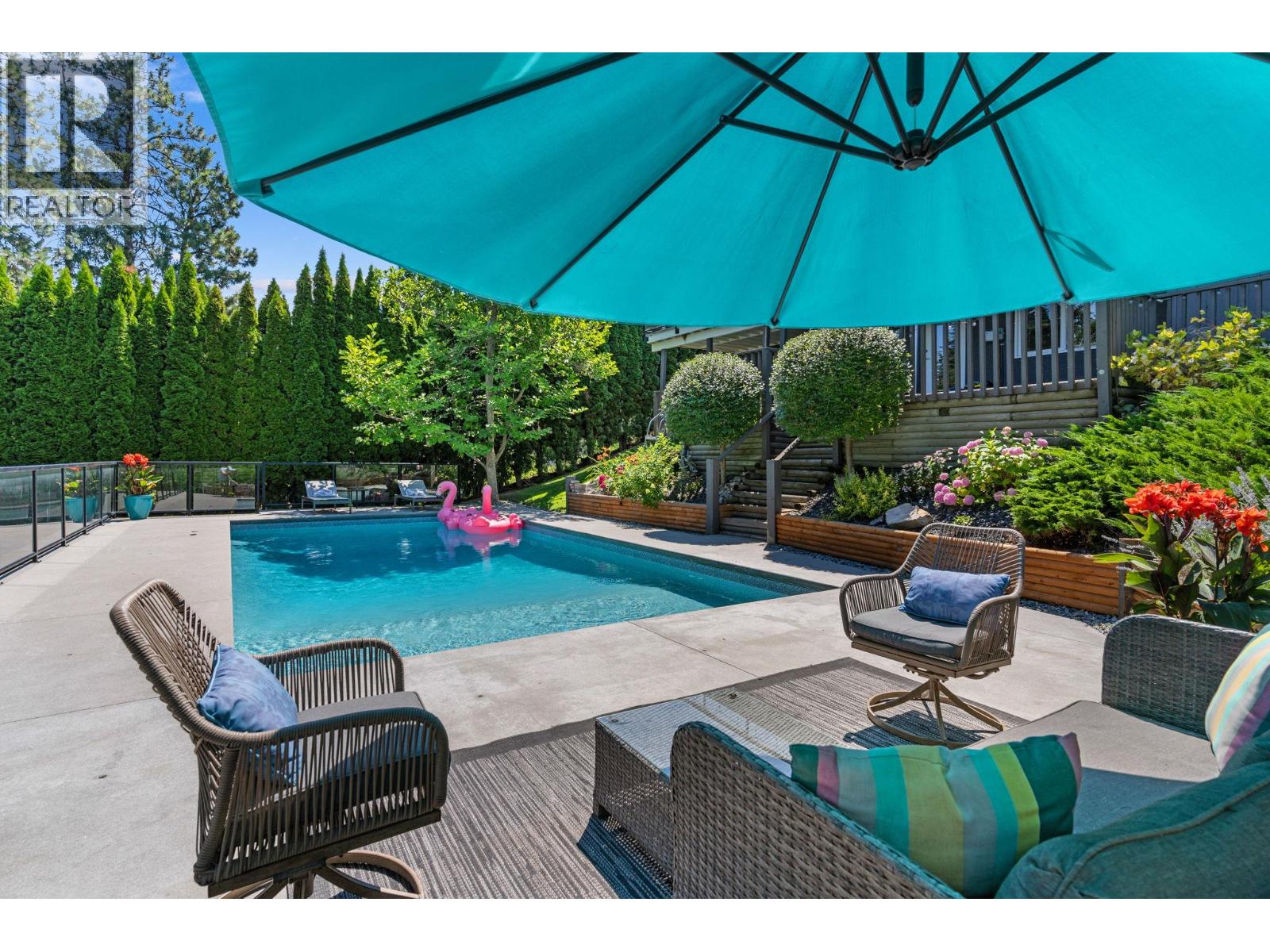 Beautifully updated two-storey plus walk-out basement family home nestled in the desirable neighborhood of Upper Mission, known for its safe streets, and family-friendly atmosphere. You'll love the curb appeal, with lush landscaping, RV parking, and a flat driveway for easy access. Step inside to a grand entryway that opens into a stylish front sitting room and formal dining area, featuring site-finished oak hardwood throughout. The updated kitchen offers stainless steel appliances, ample cabinetry, and a modern design that flows seamlessly into the cozy family room—perfect for everyday living and entertaining. Upstairs are two bright bedrooms, a full 4-piece bathroom plus a large primary suite. The primary suite is a true retreat, with French doors, lake and mountain views, and a fully renovated ensuite featuring dual sinks, a jetted soaker tub, a private toilet room, and a walk-in steam shower. The basement offers versatility—it’s currently set up as a large rec room and guest space, but could easily be converted into a one-bedroom suite. The tiered backyard is a private oasis with mature landscaping and a inground salt water pool, ideal for summer enjoyment and entertaining. Located within walking distance to Chute Lake Elementary, Walking Trails, Parks, Coffee Shop and Restaurant. (id:61840)