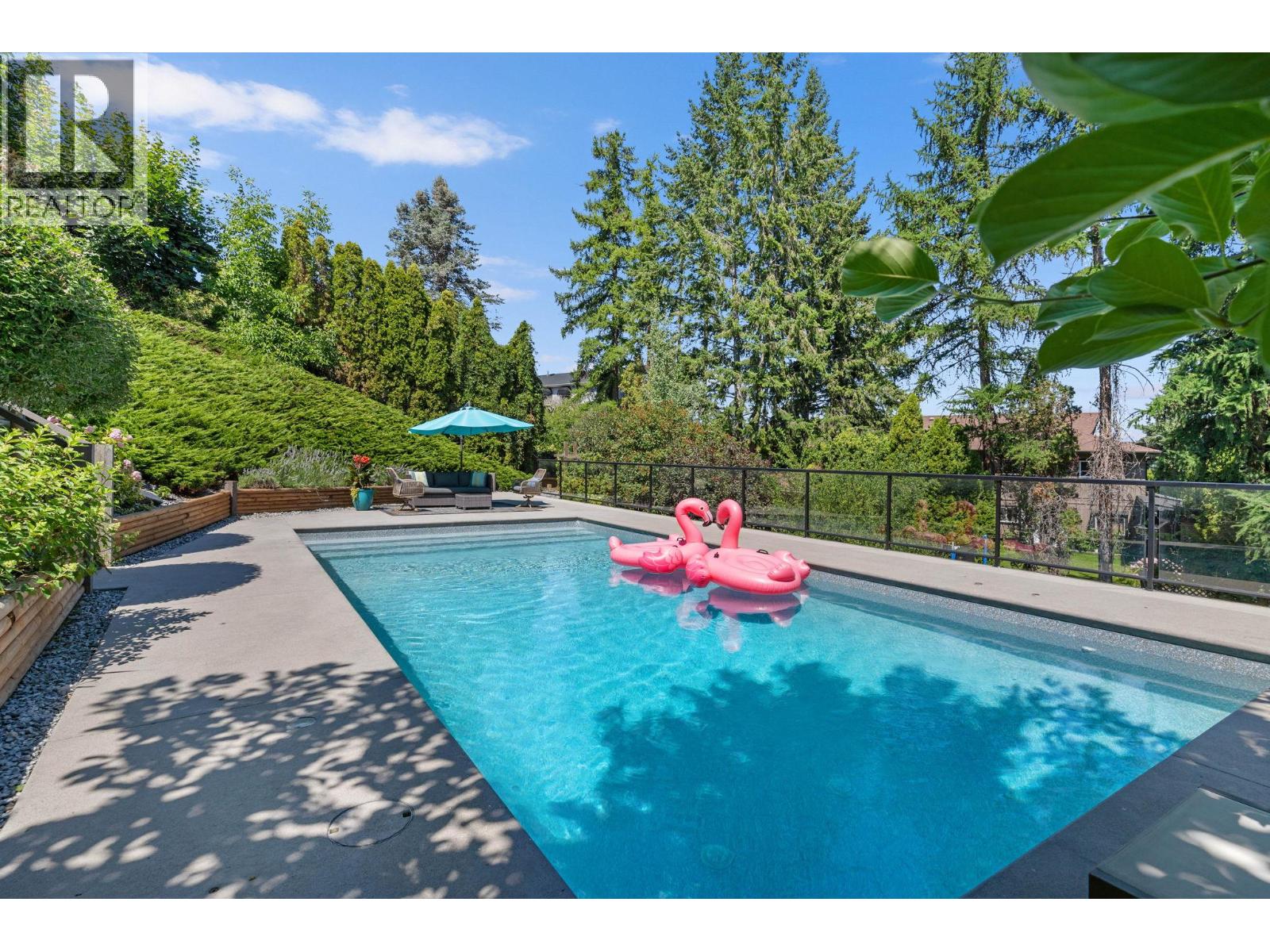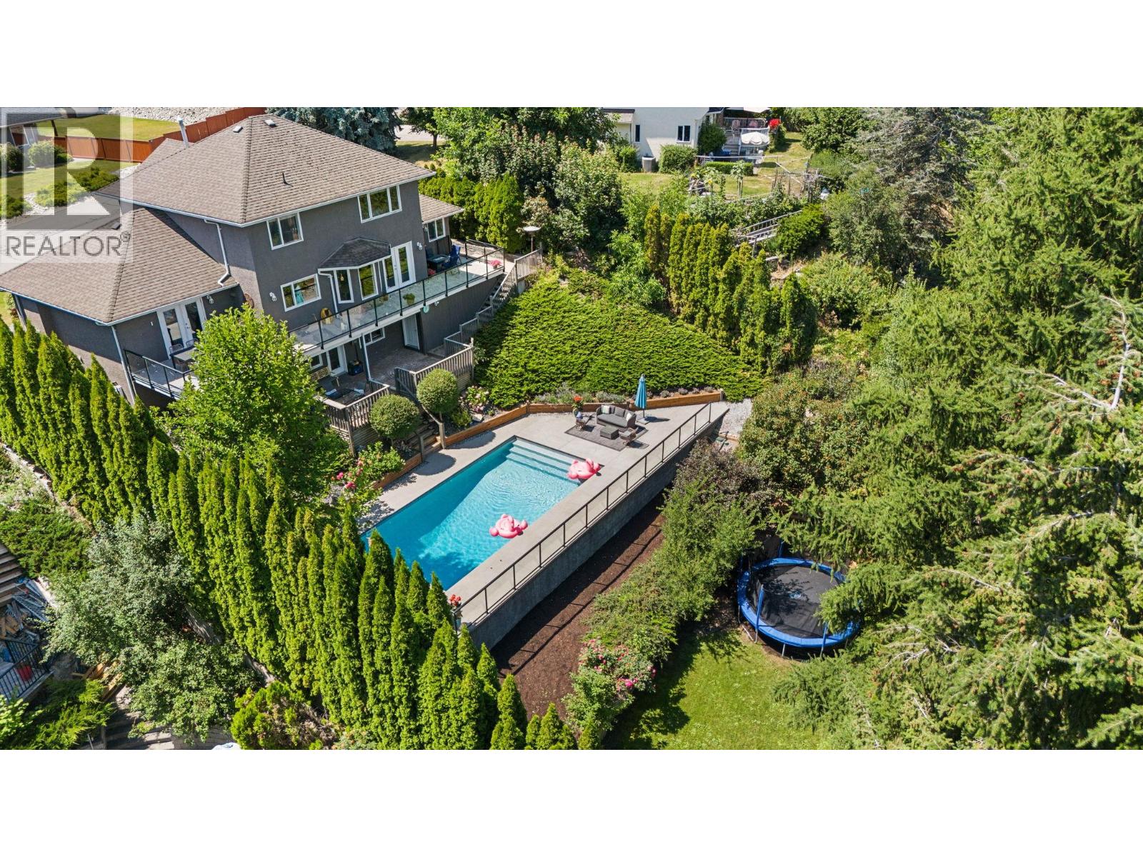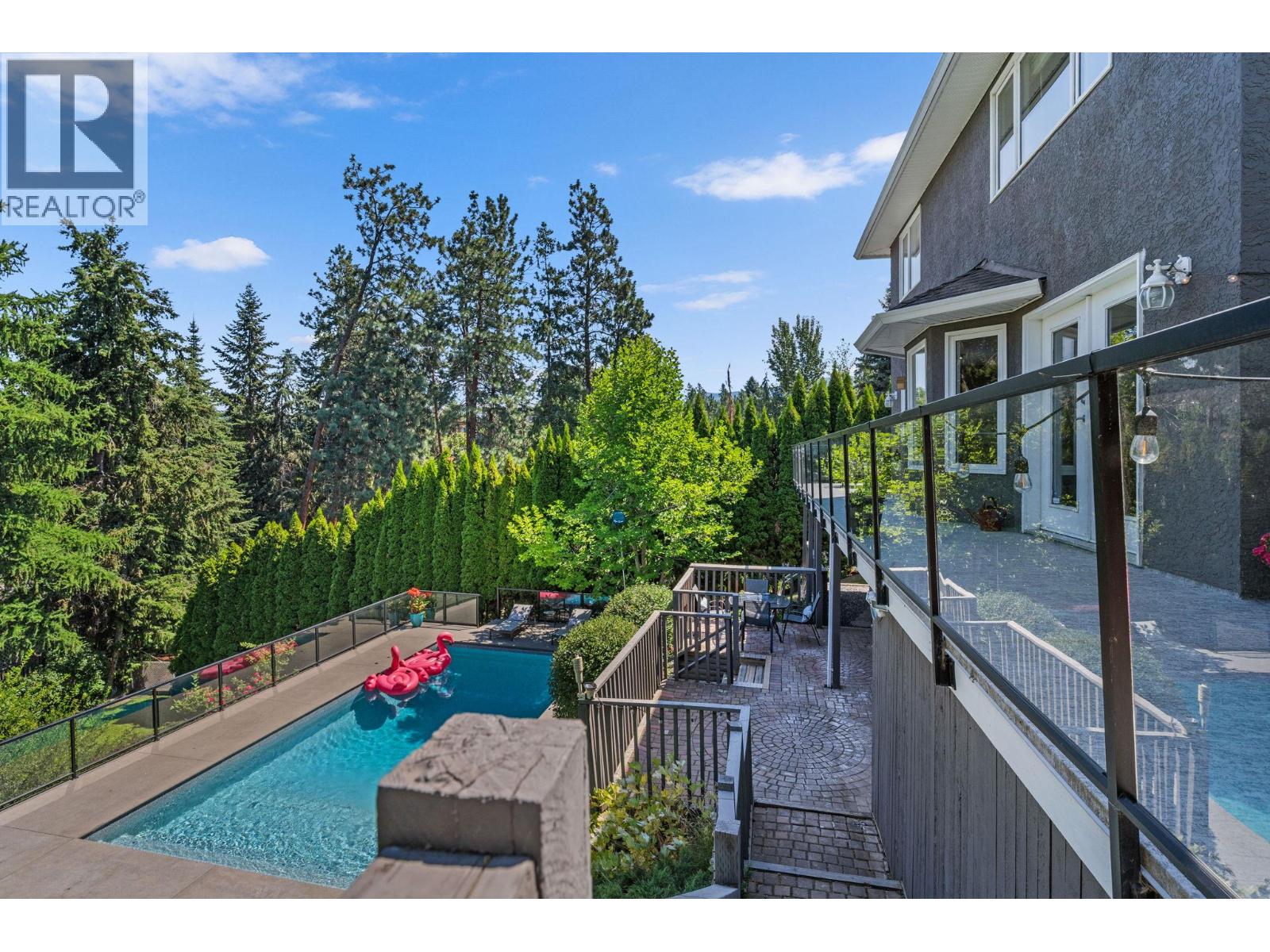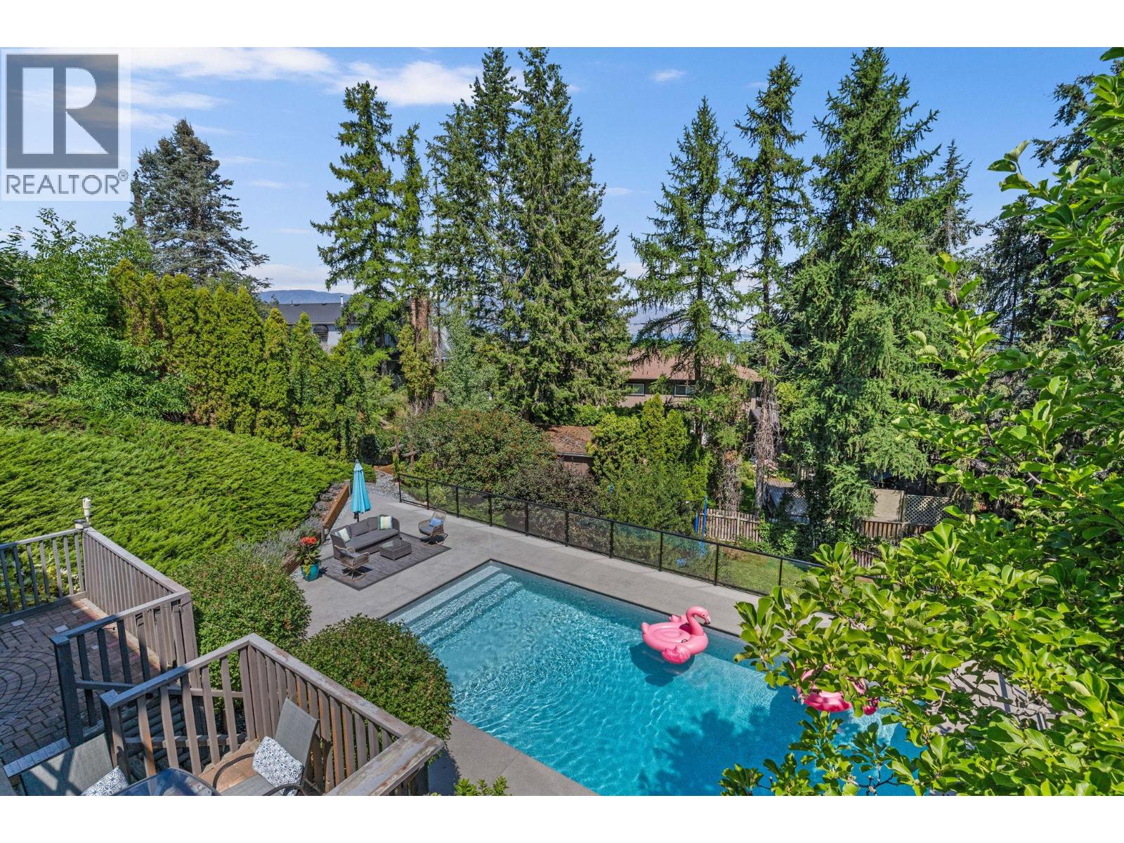 Beautifully updated two-storey plus walk-out basement family home nestled in the desirable neighborhood of Upper Mission, known for its safe streets, and family-friendly atmosphere. You'll love the curb appeal, with lush landscaping, RV parking, and a flat driveway for easy access. Step inside to a grand entryway that opens into a stylish front sitting room and formal dining area, featuring site-finished oak hardwood throughout. The updated kitchen offers stainless steel appliances, ample cabinetry, and a modern design that flows seamlessly into the cozy family room—perfect for everyday living and entertaining. Upstairs are two bright bedrooms, a full 4-piece bathroom plus a large primary suite. The primary suite is a true retreat, with French doors, lake and mountain views, and a fully renovated ensuite featuring dual sinks, a jetted soaker tub, a private toilet room, and a walk-in steam shower. The basement offers versatility—it’s currently set up as a large rec room and guest space, but could easily be converted into a one-bedroom suite. The tiered backyard is a private oasis with mature landscaping and a inground salt water pool, ideal for summer enjoyment and entertaining. Located within walking distance to Chute Lake Elementary, Walking Trails, Parks, Coffee Shop and Restaurant. (id:61840)