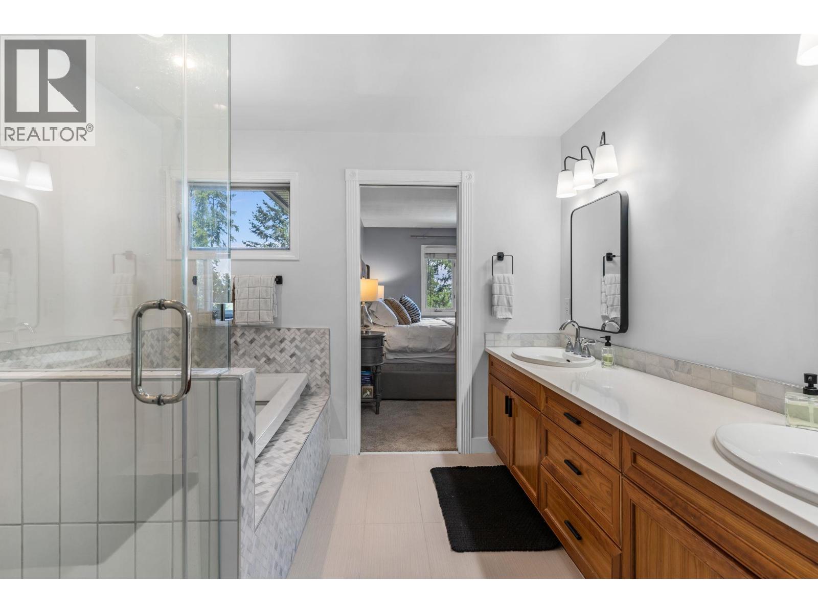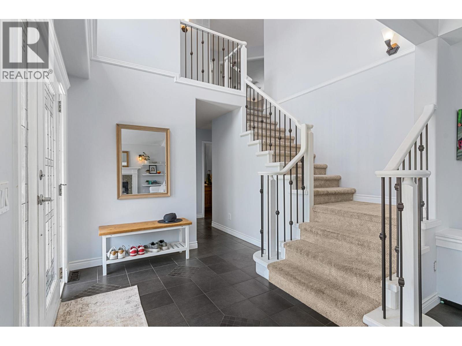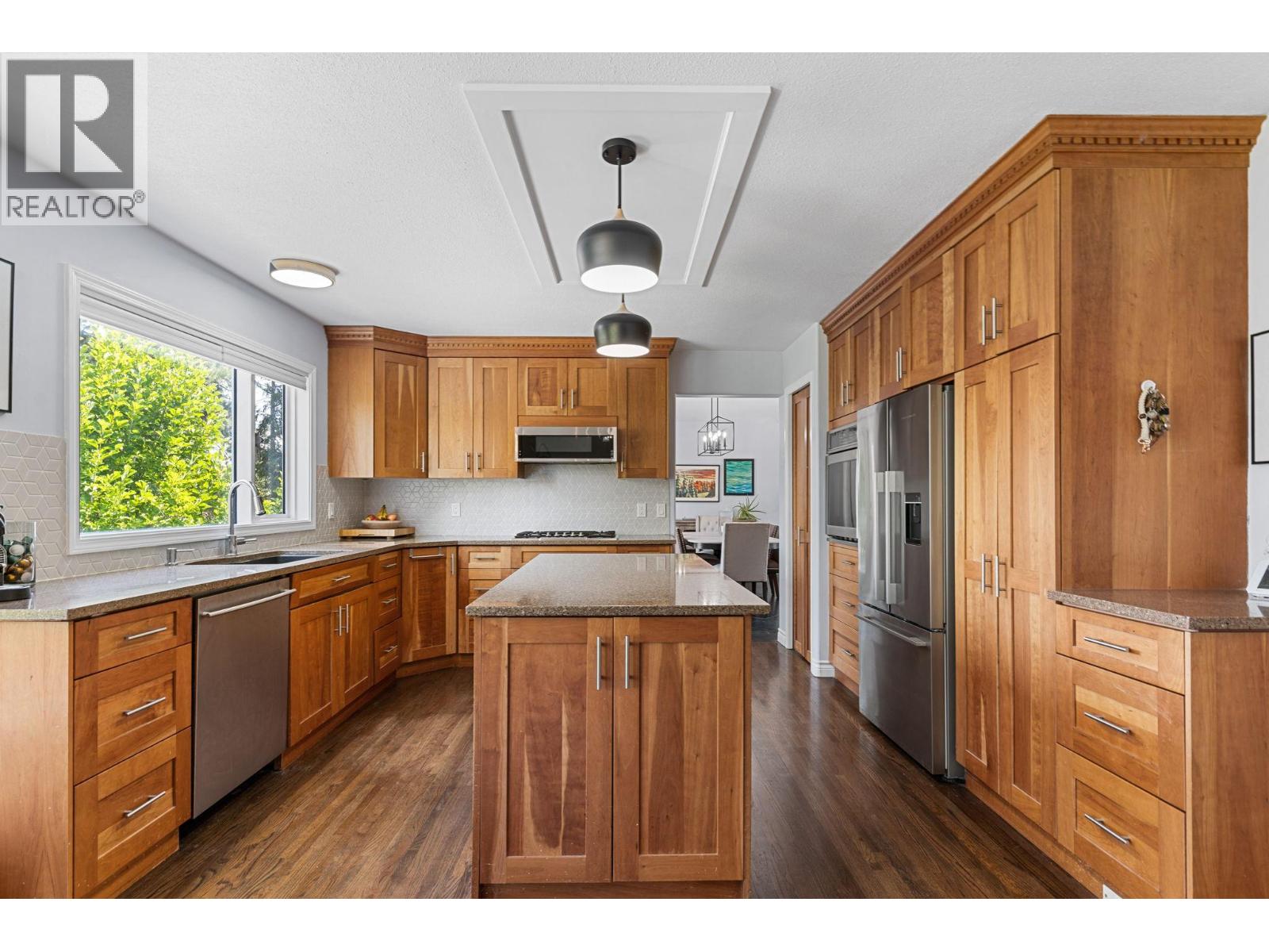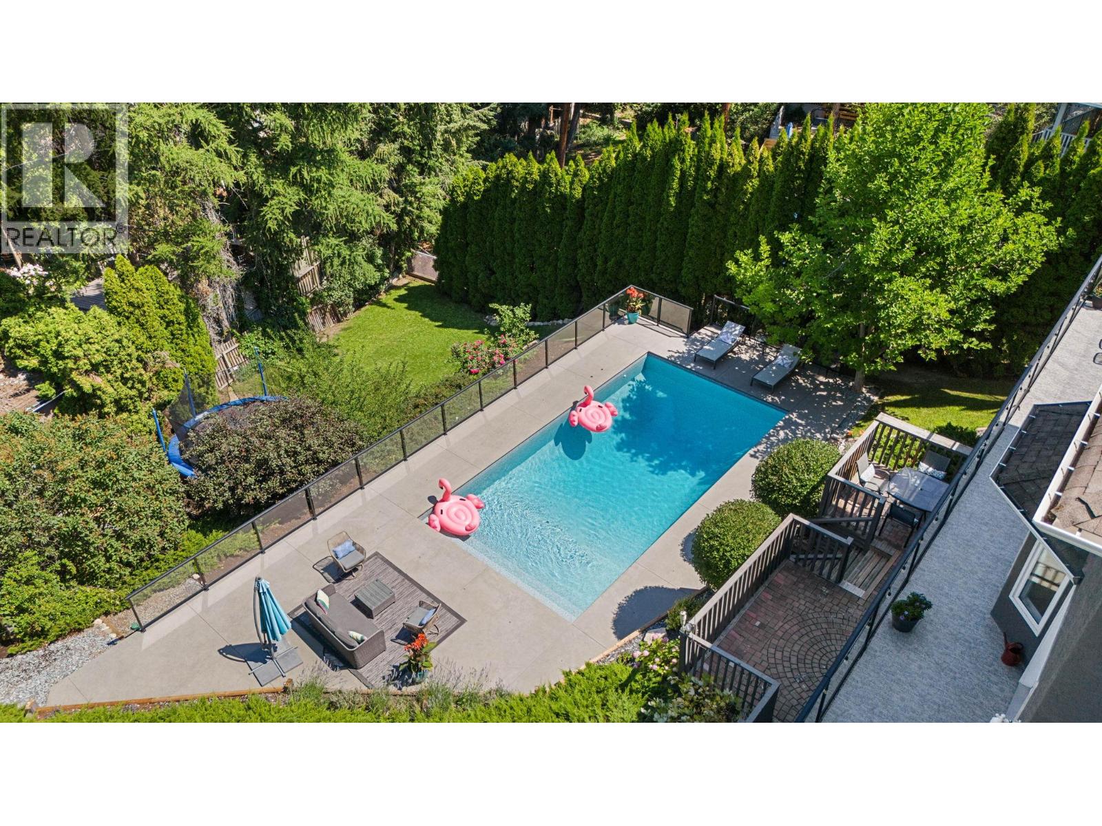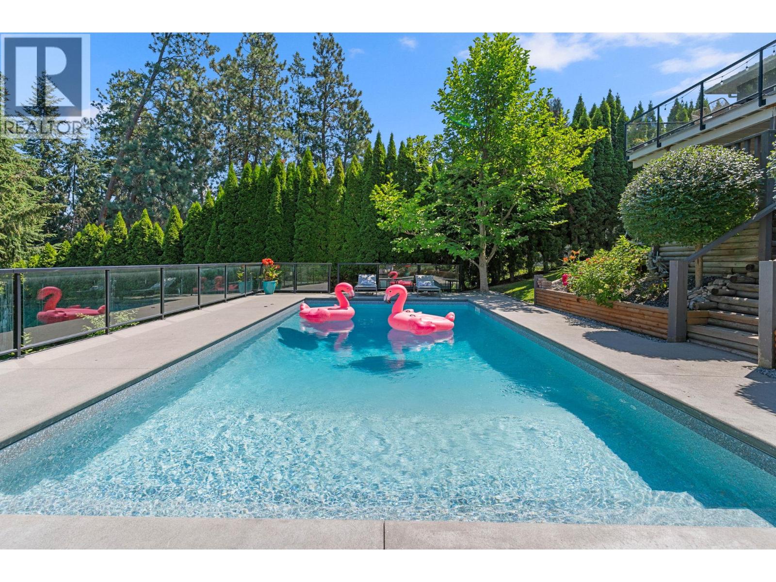 Beautifully updated two-storey plus walk-out basement family home nestled in the desirable neighborhood of Upper Mission, known for its safe streets, and family-friendly atmosphere. You'll love the curb appeal, with lush landscaping, RV parking, and a flat driveway for easy access. Step inside to a grand entryway that opens into a stylish front sitting room and formal dining area, featuring site-finished oak hardwood throughout. The updated kitchen offers stainless steel appliances, ample cabinetry, and a modern design that flows seamlessly into the cozy family room—perfect for everyday living and entertaining. Upstairs are two bright bedrooms, a full 4-piece bathroom plus a large primary suite. The primary suite is a true retreat, with French doors, lake and mountain views, and a fully renovated ensuite featuring dual sinks, a jetted soaker tub, a private toilet room, and a walk-in steam shower. The basement offers versatility—it’s currently set up as a large rec room and guest space, but could easily be converted into a one-bedroom suite. The tiered backyard is a private oasis with mature landscaping and a inground salt water pool, ideal for summer enjoyment and entertaining. Located within walking distance to Chute Lake Elementary, Walking Trails, Parks, Coffee Shop and Restaurant. (id:61840)