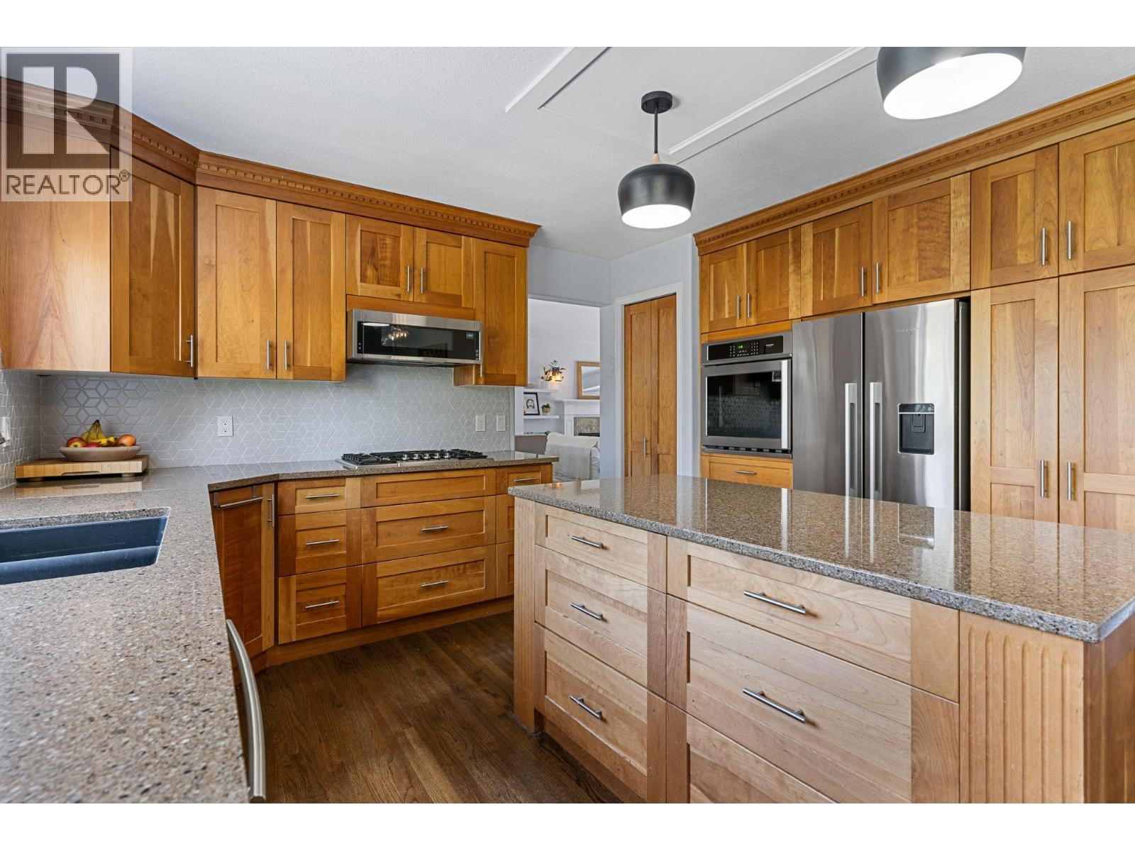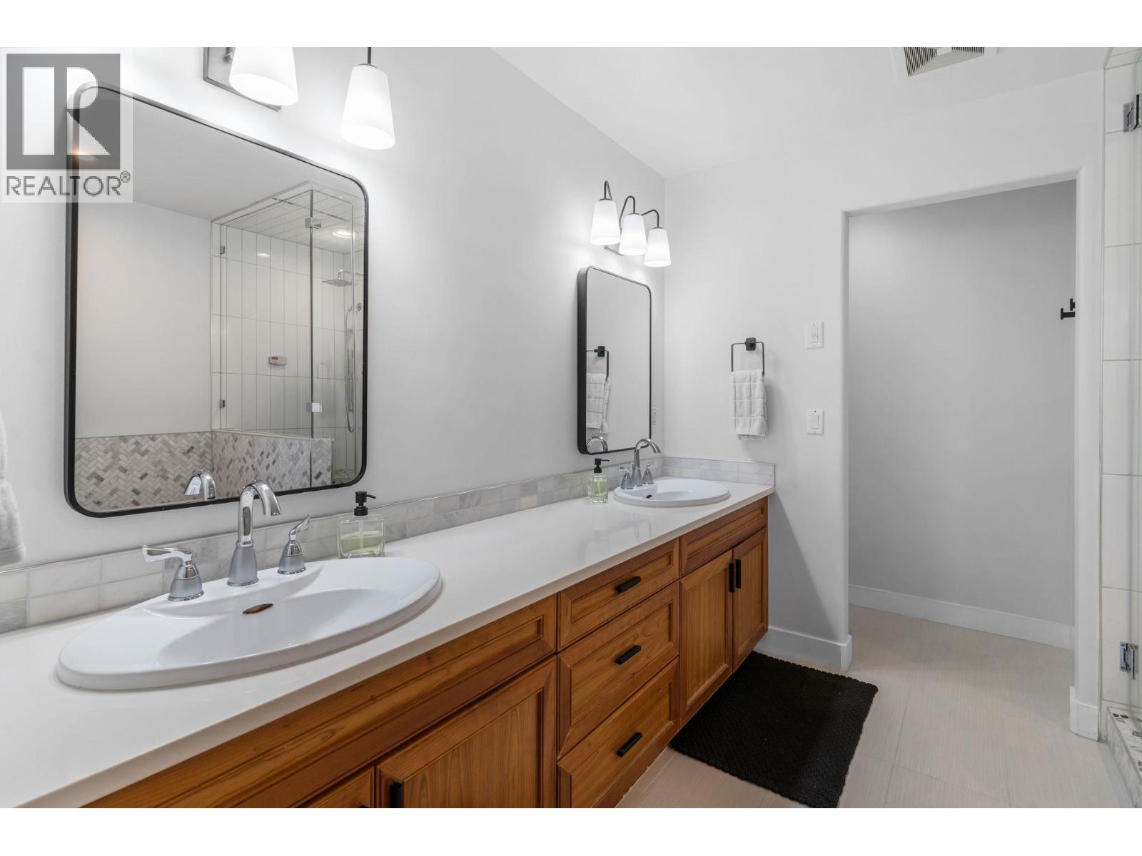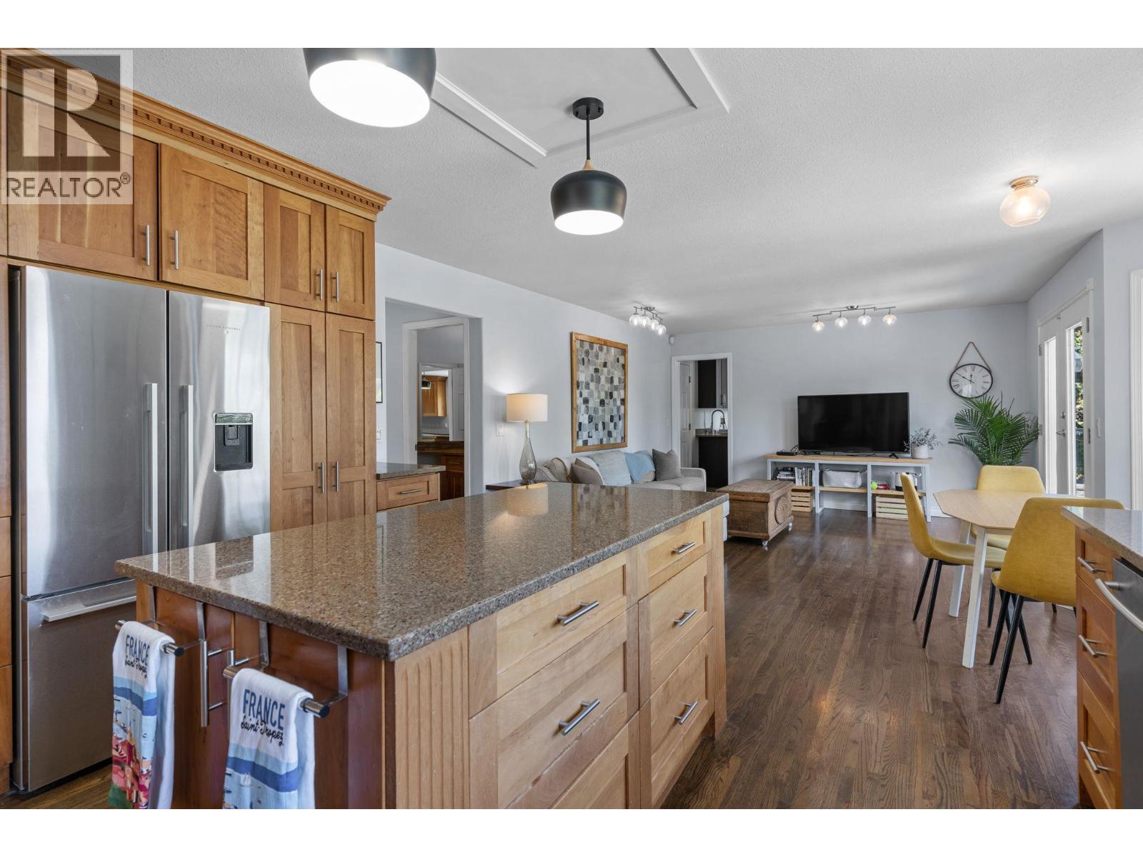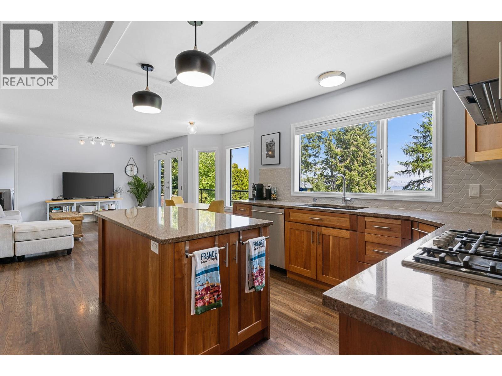 Beautifully updated two-storey plus walk-out basement family home nestled in the desirable neighborhood of Upper Mission, known for its safe streets, and family-friendly atmosphere. You'll love the curb appeal, with lush landscaping, RV parking, and a flat driveway for easy access. Step inside to a grand entryway that opens into a stylish front sitting room and formal dining area, featuring site-finished oak hardwood throughout. The updated kitchen offers stainless steel appliances, ample cabinetry, and a modern design that flows seamlessly into the cozy family room—perfect for everyday living and entertaining. Upstairs are two bright bedrooms, a full 4-piece bathroom plus a large primary suite. The primary suite is a true retreat, with French doors, lake and mountain views, and a fully renovated ensuite featuring dual sinks, a jetted soaker tub, a private toilet room, and a walk-in steam shower. The basement offers versatility—it’s currently set up as a large rec room and guest space, but could easily be converted into a one-bedroom suite. The tiered backyard is a private oasis with mature landscaping and a inground salt water pool, ideal for summer enjoyment and entertaining. Located within walking distance to Chute Lake Elementary, Walking Trails, Parks, Coffee Shop and Restaurant. (id:61840)