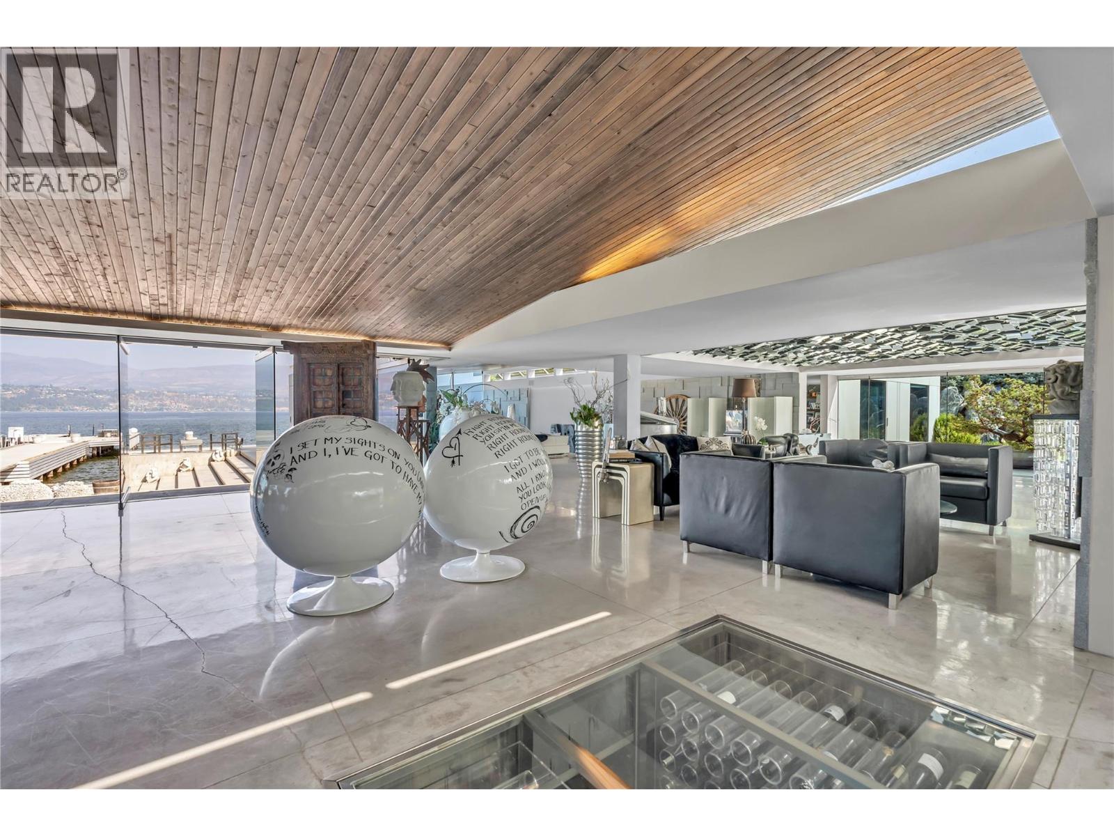 A Once-in-a-Generation Waterfront Opportunity Offered publicly for the first time in over two decades, this legendary waterfront estate is one of Kelowna’s most prestigious and iconic properties. Known as the “Rock House,” this extraordinary residence offers an unmatched combination of privacy, scale, and location. Set on 1.76 acres of beautifully landscaped grounds with 172 feet of shoreline along Okanagan Lake, the estate features a striking modernist mansion spanning over 8,600 sq ft (9,761 sq ft total). Designed for both elegant entertaining and relaxed living, the home’s expansive layout and stunning lake views provide a rare opportunity to own a true architectural landmark. With ample space to build a 20+ car garage or luxury accessory structures, this private compound is ideal as a secluded retreat or multi-generational estate. Last sold in 2005 and held in private hands ever since, the Rock House has never been publicly offered—until now. This is a legacy property on one of Kelowna’s most coveted lakefront addresses that simply cannot be replicated. (id:61840)