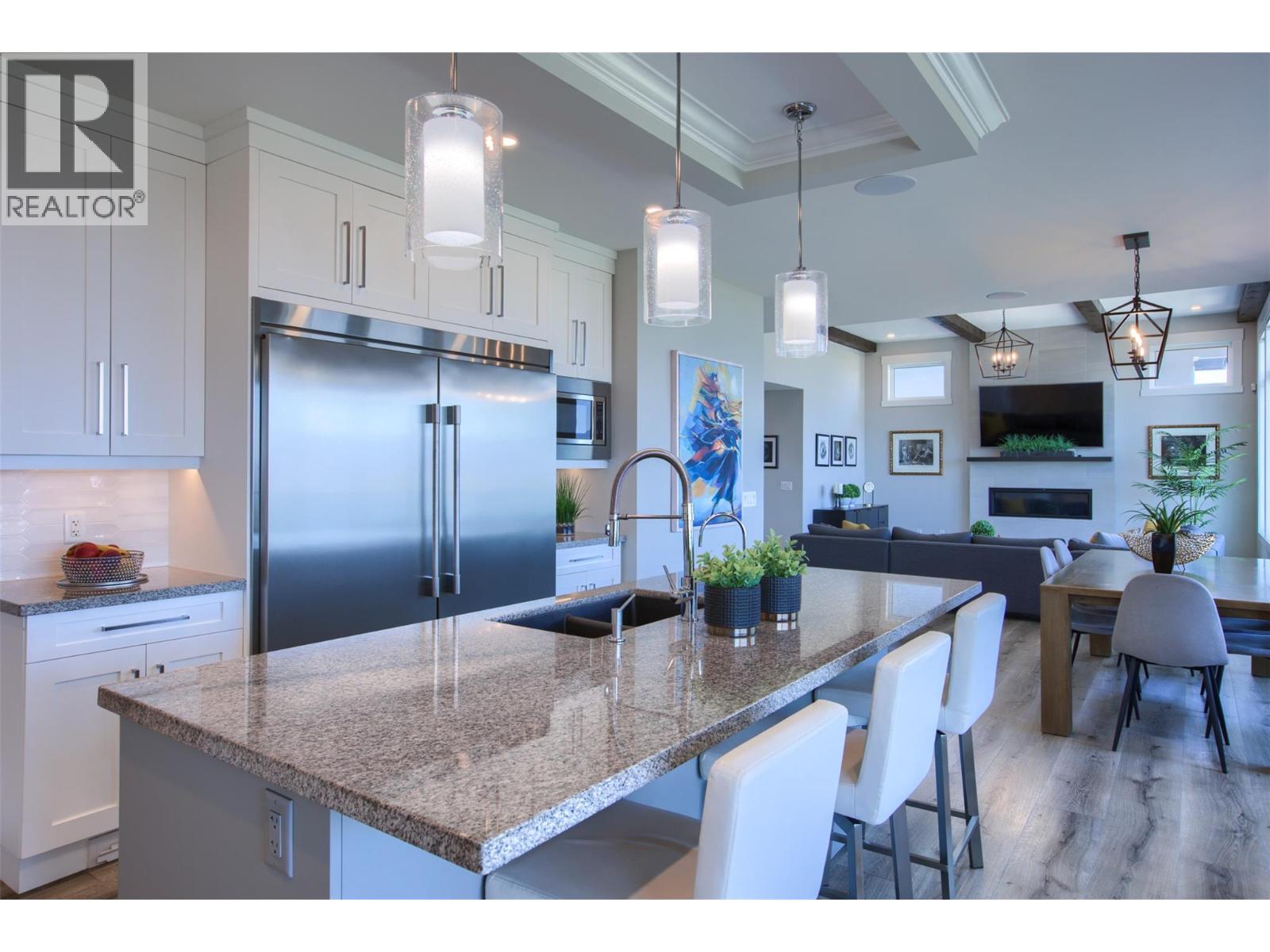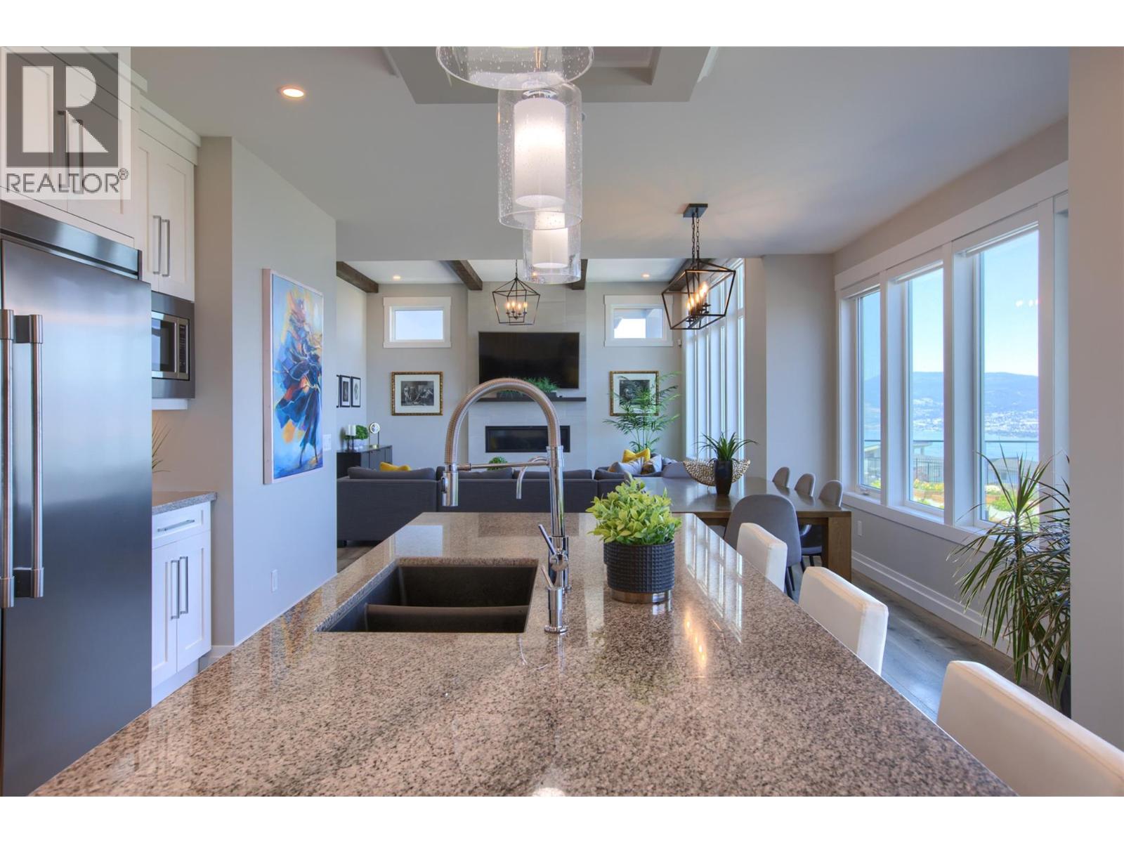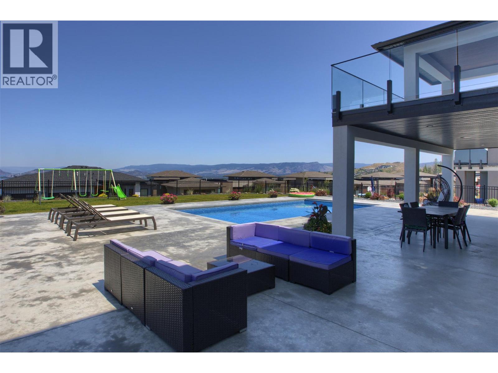 THIS REMARKABLE HOME IS TRULY IRREPLACEABLE AT SUCH AN UNBEATABLE PRICE. Custom-designed family home for ultimate comfort offering a residential elevator, 4+2 bedrooms and 5 baths. Situated on a large lot with amazing lake and city view and an inground pool with an automatic cover for safety and easy maintenance, Beautiful open concept taking advantage of the stunning view. Well designed kitchen equipped with high-end stainless steel appliances and 12' sliding glass doors accessing the large covered sundeck. The mudroom includes large coat closet and built-in lockers, with a walk-in pantry featuring custom built-ins. Office and guest powder room also on main level. The upper level offers 4-large bedrooms, including a primary bedroom with a spacious walk-in closet and a luxurious ensuite with heated floors. Walk-out basement features a family room, 2 large bedrooms, a full bath with heated floors and a curb-less shower, an additional powder room, and a flex room with a wet bar. Storage/mechanical offer plenty of storage space. oversized triple garage and room for RV or boat. The property includes a two-zone heating/cooling system. Situated in the demanding family-oriented Kettle Valley neighborhood and conveniently located near schools, parks, and the new Frost Road shopping center. (id:61840)