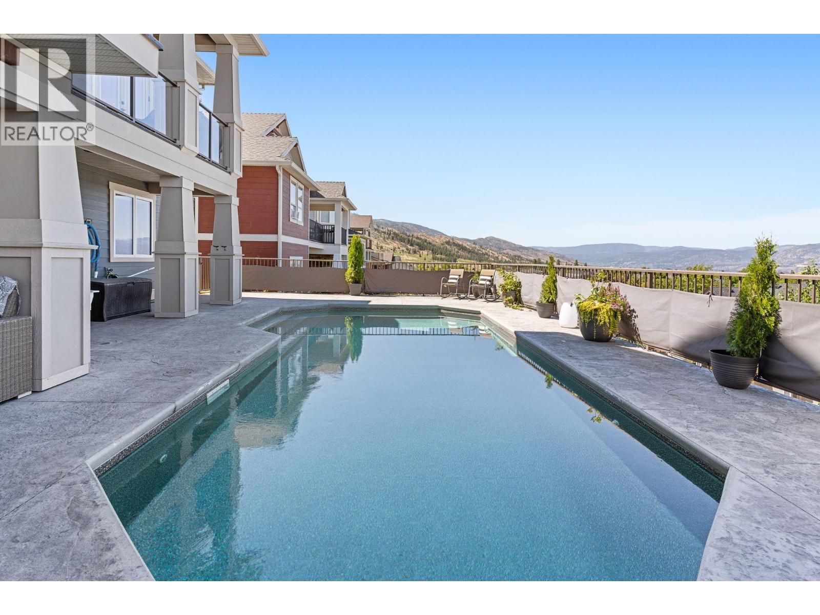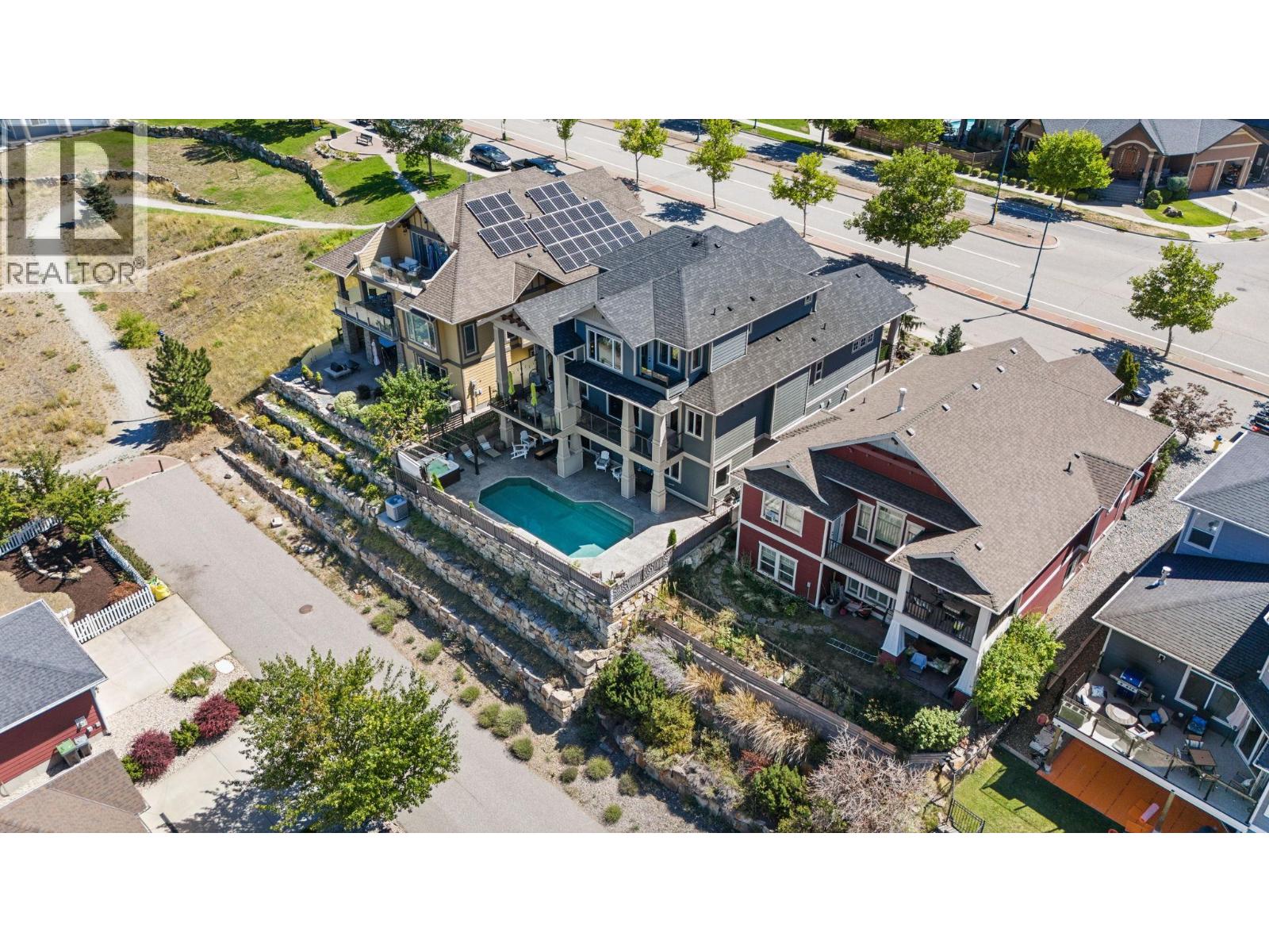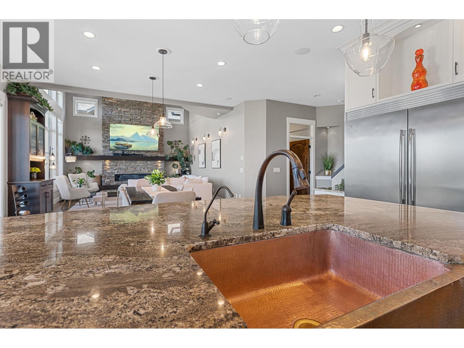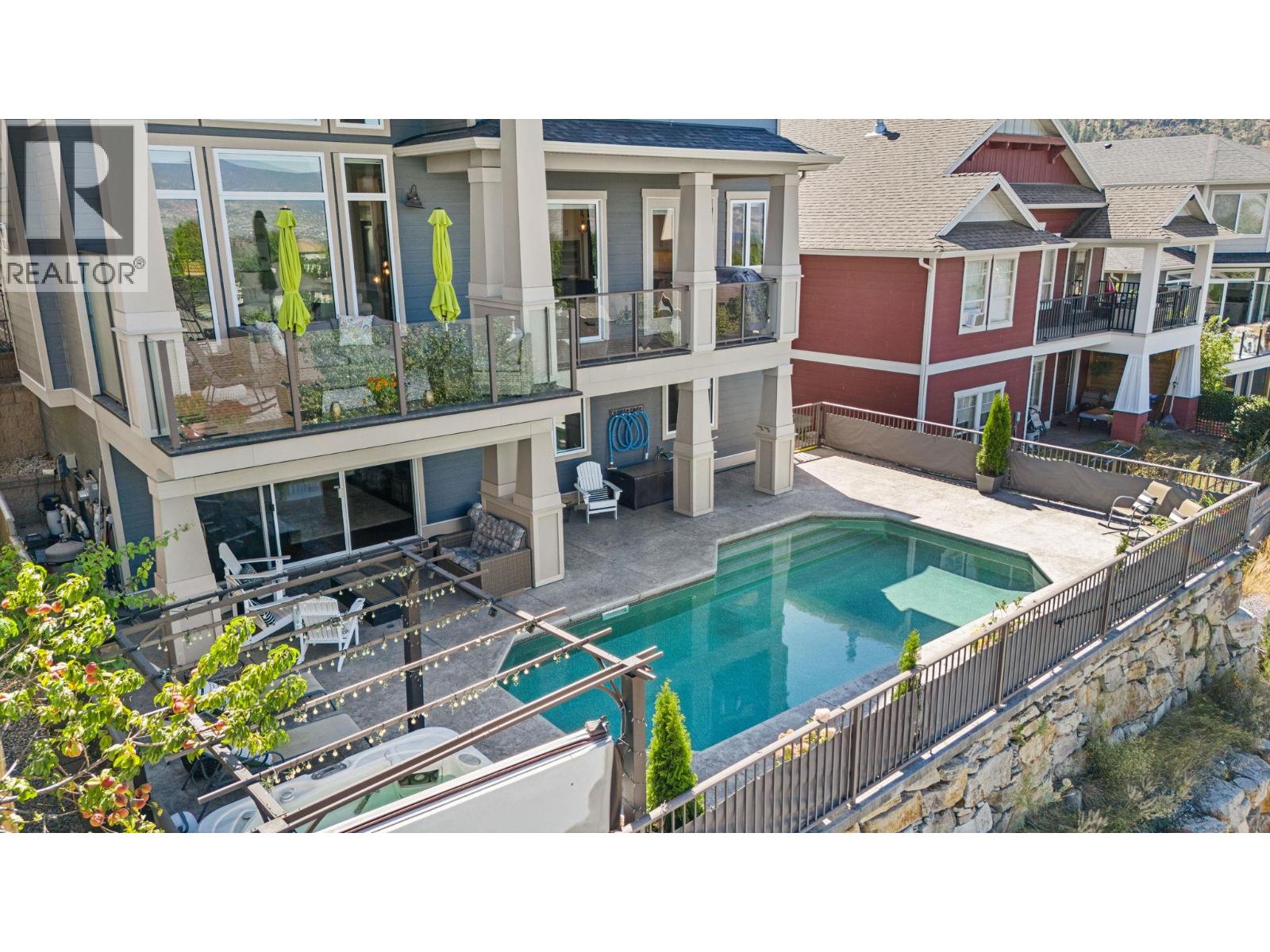 Welcome to this beautiful Kettle Valley two storey walk-out with everything your family could ever want, need or imagine! Gorgeous lake view home with 6 bedrooms, 5.5 baths with hardwood, vaulted ceilings, floor-to-ceiling stone fireplace, gourmet granite island kitchen with b/in stainless appliances, gas cooktop, pot filler and large walk-in pantry. Access to the covered sundeck with great views and gas BBQ hookup (and engineered for a hot tub)! Spacious main floor laundry/mud room with under the counter washer and dryer, b/in bench and lots of storage. Master on the second floor with private lake view deck and spa-like ensuite complete with two-sided fireplace, spacious double vanity, tiled walk-in shower and separate soaker tub and heated tile floors. Second and third bedroom share the jack-and-jill bathroom with dual vanity - perfect for school mornings! Lower level is an entertainers dream with granite wet bar, full-sized fridge and even a draft beer tap with walk-out to the covered patio complete with gas fire pit, gas BBQ hookup and straight to the pool and hot tub deck! Gym under suspended slab too! Cozy front porch to watch the world go by and listen the the bubbling rock water feature. One home away from the linear park that takes you to the children's water park and playground. Transit, hiking trails, Chute Lake Elementary and Kettle Valley Main Street amenities, all within short walking distance. This home is a must see! RV/boat parking in alley at bottom of lot. (id:61840)
