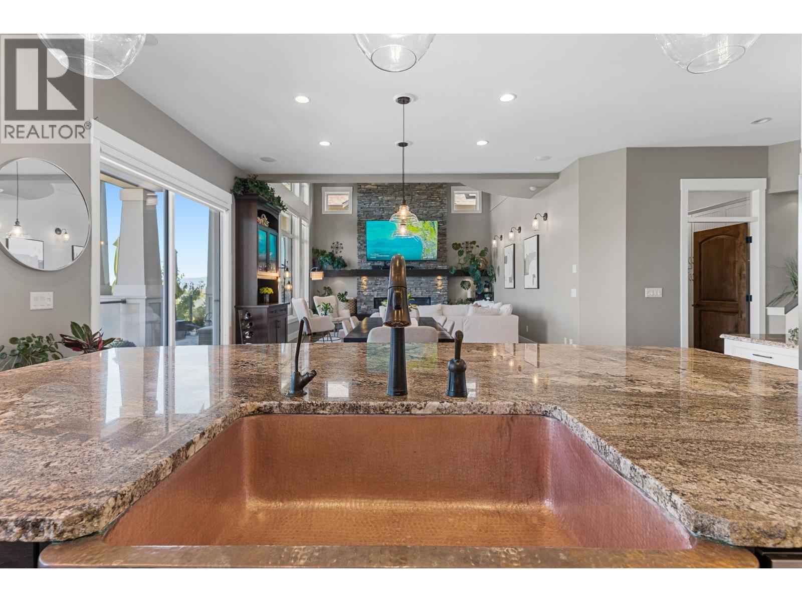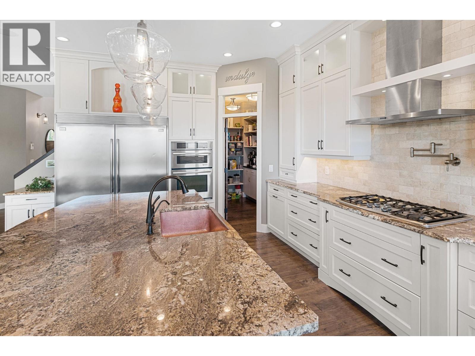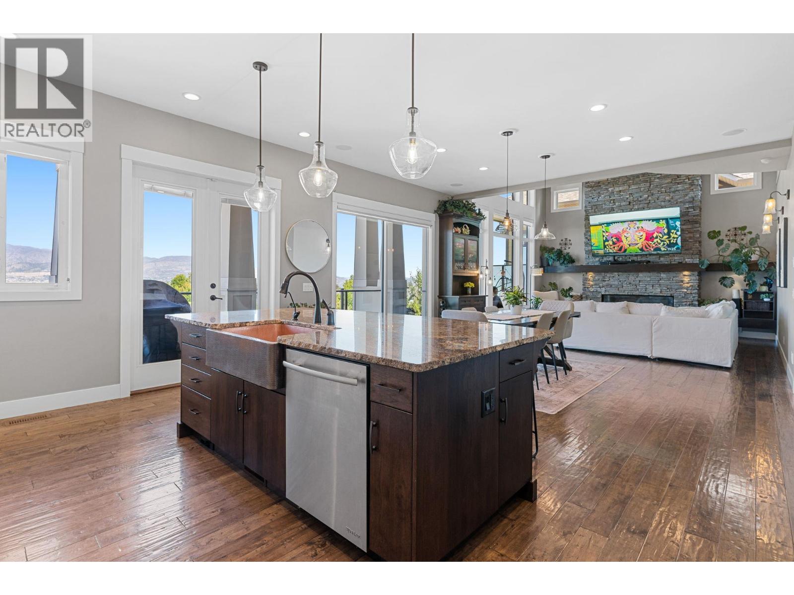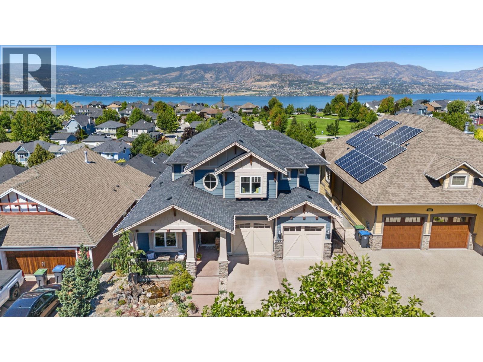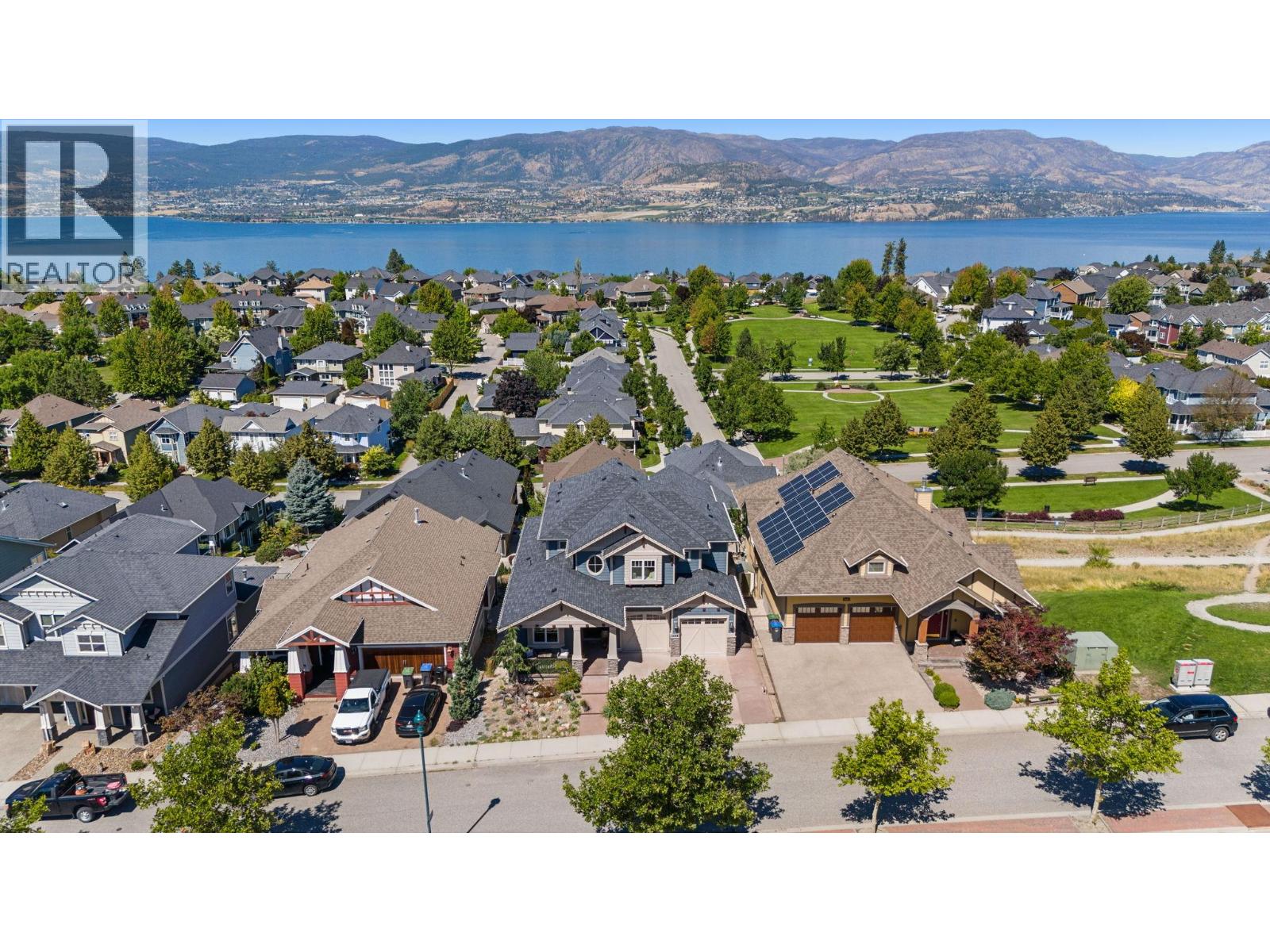 Welcome to this beautiful Kettle Valley two storey walk-out with everything your family could ever want, need or imagine! Gorgeous lake view home with 6 bedrooms, 5.5 baths with hardwood, vaulted ceilings, floor-to-ceiling stone fireplace, gourmet granite island kitchen with b/in stainless appliances, gas cooktop, pot filler and large walk-in pantry. Access to the covered sundeck with great views and gas BBQ hookup (and engineered for a hot tub)! Spacious main floor laundry/mud room with under the counter washer and dryer, b/in bench and lots of storage. Master on the second floor with private lake view deck and spa-like ensuite complete with two-sided fireplace, spacious double vanity, tiled walk-in shower and separate soaker tub and heated tile floors. Second and third bedroom share the jack-and-jill bathroom with dual vanity - perfect for school mornings! Lower level is an entertainers dream with granite wet bar, full-sized fridge and even a draft beer tap with walk-out to the covered patio complete with gas fire pit, gas BBQ hookup and straight to the pool and hot tub deck! Gym under suspended slab too! Cozy front porch to watch the world go by and listen the the bubbling rock water feature. One home away from the linear park that takes you to the children's water park and playground. Transit, hiking trails, Chute Lake Elementary and Kettle Valley Main Street amenities, all within short walking distance. This home is a must see! RV/boat parking in alley at bottom of lot. (id:61840)