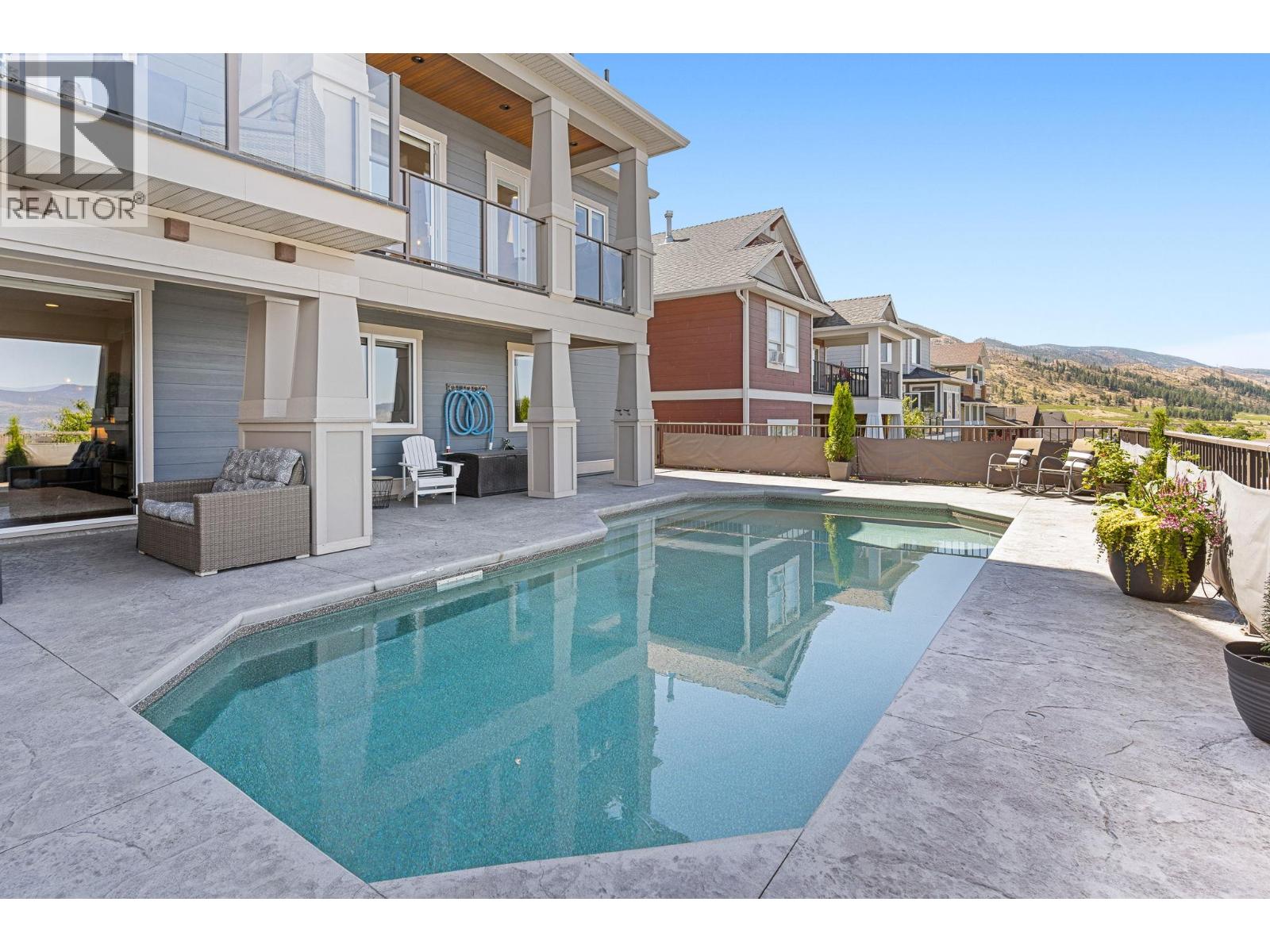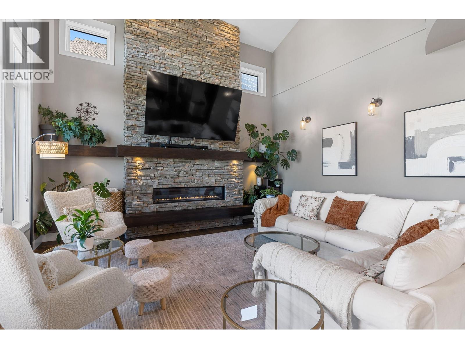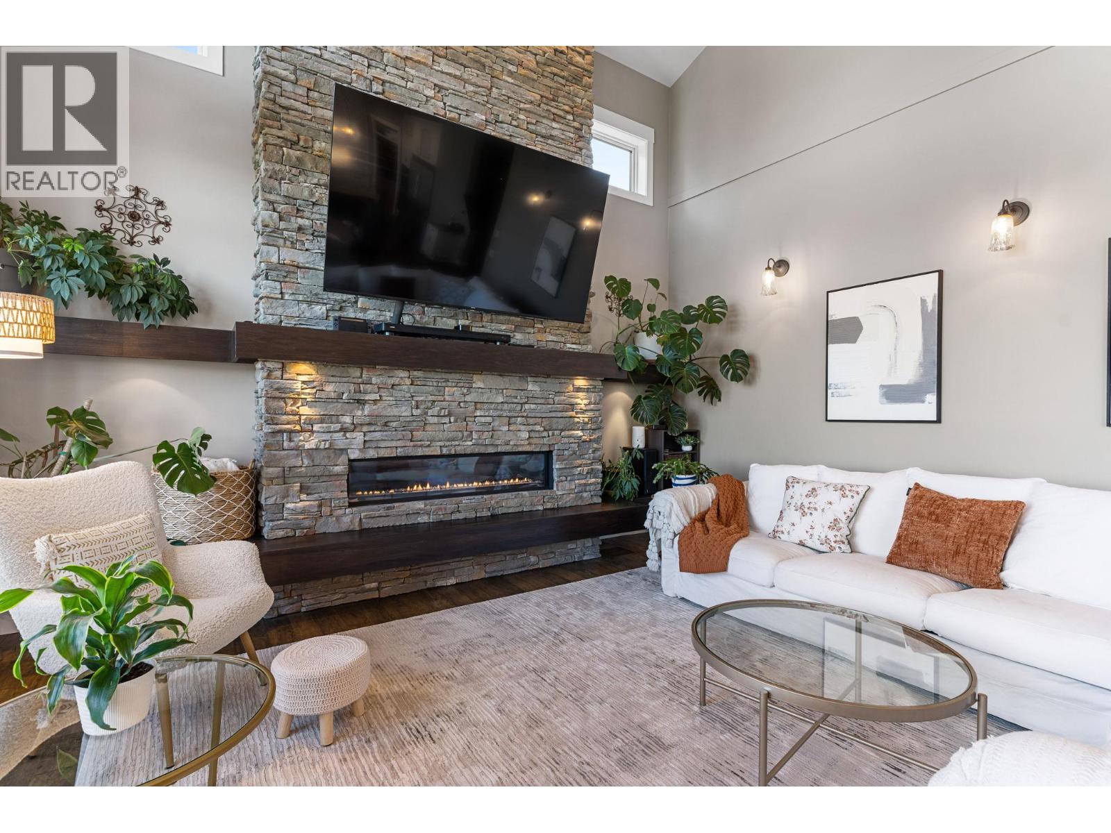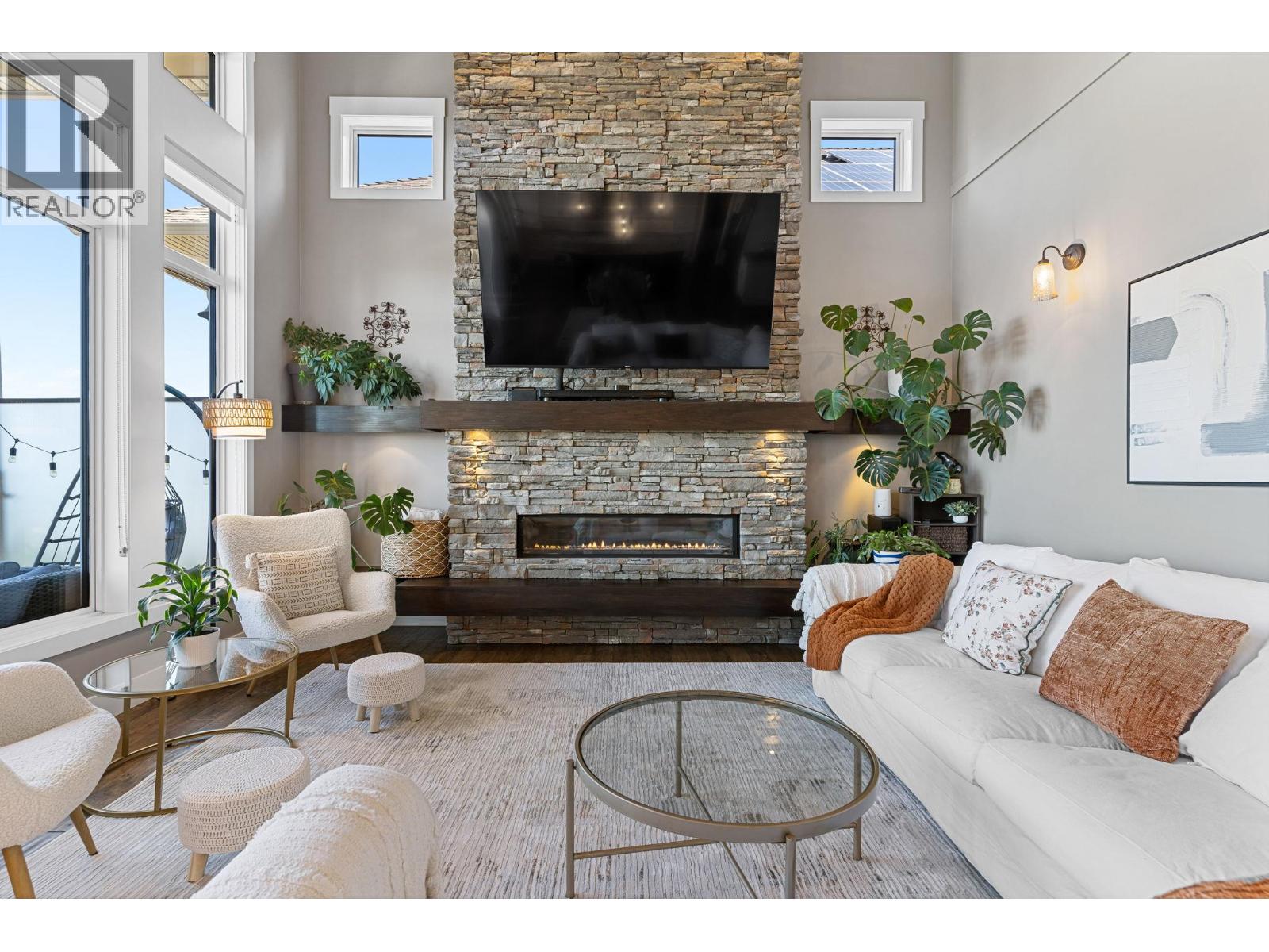 Welcome to this beautiful Kettle Valley two storey walk-out with everything your family could ever want, need or imagine! Gorgeous lake view home with 6 bedrooms, 5.5 baths with hardwood, vaulted ceilings, floor-to-ceiling stone fireplace, gourmet granite island kitchen with b/in stainless appliances, gas cooktop, pot filler and large walk-in pantry. Access to the covered sundeck with great views and gas BBQ hookup (and engineered for a hot tub)! Spacious main floor laundry/mud room with under the counter washer and dryer, b/in bench and lots of storage. Master on the second floor with private lake view deck and spa-like ensuite complete with two-sided fireplace, spacious double vanity, tiled walk-in shower and separate soaker tub and heated tile floors. Second and third bedroom share the jack-and-jill bathroom with dual vanity - perfect for school mornings! Lower level is an entertainers dream with granite wet bar, full-sized fridge and even a draft beer tap with walk-out to the covered patio complete with gas fire pit, gas BBQ hookup and straight to the pool and hot tub deck! Gym under suspended slab too! Cozy front porch to watch the world go by and listen the the bubbling rock water feature. One home away from the linear park that takes you to the children's water park and playground. Transit, hiking trails, Chute Lake Elementary and Kettle Valley Main Street amenities, all within short walking distance. This home is a must see! RV/boat parking in alley at bottom of lot. (id:61840)