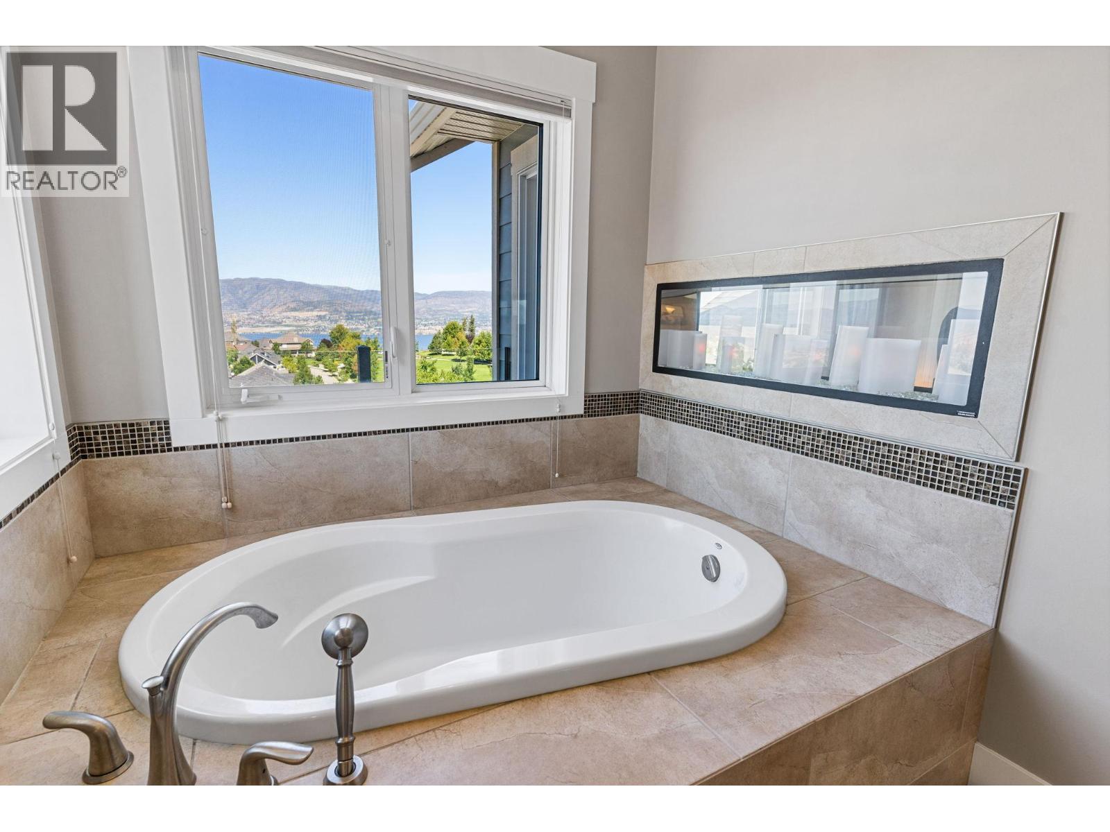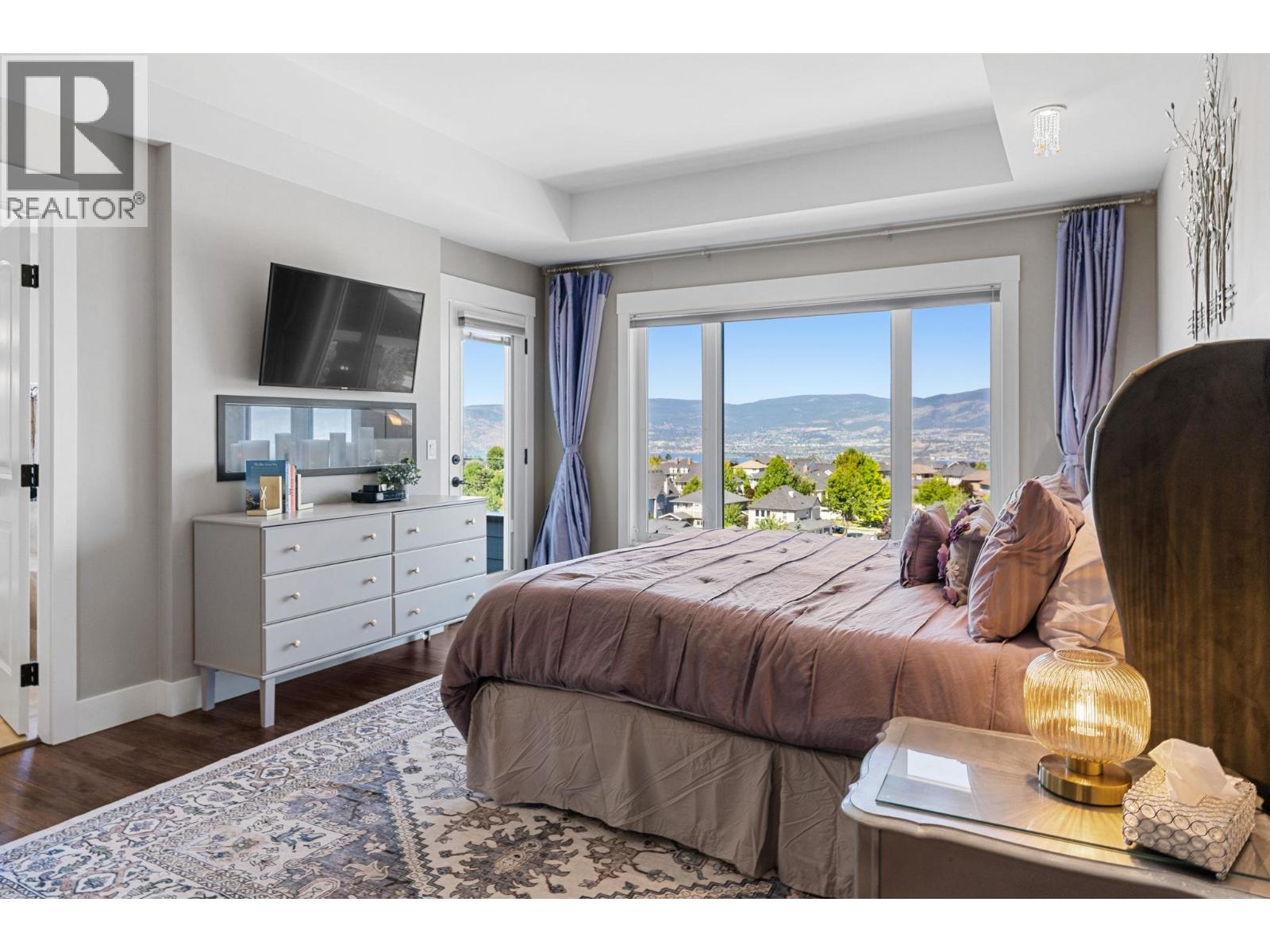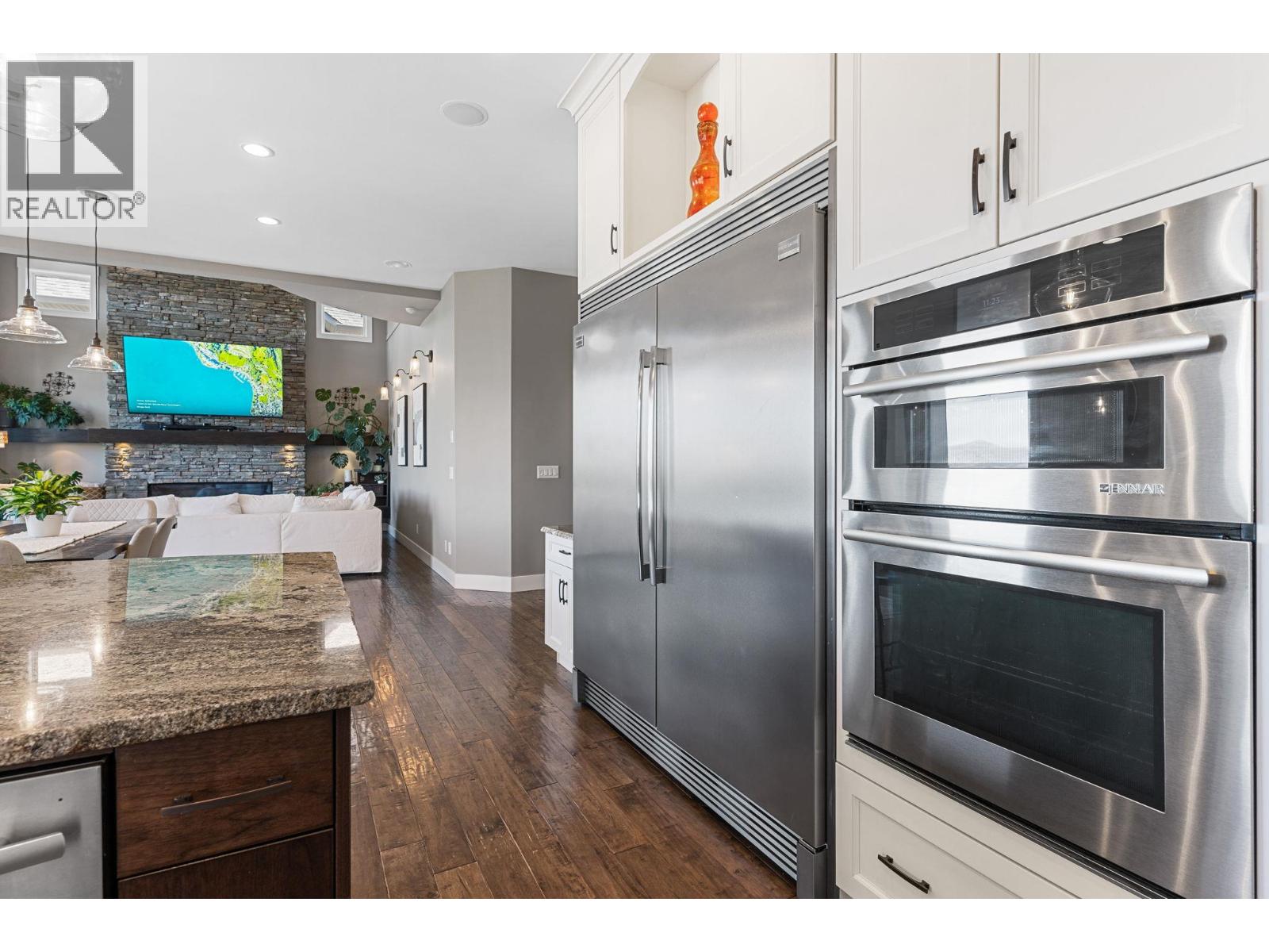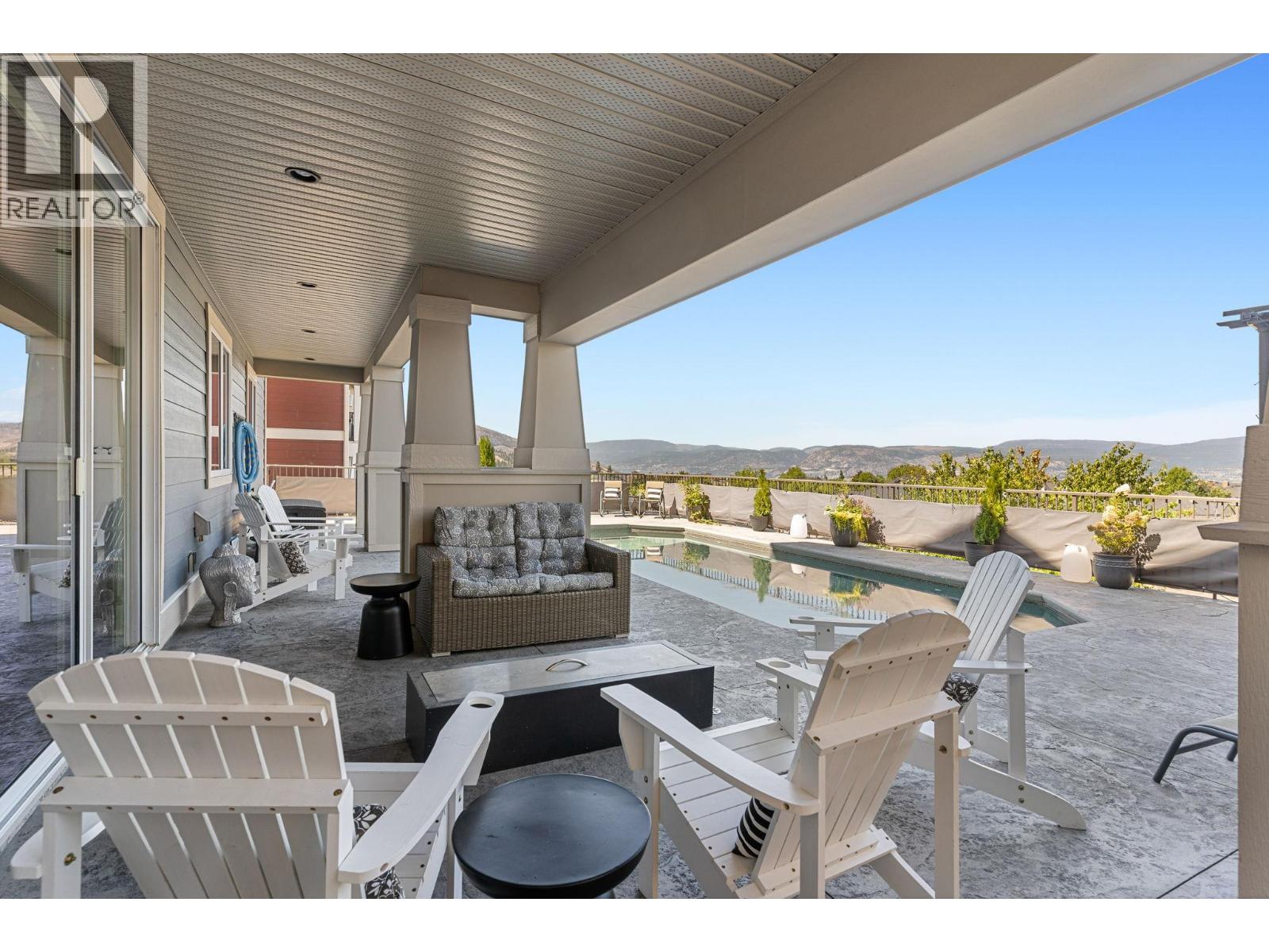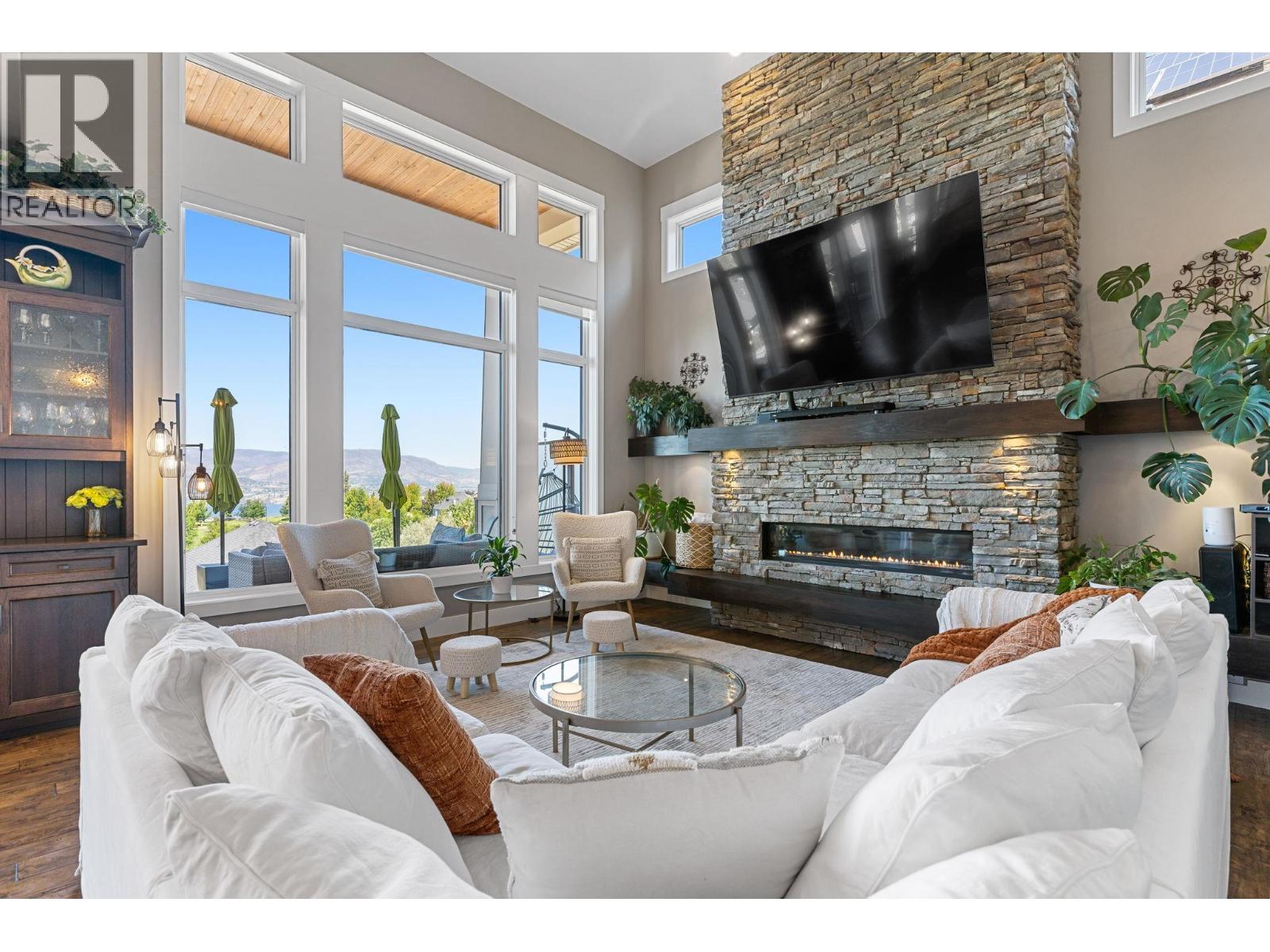 Welcome to this beautiful Kettle Valley two storey walk-out with everything your family could ever want, need or imagine! Gorgeous lake view home with 6 bedrooms, 5.5 baths with hardwood, vaulted ceilings, floor-to-ceiling stone fireplace, gourmet granite island kitchen with b/in stainless appliances, gas cooktop, pot filler and large walk-in pantry. Access to the covered sundeck with great views and gas BBQ hookup (and engineered for a hot tub)! Spacious main floor laundry/mud room with under the counter washer and dryer, b/in bench and lots of storage. Master on the second floor with private lake view deck and spa-like ensuite complete with two-sided fireplace, spacious double vanity, tiled walk-in shower and separate soaker tub and heated tile floors. Second and third bedroom share the jack-and-jill bathroom with dual vanity - perfect for school mornings! Lower level is an entertainers dream with granite wet bar, full-sized fridge and even a draft beer tap with walk-out to the covered patio complete with gas fire pit, gas BBQ hookup and straight to the pool and hot tub deck! Gym under suspended slab too! Cozy front porch to watch the world go by and listen the the bubbling rock water feature. One home away from the linear park that takes you to the children's water park and playground. Transit, hiking trails, Chute Lake Elementary and Kettle Valley Main Street amenities, all within short walking distance. This home is a must see! RV/boat parking in alley at bottom of lot. (id:61840)