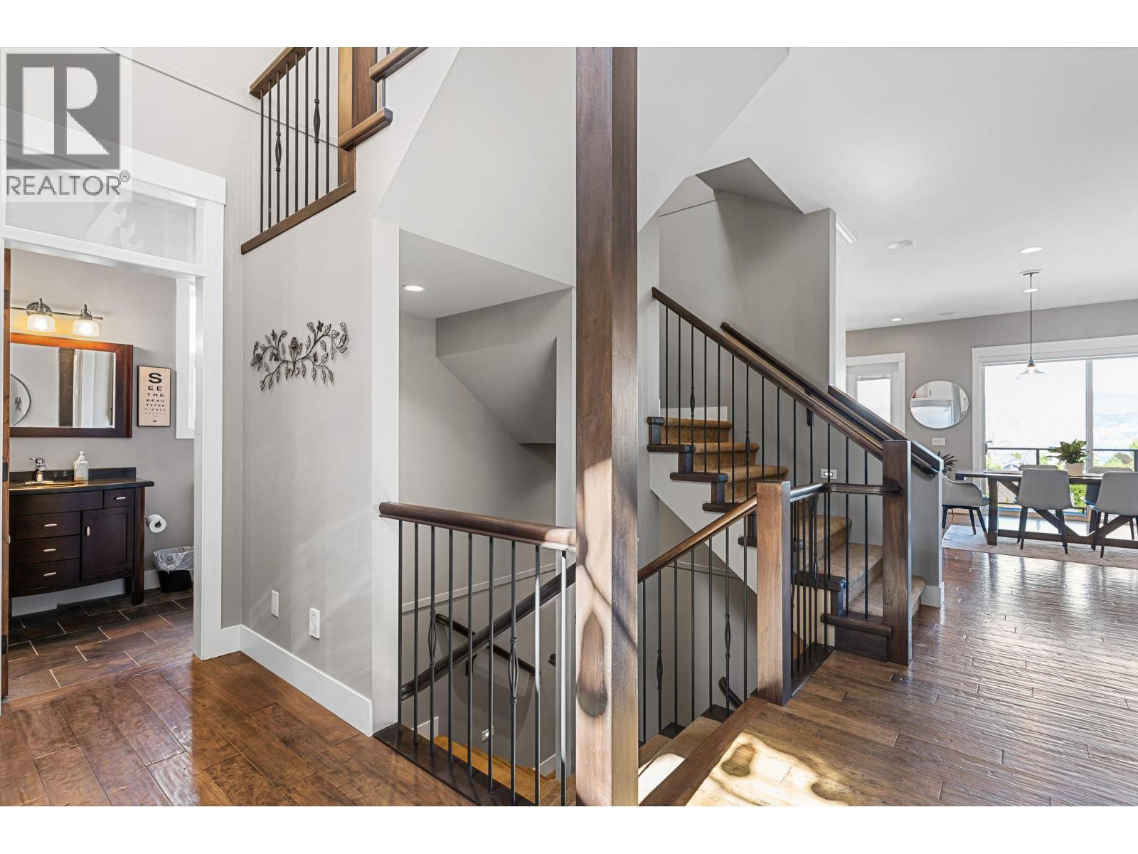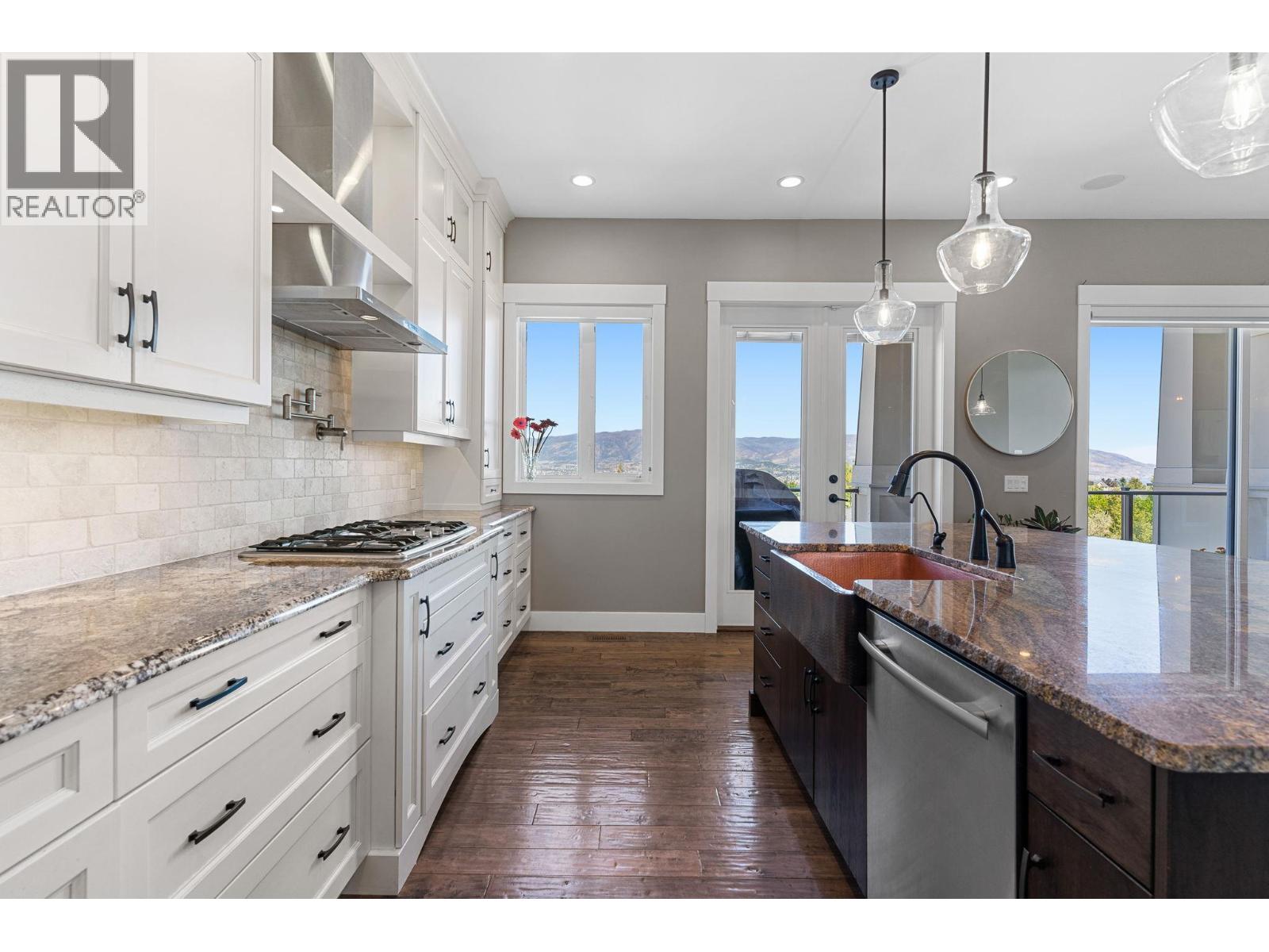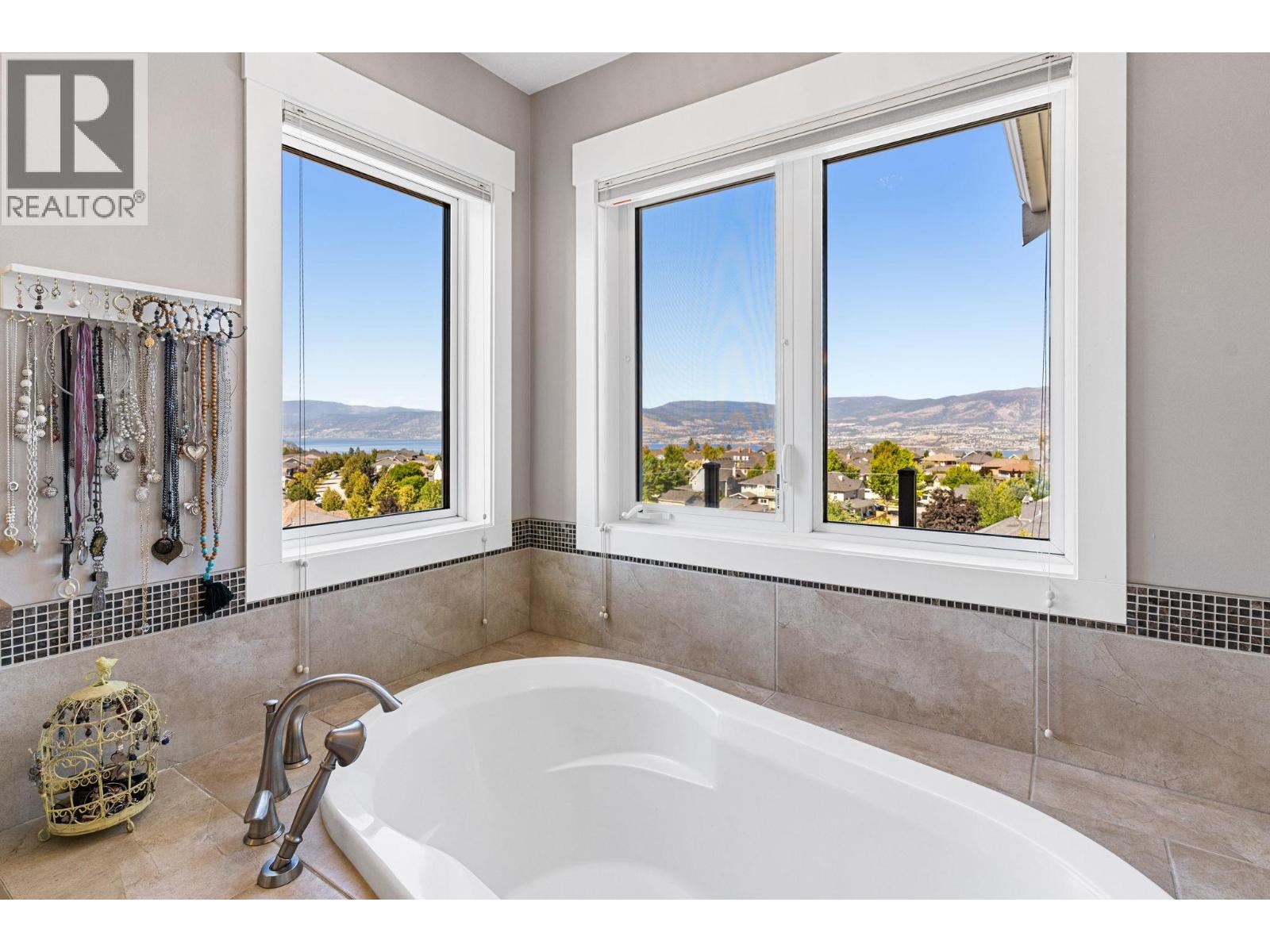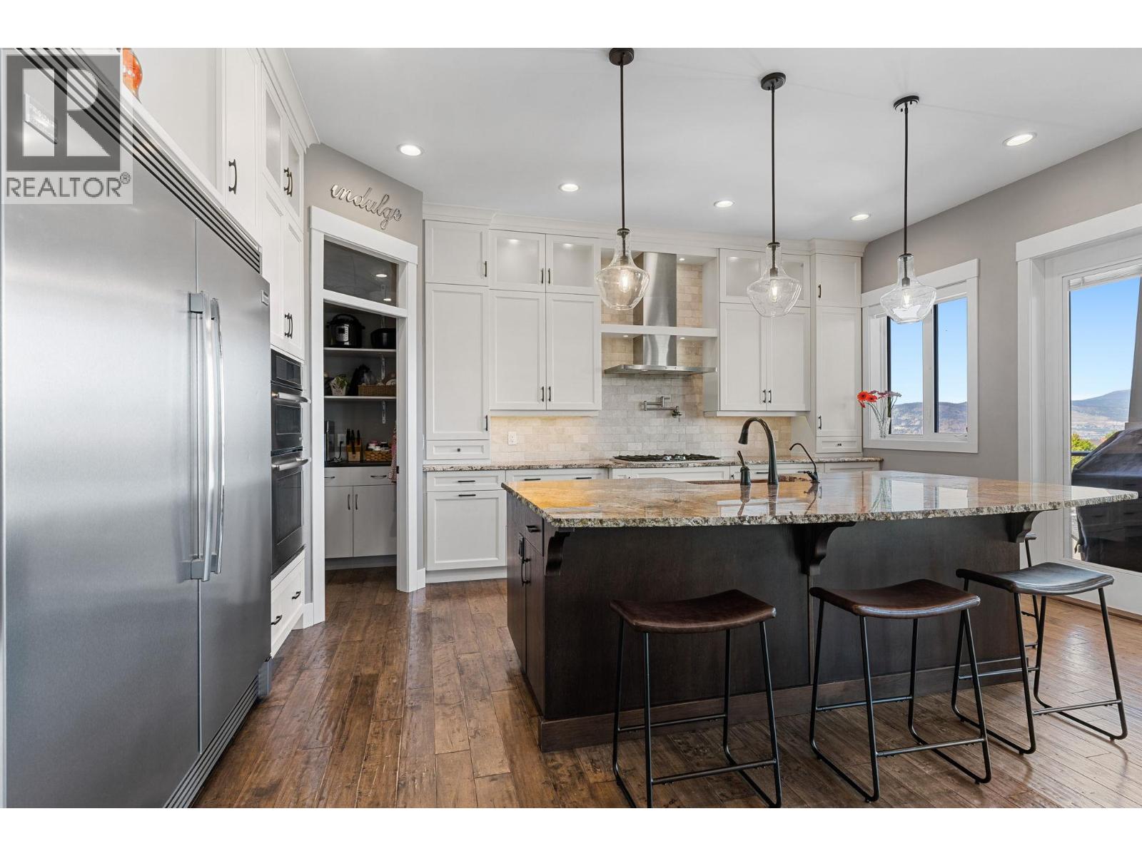 Welcome to this beautiful Kettle Valley two storey walk-out with everything your family could ever want, need or imagine! Gorgeous lake view home with 6 bedrooms, 5.5 baths with hardwood, vaulted ceilings, floor-to-ceiling stone fireplace, gourmet granite island kitchen with b/in stainless appliances, gas cooktop, pot filler and large walk-in pantry. Access to the covered sundeck with great views and gas BBQ hookup (and engineered for a hot tub)! Spacious main floor laundry/mud room with under the counter washer and dryer, b/in bench and lots of storage. Master on the second floor with private lake view deck and spa-like ensuite complete with two-sided fireplace, spacious double vanity, tiled walk-in shower and separate soaker tub and heated tile floors. Second and third bedroom share the jack-and-jill bathroom with dual vanity - perfect for school mornings! Lower level is an entertainers dream with granite wet bar, full-sized fridge and even a draft beer tap with walk-out to the covered patio complete with gas fire pit, gas BBQ hookup and straight to the pool and hot tub deck! Gym under suspended slab too! Cozy front porch to watch the world go by and listen the the bubbling rock water feature. One home away from the linear park that takes you to the children's water park and playground. Transit, hiking trails, Chute Lake Elementary and Kettle Valley Main Street amenities, all within short walking distance. This home is a must see! RV/boat parking in alley at bottom of lot. (id:61840)