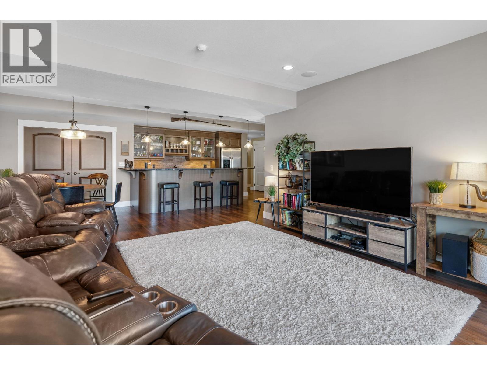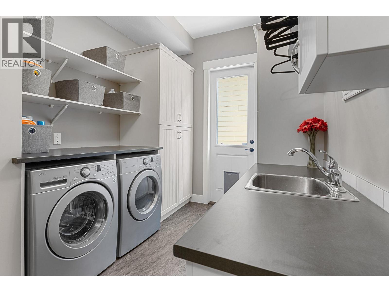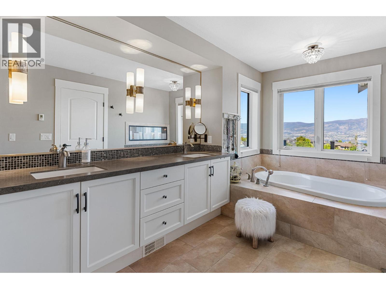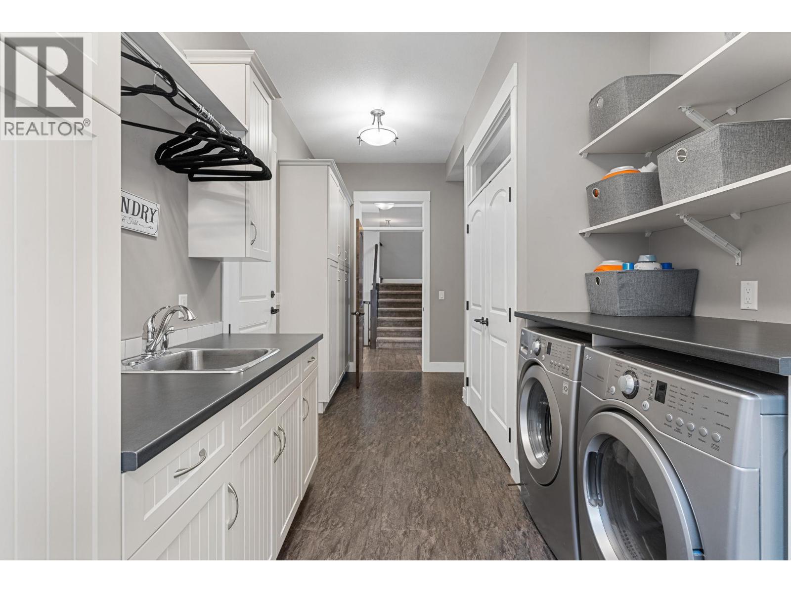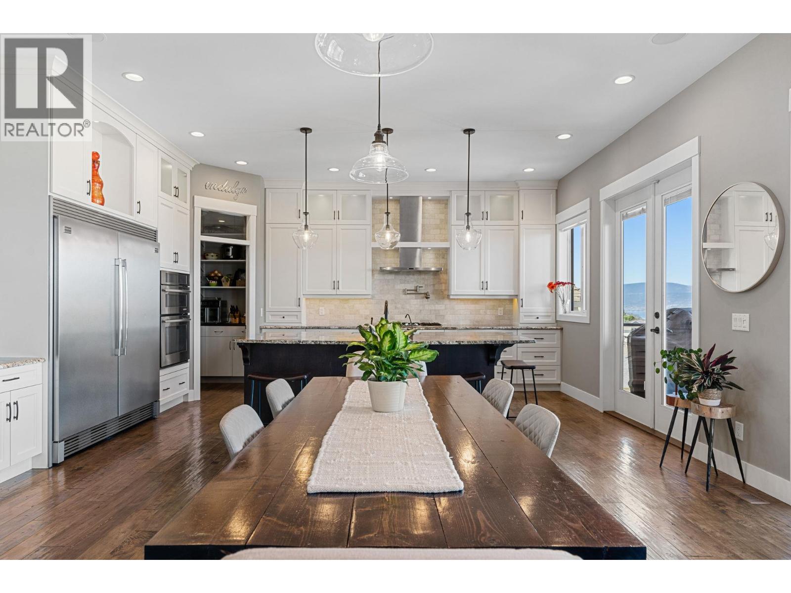 Welcome to this beautiful Kettle Valley two storey walk-out with everything your family could ever want, need or imagine! Gorgeous lake view home with 6 bedrooms, 5.5 baths with hardwood, vaulted ceilings, floor-to-ceiling stone fireplace, gourmet granite island kitchen with b/in stainless appliances, gas cooktop, pot filler and large walk-in pantry. Access to the covered sundeck with great views and gas BBQ hookup (and engineered for a hot tub)! Spacious main floor laundry/mud room with under the counter washer and dryer, b/in bench and lots of storage. Master on the second floor with private lake view deck and spa-like ensuite complete with two-sided fireplace, spacious double vanity, tiled walk-in shower and separate soaker tub and heated tile floors. Second and third bedroom share the jack-and-jill bathroom with dual vanity - perfect for school mornings! Lower level is an entertainers dream with granite wet bar, full-sized fridge and even a draft beer tap with walk-out to the covered patio complete with gas fire pit, gas BBQ hookup and straight to the pool and hot tub deck! Gym under suspended slab too! Cozy front porch to watch the world go by and listen the the bubbling rock water feature. One home away from the linear park that takes you to the children's water park and playground. Transit, hiking trails, Chute Lake Elementary and Kettle Valley Main Street amenities, all within short walking distance. This home is a must see! RV/boat parking in alley at bottom of lot. (id:61840)