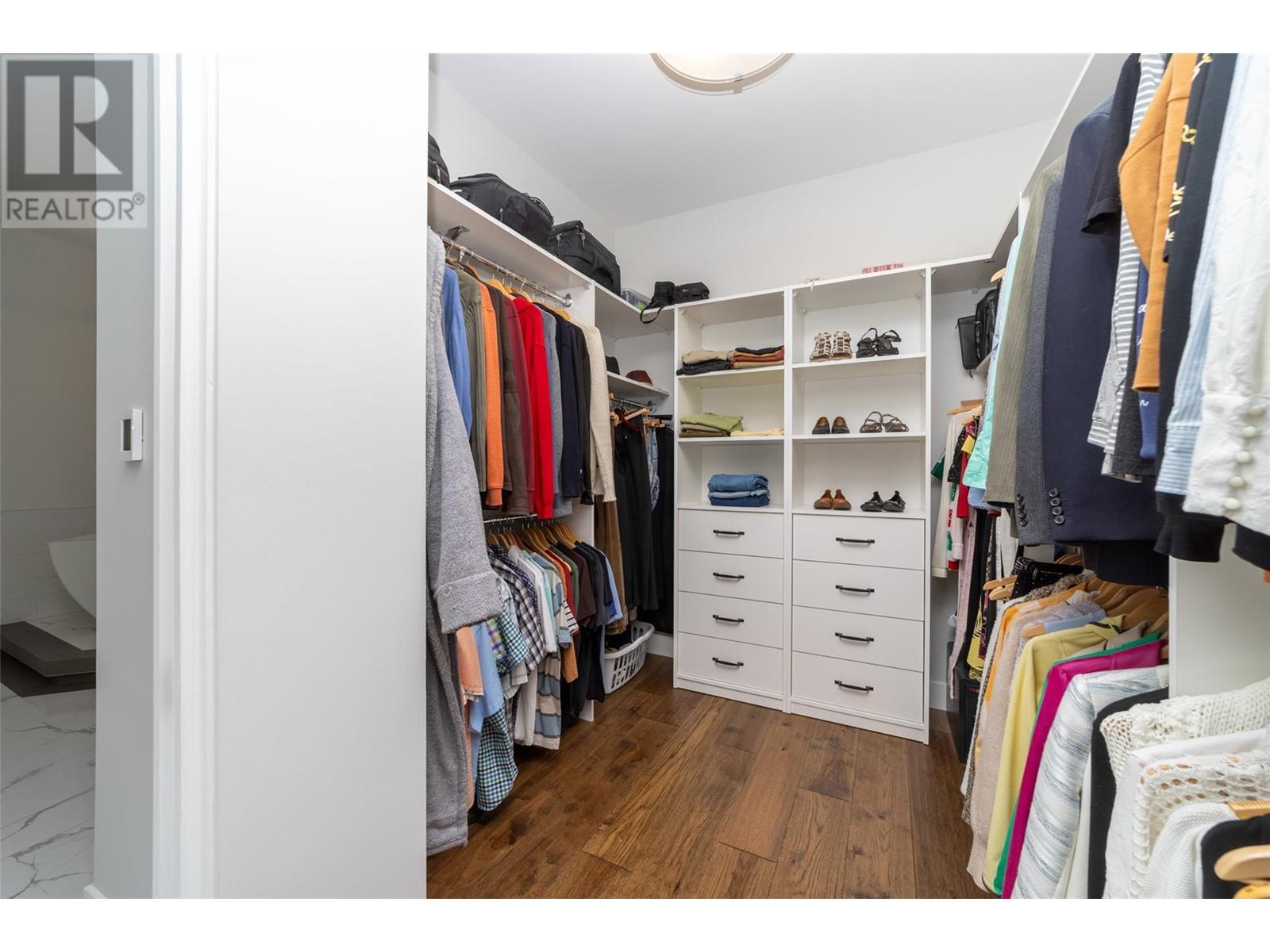 $258.42 MonthlyWelcome to the #1 gated community in Upper Mission: The Edge. This custom built West Coast Contemporary home with 2 garages is a car collectors dream and situated in the hills of Kettle Valley with simply incredible lake+valley+city views. Built by the current owners in an exclusive gated community, this home features rich elements of natural wood and stone combined with many smart home modern features. 5000 sq.ft . 4bdrm + 4 bath on a 1/2 acre lot. Open concept main floor with chefs kitchen+ custom wine cellar, hand crafted glass bar countertop, smart Control 4 lighting, blinds, heat and audio/video. Spacious primary bdrm suite and large home office, mudroom and laundry on the main floor. Below is a huge family room, grandkids play room, home theatre plus 3 bdrms and ample storage and best in class mechanical w/radiant heat. Attached garage has room for 3 vehicles plus toys and the detached garage/shop has room for an additional 3 w/lifts added. 220 power. Outside is a gorgeous lakeview deck with fire table and bbq, below is a covered deck w/hot tub and water feature. Protected land in front with no immediate homes/roofs in the view. Room to add a pool. The Edge is the ultimate in upscale living with great neighbors and a well run bare land strata. Move in ready for Summer 2025. (id:61840)