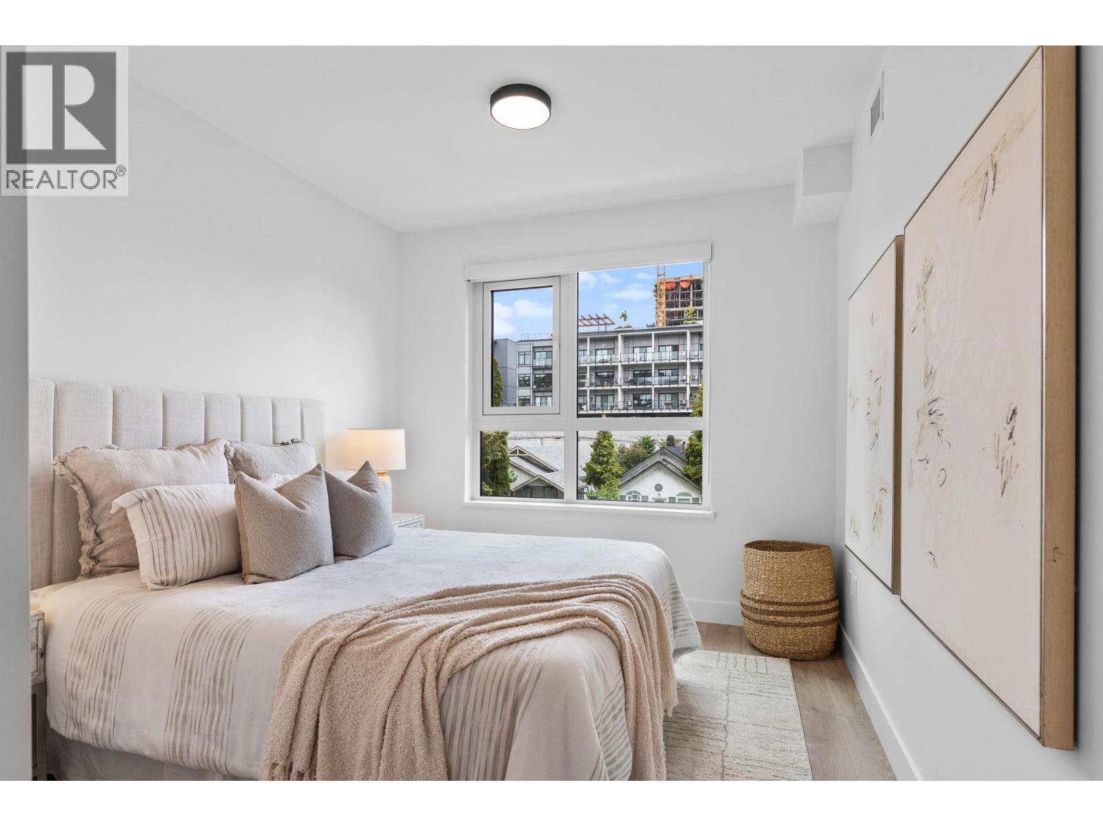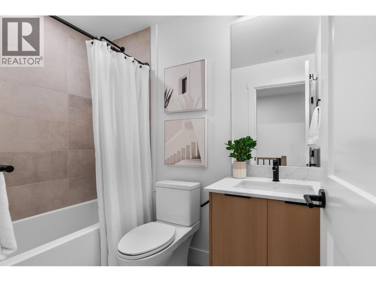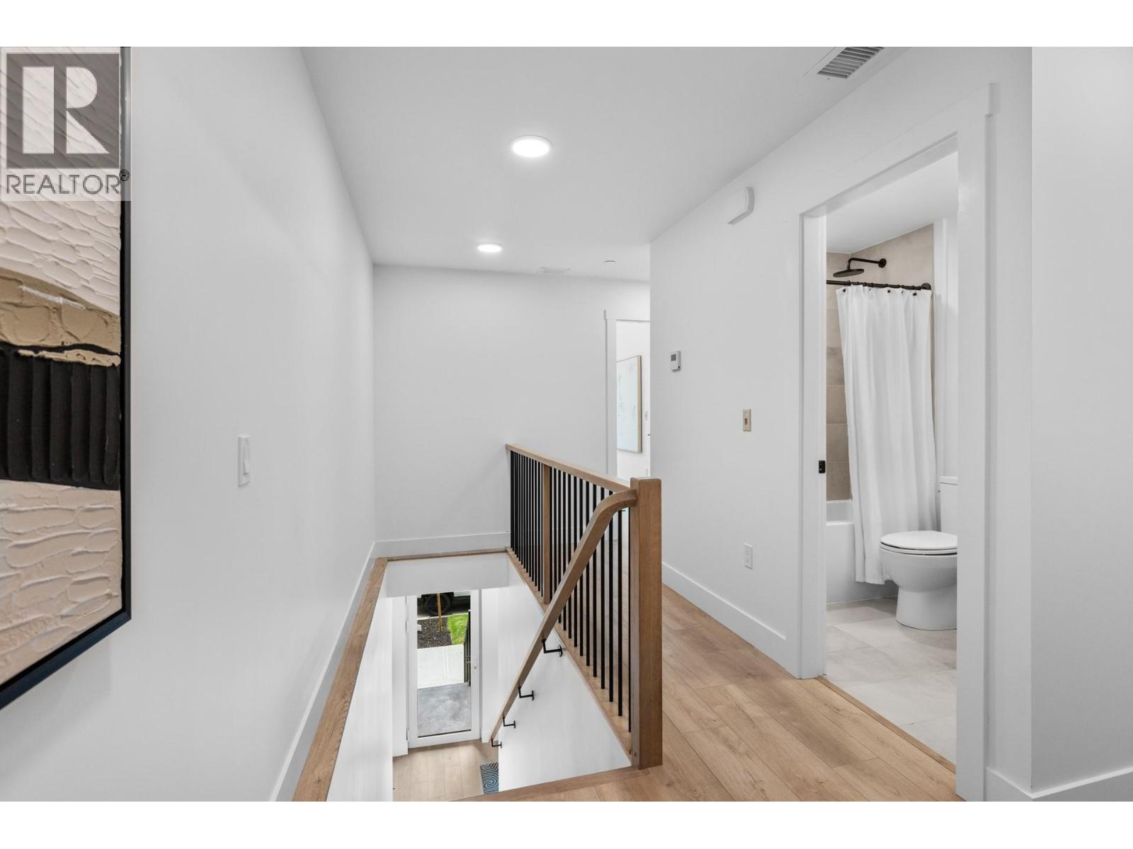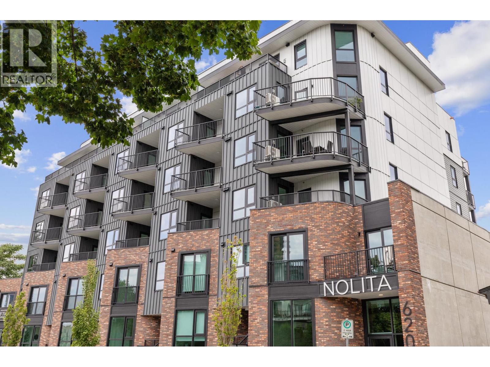 Brand new two storey townhouse style condo with street level entry, situated in downtown building Nolita. Enjoy the perks of condo living without sacrificing space. As you walk in from the quiet street, step into an open concept main floor features an upgraded quartz kitchen, full appliance package, and a light filled living/dining area, half bath on this floor as well. On the second floor, the spacious master suite includes a walk-in closet and its own fully tiled roomy walk-in shower, and double vanity. A second bedroom and a full bathroom along with the versatile den—ideal for home office, guest space, or hobby room. All the perks of downtown Kelowna are just outside your door: beaches, parks, craft breweries and restaurants. A New Home Warranty (2 5 10) ensures no surprise repair bills—just peace of mind. Strata fees cover nearly everything (you only pay your power & internet). Shared amenities include beautifully landscaped courtyard, gas BBQ lounge, fire table seating and an onsite dog park. It’s pet friendly with up to two pets of any size allowed. Smart building access includes secure entry, package management and elevator scheduling via the 1Valet app. Open house- walk ins welcome- Mon-Thur 11-7Pm and Fri-Sun 11-5PM (id:61840)