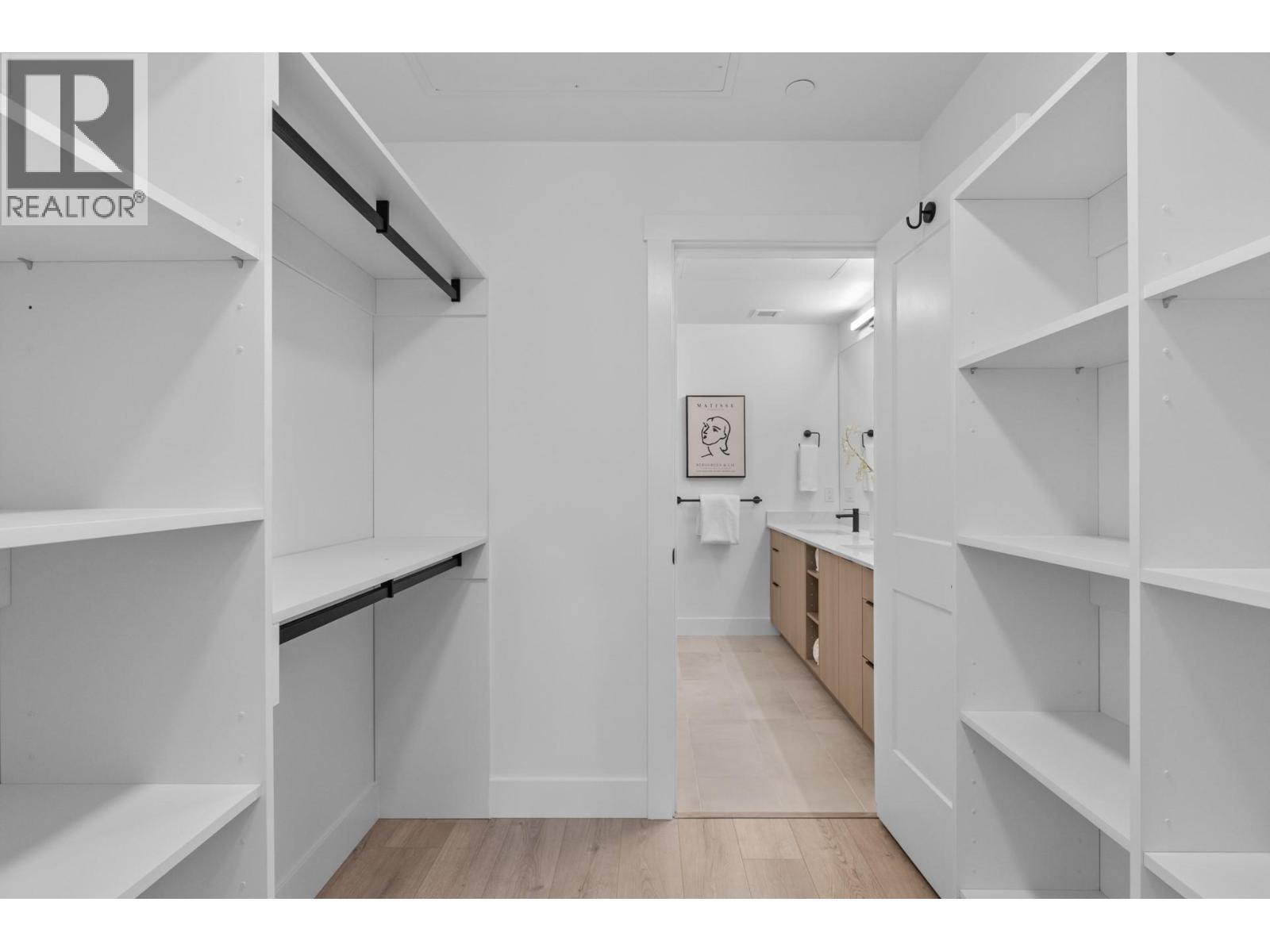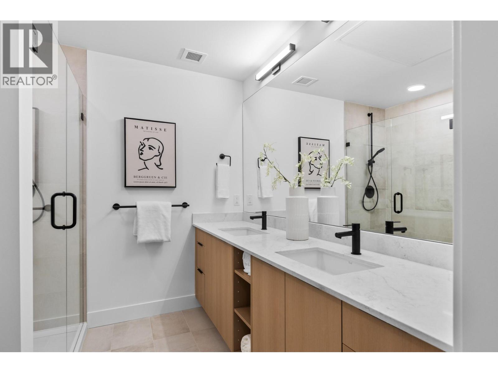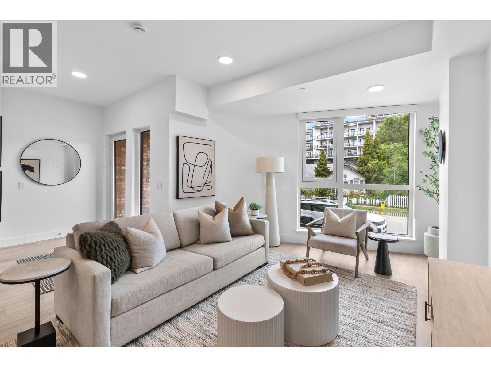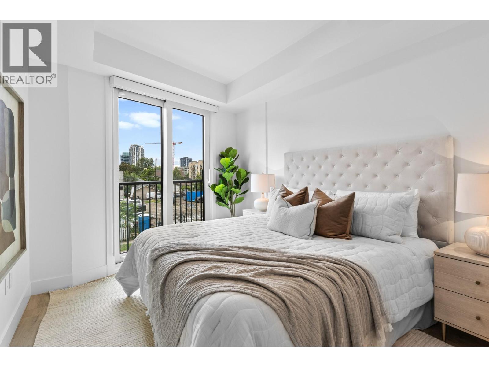 Brand new two storey townhouse style condo with street level entry, situated in downtown building Nolita. Enjoy the perks of condo living without sacrificing space. As you walk in from the quiet street, step into an open concept main floor features an upgraded quartz kitchen, full appliance package, and a light filled living/dining area, half bath on this floor as well. On the second floor, the spacious master suite includes a walk-in closet and its own fully tiled roomy walk-in shower, and double vanity. A second bedroom and a full bathroom along with the versatile den—ideal for home office, guest space, or hobby room. All the perks of downtown Kelowna are just outside your door: beaches, parks, craft breweries and restaurants. A New Home Warranty (2 5 10) ensures no surprise repair bills—just peace of mind. Strata fees cover nearly everything (you only pay your power & internet). Shared amenities include beautifully landscaped courtyard, gas BBQ lounge, fire table seating and an onsite dog park. It’s pet friendly with up to two pets of any size allowed. Smart building access includes secure entry, package management and elevator scheduling via the 1Valet app. Open house- walk ins welcome- Mon-Thur 11-7Pm and Fri-Sun 11-5PM (id:61840)
