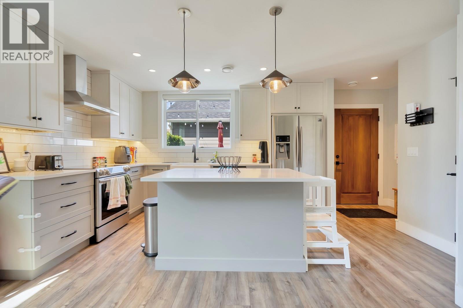Affordable Living in the Heart of Kelowna! Don’t give up size or location with this 3 bedroom 2.5 bathroom townhome offering 1211 sq.ft. of functional living space. Perfect for families, first time buyers or investors. Step inside to a spacious kitchen with quartz counters, island seating and stainless steel Samsung appliances. Durable vinyl flooring flows into the bright living room complete with an electric fireplace. Built in 2018, this home features modern finishes, ample storage and dual opaque and transparent blinds for privacy and light. Upstairs, the primary suite offers a walk in closet and 3 piece ensuite with under cabinet lighting and a tiled shower. Two additional bedrooms with built in closets share a full bathroom with a tub/shower combo. Outside, enjoy a private backyard with synthetic turf, covered patio, gas BBQ hookup and water connection. Across from the unit, the garage provides covered parking with 10 foot doors and 12 foot ceilings. Located on a quiet street currently undergoing upgrades including new sidewalks, curb and gutter drainage, street trees and added parking with completion this fall. Just a five minute walk to Kelowna General Hospital and beaches, and minutes from shops, conveniences and downtown. Low strata fees, pet friendly and a prime central location make this a smart choice. Also available is 784 Glenwood, an identical 2 bedroom unit listed at $625,000. Schedule your showing today in one of Kelowna's most walkable and desirable areas. (id:61840)