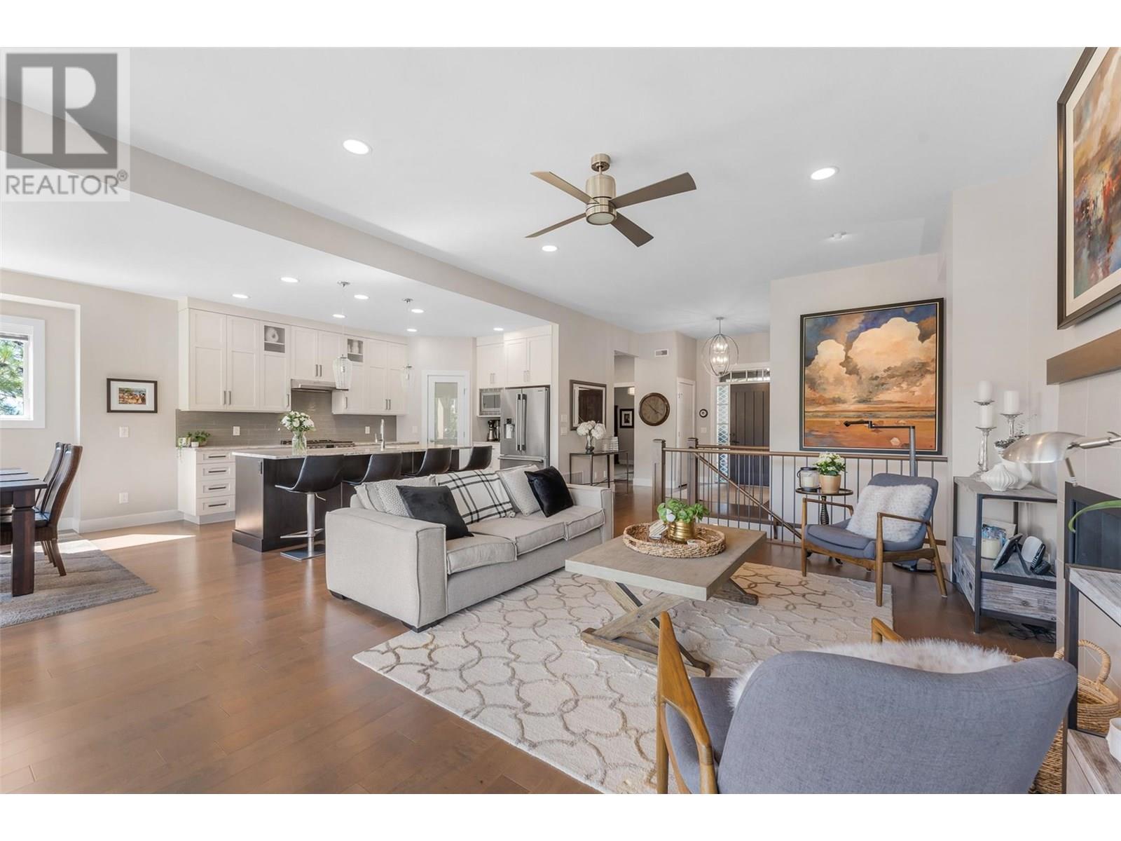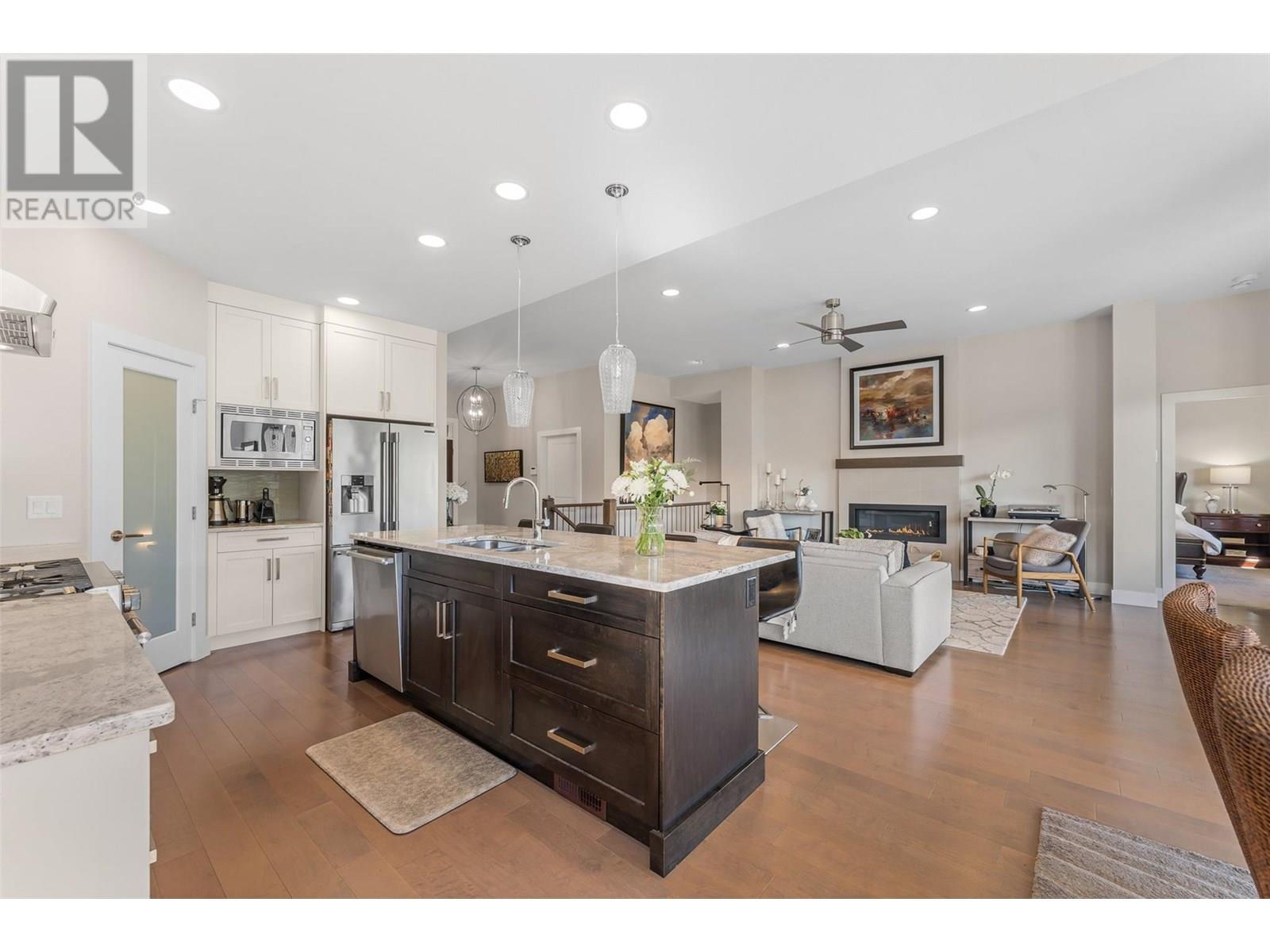 $410 MonthlyDiscover this premier, lake view executive low maintenance home at the SUMMIT on Southridge in Kelowna’s coveted Upper Mission neighborhood. Thoughtfully designed for easy living and entertaining in mind, this 4-bedroom, 3-bathroom residence offers over 2600 sq.ft. of refined living space. The open-concept main floor showcases expansive windows framing picturesque lake and valley views. The chef-inspired kitchen is a standout, featuring stainless steel appliances, a gas cooktop, sleek cabinetry, a walk-in pantry, and a generous island ideal for gatherings. Step outside to a private deck with glass railing, which is perfect for soaking in the view with morning coffee or evening sunsets. The main-floor primary suite is a serene retreat, complete with a spa-like ensuite and a walk-in closet. An additional main-level bedroom adds flexibility as an office or guest room. Downstairs, the bright walk-out lower level offers a spacious recreation room, two more bedrooms, a full bathroom, and a wet bar area, ideal for family time or hosting friends. Double garage + spacious driveway to accommodate 2 additional cars. If you are looking for a low maintenance, lock-and-go lifestyle with a view and room for family, this is your next home! (id:61840)