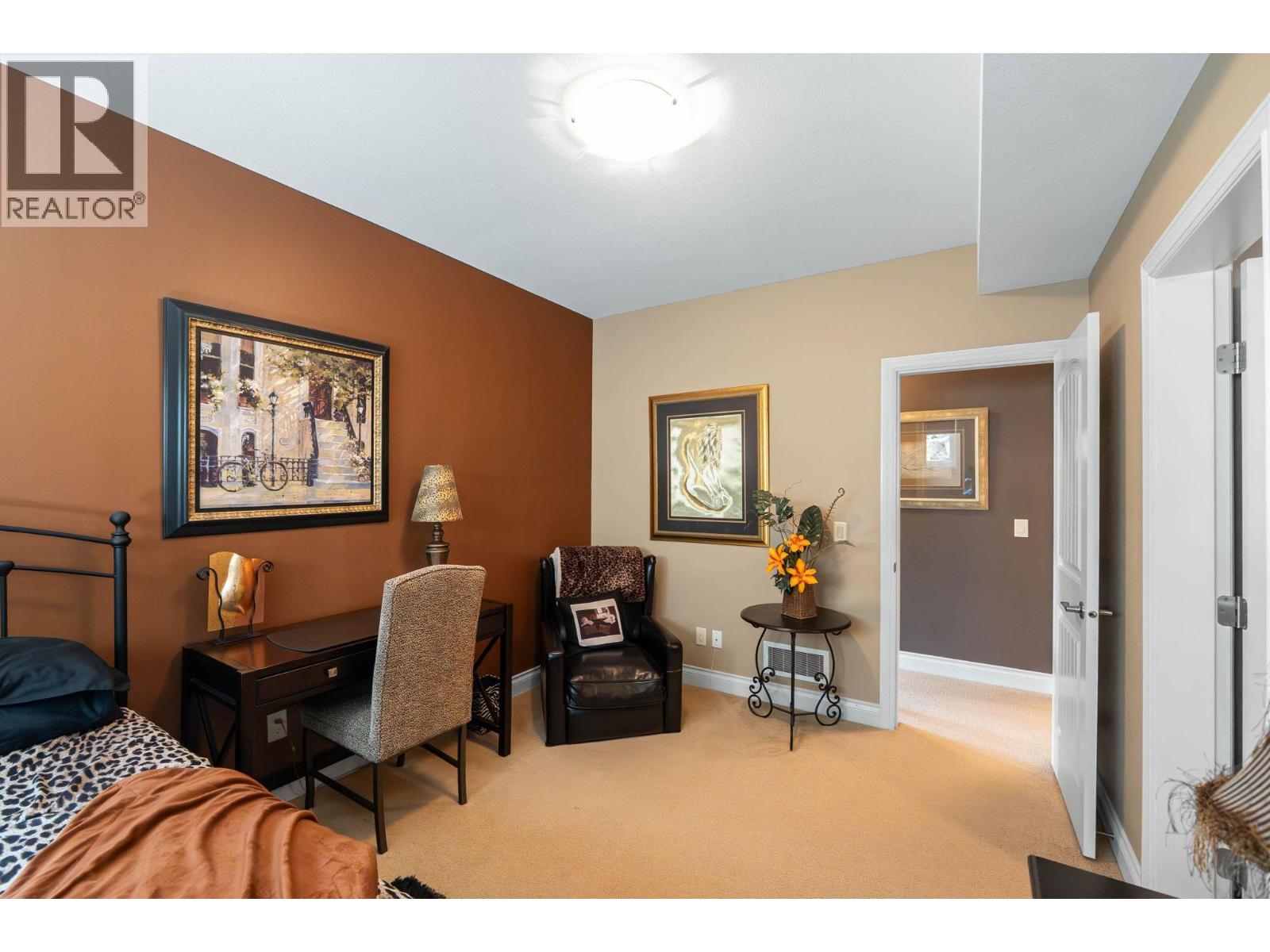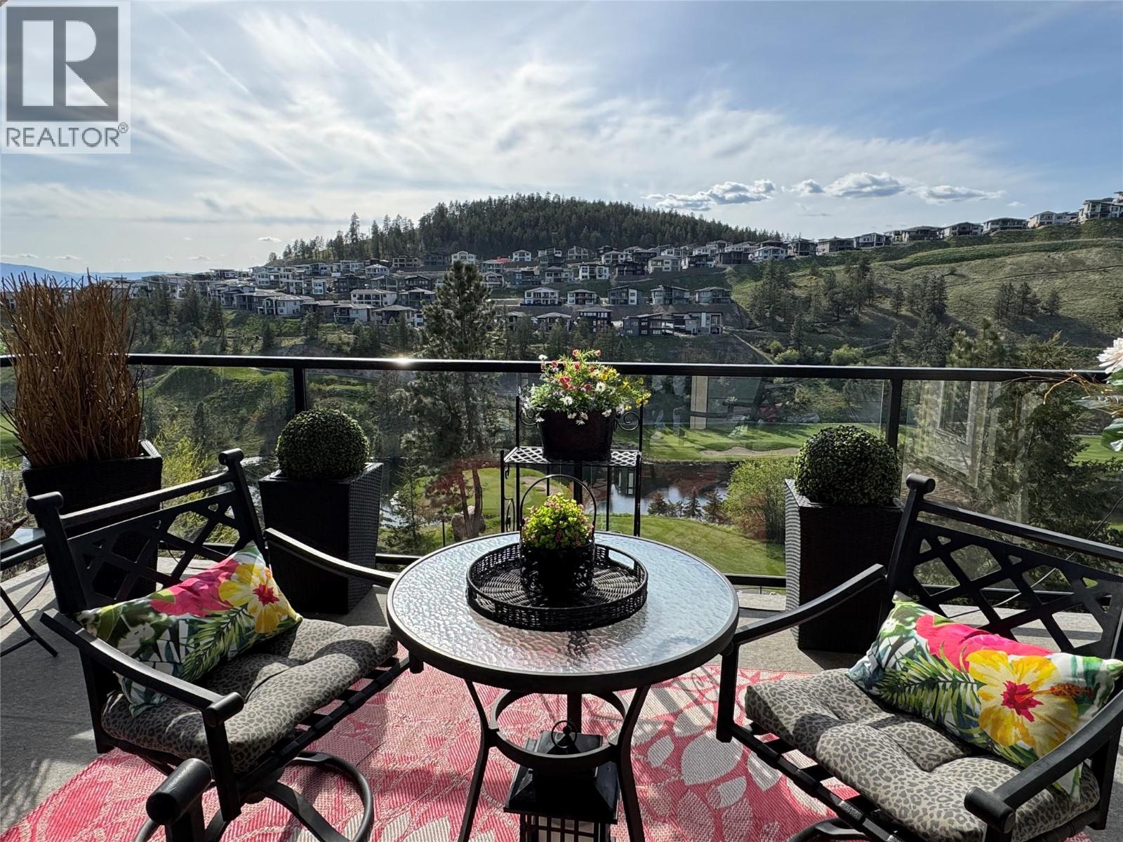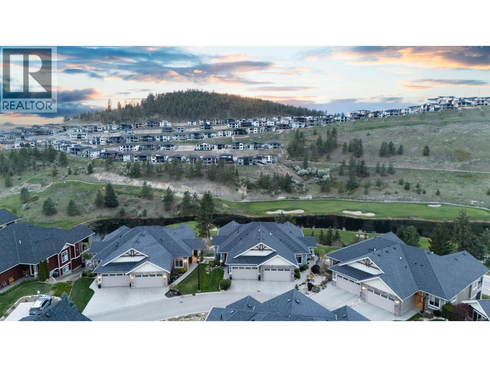 $406 MonthlyCypress Point perfection—with 2,080 sq.ft., 2 beds, 3 bath, & unobstructed mountain + golf course views! This immaculate 1 owner villa in the peaceful, prestigious Cypress Point community offers the perfect blend of comfort, elegance, and lock-and-leave, maintenance-free executive living. Perched above the award-winning Black Mountain Golf Course & featuring high-end finishes, a rich palette & thoughtful open layout w/ bright walkout lower level. The chef-inspired kitchen features granite counters, a 9-ft island & walk-in pantry—perfect for daily life & entertaining. The kitchen flows into a spacious living room w/ hardwood floors, cozy gas fireplace & large windows framing the panoramic, unobstructed mountain & golf course views; incl. the water feature surrounding the iconic island green on Hole 5—ideal for morning coffee or sunset wine! The primary bedroom is a serene retreat w/full ensuite, walk-in closet & deck access. The lower level offers a 2nd bdrm w/ walk-in closet + full bath + Den, storage room , bright rec room w/ space for a 3rd Bdrm & walkout access to the 2nd expansive deck w/equally stunning views. Extras: high-end window coverings, Hardie board siding, A/C, double garage, gas BBQ + Hot tub hookups. Low strata fees incl. envelope maintenance & landscaping! Just 15 mins to beachfront shops/dining & 30 mins to Big White. This is Okanagan living at its best—Upgrade your Lifestyle Today! (id:61840)